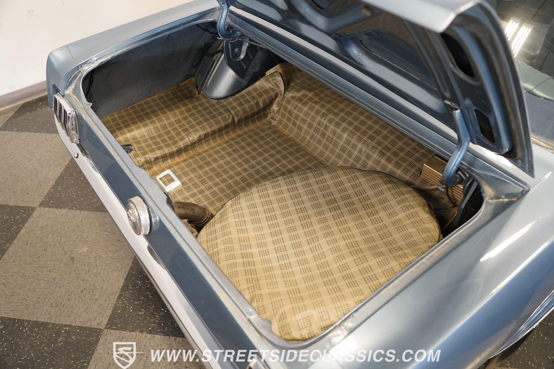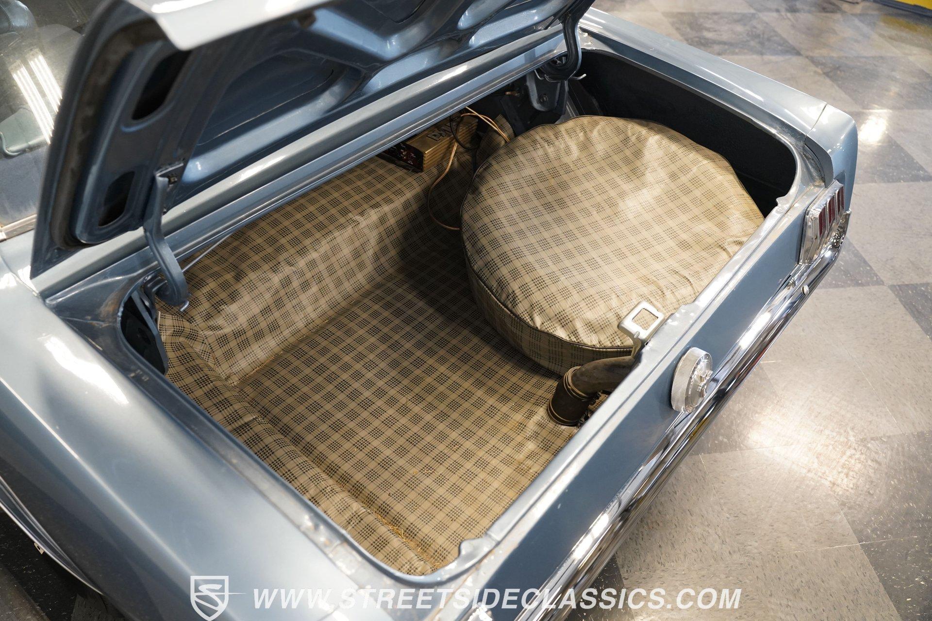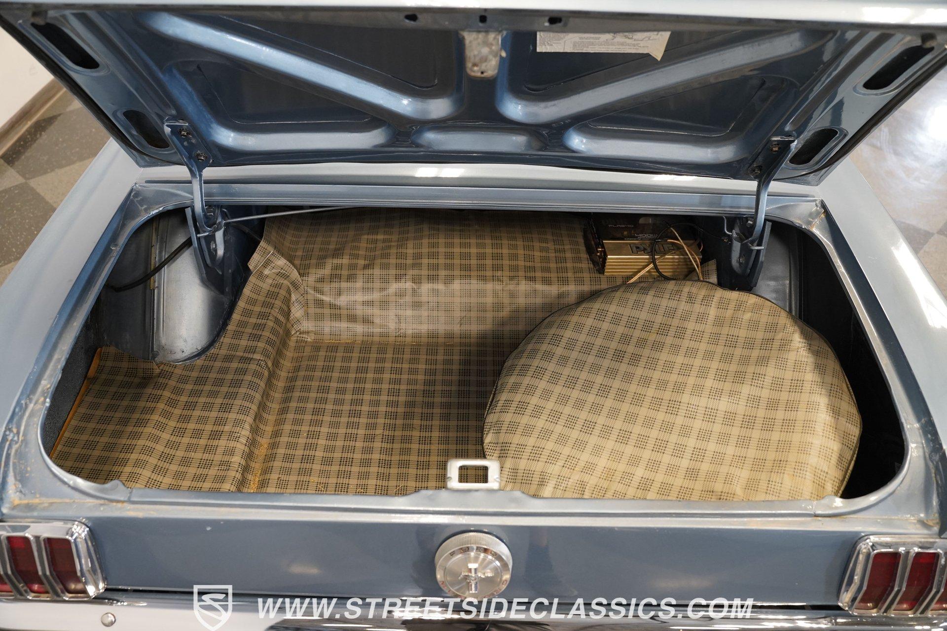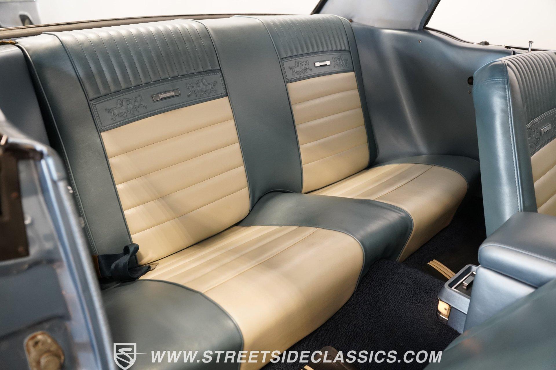 Arguably, the only thing that may make rowing through the gears of a first-generation Pony Car is driving behind the wheel of a classic muscle car that has been the beneficiary of a few modern upgrades. This particular 1966 Ford Mustang comes decked out in a full Silver Blue repaint, which complements the GT-style front grille, fog lights, and rear valance. And as pretty as this Mustang is on the surface, it is what lies under that shimmering exterior that makes this car a genuine Grand Tourer. Inside, we find a gorgeous blue and white Pony Interior. An aftermarket center console provides storage, a comfortable armrest, and a pair of cup holders. The GT theme is continued with a five-pod gauge cluster, along with a column-mounted tachometer offset to the left of the steering wheel. A sneaky retro-style head unit resembles an AM radio, but actually offers satellite and Bluetooth connectivity, a CD player, and an AUX input providing all the soundtrack options anyone could wish for. The real soundtrack, however, is situated beneath that steel hood. A Blueprint Engines 347 cubic-inch stroker V-8 engine. Equipped with Blueprint aluminum heads, a performance-oriented cam, a Holley four-barrel carburetor, a Blueprint aluminum intake manifold, and long-tube headers, this built small block has been dyno-proven to produce 416 horsepower and 433 pound-feet of torque at the rear wheels. That massive power is routed through a Tremec TR3551 five-speed manual transmission before being sent out to an eight-inch rear end. HIGHLIGHTS: Full Silver Blue Repaint GT Style Grille GT Style Fog Lights GT Style Rear Valance Blueprint 347 Stroker V8 Holley Four Barrel Blueprint Aluminum Heads Performance Cam Blueprint Aluminum Intake Long Tube Headers FlowMasters 416 RWHP 433 RWTQ Tremec Five Speed Manual Magnum 500 Wheels BFG Tires Pony Interior GT Style Gauges Column Mounted Tach AM/FM/CD/AUX/Satellite Bluetooth Center Console Cupholders This 1966 Ford Mustang rides on a suspension consisting of an independent front and a solid axle, leaf spring rear. The front end benefits from the addition of a beefed-up sway bar and a strut tower brace. Trick 14-inch Magnum 500 wheels are shod in 215/70R-14 BFGoodrich rubber, providing a solid contact patch for all those galloping ponies under the hood. If you've never experienced the thrill of a classic Pony Car, this restomodded Mustang will help you make up for lost time and then some. But don't wait, call today!