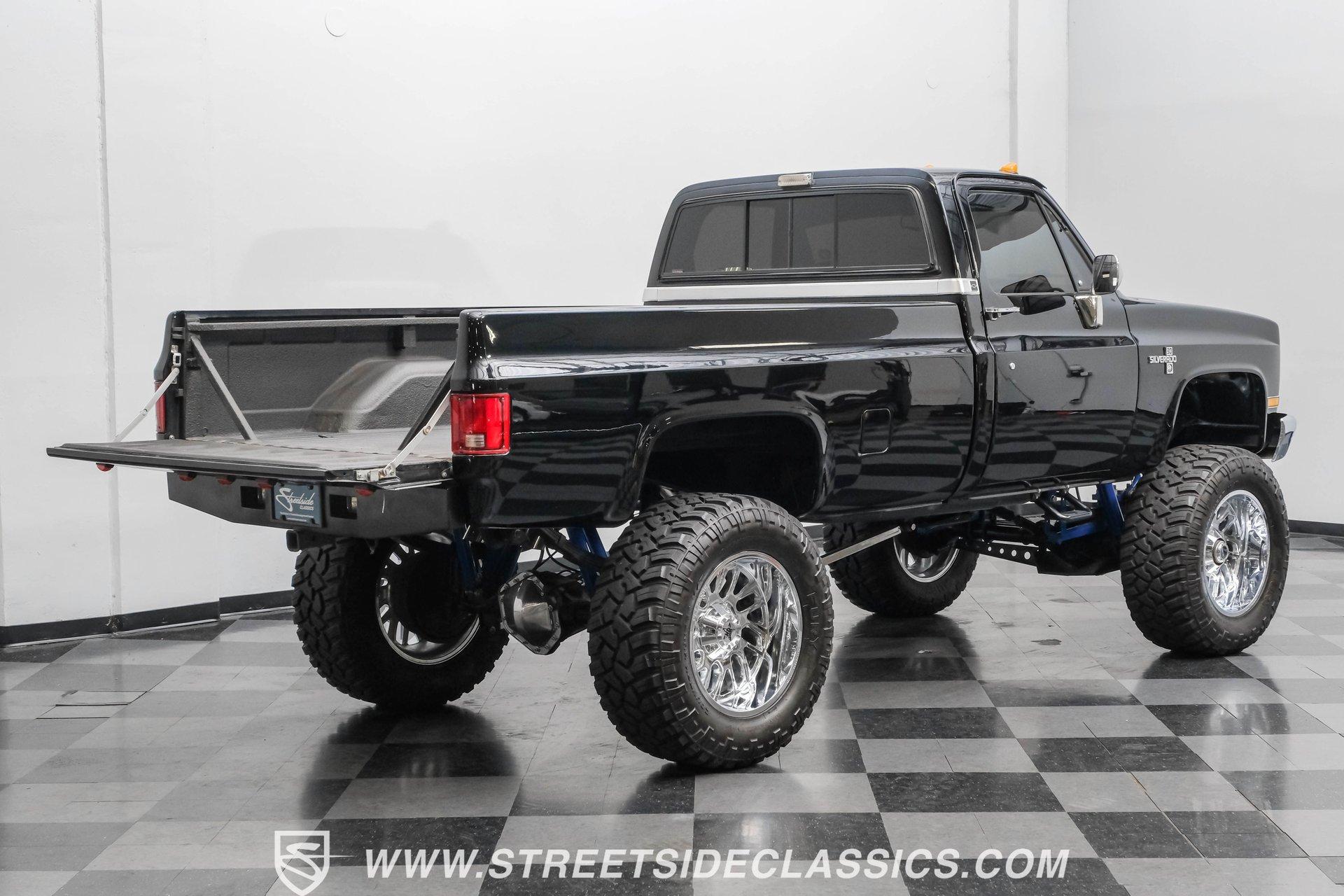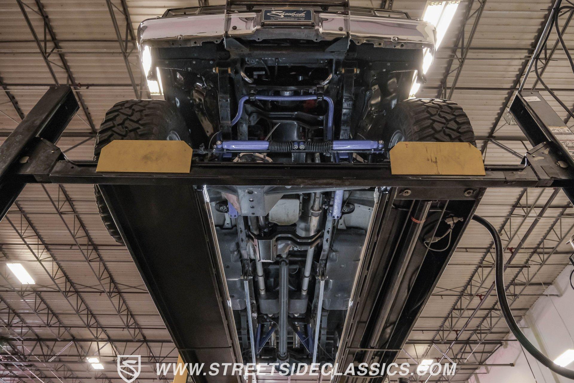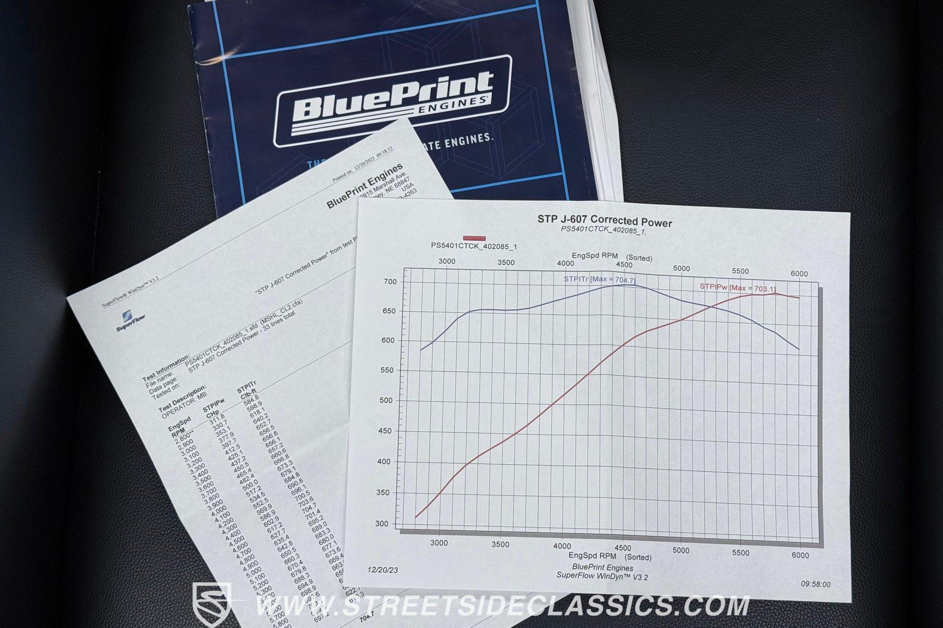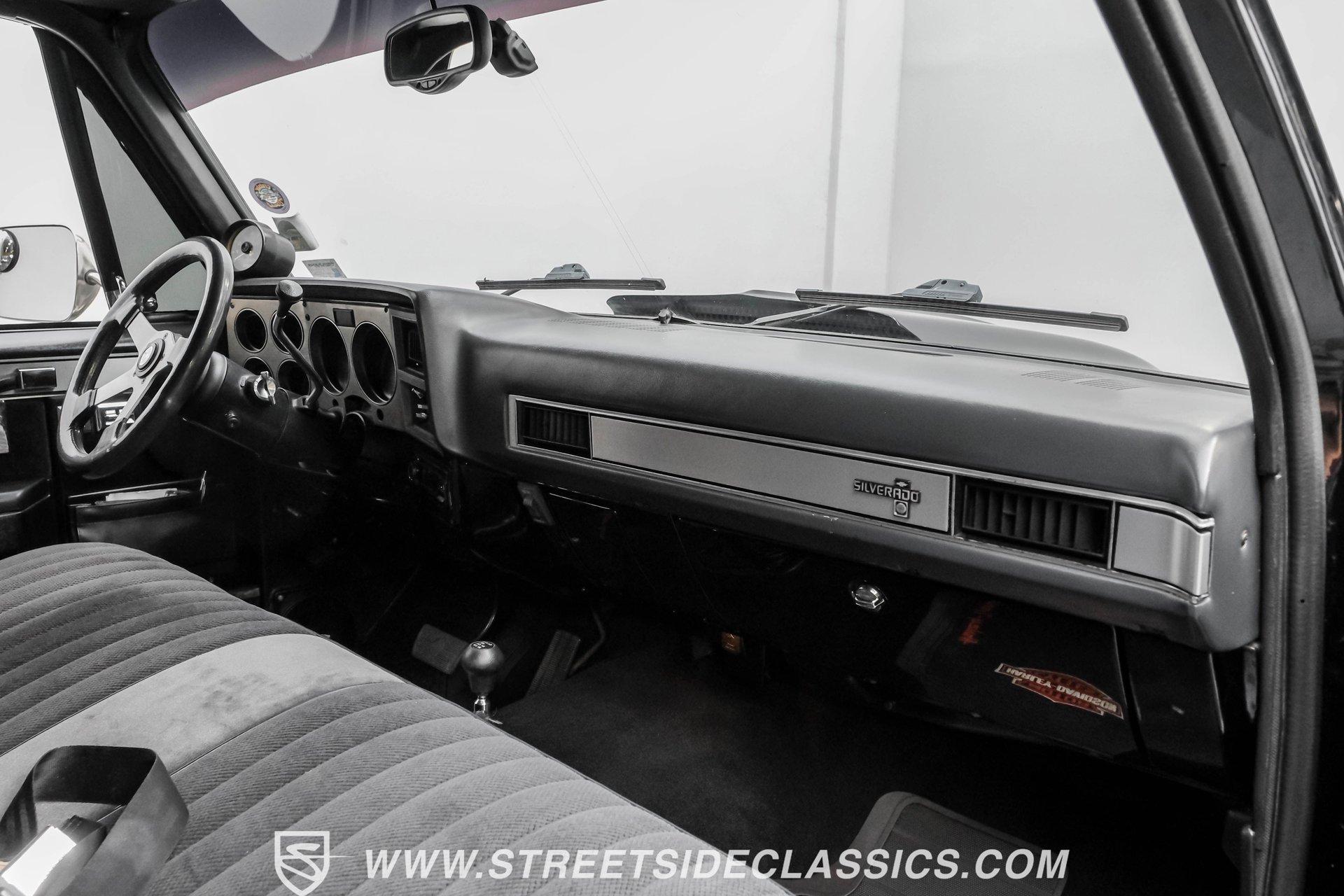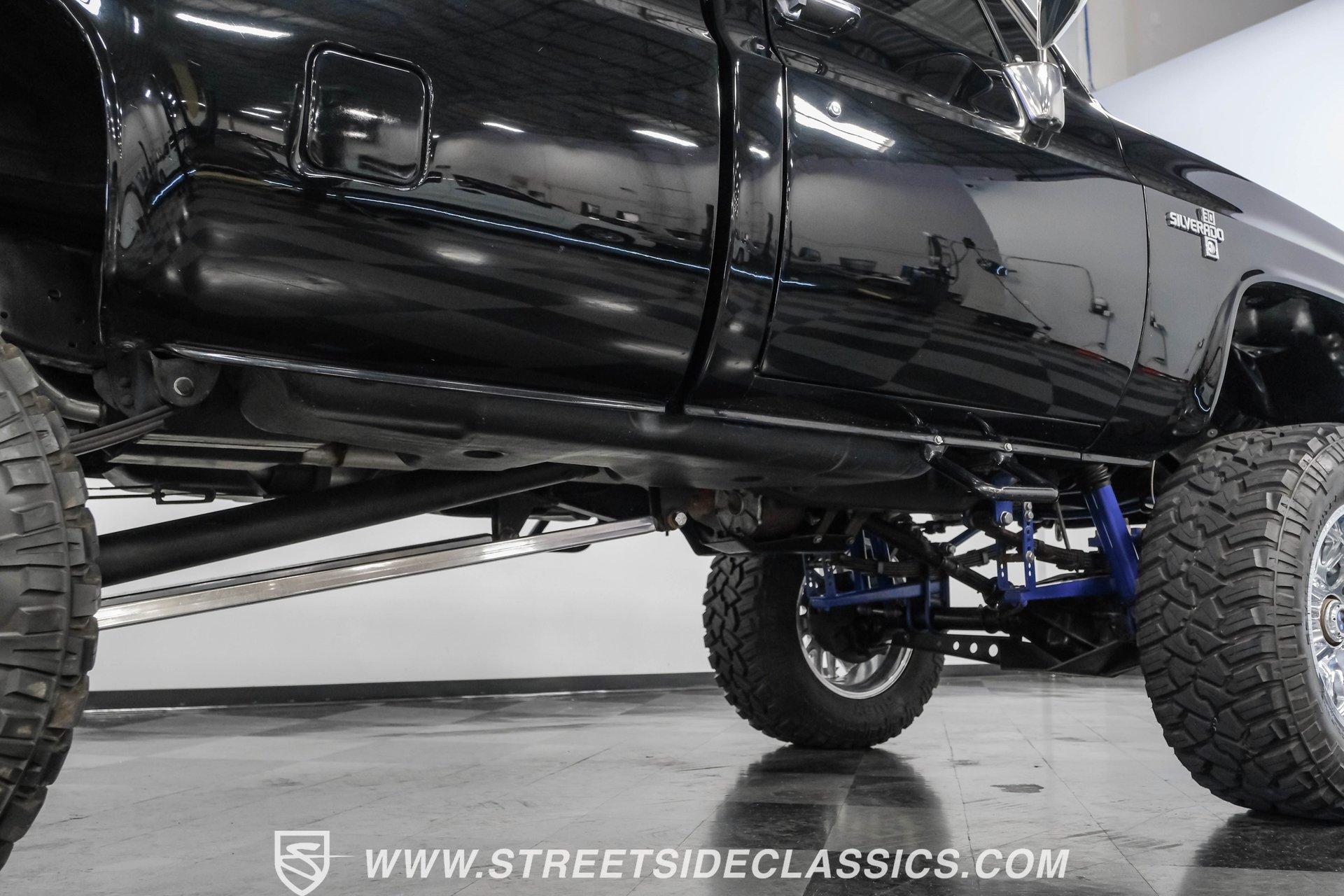 Here is one big, big truck that looks awesome and mean at the same time. It's a 1986 Chevrolet K30 Silverado 4x4 that has all the goodies a truck enthusiast would want. The paint job is excellent and pairs perfectly with the chrome. The wheels and tires give this beast a menacing look, and with four-wheel drive, it probably can go anywhere it wants. The chrome front bumper looks great and the rear has a flush mounted black steel custom bumper, and when you tie that in with the cowl induction hood, you have one well-put-together truck. There are also clearance lights on top and PIAA lights on the grille for added visibility. And for extra protection, it comes with a spray-in bed liner and two functional fuel tanks. The interior is very nicely done with a Charcoal Gray and Black color theme. The gauge cluster holds its original configuration, with a mounted AutoGauge tachometer on top of the dashboard. Just off to the right are your heat and air conditioning controls, and below that is a JVC AM/FM radio with Aux inputs and Bluetooth. For steering, you get a GT steering wheel and a tilt steering column with column shifting, while engaging four-wheel drive requires the floor shifter. The bench seats look to be in very good shape, as do the dash, headliner, carpets, and door panels. And along with the bench seat, it features a center console above for those little things you usually keep in one. A big truck like this needs big power, and that's exactly what this Chevy has. Under the hood is a BluePrint 540 cubic-inch crate engine that's been dynoed at 704 horsepower and 703 lb-ft of torque. This engine is equipped with aluminum BluePrint heads, a healthy cam, and a Weiand intake with a Holley 4-barrel carburetor. Power is sent through a TH400 transmission that connects to axles that harbor 4.56 gears. For suspension, both the front and rear use leaf springs and shocks-two sets of shocks per side in the front and three shocks per side in the rear. This beautiful truck rides on 22-inch Luxx wheels wrapped in massive 40x15.50R22 Fury tires. Front power disc brakes combined with rear power drum brakes bring this beast to a stop. And for a sound that matches its monstrous vibe, the engine exhales through long-tube headers, dual exhaust, and a set of Flowmasters. Highlights: BluePrint 540 Cubic-Inch Crate Engine Dynoed At 704 Horsepower And 703 LB-FT Of Torque (With Dyno Sheet) Aluminum BluePrint Heads Healthy Camshaft Weiand Intake With Holley 4-Barrel Carburetor TH400 4-Speed Transmission 4.56 Gears Front And Rear Leaf Springs Two Shocks In The Front On Each Side And Three On Each Side For The Rear Front Power Disc Brakes 22-Inch Luxx Wheels With 40x15.50R22 Fury Tires Power Windows And Locks Functional Dual Fuel Tanks Heat And Air Conditioning Tilt Steering Wheel Overhead Console For Storage Aftermarket Rearview Mirror With Temp Readouts and Compass GT Steering Wheel Aftermarket Clearance Lights And PIAA Lights Big, bold, and in control-that's what this 1986 Chevrolet K30 Silverado 4x4 is all about. If you like driving above traffic, you'll feel like the king of the road in this monster. For more info, Call Us Today!