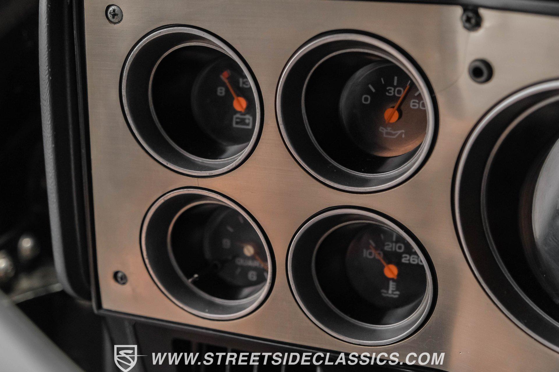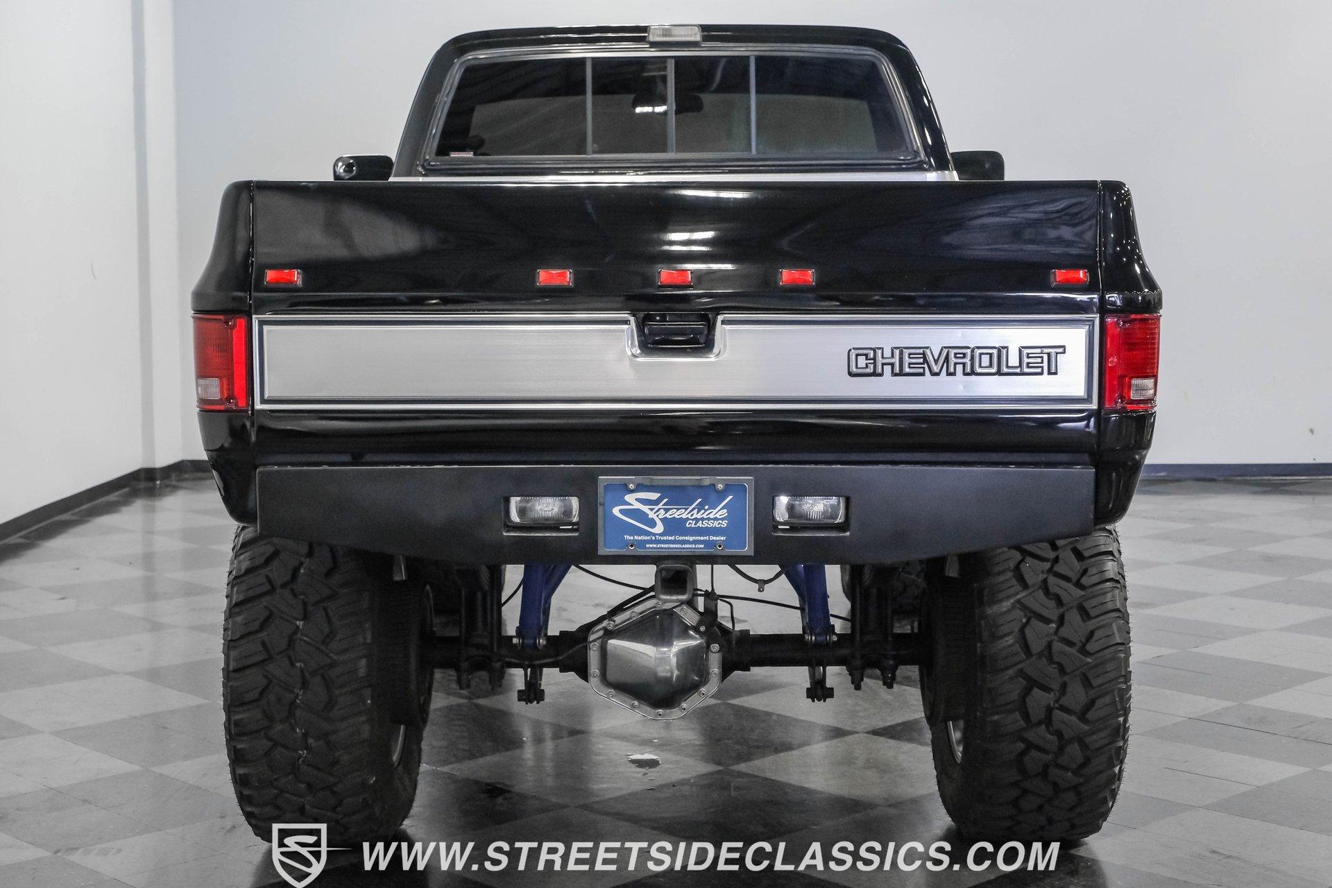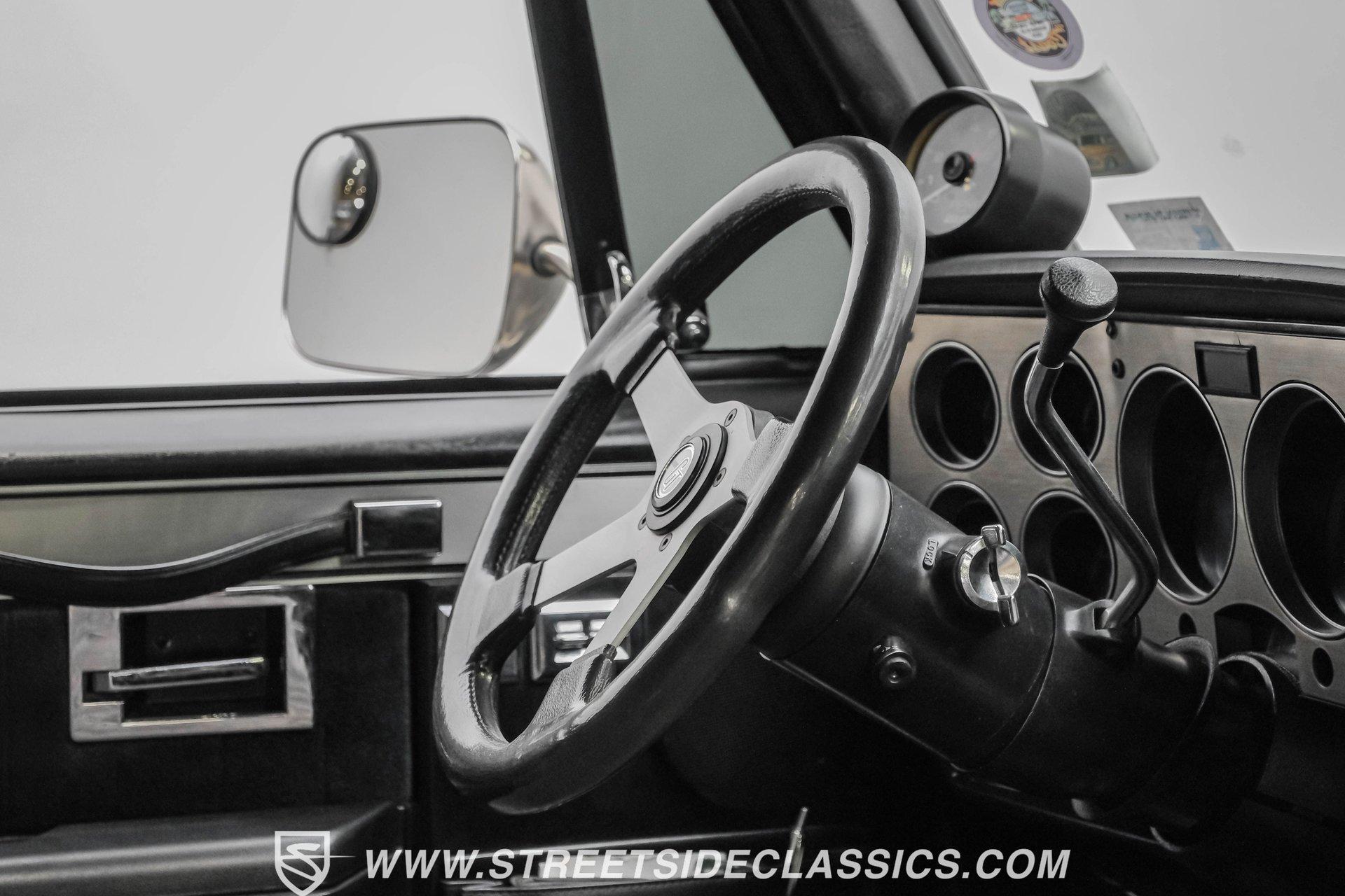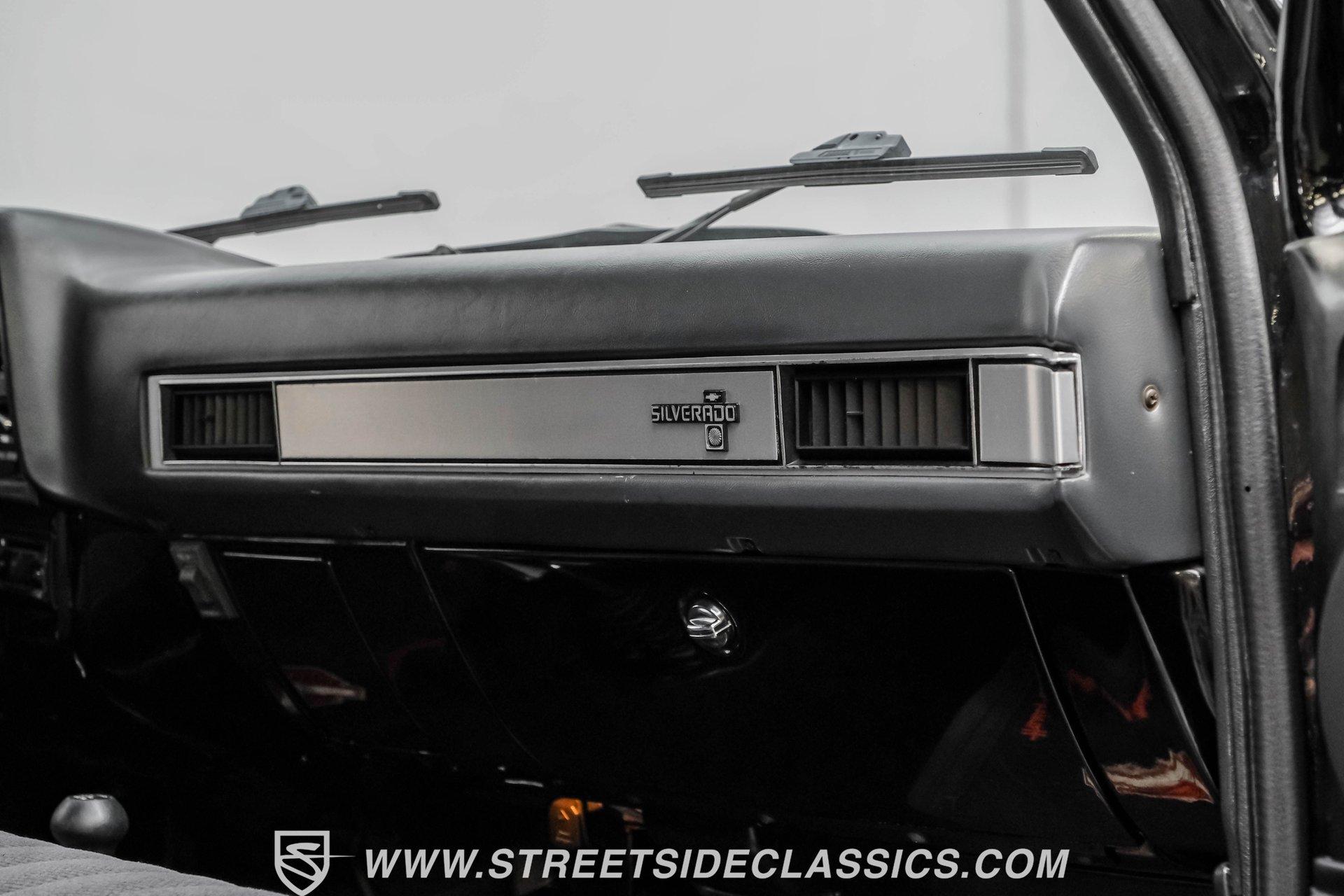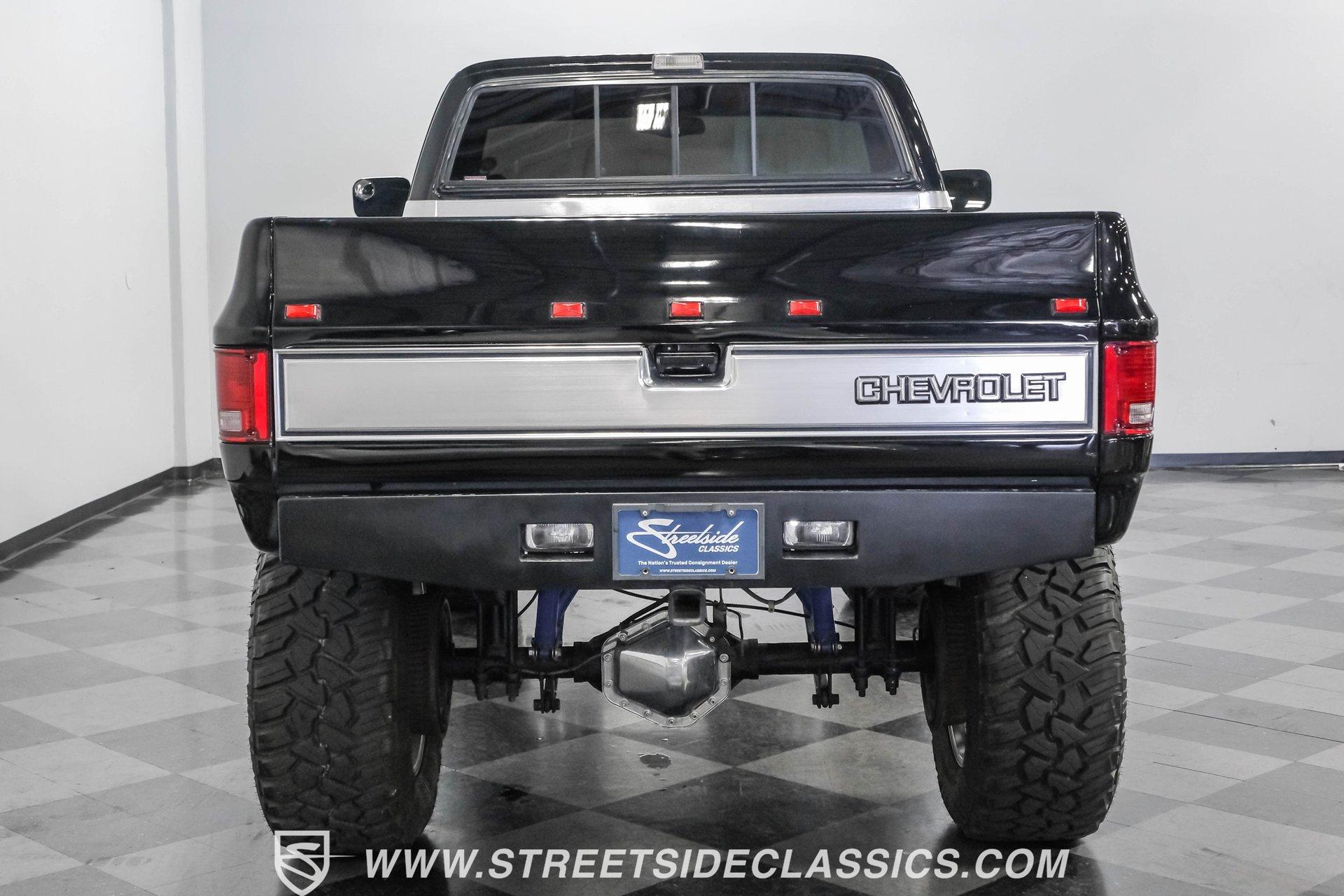 Here is one big, big truck that looks awesome and mean at the same time. It's a 1986 Chevrolet K30 Silverado 4x4 that has all the goodies a truck enthusiast would want. The paint job is excellent and pairs perfectly with the chrome. The wheels and tires give this beast a menacing look, and with four-wheel drive, it probably can go anywhere it wants. The chrome front bumper looks great and the rear has a flush mounted black steel custom bumper, and when you tie that in with the cowl induction hood, you have one well-put-together truck. There are also clearance lights on top and PIAA lights on the grille for added visibility. And for extra protection, it comes with a spray-in bed liner and two functional fuel tanks. The interior is very nicely done with a Charcoal Gray and Black color theme. The gauge cluster holds its original configuration, with a mounted AutoGauge tachometer on top of the dashboard. Just off to the right are your heat and air conditioning controls, and below that is a JVC AM/FM radio with Aux inputs and Bluetooth. For steering, you get a GT steering wheel and a tilt steering column with column shifting, while engaging four-wheel drive requires the floor shifter. The bench seats look to be in very good shape, as do the dash, headliner, carpets, and door panels. And along with the bench seat, it features a center console above for those little things you usually keep in one. A big truck like this needs big power, and that's exactly what this Chevy has. Under the hood is a BluePrint 540 cubic-inch crate engine that's been dynoed at 704 horsepower and 703 lb-ft of torque. This engine is equipped with aluminum BluePrint heads, a healthy cam, and a Weiand intake with a Holley 4-barrel carburetor. Power is sent through a TH400 transmission that connects to axles that harbor 4.56 gears. For suspension, both the front and rear use leaf springs and shocks-two sets of shocks per side in the front and three shocks per side in the rear. This beautiful truck rides on 22-inch Luxx wheels wrapped in massive 40x15.50R22 Fury tires. Front power disc brakes combined with rear power drum brakes bring this beast to a stop. And for a sound that matches its monstrous vibe, the engine exhales through long-tube headers, dual exhaust, and a set of Flowmasters. Highlights: BluePrint 540 Cubic-Inch Crate Engine Dynoed At 704 Horsepower And 703 LB-FT Of Torque (With Dyno Sheet) Aluminum BluePrint Heads Healthy Camshaft Weiand Intake With Holley 4-Barrel Carburetor TH400 4-Speed Transmission 4.56 Gears Front And Rear Leaf Springs Two Shocks In The Front On Each Side And Three On Each Side For The Rear Front Power Disc Brakes 22-Inch Luxx Wheels With 40x15.50R22 Fury Tires Power Windows And Locks Functional Dual Fuel Tanks Heat And Air Conditioning Tilt Steering Wheel Overhead Console For Storage Aftermarket Rearview Mirror With Temp Readouts and Compass GT Steering Wheel Aftermarket Clearance Lights And PIAA Lights Big, bold, and in control-that's what this 1986 Chevrolet K30 Silverado 4x4 is all about. If you like driving above traffic, you'll feel like the king of the road in this monster. For more info, Call Us Today!