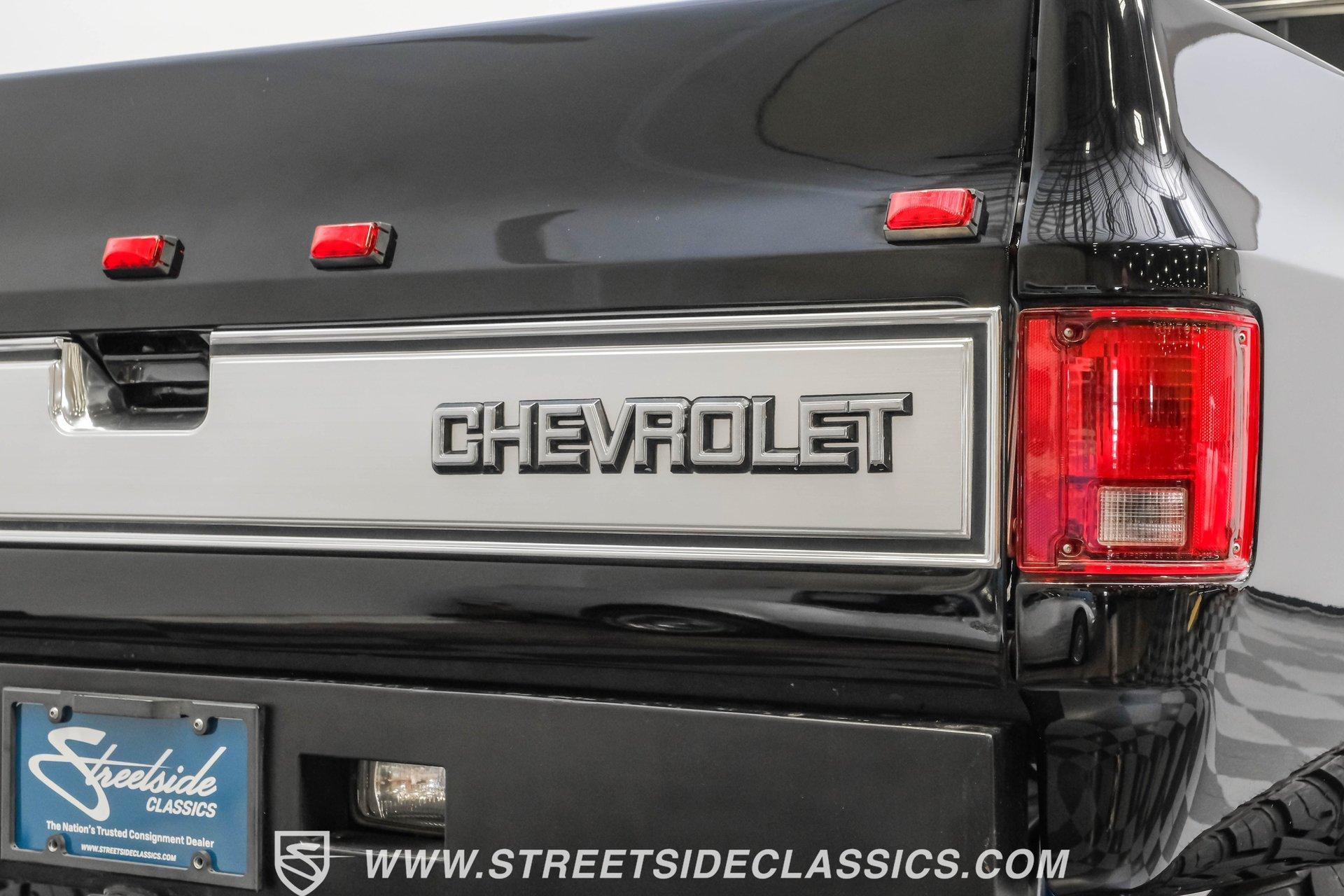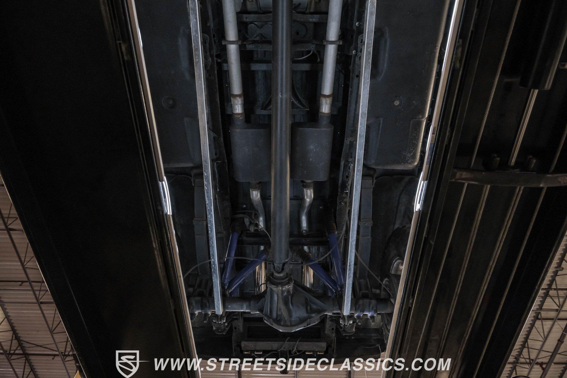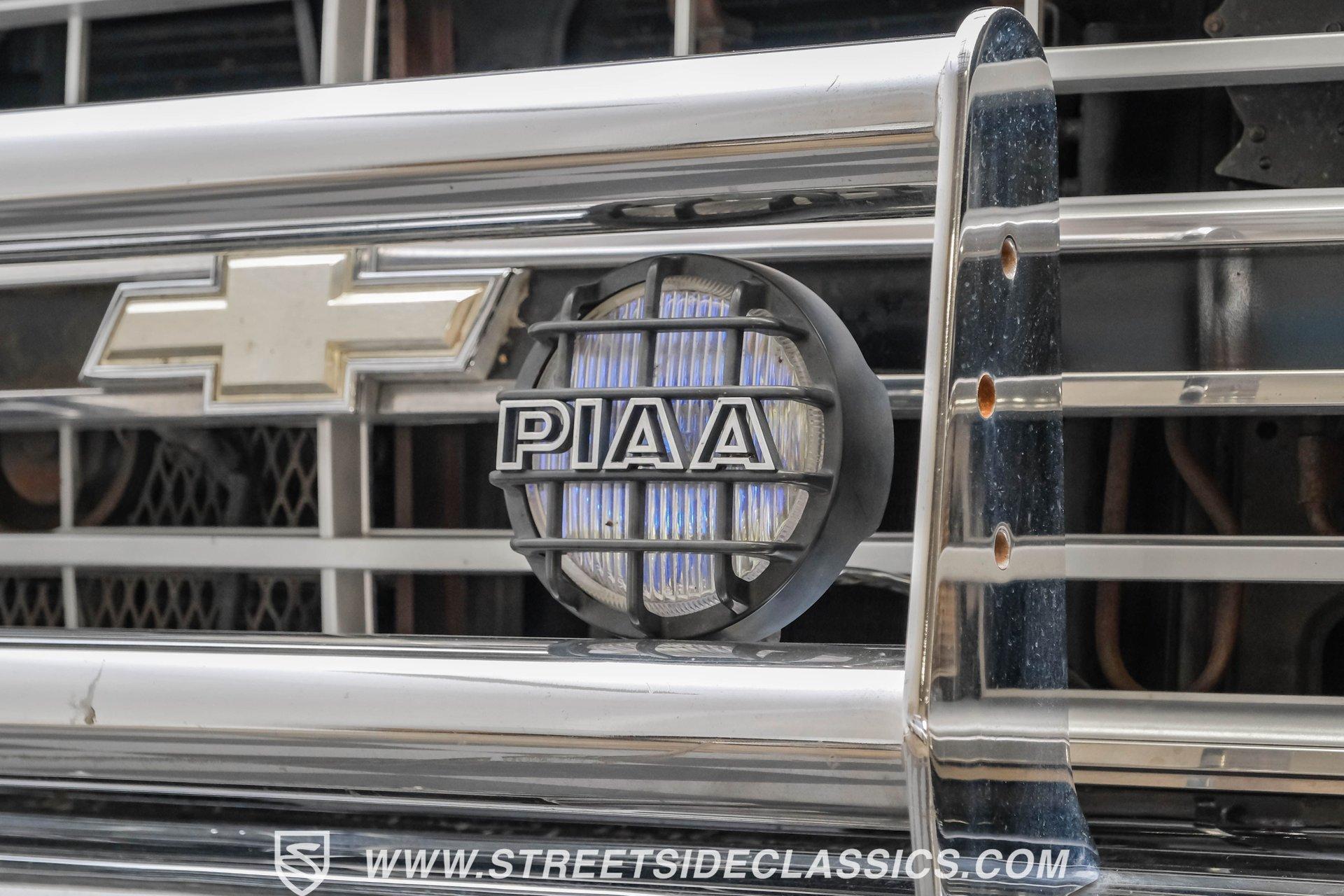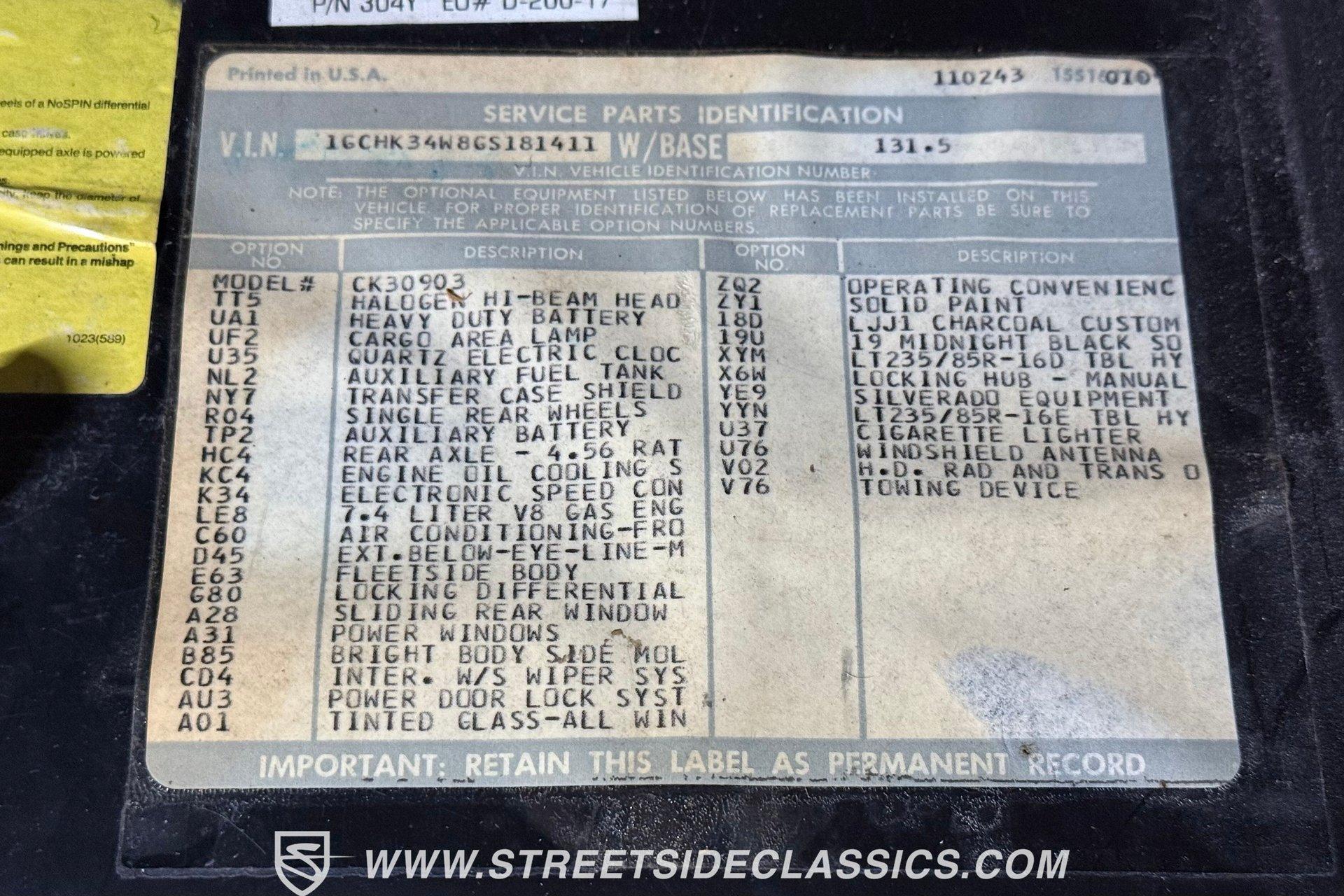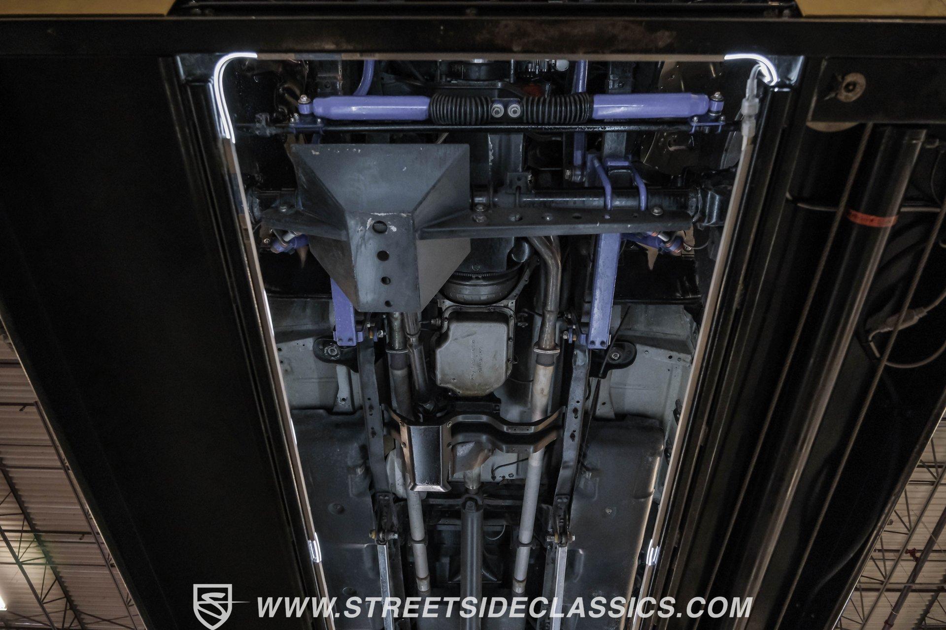 Here is one big, big truck that looks awesome and mean at the same time. It's a 1986 Chevrolet K30 Silverado 4x4 that has all the goodies a truck enthusiast would want. The paint job is excellent and pairs perfectly with the chrome. The wheels and tires give this beast a menacing look, and with four-wheel drive, it probably can go anywhere it wants. The chrome front bumper looks great and the rear has a flush mounted black steel custom bumper, and when you tie that in with the cowl induction hood, you have one well-put-together truck. There are also clearance lights on top and PIAA lights on the grille for added visibility. And for extra protection, it comes with a spray-in bed liner and two functional fuel tanks. The interior is very nicely done with a Charcoal Gray and Black color theme. The gauge cluster holds its original configuration, with a mounted AutoGauge tachometer on top of the dashboard. Just off to the right are your heat and air conditioning controls, and below that is a JVC AM/FM radio with Aux inputs and Bluetooth. For steering, you get a GT steering wheel and a tilt steering column with column shifting, while engaging four-wheel drive requires the floor shifter. The bench seats look to be in very good shape, as do the dash, headliner, carpets, and door panels. And along with the bench seat, it features a center console above for those little things you usually keep in one. A big truck like this needs big power, and that's exactly what this Chevy has. Under the hood is a BluePrint 540 cubic-inch crate engine that's been dynoed at 704 horsepower and 703 lb-ft of torque. This engine is equipped with aluminum BluePrint heads, a healthy cam, and a Weiand intake with a Holley 4-barrel carburetor. Power is sent through a TH400 transmission that connects to axles that harbor 4.56 gears. For suspension, both the front and rear use leaf springs and shocks-two sets of shocks per side in the front and three shocks per side in the rear. This beautiful truck rides on 22-inch Luxx wheels wrapped in massive 40x15.50R22 Fury tires. Front power disc brakes combined with rear power drum brakes bring this beast to a stop. And for a sound that matches its monstrous vibe, the engine exhales through long-tube headers, dual exhaust, and a set of Flowmasters. Highlights: BluePrint 540 Cubic-Inch Crate Engine Dynoed At 704 Horsepower And 703 LB-FT Of Torque (With Dyno Sheet) Aluminum BluePrint Heads Healthy Camshaft Weiand Intake With Holley 4-Barrel Carburetor TH400 4-Speed Transmission 4.56 Gears Front And Rear Leaf Springs Two Shocks In The Front On Each Side And Three On Each Side For The Rear Front Power Disc Brakes 22-Inch Luxx Wheels With 40x15.50R22 Fury Tires Power Windows And Locks Functional Dual Fuel Tanks Heat And Air Conditioning Tilt Steering Wheel Overhead Console For Storage Aftermarket Rearview Mirror With Temp Readouts and Compass GT Steering Wheel Aftermarket Clearance Lights And PIAA Lights Big, bold, and in control-that's what this 1986 Chevrolet K30 Silverado 4x4 is all about. If you like driving above traffic, you'll feel like the king of the road in this monster. For more info, Call Us Today!