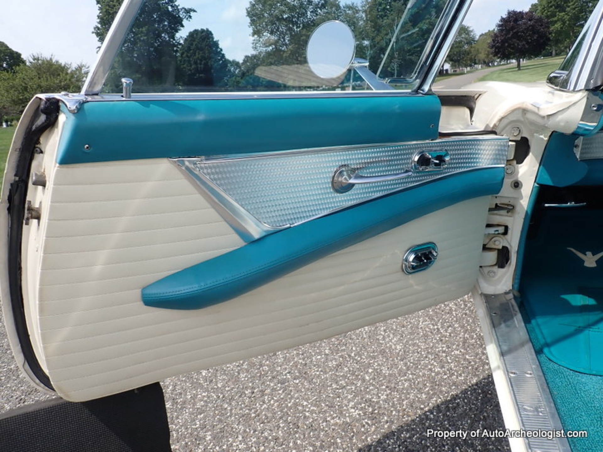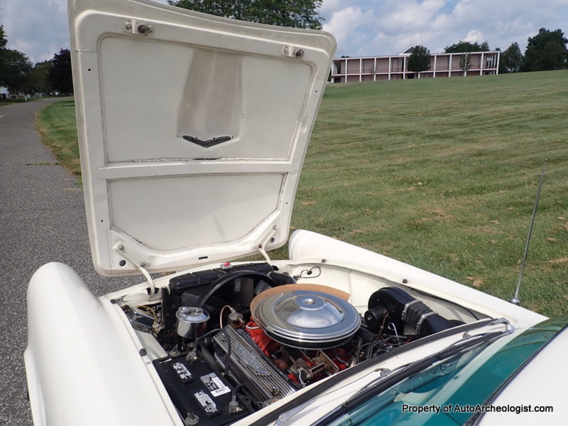 Originally ordered in Colonial White over a red and white interior, in 1994 the car underwent a complete body off restoration, that included rebuilding the engine. The owner at that point decided to go with the Turquoise and White interior, which in my opinion, pops a lot more than the red and is seen less often.
