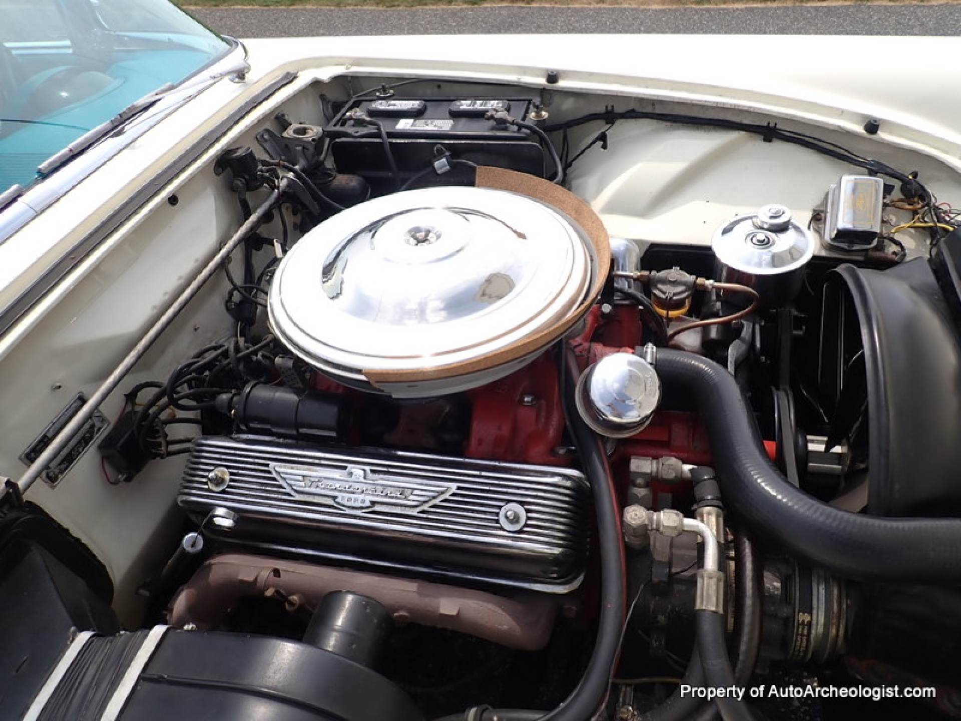 The chrome shines very nicely, some minor polishing marks can be seen. The Colonial White paint is also in very good condition with a great shine. There are several nicks/chips, most of which have been touched up. Under the hood is clean. The interior is in very good condition and really pops against the white exterior.