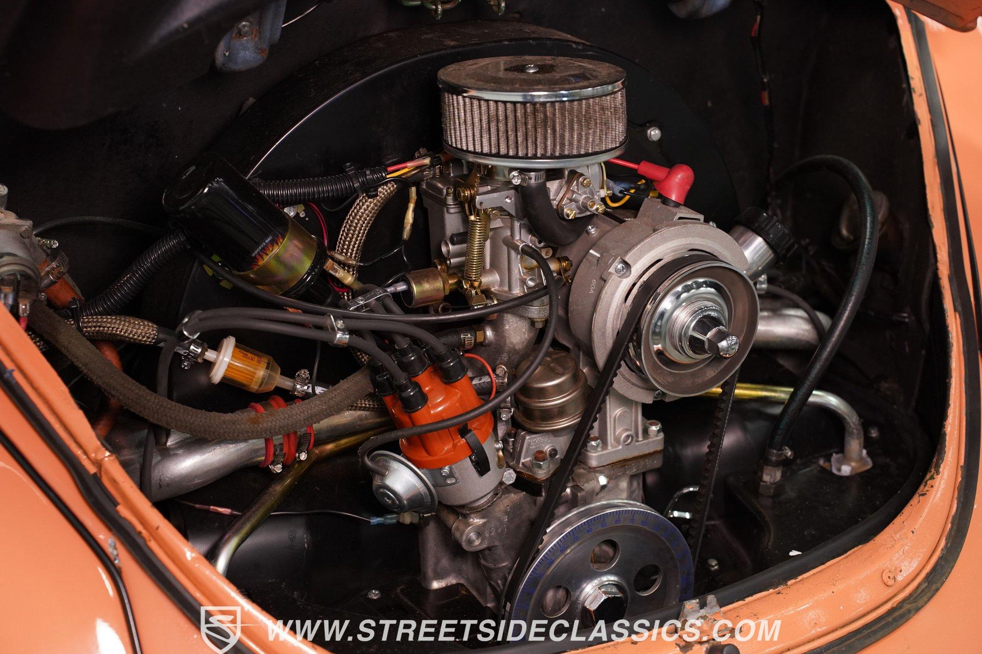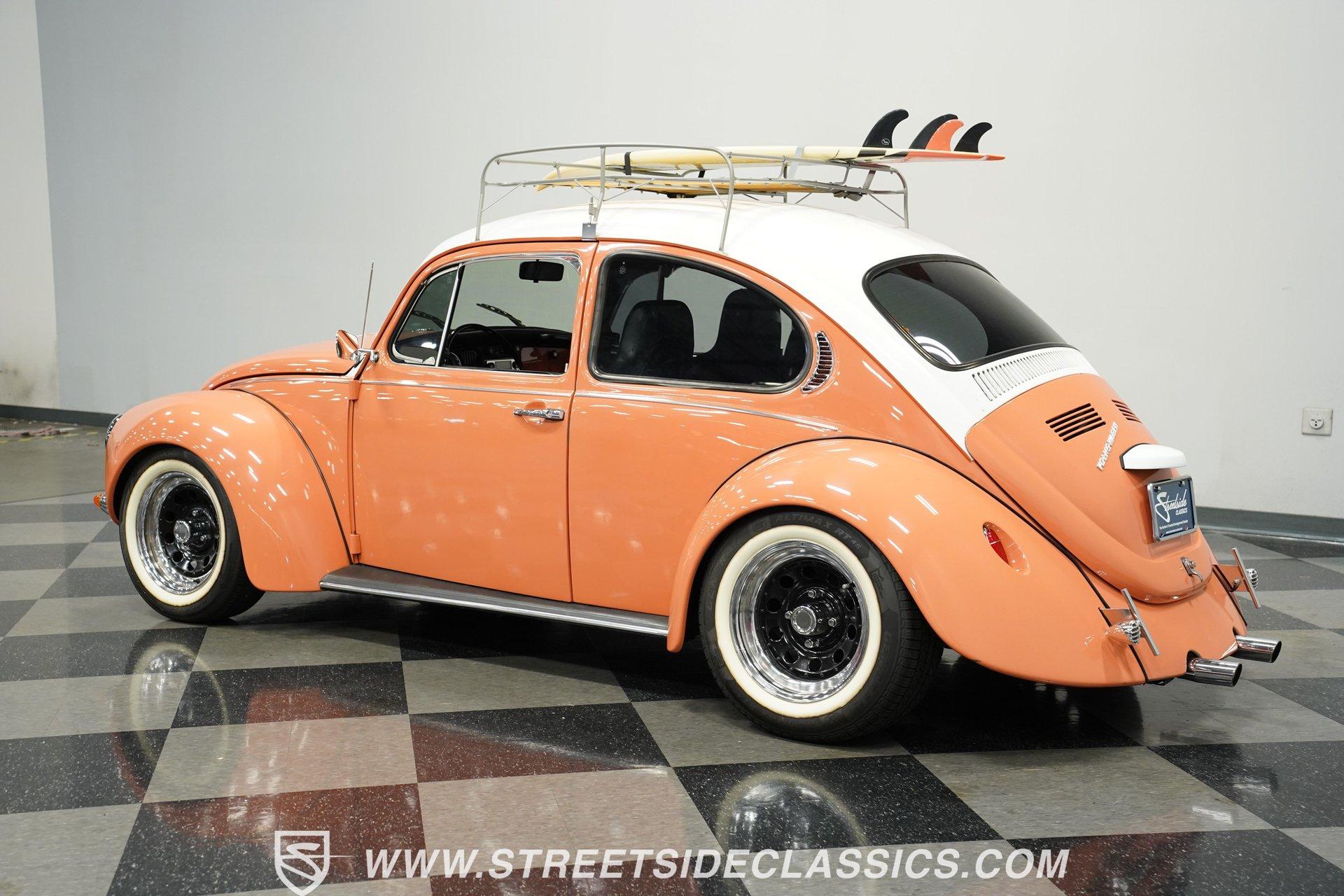 There is something about an old Beetle that speaks to a simpler freedom, whether it is a weekend escape to the coast or the daily reminder to slow down and enjoy the drive. This car wears its personality proudly, from the chrome roof rack and surfboard to the vintage touches that make it more than transportation. It has character from careful owners and tasteful updates that invite a new caretaker to add their story. If you are drawn to a surf-ready, driver-focused classic, consider this 1971 Volkswagen Super Beetle. Step inside and you will find a mostly stock black vinyl interior with the feel of a well-used, well-loved classic. The dash is crack free and the gauges read clearly. A vintage parcel tray adds period charm, while a newer steering wheel and radio provide usability for modern outings. Expect normal wear on touch points and some wear on the driver outer seat bolster, but overall the cabin presents well for its age and intended use. Under the rear deck is a fresh feeling 1600 that was reported as freshly rebuilt when the car was acquired by the current owner. The engine bay carries a 1973 Twin Port 1600 rated about 48 horsepower in this configuration, and the car uses a 3-speed automatic Autostick transmission. The suspension is largely stock but lowered, with a rear sway bar added and front disc brakes up front with drums in the rear. There is no power steering or air conditioning, so driving is an honest, analog experience. Highlights Freshly rebuilt 1600 reported at time of purchase; 1973 Twin Port 1600 in engine bay, approximately 48 HP 3-speed automatic Autostick transmission Exterior details include T-bar bumpers, headlight stone guards, frenched tail lights, and front turn signals relocated to lower fenders Chrome roof rack fitted with a surfboard and fiberglass lower fenders 15 inch aftermarket wheels with white wall tires; front tires 195/65R15, rear tires 225/60R15 Suspension: strut front, shocks and sway bar rear; stock lowered setup with rear sway bar added Front disc brakes and rear drums This Super Beetle is a taut little cruiser with period upgrades and a surf-ready attitude, suited to someone who appreciates vintage character and a hands-on ownership experience. It could be an excellent weekend toy or a base for further personalization. Call today to arrange a closer look and a test drive.