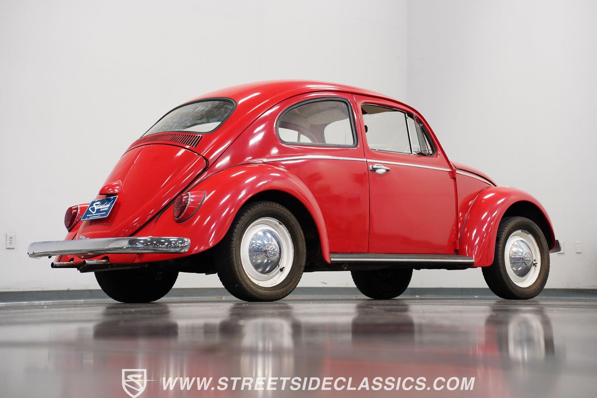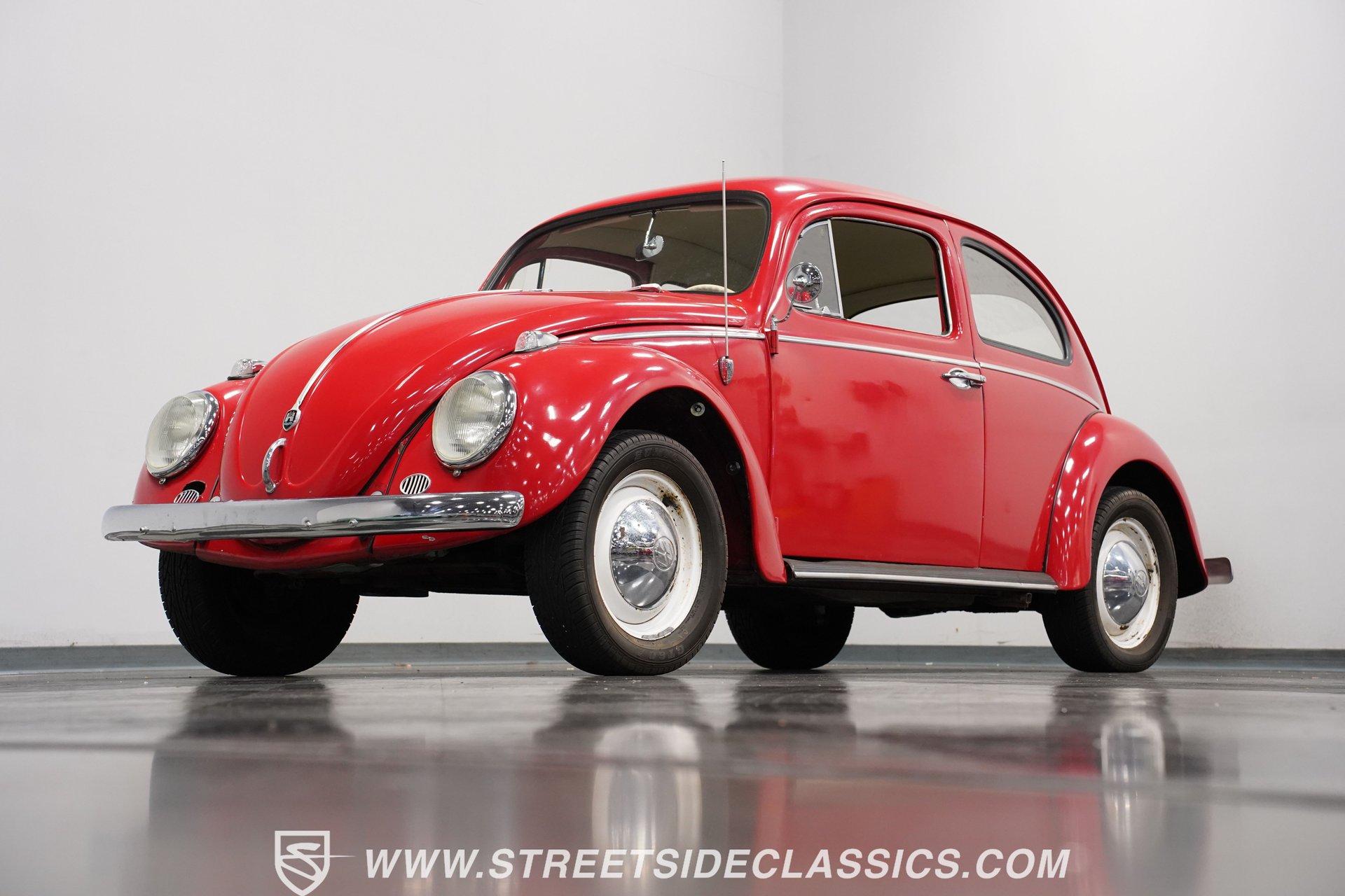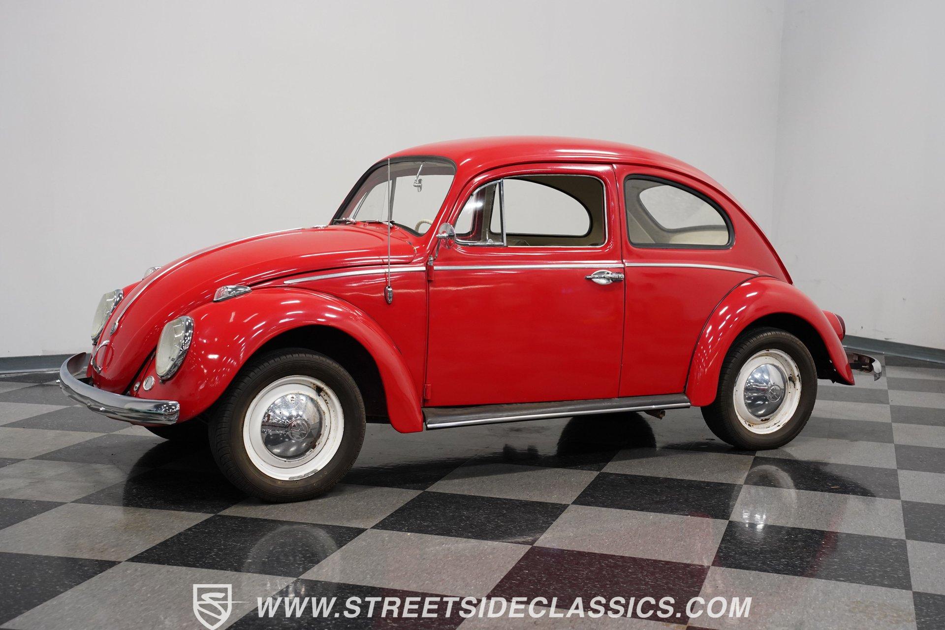 Here is an oldie but goodie. This 1962 Volkswagen Beetle has been around the block, so some wear and tear is to be expected. But there are also high points-one being that it's a VW. There is a huge cult following for these vehicles, and finding car meets and groups is pretty easy, especially with the Internet and forums. Acquiring rare car parts isn't as hard as it used to be, and fixing a typical VW problem might be a mouse click away. So if you decide you want this VW Beetle, you can enjoy the red paint, chrome bumpers, stock wheels, and the VW lifestyle, knowing you are not alone in the Beetle journey. The interior is in pretty good shape, with comfy beige and off-white seats and matching door panels. The red dashboard matches the exterior paint and showcases an original-style VDO tachometer, gas gauge, and what appears to be an upgraded AM/FM radio. The carpets look decent and are protected by heavy-duty diamond plate floor mats. There is a locking glove box for storage, along with more storage in the front trunk that also has a diamond plate floor mat and a spare tire area. In the rear sits a 1600cc single-port flat 4-cylinder engine. Bolted to it is a 4-speed manual transmission that runs power through a VW transaxle. The front suspension features a Link Pin design with shocks, while the rear uses a swing axle design with shocks. The 15-inch wheels sport VW center caps and are wrapped in 195/60R15 tires. Manual drum brakes are fitted at all four corners, while stock-style manifolds and dual exhaust handle the airflow. Highlights: 1600cc Flat 4-Cylinder Engine 4-Speed Manual Transmission VW Transaxle Front Link Pin Designed Suspension With Shocks Rear Swing Axle Suspension With Shocks 15-Inch Wheels With VW Center Caps Front And Rear 195/60R15 Tires-Date Coded 2017/2018 AM/FM Radio Heat If you feel like you've been getting the bug for a VW, then this 1962 Volkswagen Beetle might be just the thing for you. It runs well, looks decent, and has a nice interior. This can be a very fun car to cruise in and work on. Call Today!