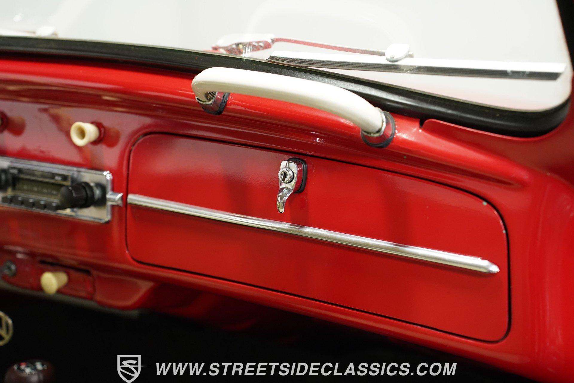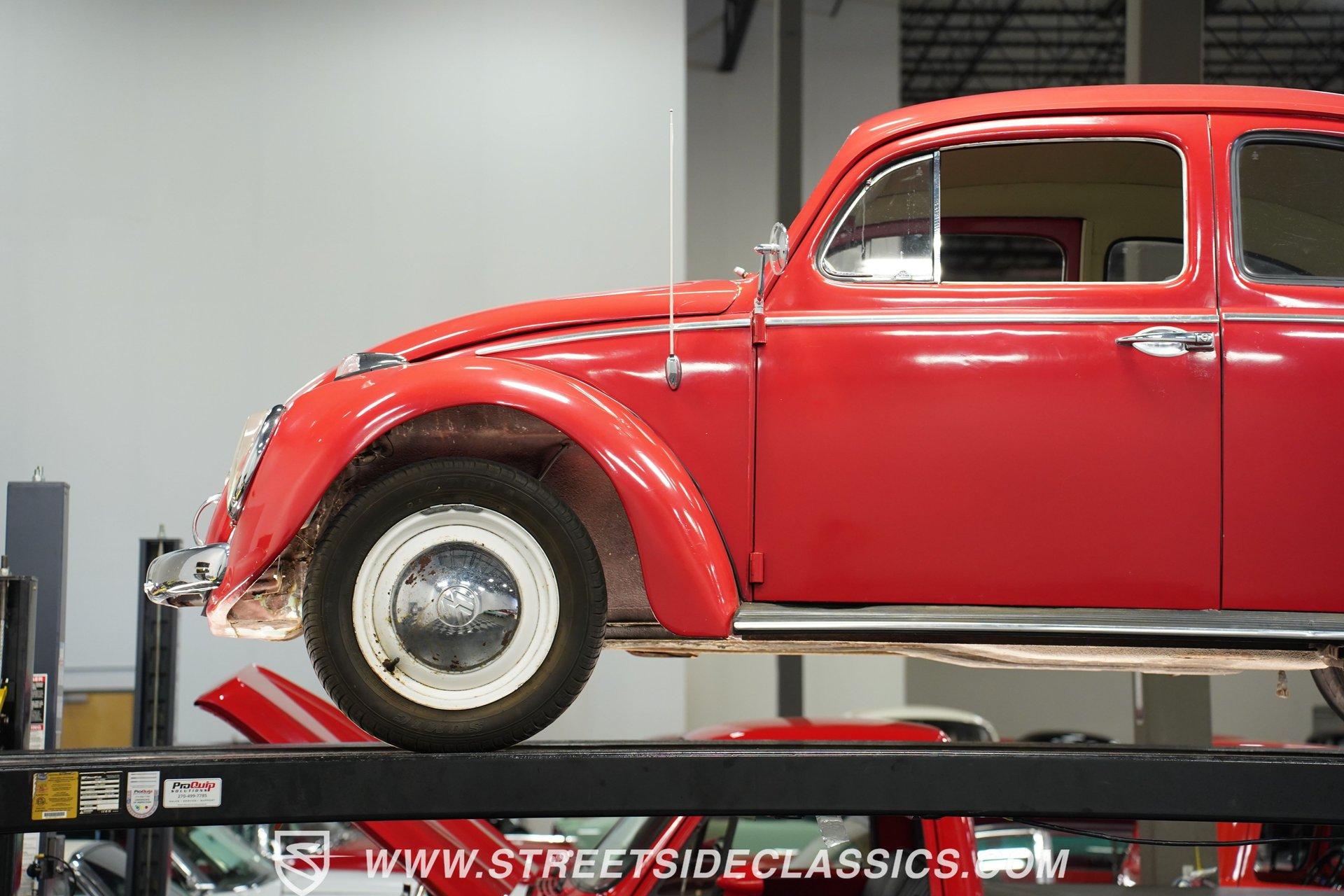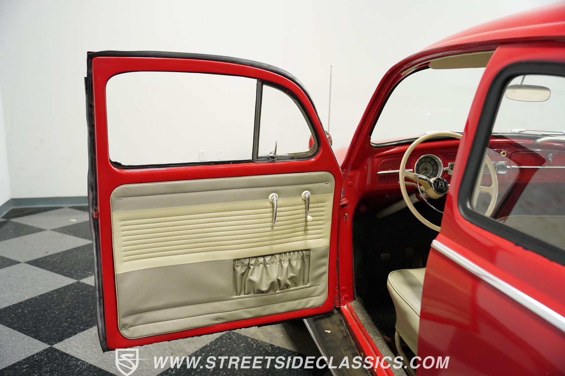 Here is an oldie but goodie. This 1962 Volkswagen Beetle has been around the block, so some wear and tear is to be expected. But there are also high points-one being that it's a VW. There is a huge cult following for these vehicles, and finding car meets and groups is pretty easy, especially with the Internet and forums. Acquiring rare car parts isn't as hard as it used to be, and fixing a typical VW problem might be a mouse click away. So if you decide you want this VW Beetle, you can enjoy the red paint, chrome bumpers, stock wheels, and the VW lifestyle, knowing you are not alone in the Beetle journey. The interior is in pretty good shape, with comfy beige and off-white seats and matching door panels. The red dashboard matches the exterior paint and showcases an original-style VDO tachometer, gas gauge, and what appears to be an upgraded AM/FM radio. The carpets look decent and are protected by heavy-duty diamond plate floor mats. There is a locking glove box for storage, along with more storage in the front trunk that also has a diamond plate floor mat and a spare tire area. In the rear sits a 1600cc single-port flat 4-cylinder engine. Bolted to it is a 4-speed manual transmission that runs power through a VW transaxle. The front suspension features a Link Pin design with shocks, while the rear uses a swing axle design with shocks. The 15-inch wheels sport VW center caps and are wrapped in 195/60R15 tires. Manual drum brakes are fitted at all four corners, while stock-style manifolds and dual exhaust handle the airflow. Highlights: 1600cc Flat 4-Cylinder Engine 4-Speed Manual Transmission VW Transaxle Front Link Pin Designed Suspension With Shocks Rear Swing Axle Suspension With Shocks 15-Inch Wheels With VW Center Caps Front And Rear 195/60R15 Tires-Date Coded 2017/2018 AM/FM Radio Heat If you feel like you've been getting the bug for a VW, then this 1962 Volkswagen Beetle might be just the thing for you. It runs well, looks decent, and has a nice interior. This can be a very fun car to cruise in and work on. Call Today!