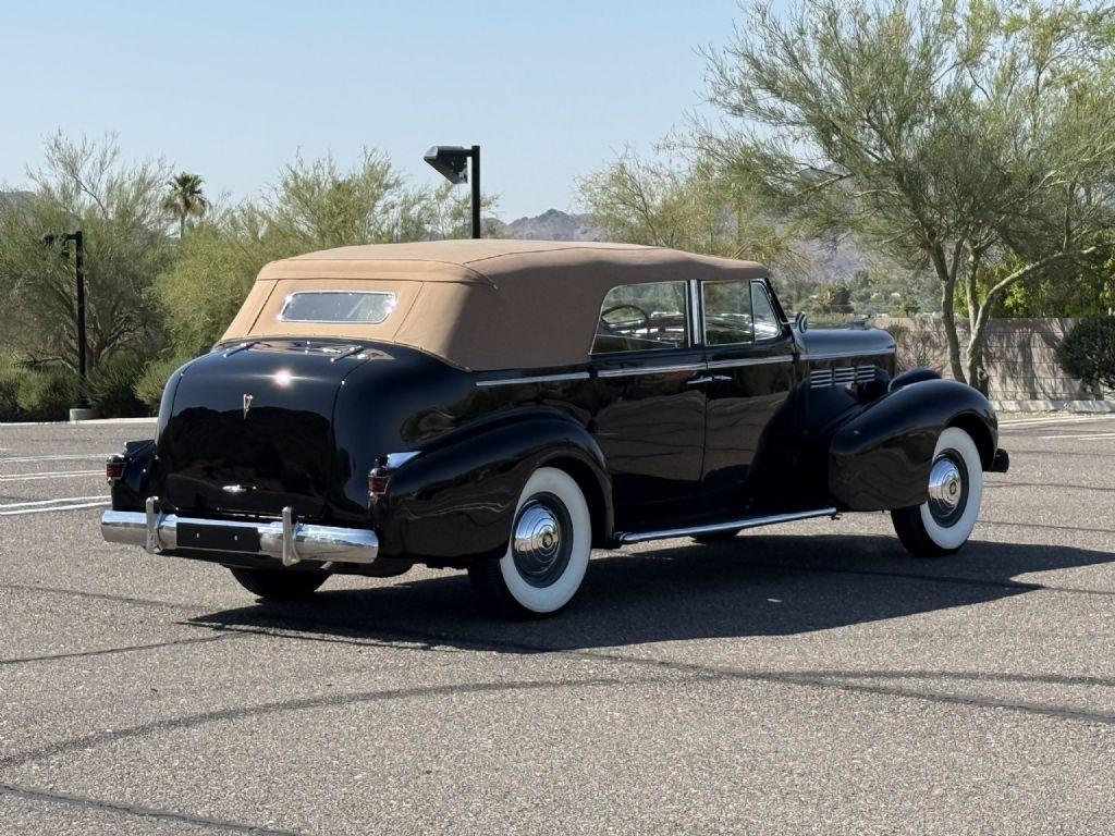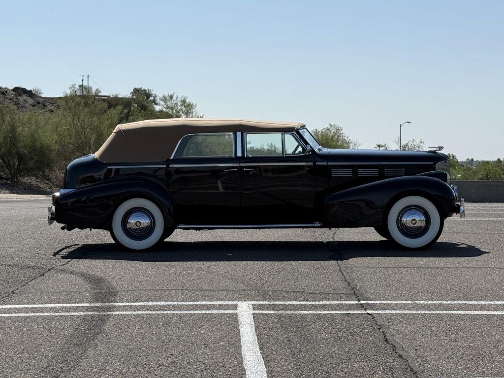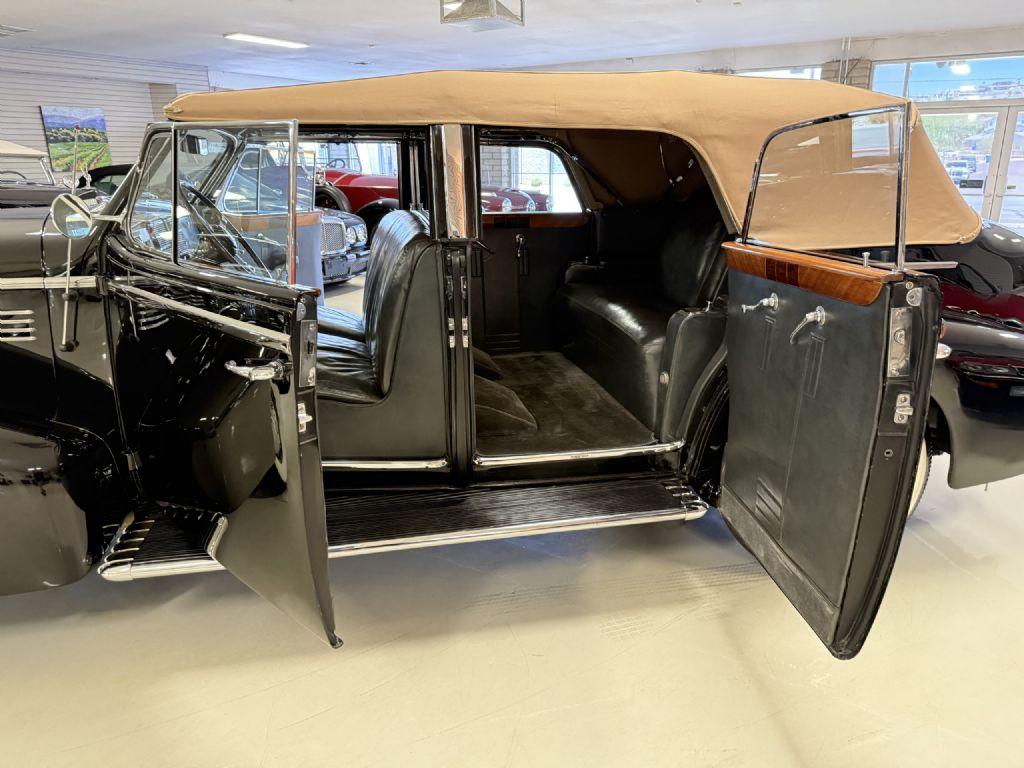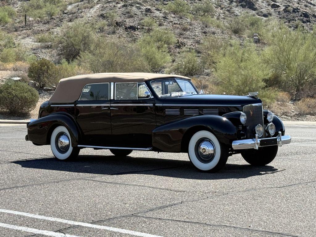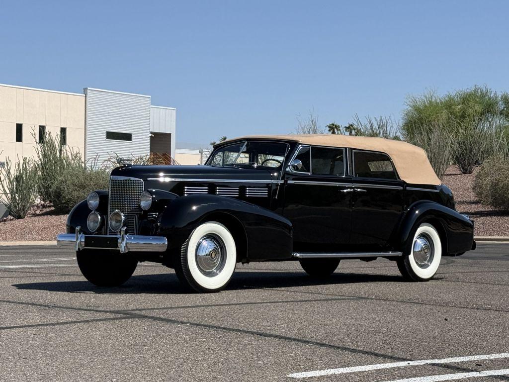PRICE REDUCED! This is a beautiful 1938 Cadillac Series 75 V8 Convertible Sedan with Division that has an incredible provenance and has been restored only as-needed. The restoration services were performed only as needed and the result is a beautiful example that can be shown at most all concours events or enjoyed for touring. During his past ownership, this Cadillac has undergone a refreshening to exacting standards, including a bare metal respray of the original Black paint and a correct replacement of the tan canvas convertible top. The exterior of this Cadillac was refinished in its original Black livery and still appears showroom new. The chrome and brightwork are in excellent condition with only a few minor imperfections. The tan Haartz cloth convertible top was replaced along with the inner lining and a replating of the convertible top frame. It is still in concours condition today. The lack of dual side mounts give a longer appearance and looks great, giving the Cadillac a more commanding presence. The chrome wheel covers are in fine shape and are wrapped with Firestone wide white wall bias ply tires. With the convertible top down, the Cadillac looks more like a sporty phaeton than a convertible sedan. The beautiful Grey leather interior is largely original including the carpeting. The door panels look terrific, save for some wear marks near the footwell and from the utilization of the window cranks. The front seats are comfortable and show little signs of wear given the age of the Cadillac. The rear seat shows well when considering the age and still has a soft and supple cushion. The original interior are examples that this Cadillac has been incredibly well loved and cared for since new. The wood trim looks very nice and really reveals the quality and beauty that Cadillac is known for. The dash and instrumentation are clear and clean. The division operates with a near effortless twist of the handle. Adorning the area around the division window handle are a cigar lighter and a rare Fleetwood clock. The interior accent lighting is functional and bright. Mechanically, this Cadillac is ready for the show field and for long distance touring. The 346 cubic inch V8 offered 135 horsepower when new and provides ample power. The floor mounted three speed manual transmission moves through the gears well and offers a confidence inspiring driving experience. The engine compartment is finely detailed, and the undercarriage is clean and original. For more information and details, please call, text or email Kendi Brown at 1.623.404.9042 or sales@classicpromenade.com. The Series 75 is available for viewing at our Phoenix, AZ showroom. We are pleased to offer FaceTime or WhatsApp live video inspections and we help coordinate shipping worldwide. We also have financing partners if you are interested in financing.