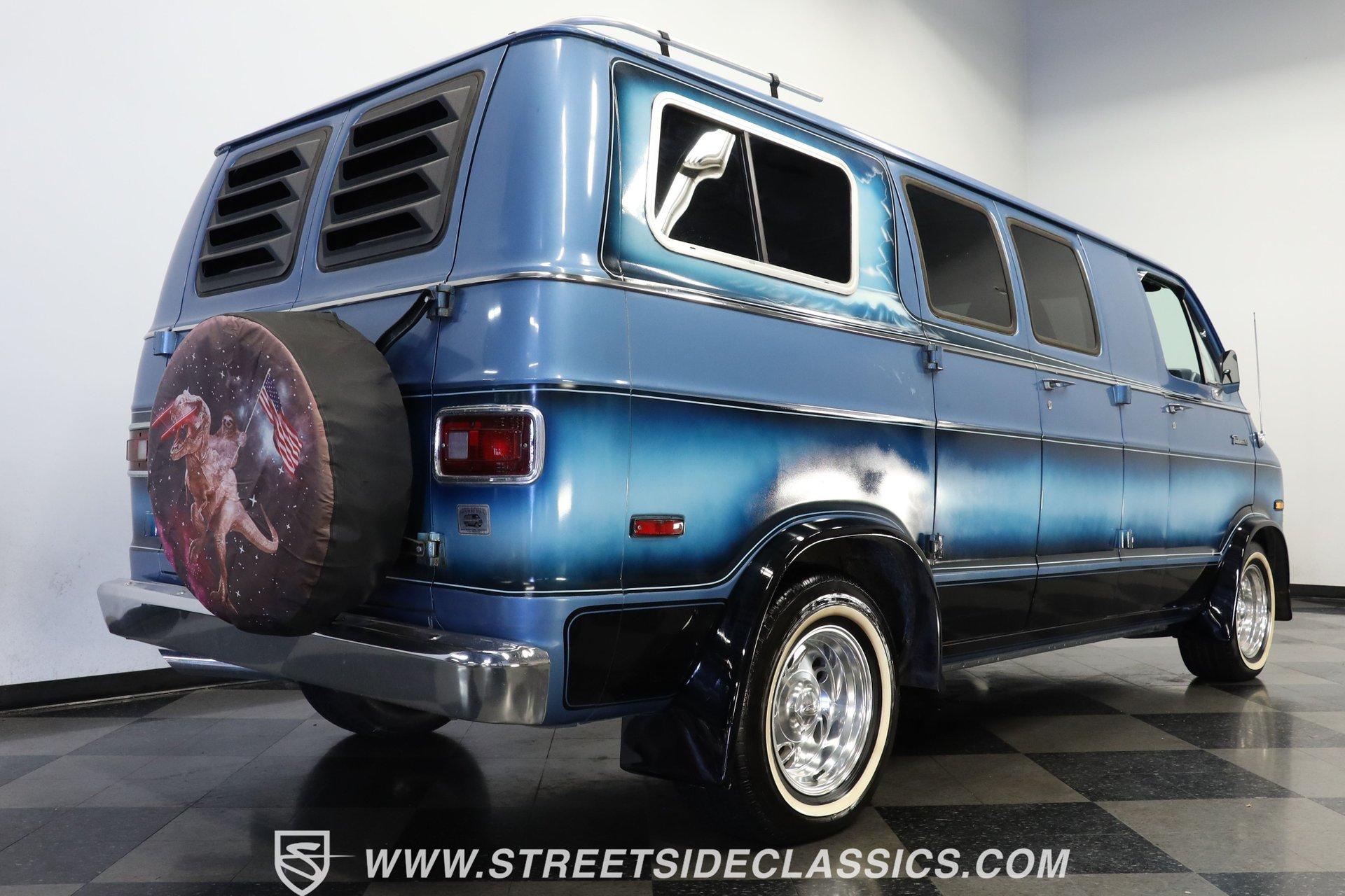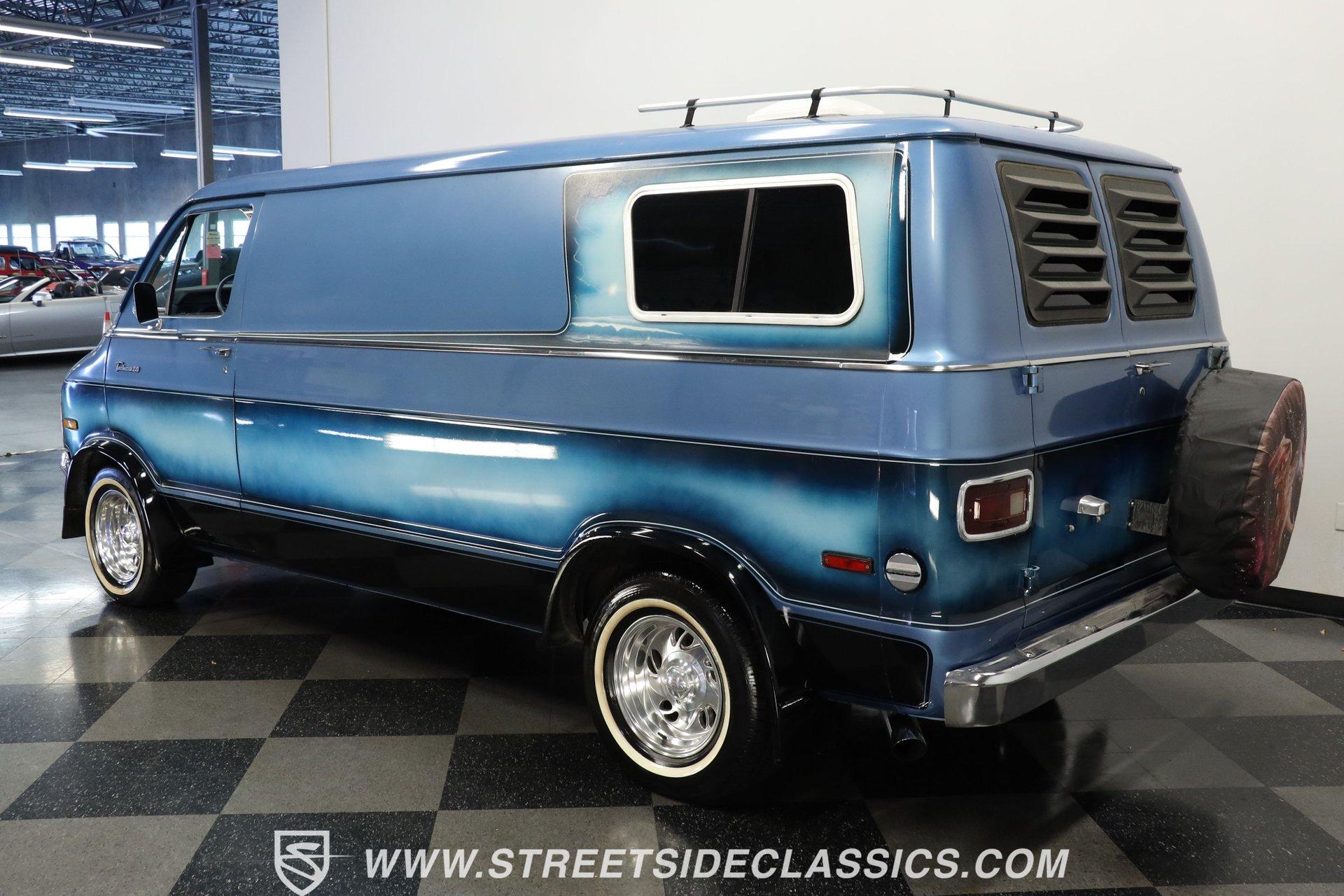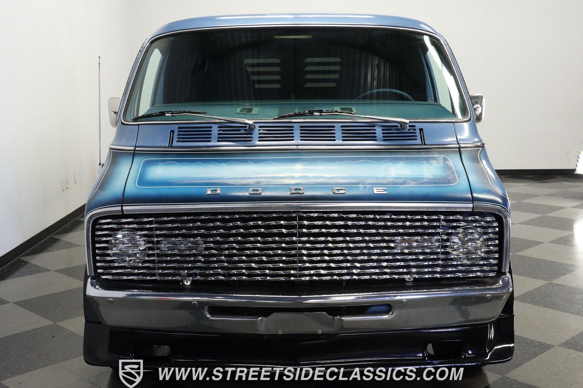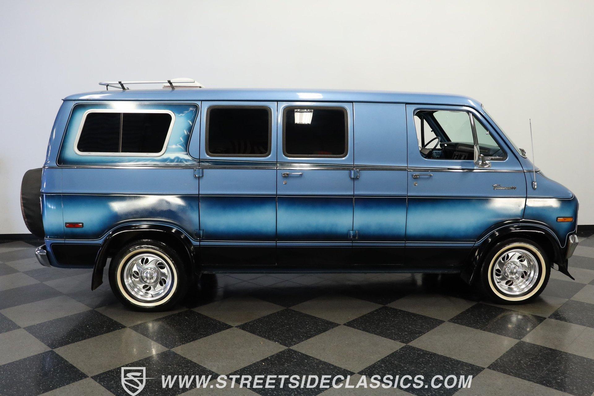 The phrase, "They don't make 'em like that anymore," may be thoroughly overused, but it's an apt observation as far as this 1977 Dodge D200 Van is concerned. After all, when was the last time you saw a well-configured van conversion like this cruising down the road, let alone one that sports such period-correct awesomeness? Add to that its iconic combination of a serene Bali Blue paint scheme that's accented with skillful airbrushing, and any potential sightings become even rarer. And when you factor in that this Dodge has logged fewer than 70,000 miles over its considerable years of service, it becomes a veritable automotive unicorn. That light usage, combined with attentive care, is likely responsible for the strong condition this classic finds itself in today. Not only does its great-looking exterior take you back in time, but its chrome bumpers at both ends present well, and its hood, doors, and fresh air roof hatch all shut solidly. Step inside and you'll likely be impressed by the condition of the interior. Its blue components still retain their nice, deep color, showing only the slightest of wear. There's a pair of vinyl captain chairs up front to provide plenty of comfort during longer journeys, and the dash area features a clean, unwarped pad and a collection of clear gauges. The time-transporting powers of this van aren't limited to its exterior, either. Look around and you'll see tri-color shag carpeting, padded vinyl walls, and an AM/FM stereo that features a working 8-track player, all great examples of mid-'70s style. There's even a wooden side cabinet on board to provide storage, as well as an ice box. The level of functionality here is impressive, too, as the instrument gauges work as intended, and the air conditioning system has been upgraded to R134 refrigerant. There'll be nothing to delay your adventures as soon as you bring this van home. In addition to its iconic appearance, it happens to be a solid driver. Powered by a 318 cubic-inch V8 engine that's paired with a 3-speed automatic TorqueFlite transmission, it starts up with no hesitation, accelerates smoothly, and has a nice, responsive feel to its steering. The engine is also surrounded by hoses and belts that still look fresh, reinforcing the notion that this Dodge has seen proper maintenance over the years. HIGHLIGHTS FEWER THAN 70,000 ACTUAL MILES 318 CUBIC-INCH V8 2-BARREL CARBURETOR 3-SPEED AUTOMATIC TORQUEFLITE TRANSMISSION BALI BLUE EXTERIOR, WITH PAINTED STRIPES BLUE VINYL INTERIOR BUCKET SEATS CENTER CONSOLE POWER STEERING FRONT DISC BRAKES AIR CONDITIONING AM/FM RADIO FEATURES AN 8-TRACK PLAYER OWNER'S MANUAL INCLUDED Wielding the power to transport you back to a simpler time, this 1977 Dodge D200 Van cruises on a set of 15" Eagle Alloy wheels wrapped with whitewall tires that still show plenty of tread. Get your asphalt adventures started. Call today! We can assist you with getting an Extended Vehicle Service Plan from Freedom Warranty, which provides comprehensive coverage that can save thousands of dollars on unexpected repairs. Inquire for more details and pricing!