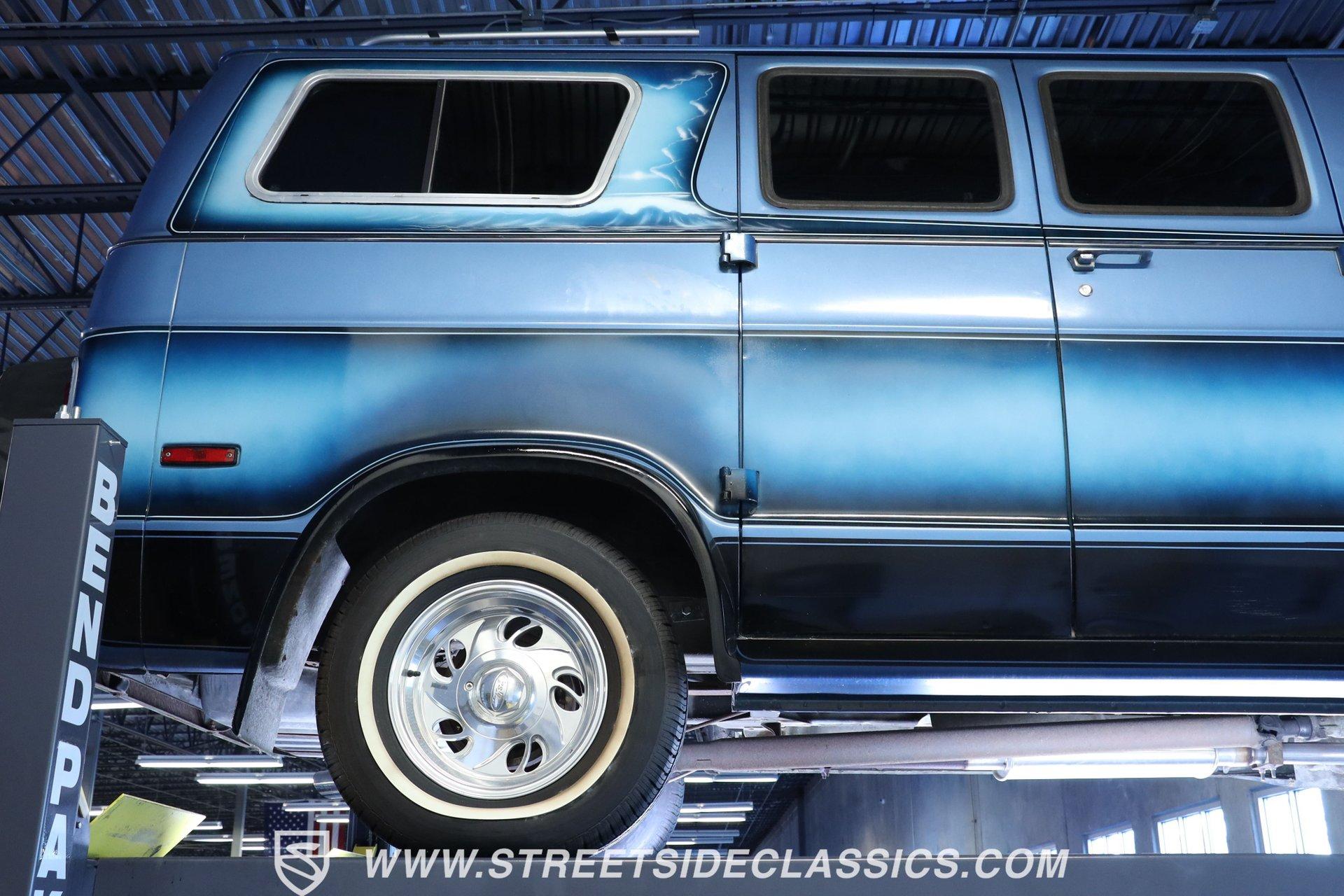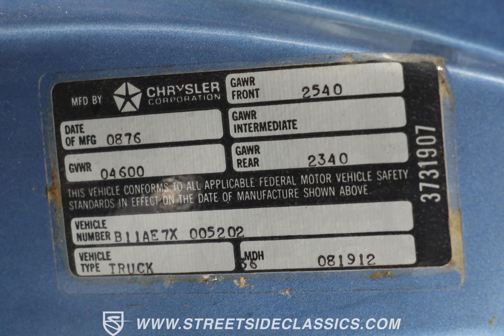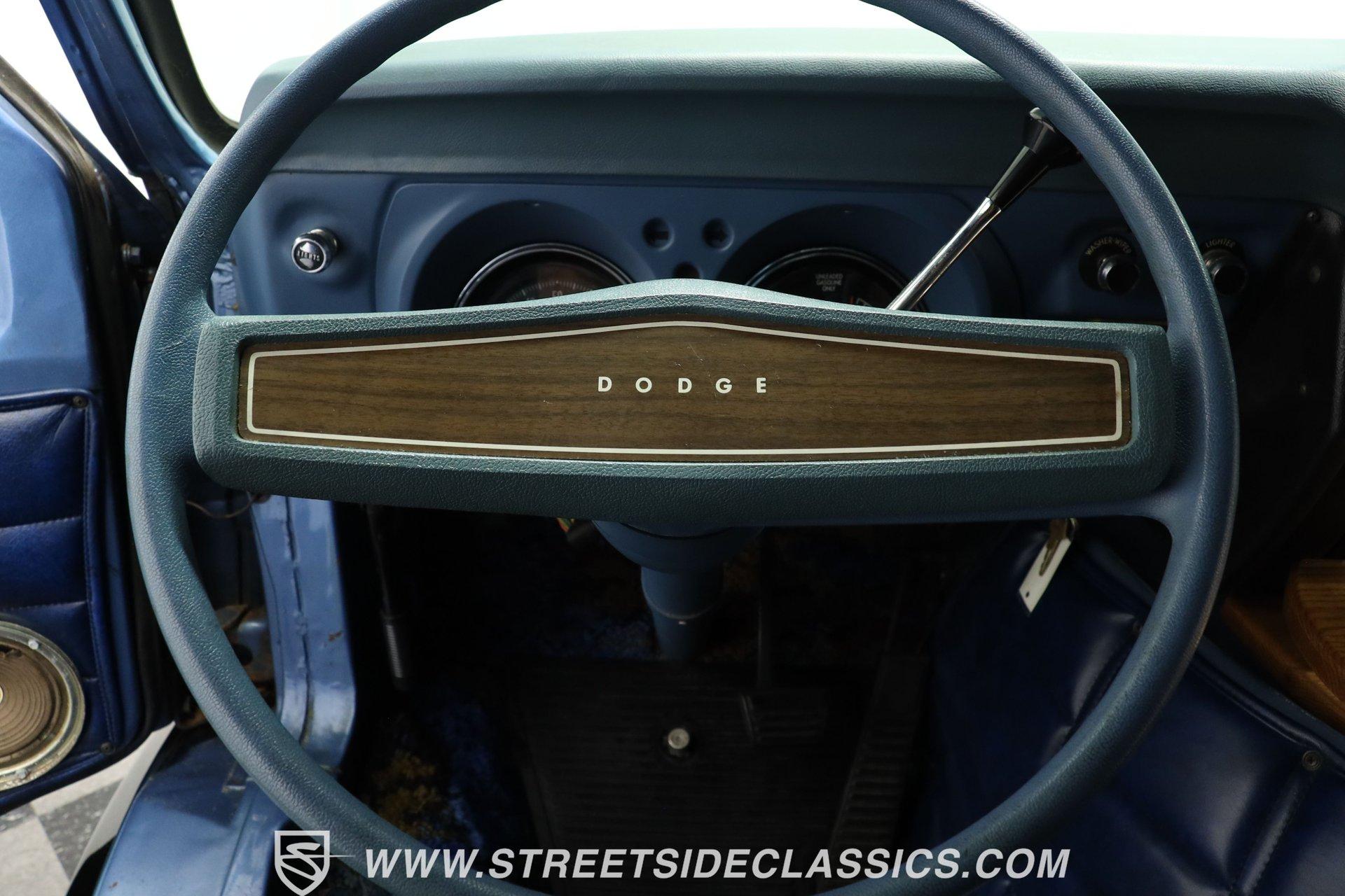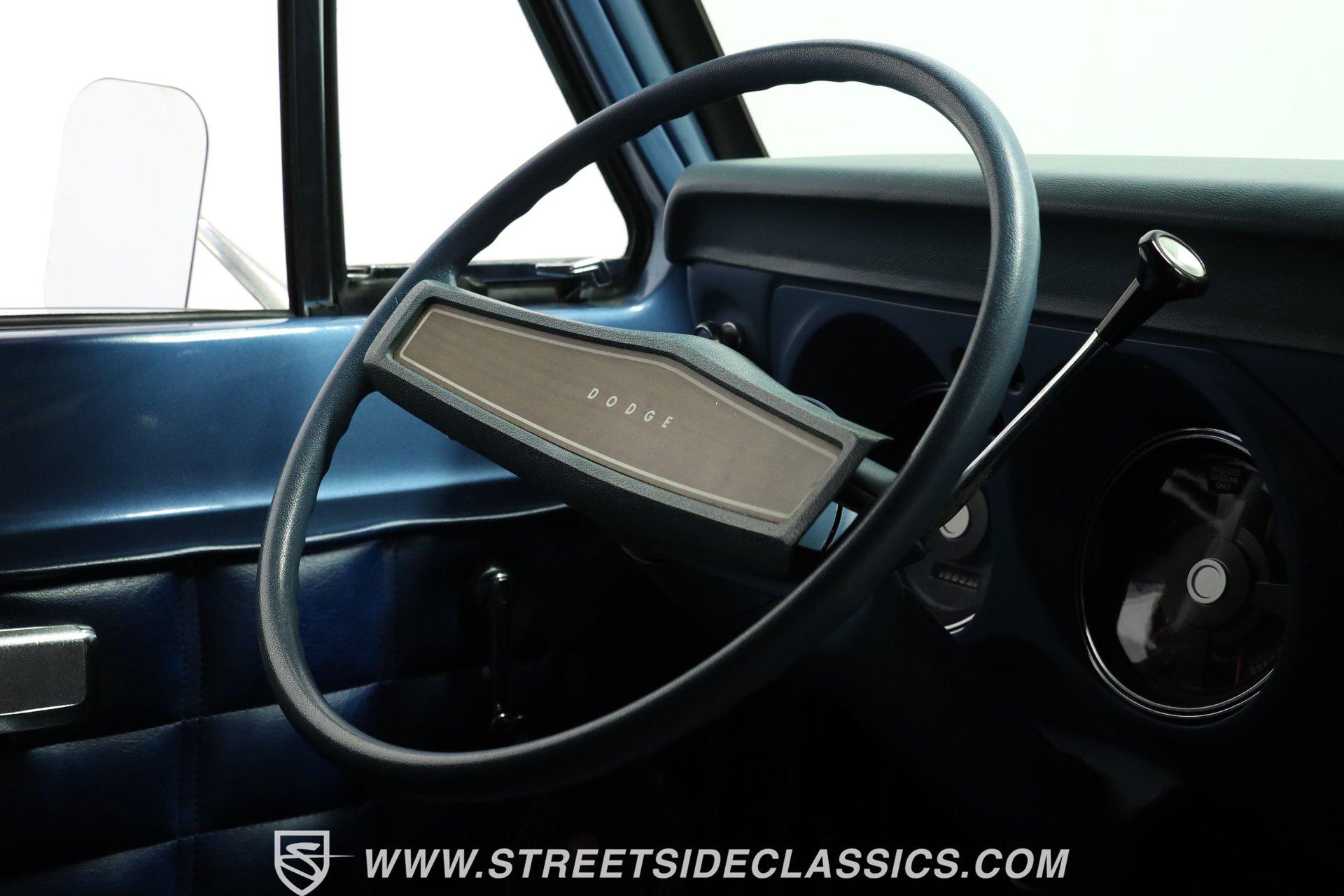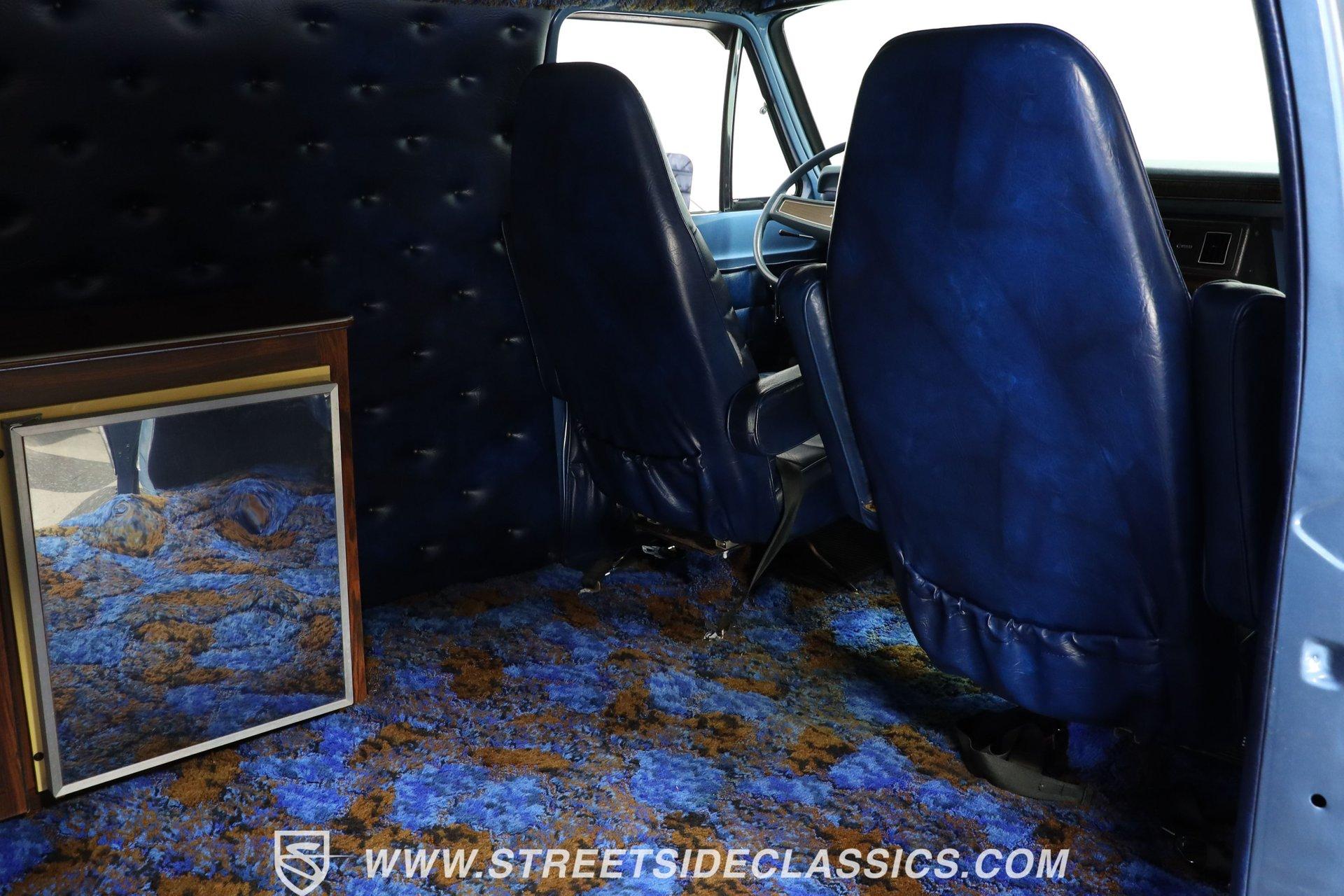 The phrase, "They don't make 'em like that anymore," may be thoroughly overused, but it's an apt observation as far as this 1977 Dodge D200 Van is concerned. After all, when was the last time you saw a well-configured van conversion like this cruising down the road, let alone one that sports such period-correct awesomeness? Add to that its iconic combination of a serene Bali Blue paint scheme that's accented with skillful airbrushing, and any potential sightings become even rarer. And when you factor in that this Dodge has logged fewer than 70,000 miles over its considerable years of service, it becomes a veritable automotive unicorn. That light usage, combined with attentive care, is likely responsible for the strong condition this classic finds itself in today. Not only does its great-looking exterior take you back in time, but its chrome bumpers at both ends present well, and its hood, doors, and fresh air roof hatch all shut solidly. Step inside and you'll likely be impressed by the condition of the interior. Its blue components still retain their nice, deep color, showing only the slightest of wear. There's a pair of vinyl captain chairs up front to provide plenty of comfort during longer journeys, and the dash area features a clean, unwarped pad and a collection of clear gauges. The time-transporting powers of this van aren't limited to its exterior, either. Look around and you'll see tri-color shag carpeting, padded vinyl walls, and an AM/FM stereo that features a working 8-track player, all great examples of mid-'70s style. There's even a wooden side cabinet on board to provide storage, as well as an ice box. The level of functionality here is impressive, too, as the instrument gauges work as intended, and the air conditioning system has been upgraded to R134 refrigerant. There'll be nothing to delay your adventures as soon as you bring this van home. In addition to its iconic appearance, it happens to be a solid driver. Powered by a 318 cubic-inch V8 engine that's paired with a 3-speed automatic TorqueFlite transmission, it starts up with no hesitation, accelerates smoothly, and has a nice, responsive feel to its steering. The engine is also surrounded by hoses and belts that still look fresh, reinforcing the notion that this Dodge has seen proper maintenance over the years. HIGHLIGHTS FEWER THAN 70,000 ACTUAL MILES 318 CUBIC-INCH V8 2-BARREL CARBURETOR 3-SPEED AUTOMATIC TORQUEFLITE TRANSMISSION BALI BLUE EXTERIOR, WITH PAINTED STRIPES BLUE VINYL INTERIOR BUCKET SEATS CENTER CONSOLE POWER STEERING FRONT DISC BRAKES AIR CONDITIONING AM/FM RADIO FEATURES AN 8-TRACK PLAYER OWNER'S MANUAL INCLUDED Wielding the power to transport you back to a simpler time, this 1977 Dodge D200 Van cruises on a set of 15" Eagle Alloy wheels wrapped with whitewall tires that still show plenty of tread. Get your asphalt adventures started. Call today! We can assist you with getting an Extended Vehicle Service Plan from Freedom Warranty, which provides comprehensive coverage that can save thousands of dollars on unexpected repairs. Inquire for more details and pricing!