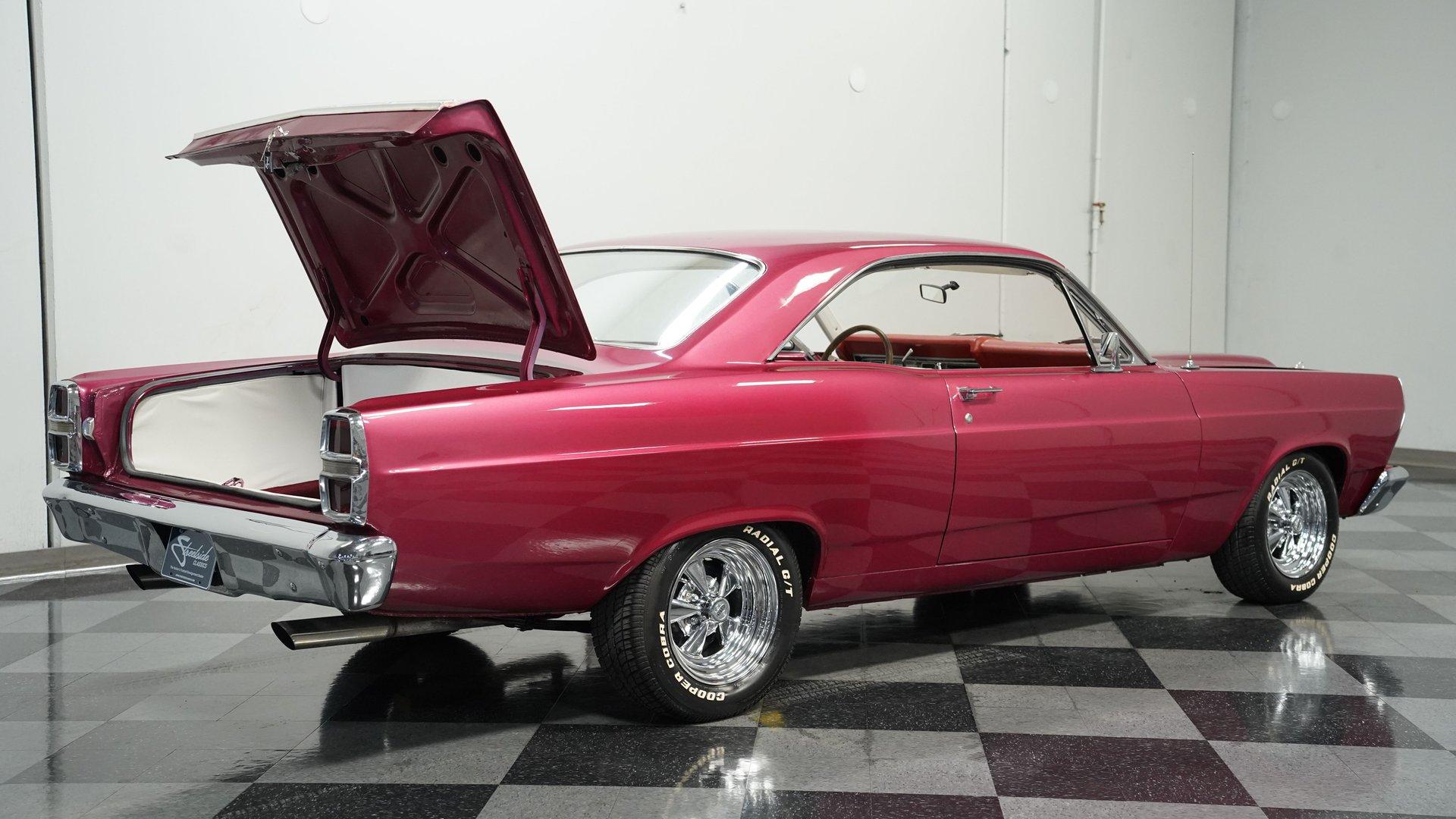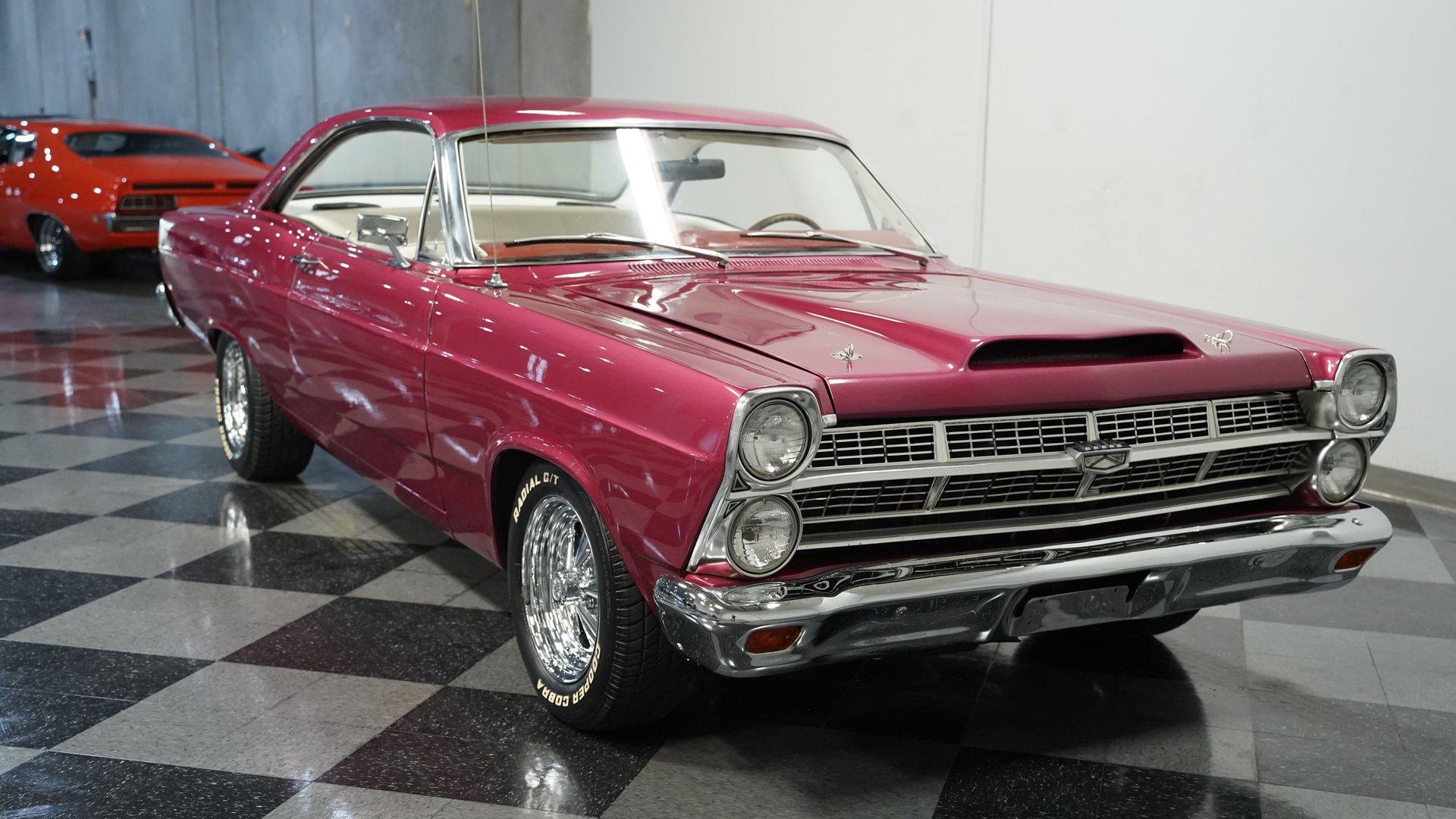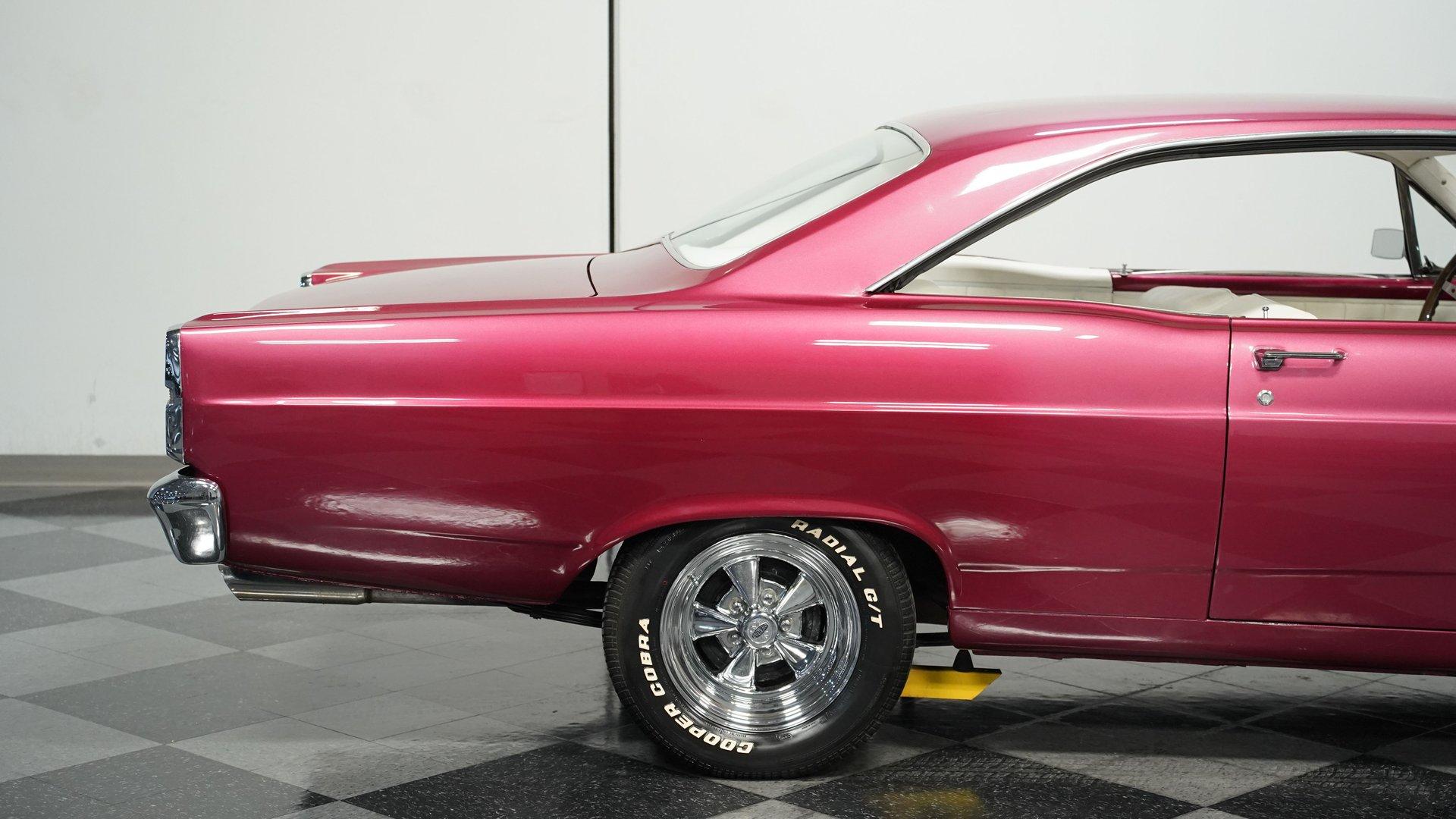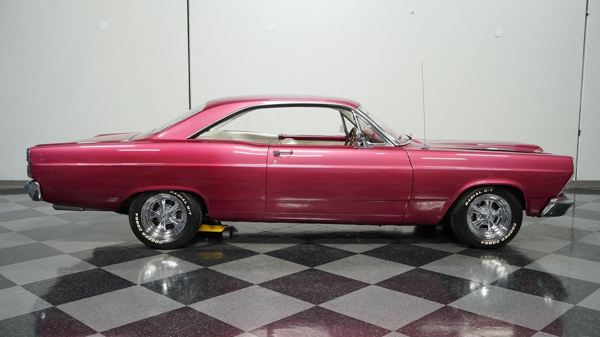 Here is a truly cool-looking 1967 Ford Fairlane 500 muscle car. The Cranberry Red Metallic paint job pairs perfectly with the white interior. It has an awesome stance on a set of classic Cragar Wheels. The chrome front and rear bumper connect well with the rest of the chrome tidbits. The big front grille looks in good shape and locks in great with the 427-style ram air hood. The trunk is custom and amazingly clean with white vinyl padding surrounding the burgundy/red carpet floor. All things considered, this is a straight and solid cruiser for nice days and weekend fun. The interior is very customized and in very good shape. The white vinyl seats and door panels look graceful against the secondary burgundy/red color. The carpets are clean and protected by floor mats. The headliner and dash pad look in real good shape, while the custom Ford woodgrain steering wheel brings that much more character to the interior. The gauges and the gauge cluster appear to be original and easy to see. There are three more aftermarket Summit gauges mounted under the dashboard to help the driver keep an eye on things. For audio entertainment, a Kenwood AM/FM/CD stereo is installed, while heat, defrost, and A/C controls are right below that. The engine bay looks quite organized. It's stuffed with all kinds of goodies like MSD ignition, aluminum radiator, an Optimal red top battery, and Cobra valve and air cleaner covers. The heart of this bad boy is a 428 cubic-inch V8 engine. Helping this engine reach its potential are Edelbrock Performer aluminum heads, a performance intake, and an MSD fuel injection. A 3-speed automatic transmission sends power back to a 9-inch Ford rear-end. For suspension, the Fairlane uses coil springs with shocks in the front, and the rear gets traction bars with leaf springs and shocks. 15-inch Cragar wheels are planted at all four corners and are wrapped in 215/65R15 front tires and 235/60R15 rear tires. Taking on stopping duties are front disc brakes and rear drum brakes, while dual exhaust and aftermarket mufflers take care of that muscle car sound. Highlights: 428 Cubic-Inch V8 Engine Edelbrock Aluminum Heads MSD Ignition MSD Fuel Injection Aluminum Radiator Optimal Red Top Battery 3-Speed Automatic Transmission 9-Inch Ford Rear End Coil Springs With Shocks Traction Bars With Leaf Springs And Shocks 15-Inch Cargar Wheels Front 215/65R15-Rear 235/60R15 Tires Front Disc Brakes-Rear Drums Power Steering Tilt Steering Wheel Heat/Defrost/AC Kenwood AM/FM/CD Aftermarket Summit Gauges For a fun cruising muscle car, this 1967 Ford Fairlane 500 has all the essentials-a comfortable custom interior, a great paint job, and a big engine. With those sweet chrome Cragars, you're sure to turn heads at the local car shows and cruises. Call Today!