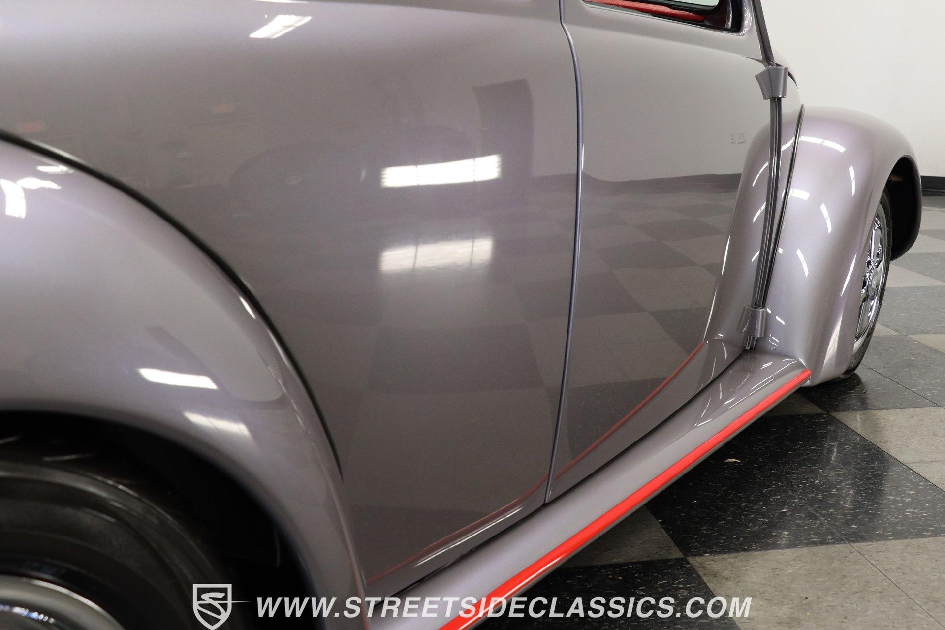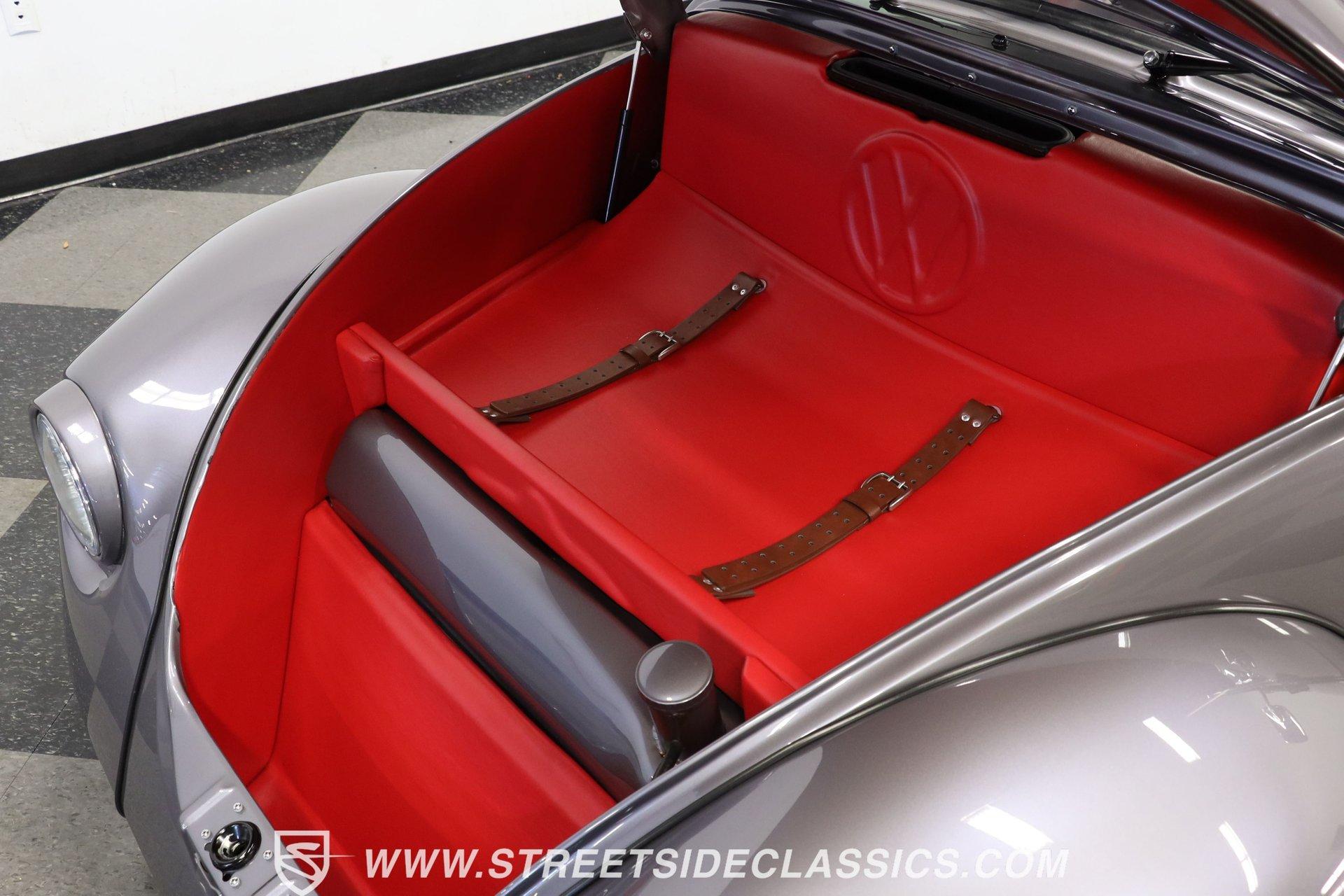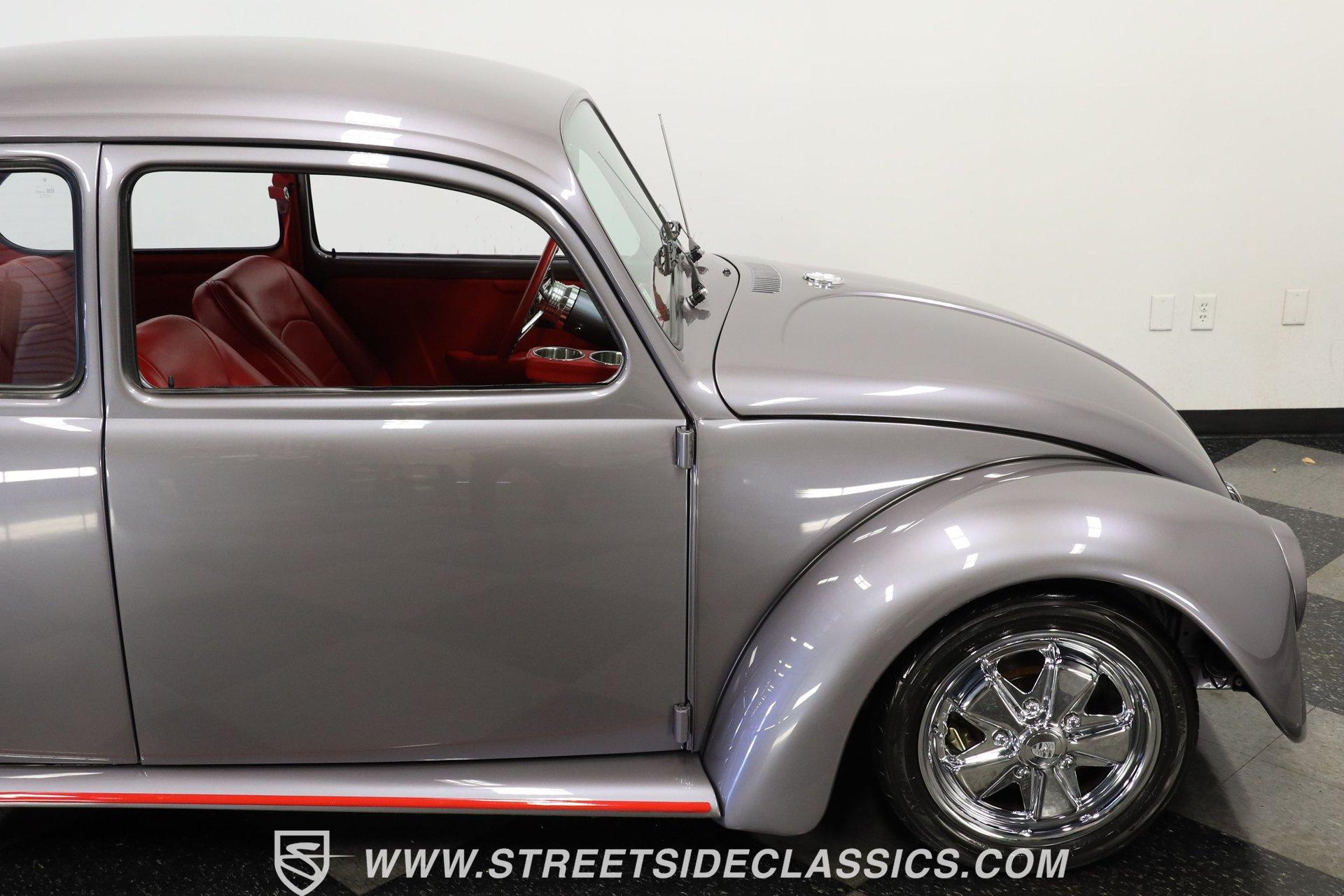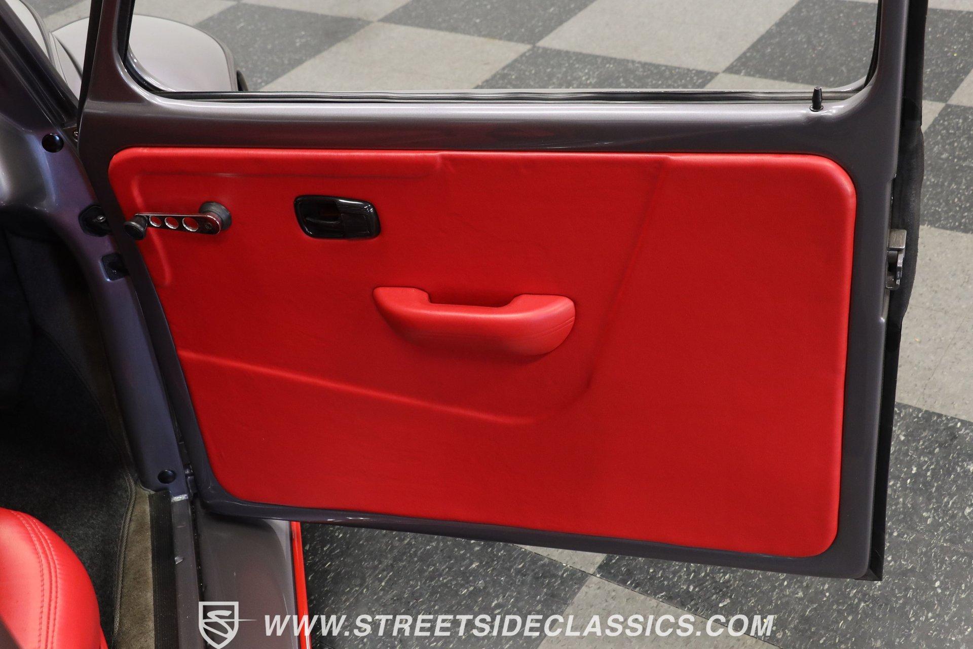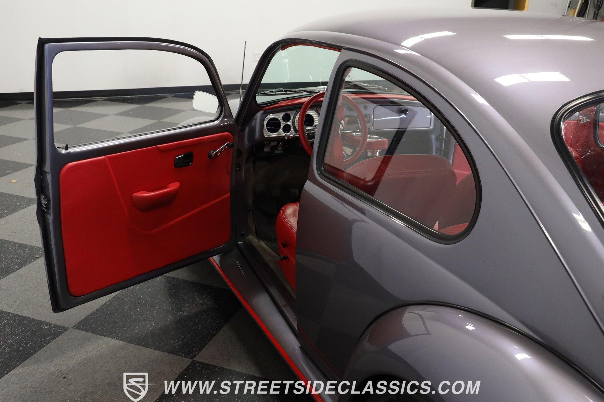 Few cars ever made can elicit such an immediate reaction as this 1973 Volkswagen Beetle. Fully repainted in this captivating Cosmic Quartz, this Bug features custom bodywork, including bumper delete panels, upgraded headlights, shaved door handles, custom taillights, and a custom rear decklid. Inside, the custom theme continues, with a spectacular red interior highlighted by a pair of Ultraleather bucket seats. A dual cupholder extends out from the bodycolor dashboard, while a custom six-spoke steering wheel sits just ahead of a trick Dakota Digital gauge cluster. A Pioneer AM/FM/CD head unit handles soundtrack duties, while an Ididit tilt wheel and remote door openers, along with a big, carpeted frunk, offer a good combination of practicality and convenience. Prop up the rear engine cover, and we find a clean engine compartment featuring an upgraded 1776 CC "big bore' horizontally-opposed air-cooled four-cylinder engine. A single-barrel carburetor feeds this flat-four, while a custom shorty header expels spent gases. That power is then channeled through a traditional four-speed manual transmission before it is transmitted through the VW transaxle and onto the rear wheels. HIGHLIGHTS: 1664 Miles Since Built Custom Body Work Bumper Delete Panels Upgraded Headlights Shaved Door Handles Custom Taillights Custom Rear Decklid Remote Door Openers Cosmic Quartz Repaint 1776 CC Flat Four Custom Shorty Header Dual Exhaust Four Speed Manual Haywire Wiring Harness Porsche Replica Rims Custom Suspension Disc Brakes Ultraleather Bucket Seats Dakota Digital Gauges Pioneer Head Unit Tilt Wheel Equipped with a custom suspension featuring narrowed and dropped front beam/spindles and lower rear perches, this 1973 Volkswagen Beetle rides on 15-inch "Empi" Porsche replica wheels, which hide a set of disc brakes at both the front and rear. Owning a Volkswagen Beetle also comes with a plethora of instantaneous smiles and waves from onlookers and passersby. If you want a cool custom version of this iconic Bug, don't wait another minute. Call today! We can assist you with getting an Extended Vehicle Service Plan from Freedom Warranty, which provides comprehensive coverage that can save thousands of dollars on unexpected repairs. Inquire for more details and pricing!