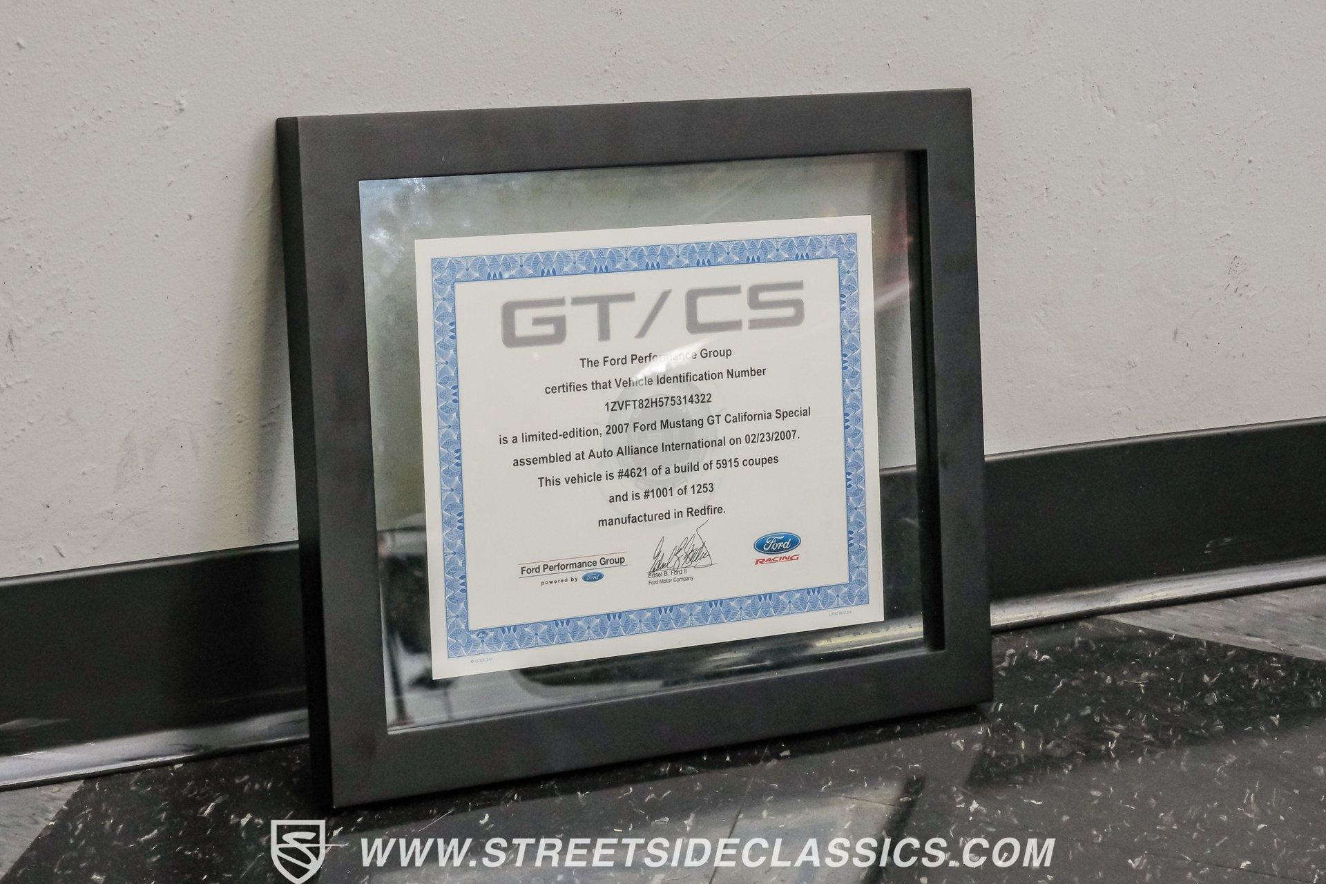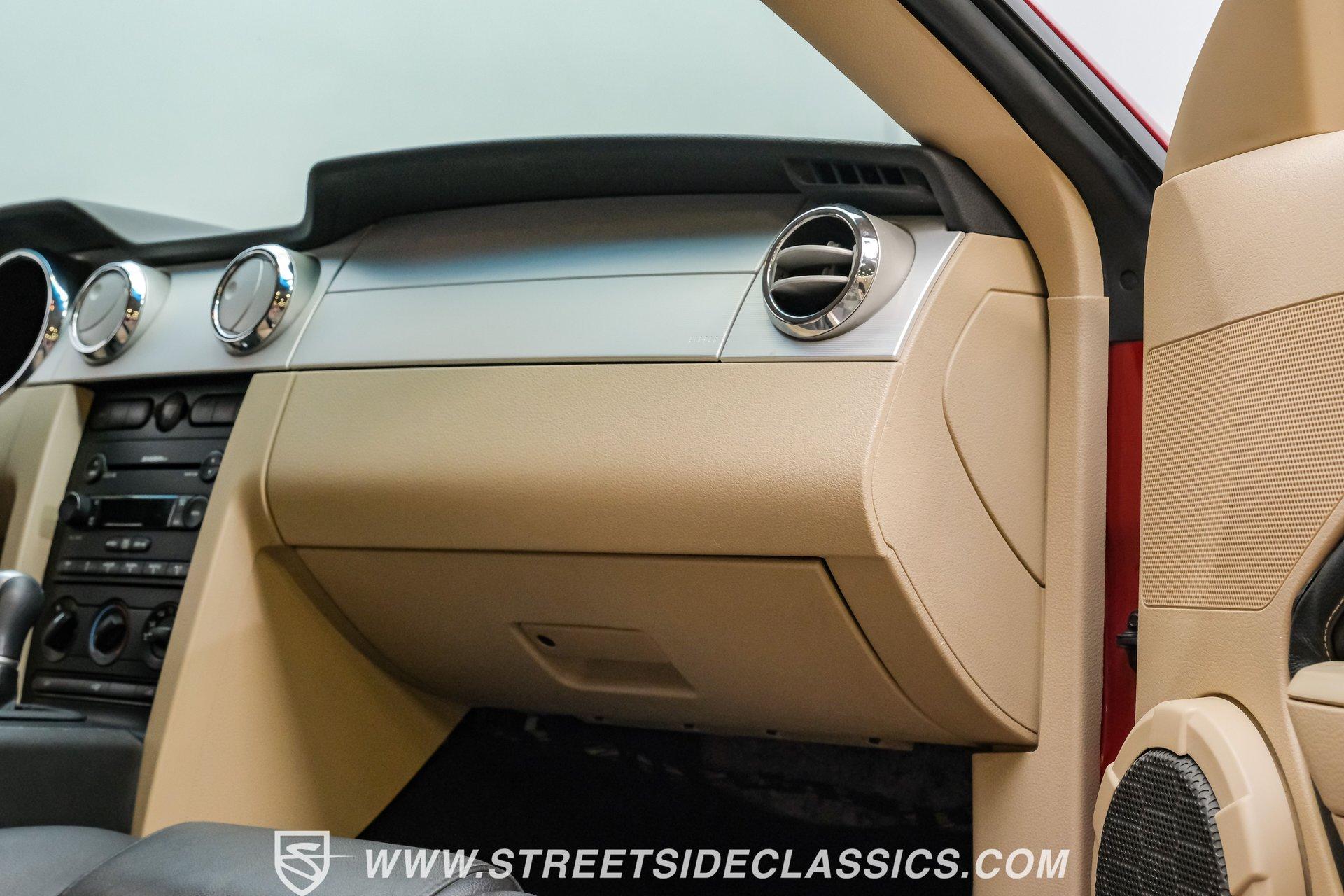 This 2007 Ford Mustang GT/CS in Fire Red with black side stripes is a tantalizing blend of modern muscle and classic style. The iconic Mustang silhouette is enhanced by a hood scoop, front air dam, and side scoops. The factory 18" polished wheels wrapped in quality Continental Control Contact tires provide a confident stance, while the dual exhaust tips hint at the performance potential lurking within. Slip inside and you'll find a parchment and black leather interior that's as comfortable as it is stylish. Luxury and comfort amenities include power windows, power door locks, power drivers seat, cruise control, air conditioning and factory Shaker sound system with 6-CD changer. From the cup holders to the footwells, this Mustang's interior is a well-preserved time capsule of mid-2000s cool. Under the hood, the 4.6L V8 engine is the star of the show, sending its power to the rear wheels through a slick-shifting 5-speed manual transmission. A performance computer chip and an Airaid cold air intake helps this pony breathe deep, while power steering and 4-wheel disc brakes provide confident control. The MacPherson strut front and coil spring rear suspension, aided by sway bars at both ends, strikes a perfect balance between sporty handling and a smooth ride. And when you want to let this Mustang really run free, the Magnaflow equipped exhaust unleashes a soundtrack that's pure American muscle. HIGHLIGHTS: 4.6L V8 Engine 5-Speed Manual Transmission Airaid Cold Air Intake Performance Computer Chip 18" Factory Polished Wheels Hood Scoop Mangaflow Mufflers Front Air Dam Side Scoops Black and Parchment Leather Bucket Seats w/ Console Short Throw Shifter Shaker AM/FM 6-CD Changer Stereo Fire Red Paint Sequential Tail Lights Owner's Manual This 2007 Ford Mustang GT/CS offers the best of both worlds - modern convenience and classic Mustang cool. Don't miss your chance to put this pony in your stable. Call today!
