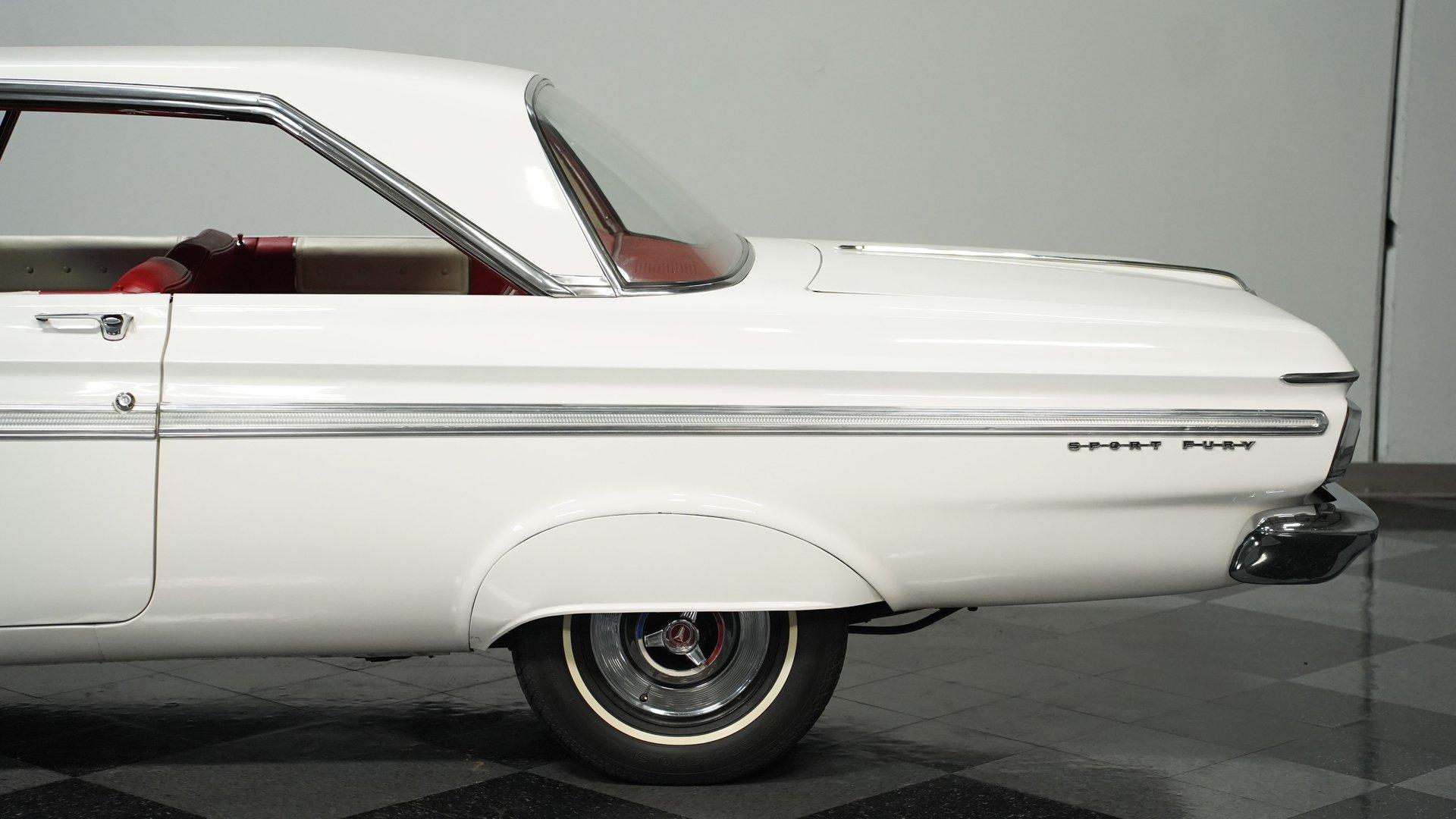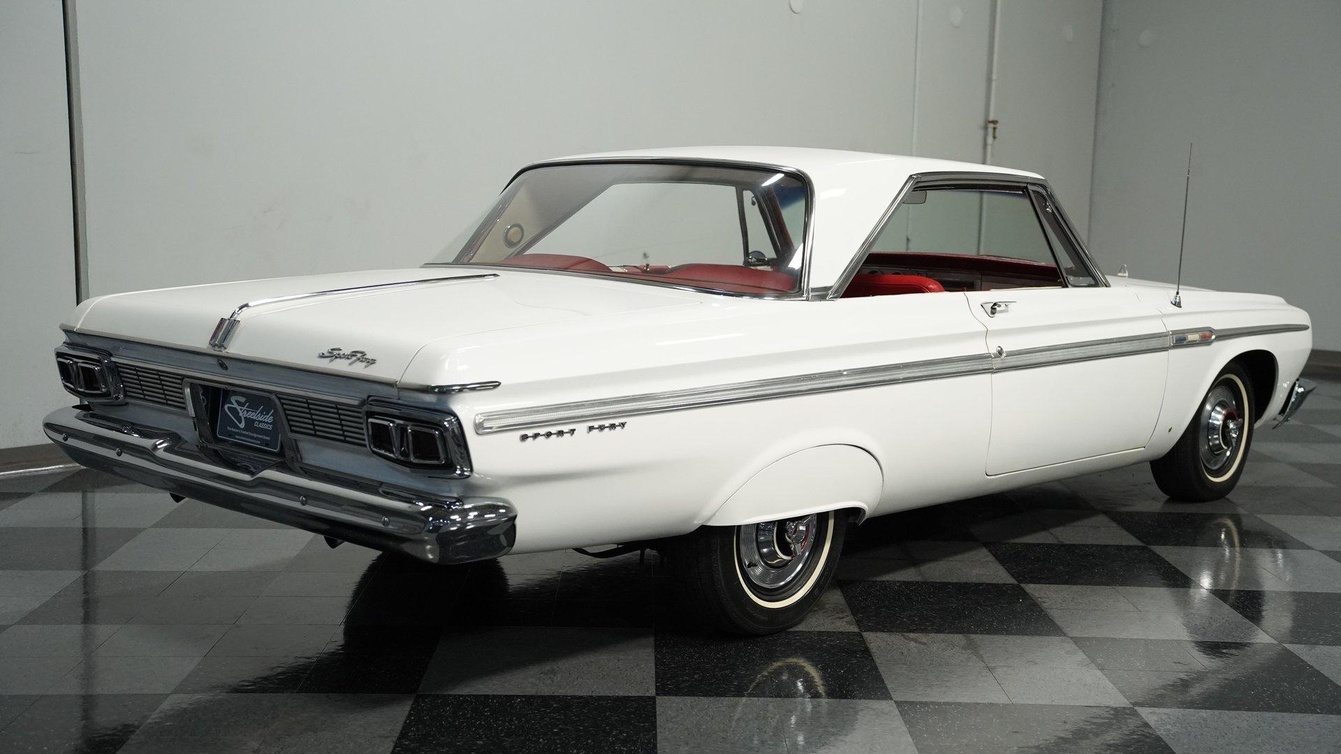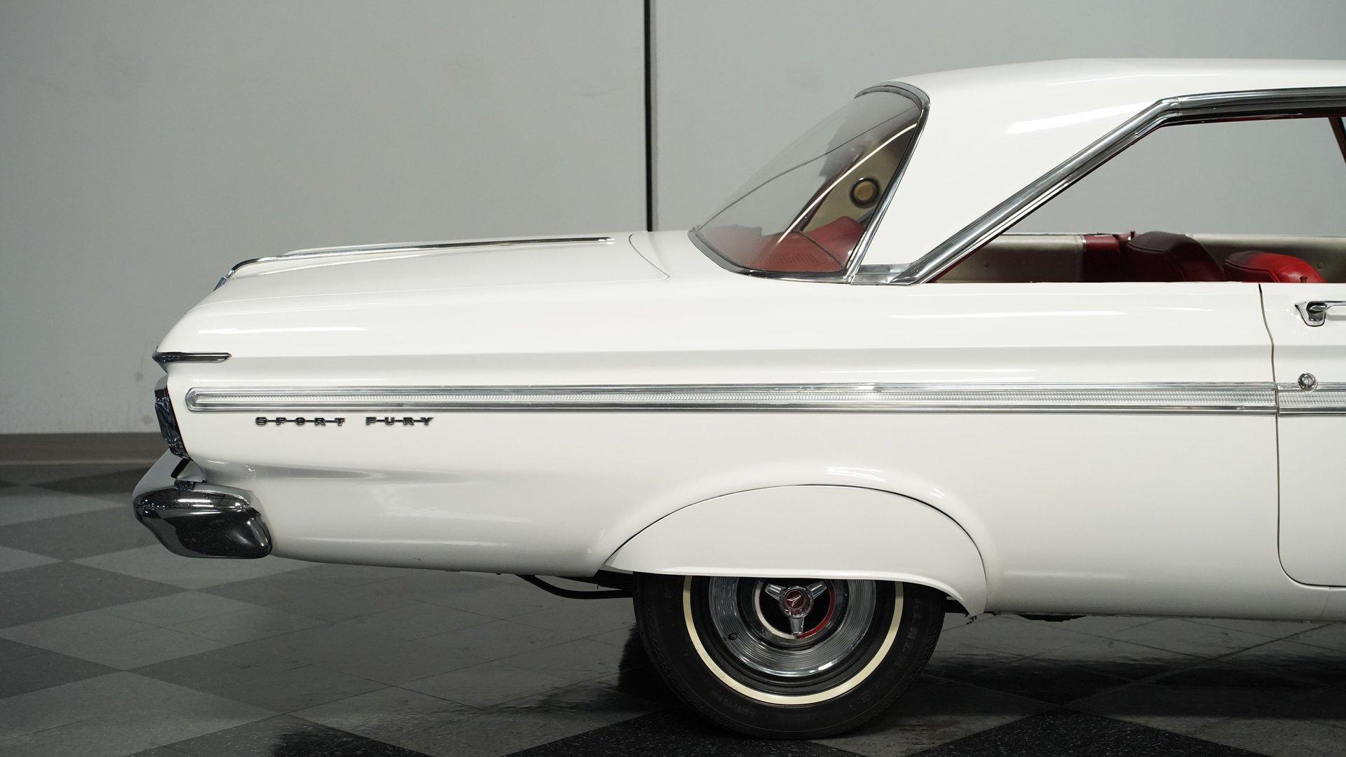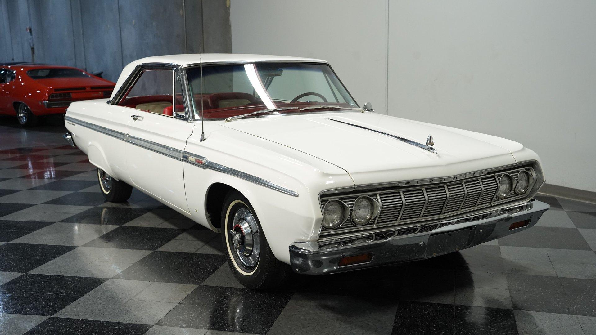It's nice to see a stock appearing older Mopar like this 1964 Plymouth Sport Fury still looking good. The Bright White paint holds up well when paired with the bright chrome bumpers, shiny trim, and hard-to-find OEM hubcaps. Both the front grille and rear taillight housing are in good shape, and the rear wheel skirt covers are little add-on pieces that make a big difference for a higher-class look. The body is solid from the fenders to the quarter panels-up to the roof, hood, and deck lid. Underneath is just as solid, making this a well-put-together classic muscle car. The interior is in just as good shape as the exterior, with red front vinyl bucket seats featuring white inserts, and rear bench seating for two or three people if needed. The stock-appearing center console is mostly red with a beautiful, shiny metal floor shifter assembly. The steering wheel appears to be stock and in great shape, as does the gauge cluster, and the gauges in it, which show very well. Off to the right are the climate controls, and further over sits the radio. All in all, the dashboard looks excellent, and so do the door panels, which follow the same good-looking pattern as the seats. Door jambs, door sills, carpet, and headliner are all clean and free of damage. Under the hood is what's believed to be the original 383 cubic-inch V8 engine with a Weber carburetor. This engine pairs with a 345 Torqueflite 3-speed automatic transmission that sends power to an 8 ¾ factory Sure-Grip rear axle with 3.23 gears. The front suspension features A-arms with shocks, while the rear uses leaf springs with shocks. Keeping the classic moving smoothly are 14-inch wheels with OEM Mopar hubcaps and 205/75R14 tires front and rear. Drum brakes are located at all four corners, while a stock dual exhaust system with an aftermarket muffler keeps this Mopar sounding right. Highlights: 383 Cubic-Inch Engine With Weber Carburetor (Believed To Be Original) 345 Torqueflite 3-Speed Automatic Transmission 8 ¾ Factory Sure-Grip Rear Axle With 3.23 Rear Gears Front A-Arms With Shocks Rear Leaf Springs With Shocks Dual Exhaust/Aftermarket Mufflers Power Steering AM/FM Radio Heat/Defrost Sport Fury Floor Mats Spare Tire In Trunk Serviced Manuals What a white beauty this 1964 Plymouth Sport Fury is. It looks smooth when cruising and just as good sitting at a car show-it's one good-looking classic. If you want an easy cruiser that looks and sounds much like it did when it rolled off the assembly line, this car's for you. Call Today.