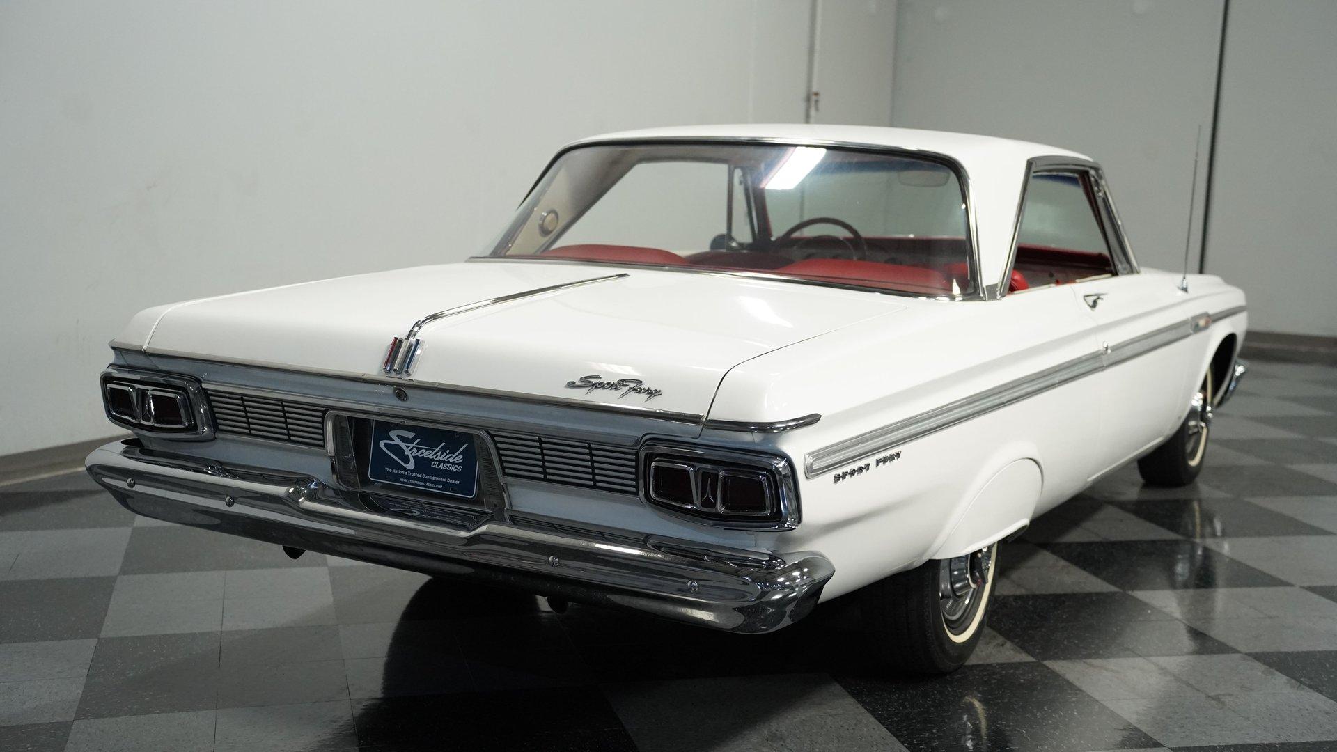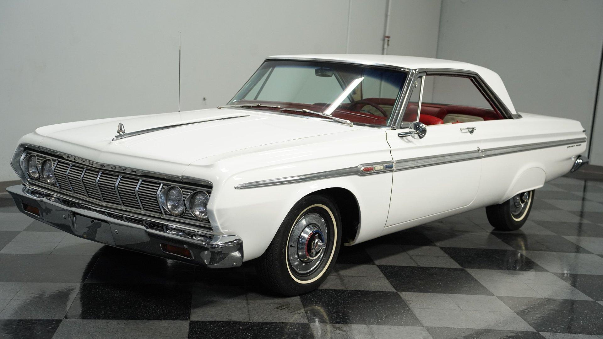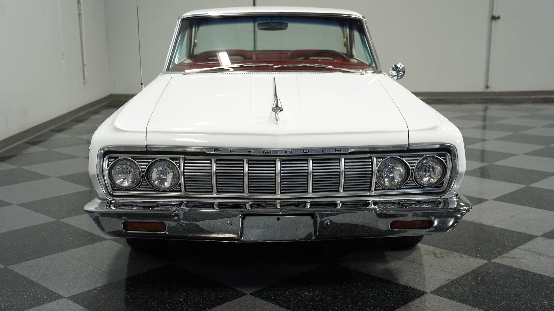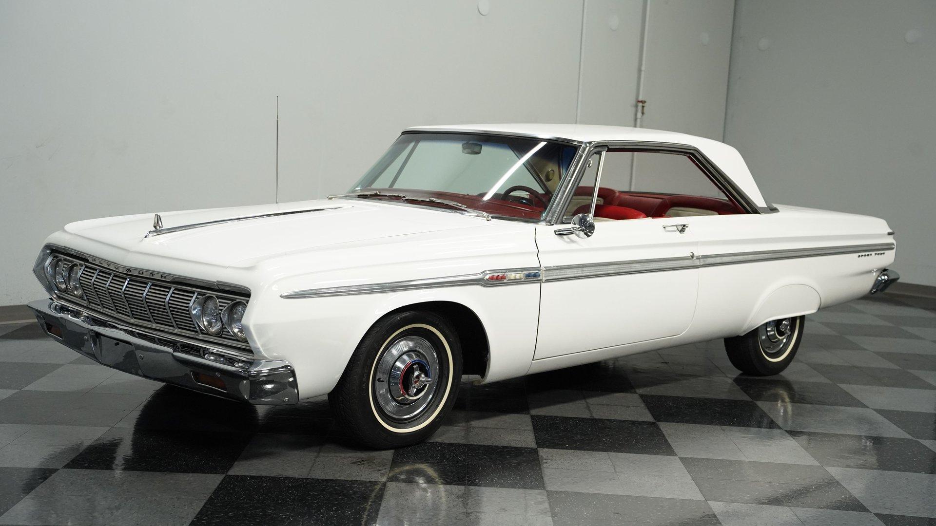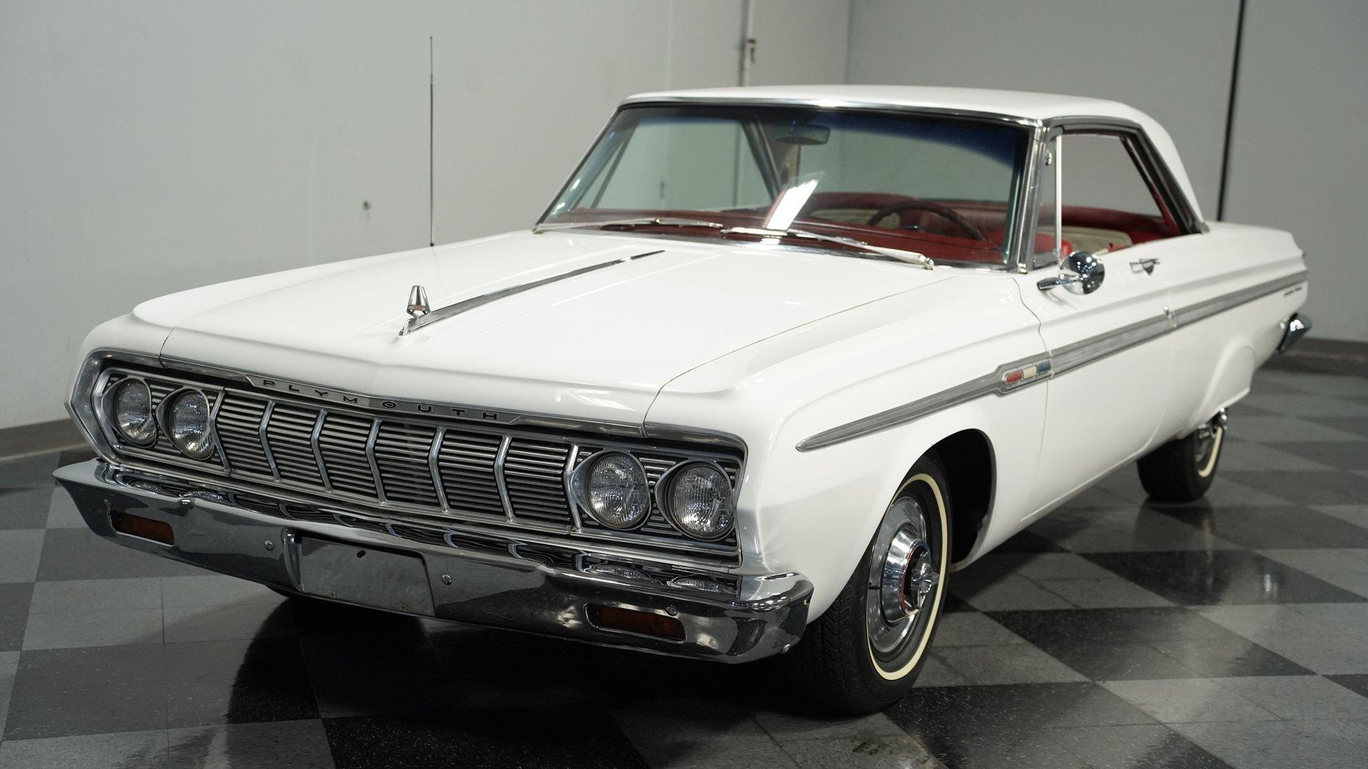 It's nice to see a stock appearing older Mopar like this 1964 Plymouth Sport Fury still looking good. The Bright White paint holds up well when paired with the bright chrome bumpers, shiny trim, and hard-to-find OEM hubcaps. Both the front grille and rear taillight housing are in good shape, and the rear wheel skirt covers are little add-on pieces that make a big difference for a higher-class look. The body is solid from the fenders to the quarter panels-up to the roof, hood, and deck lid. Underneath is just as solid, making this a well-put-together classic muscle car. The interior is in just as good shape as the exterior, with red front vinyl bucket seats featuring white inserts, and rear bench seating for two or three people if needed. The stock-appearing center console is mostly red with a beautiful, shiny metal floor shifter assembly. The steering wheel appears to be stock and in great shape, as does the gauge cluster, and the gauges in it, which show very well. Off to the right are the climate controls, and further over sits the radio. All in all, the dashboard looks excellent, and so do the door panels, which follow the same good-looking pattern as the seats. Door jambs, door sills, carpet, and headliner are all clean and free of damage. Under the hood is what's believed to be the original 383 cubic-inch V8 engine with a Weber carburetor. This engine pairs with a 345 Torqueflite 3-speed automatic transmission that sends power to an 8 ¾ factory Sure-Grip rear axle with 3.23 gears. The front suspension features A-arms with shocks, while the rear uses leaf springs with shocks. Keeping the classic moving smoothly are 14-inch wheels with OEM Mopar hubcaps and 205/75R14 tires front and rear. Drum brakes are located at all four corners, while a stock dual exhaust system with an aftermarket muffler keeps this Mopar sounding right. Highlights: 383 Cubic-Inch Engine With Weber Carburetor (Believed To Be Original) 345 Torqueflite 3-Speed Automatic Transmission 8 ¾ Factory Sure-Grip Rear Axle With 3.23 Rear Gears Front A-Arms With Shocks Rear Leaf Springs With Shocks Dual Exhaust/Aftermarket Mufflers Power Steering AM/FM Radio Heat/Defrost Sport Fury Floor Mats Spare Tire In Trunk Serviced Manuals What a white beauty this 1964 Plymouth Sport Fury is. It looks smooth when cruising and just as good sitting at a car show-it's one good-looking classic. If you want an easy cruiser that looks and sounds much like it did when it rolled off the assembly line, this car's for you. Call Today.