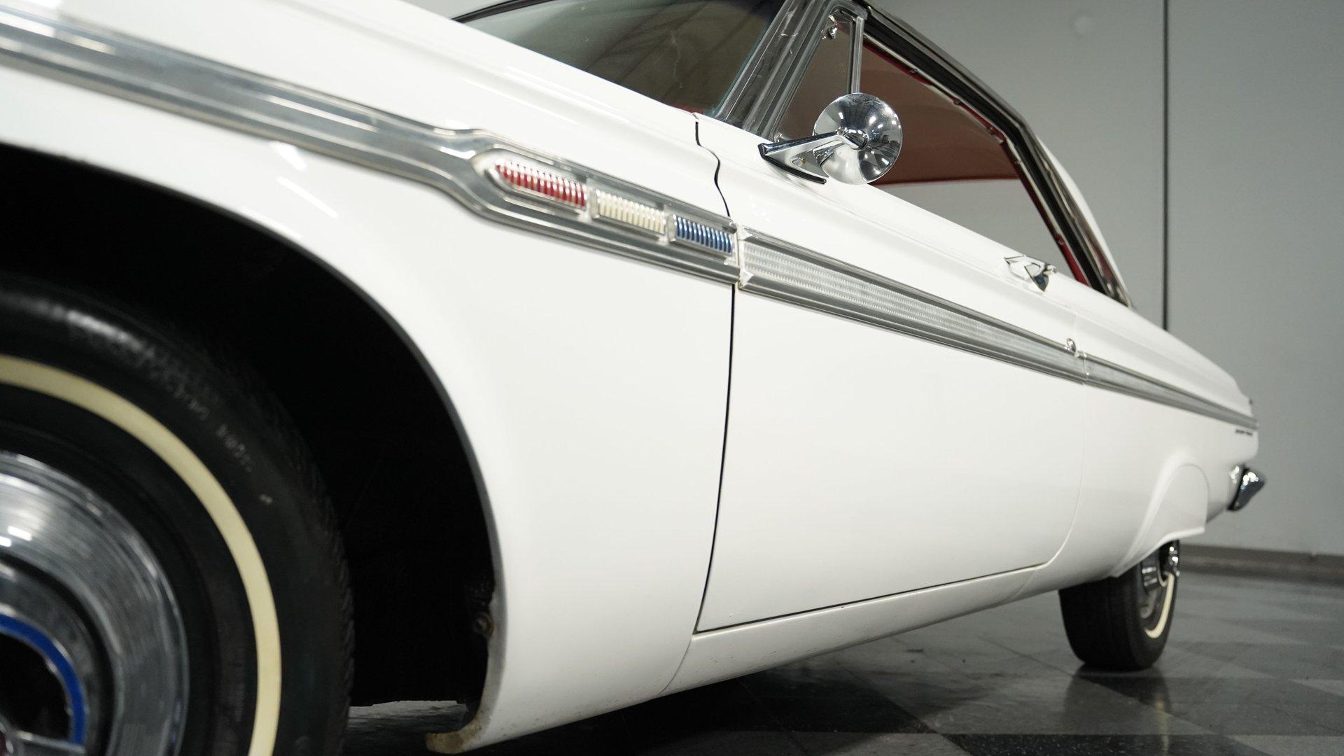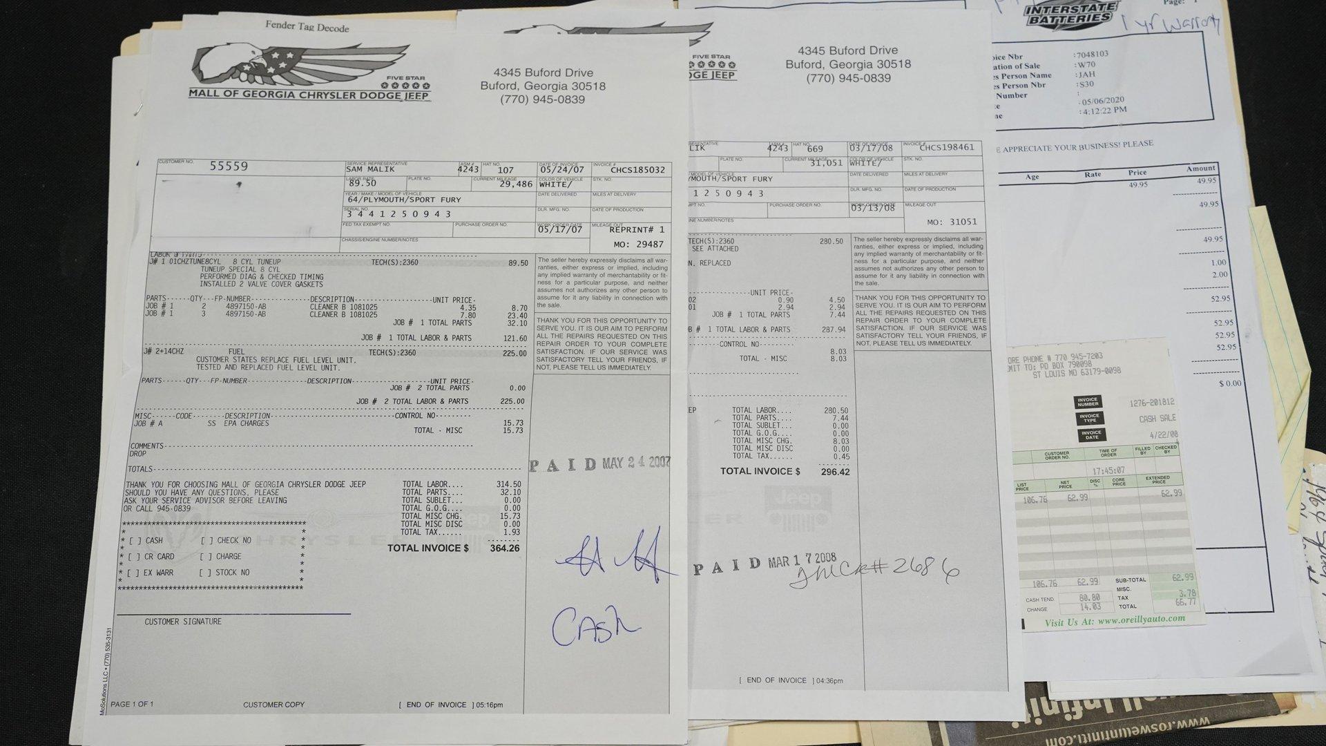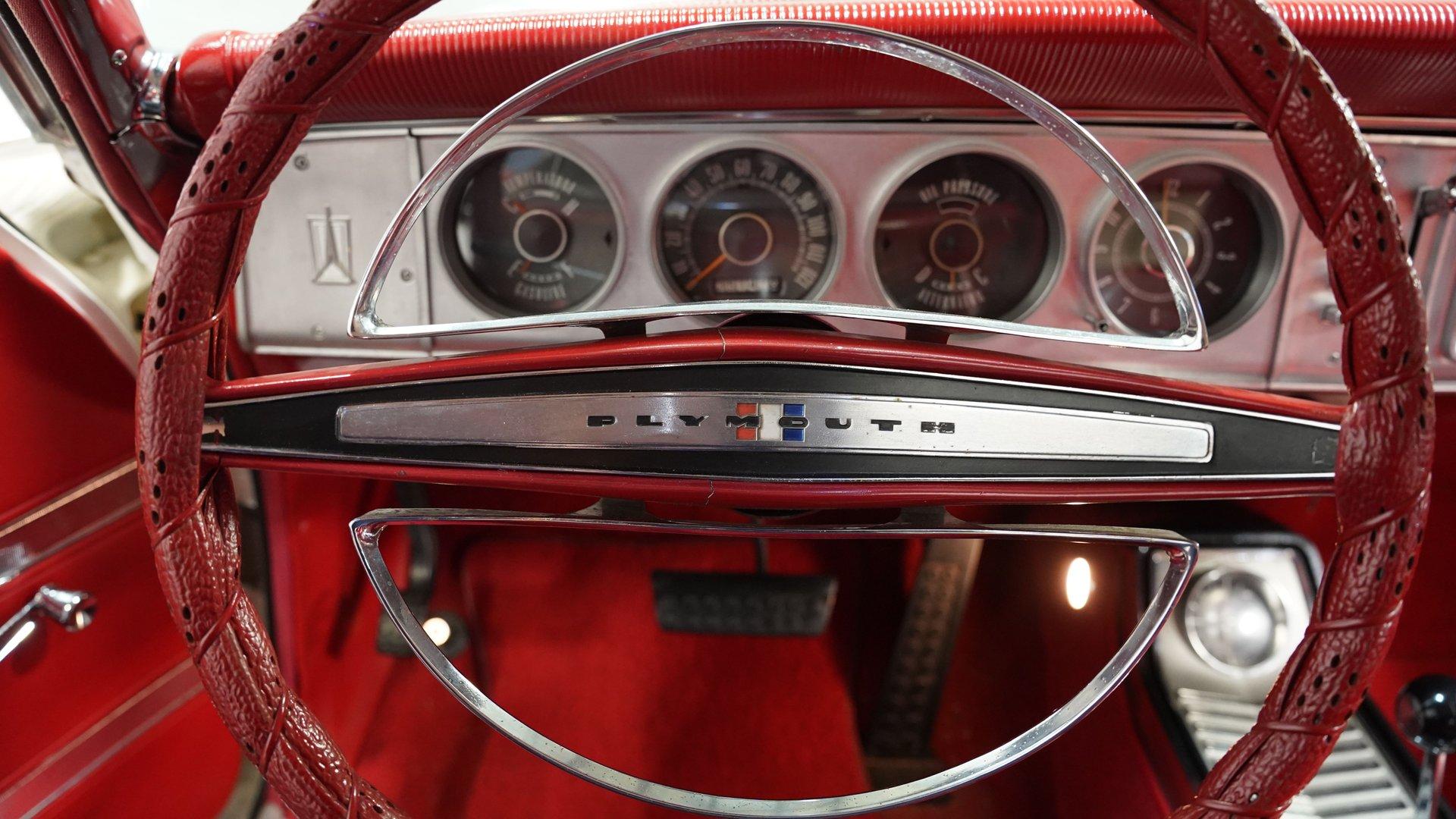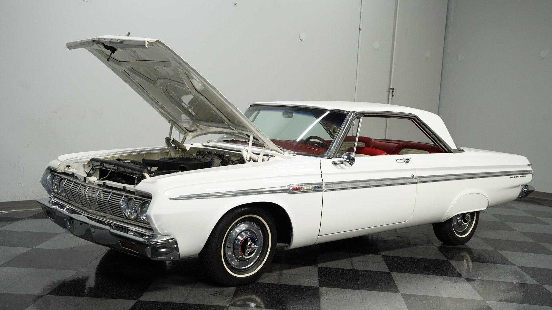 It's nice to see a stock appearing older Mopar like this 1964 Plymouth Sport Fury still looking good. The Bright White paint holds up well when paired with the bright chrome bumpers, shiny trim, and hard-to-find OEM hubcaps. Both the front grille and rear taillight housing are in good shape, and the rear wheel skirt covers are little add-on pieces that make a big difference for a higher-class look. The body is solid from the fenders to the quarter panels-up to the roof, hood, and deck lid. Underneath is just as solid, making this a well-put-together classic muscle car. The interior is in just as good shape as the exterior, with red front vinyl bucket seats featuring white inserts, and rear bench seating for two or three people if needed. The stock-appearing center console is mostly red with a beautiful, shiny metal floor shifter assembly. The steering wheel appears to be stock and in great shape, as does the gauge cluster, and the gauges in it, which show very well. Off to the right are the climate controls, and further over sits the radio. All in all, the dashboard looks excellent, and so do the door panels, which follow the same good-looking pattern as the seats. Door jambs, door sills, carpet, and headliner are all clean and free of damage. Under the hood is what's believed to be the original 383 cubic-inch V8 engine with a Weber carburetor. This engine pairs with a 345 Torqueflite 3-speed automatic transmission that sends power to an 8 ¾ factory Sure-Grip rear axle with 3.23 gears. The front suspension features A-arms with shocks, while the rear uses leaf springs with shocks. Keeping the classic moving smoothly are 14-inch wheels with OEM Mopar hubcaps and 205/75R14 tires front and rear. Drum brakes are located at all four corners, while a stock dual exhaust system with an aftermarket muffler keeps this Mopar sounding right. Highlights: 383 Cubic-Inch Engine With Weber Carburetor (Believed To Be Original) 345 Torqueflite 3-Speed Automatic Transmission 8 ¾ Factory Sure-Grip Rear Axle With 3.23 Rear Gears Front A-Arms With Shocks Rear Leaf Springs With Shocks Dual Exhaust/Aftermarket Mufflers Power Steering AM/FM Radio Heat/Defrost Sport Fury Floor Mats Spare Tire In Trunk Serviced Manuals What a white beauty this 1964 Plymouth Sport Fury is. It looks smooth when cruising and just as good sitting at a car show-it's one good-looking classic. If you want an easy cruiser that looks and sounds much like it did when it rolled off the assembly line, this car's for you. Call Today.