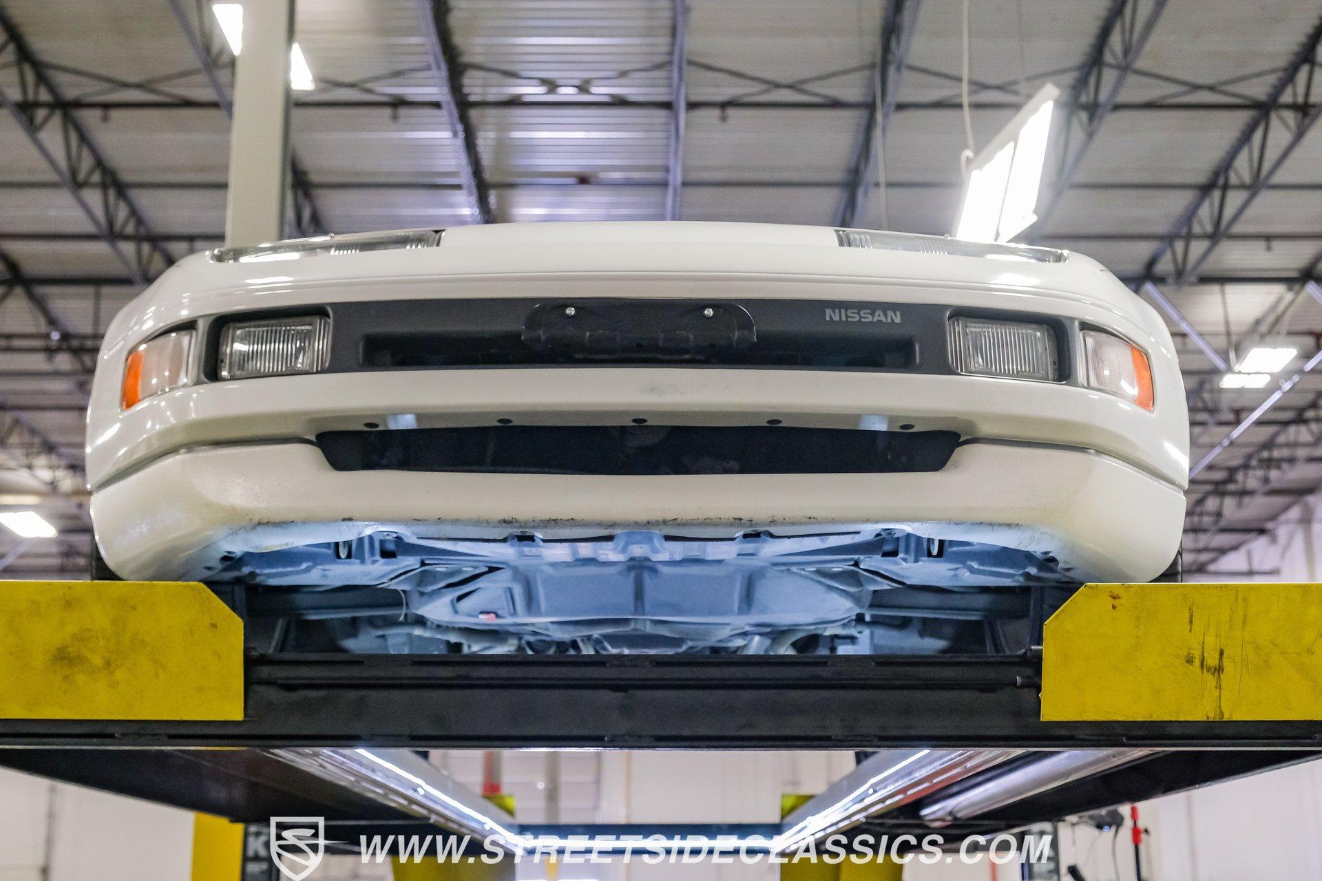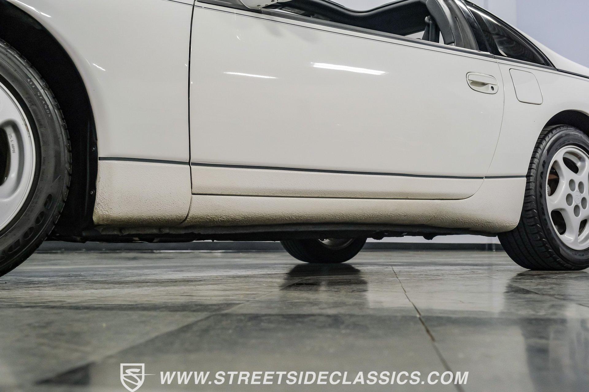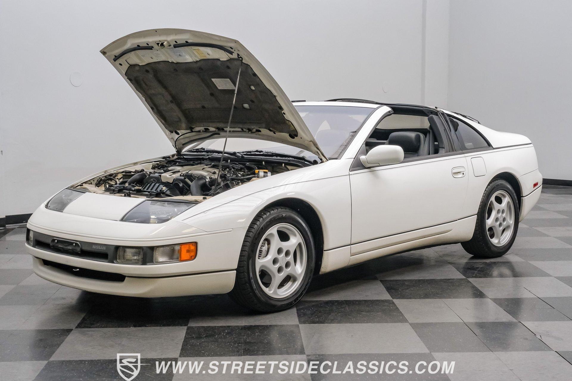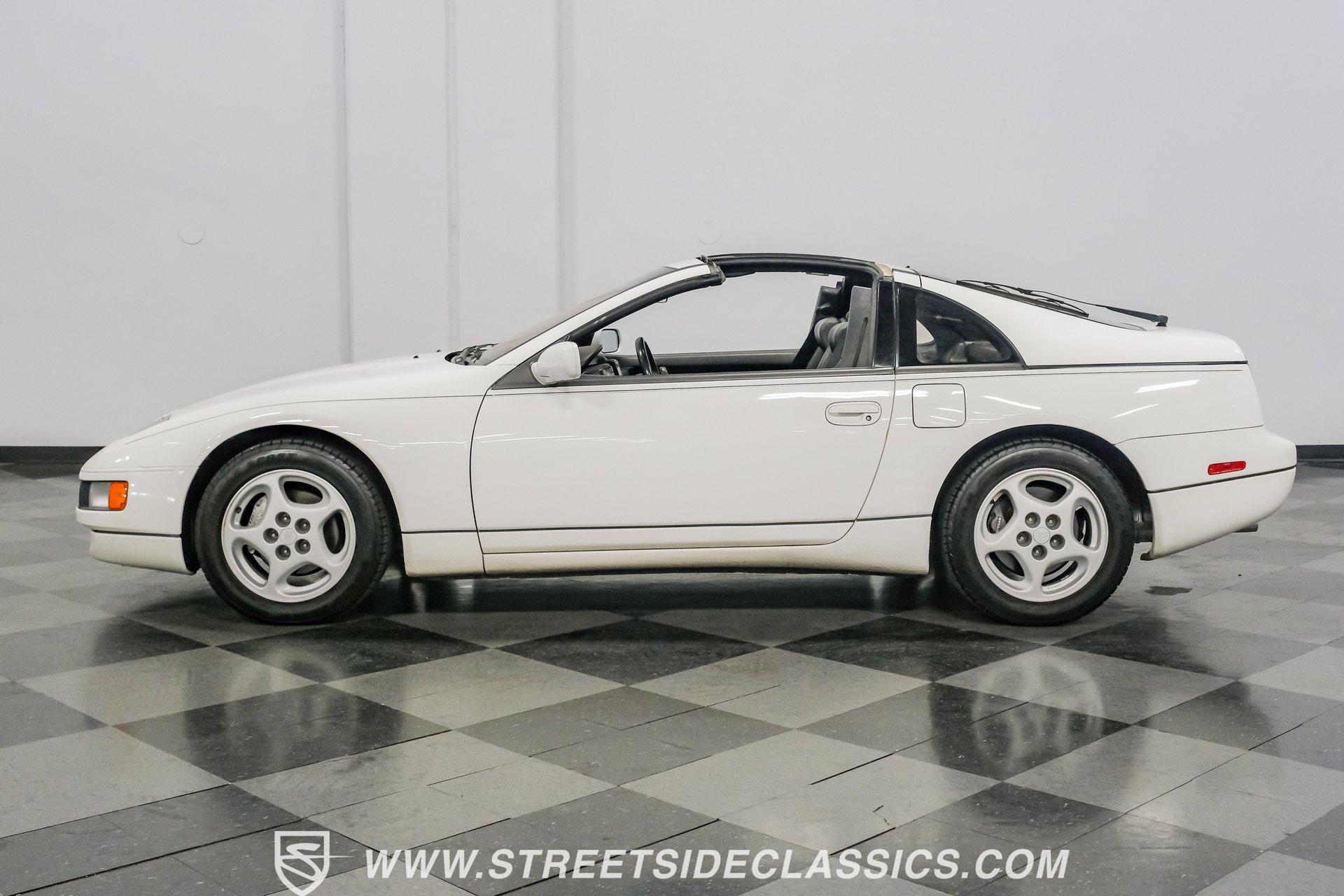 This exceptional 1990 Nissan 300ZX, with only 34,179 original miles, draped in a striking White hue, exudes a timeless appeal that's hard to miss. The sleek lines of this iconic coupe are accentuated by T-tops, adding a touch of nostalgia and a dash of open-air freedom for those sunny drives. The original panels and paint maintain its authentic charm, while the 16" stock rims coupled with 225/50R16 tires offer a sturdy stance. Inside, the charcoal leather bucket seats provide a comfortable and supportive ride, and they appear almost new, complementing the car's well-preserved interior. The factory-installed Bose AM/FM/cassette system brings music to your fingertips, while the charcoal carpets and door panels maintain the classic vibe. The center console and dash, also in great shape, seamlessly blend functionality with style, making every drive a pleasure. The car's interior is further enhanced by the ice-cold air conditioning, ensuring a comfortable environment regardless of the weather. A 3.0 Liter V6 powerplant channels raw energy through the 4-speed automatic transmission. The fully independent suspension, engineered for maximum grip, keeps all four corners planted during aggressive cornering. Power disc brakes bring the velocity in check while the dual exhaust broadcasts the V6's authoritative voice. Every component adheres to factory specifications, maintaining the original engineering excellence. HIGHLIGHTS: 3.0 Liter V6 Engine 4 Speed Automatic Transmission Air Conditioning 34,179 Miles from New White Paint T-Tops 16" Stock Rims Tinted Windows with Rear Defrost Charcoal Interior with Leather Bucket Seats Factory Bose AM/FM/Cassette Radio Owner's Manual Highly Original Car This 1990 Nissan 300ZX blends classic style with low miles and exceptional originality, making it a standout choice for enthusiasts and collectors alike. With its robust V6 engine, meticulously maintained interior, and stylish looks, this 300ZX is ready for its next adventure. Call today!