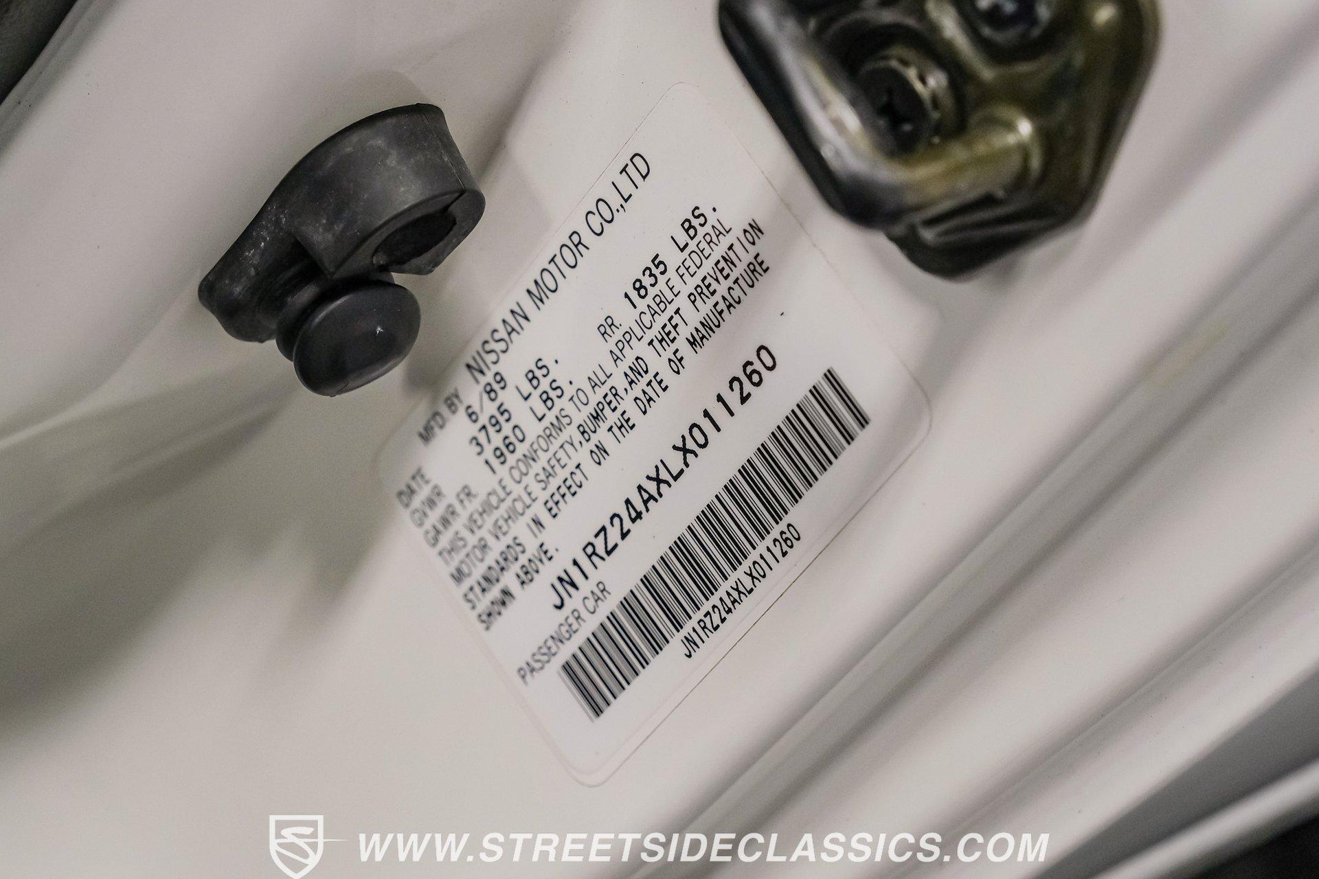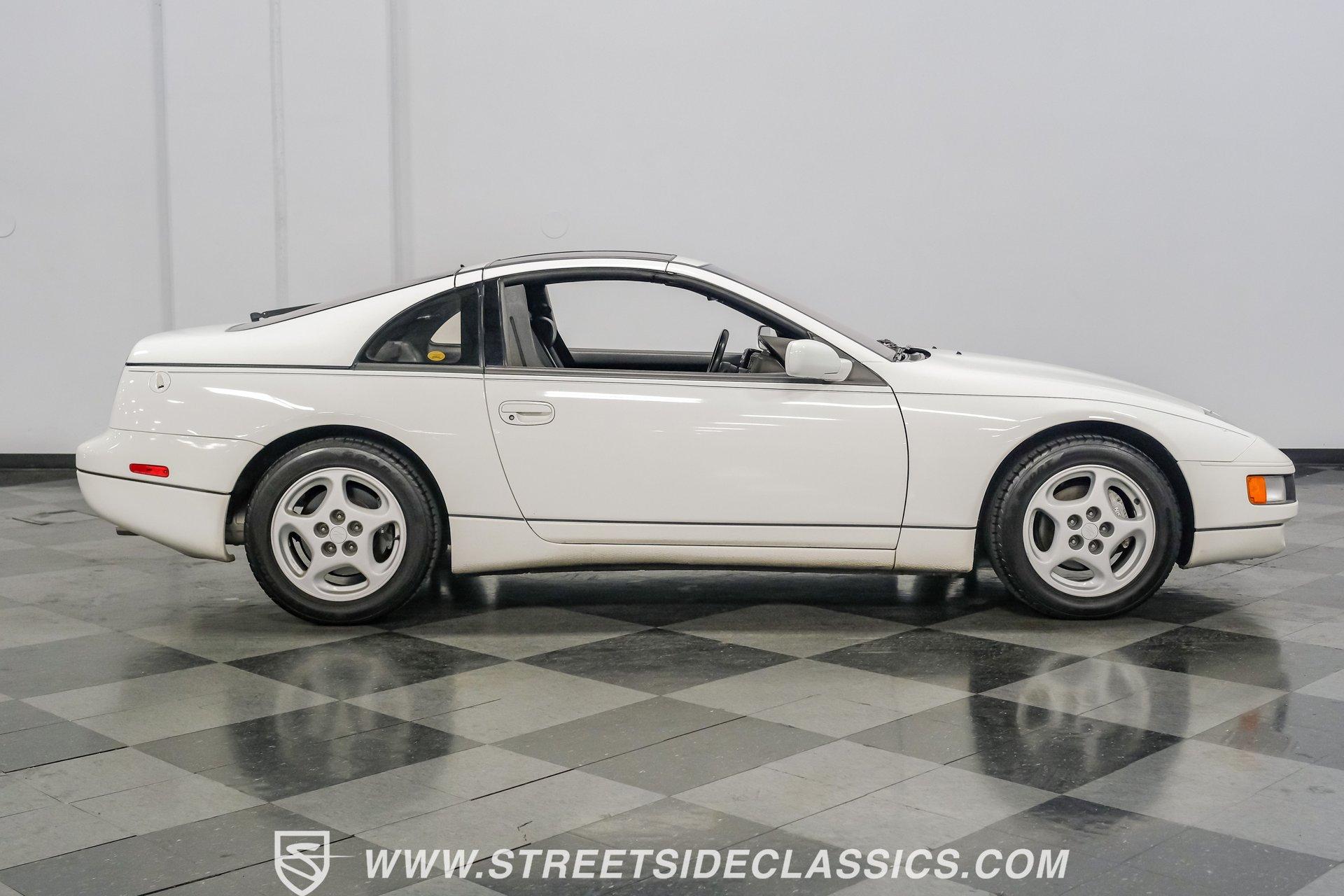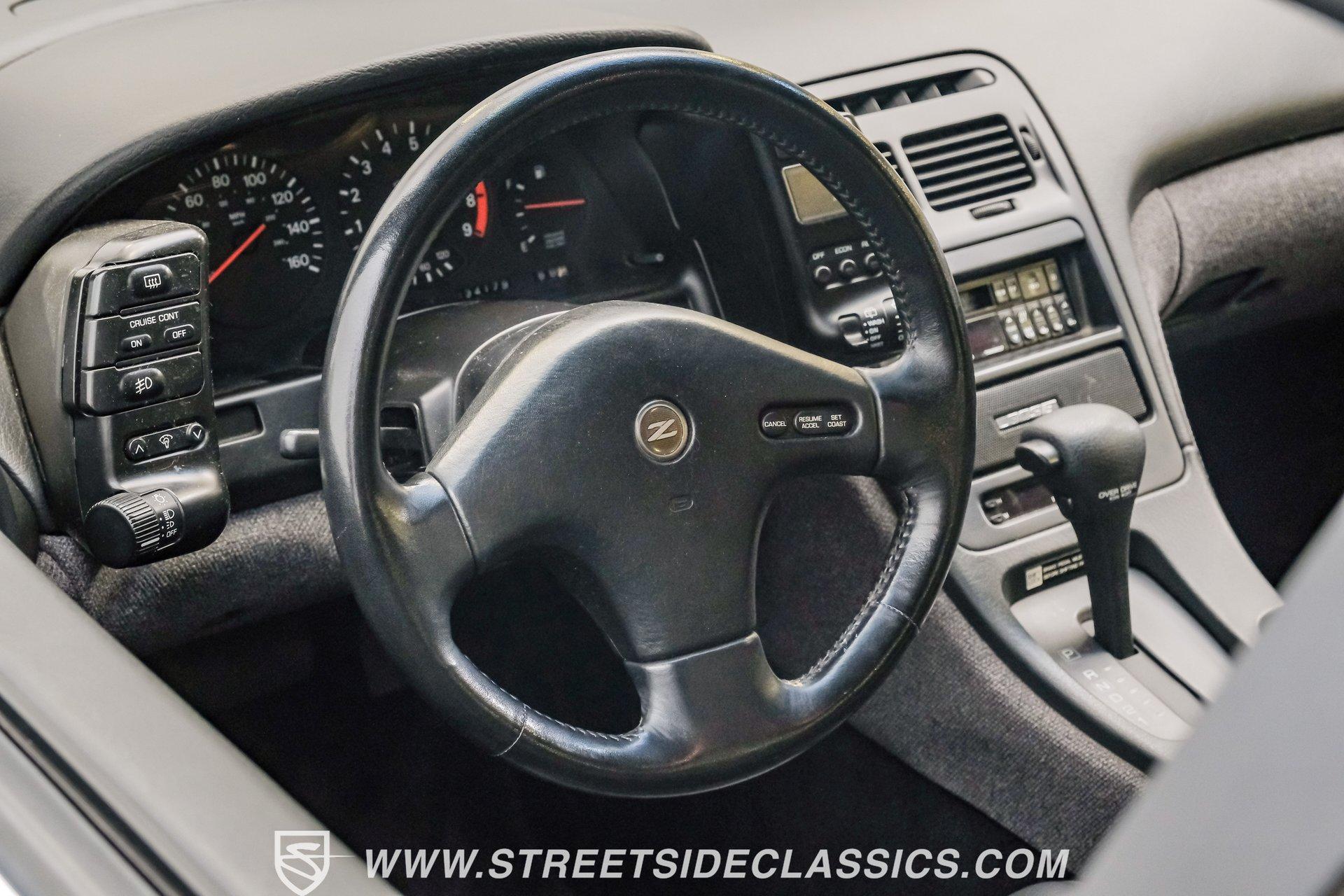 This exceptional 1990 Nissan 300ZX, with only 34,179 original miles, draped in a striking White hue, exudes a timeless appeal that's hard to miss. The sleek lines of this iconic coupe are accentuated by T-tops, adding a touch of nostalgia and a dash of open-air freedom for those sunny drives. The original panels and paint maintain its authentic charm, while the 16" stock rims coupled with 225/50R16 tires offer a sturdy stance. Inside, the charcoal leather bucket seats provide a comfortable and supportive ride, and they appear almost new, complementing the car's well-preserved interior. The factory-installed Bose AM/FM/cassette system brings music to your fingertips, while the charcoal carpets and door panels maintain the classic vibe. The center console and dash, also in great shape, seamlessly blend functionality with style, making every drive a pleasure. The car's interior is further enhanced by the ice-cold air conditioning, ensuring a comfortable environment regardless of the weather. A 3.0 Liter V6 powerplant channels raw energy through the 4-speed automatic transmission. The fully independent suspension, engineered for maximum grip, keeps all four corners planted during aggressive cornering. Power disc brakes bring the velocity in check while the dual exhaust broadcasts the V6's authoritative voice. Every component adheres to factory specifications, maintaining the original engineering excellence. HIGHLIGHTS: 3.0 Liter V6 Engine 4 Speed Automatic Transmission Air Conditioning 34,179 Miles from New White Paint T-Tops 16" Stock Rims Tinted Windows with Rear Defrost Charcoal Interior with Leather Bucket Seats Factory Bose AM/FM/Cassette Radio Owner's Manual Highly Original Car This 1990 Nissan 300ZX blends classic style with low miles and exceptional originality, making it a standout choice for enthusiasts and collectors alike. With its robust V6 engine, meticulously maintained interior, and stylish looks, this 300ZX is ready for its next adventure. Call today!