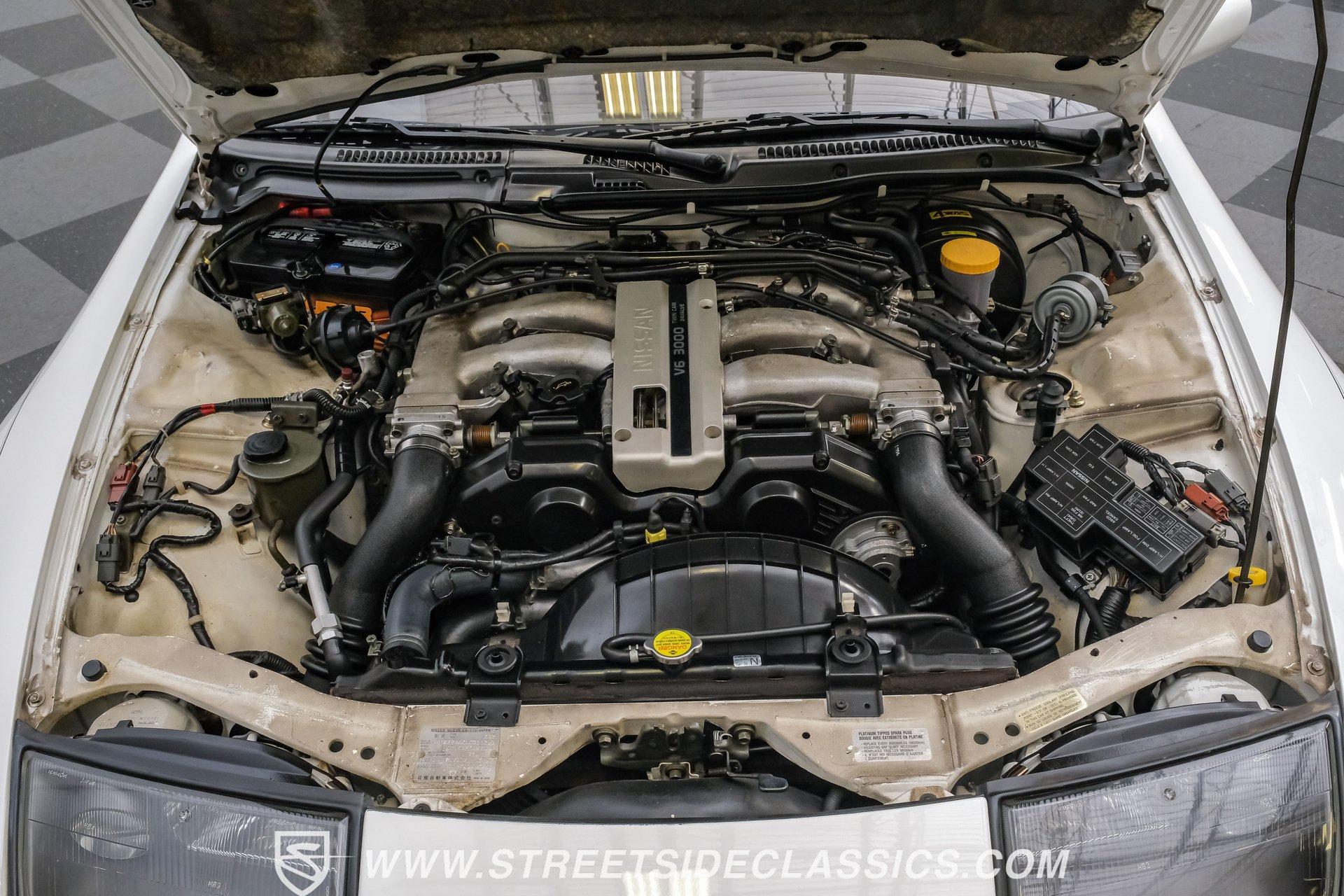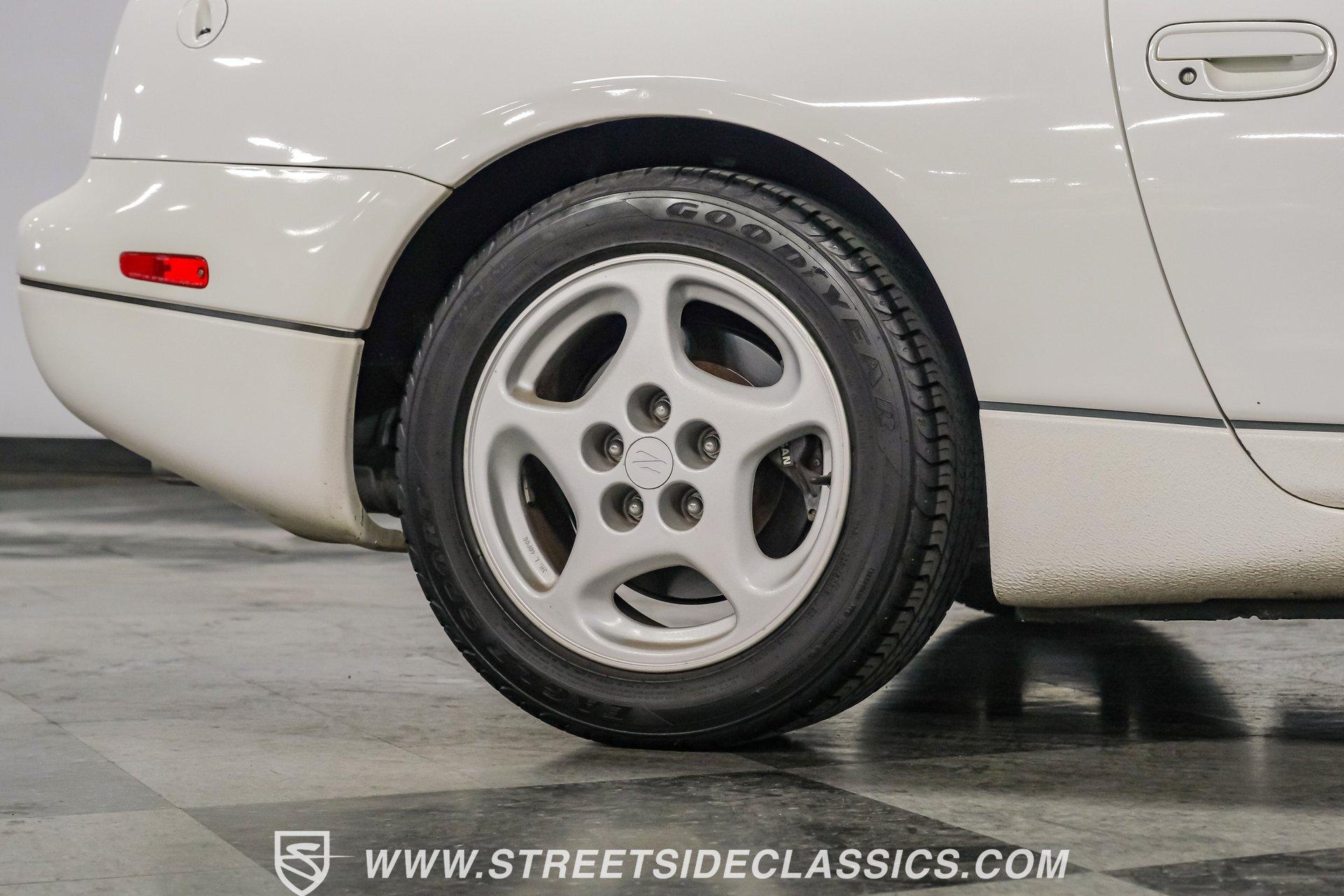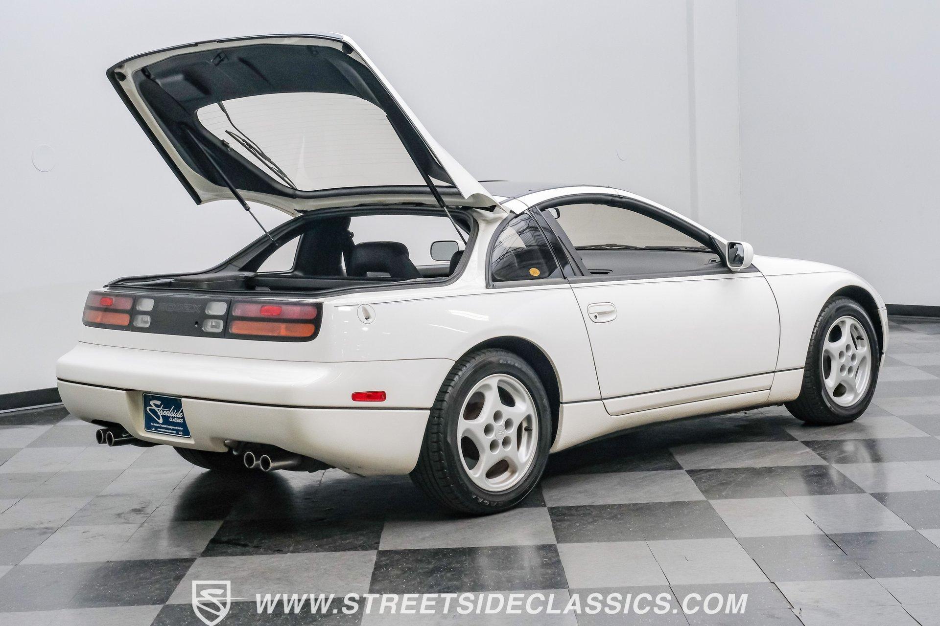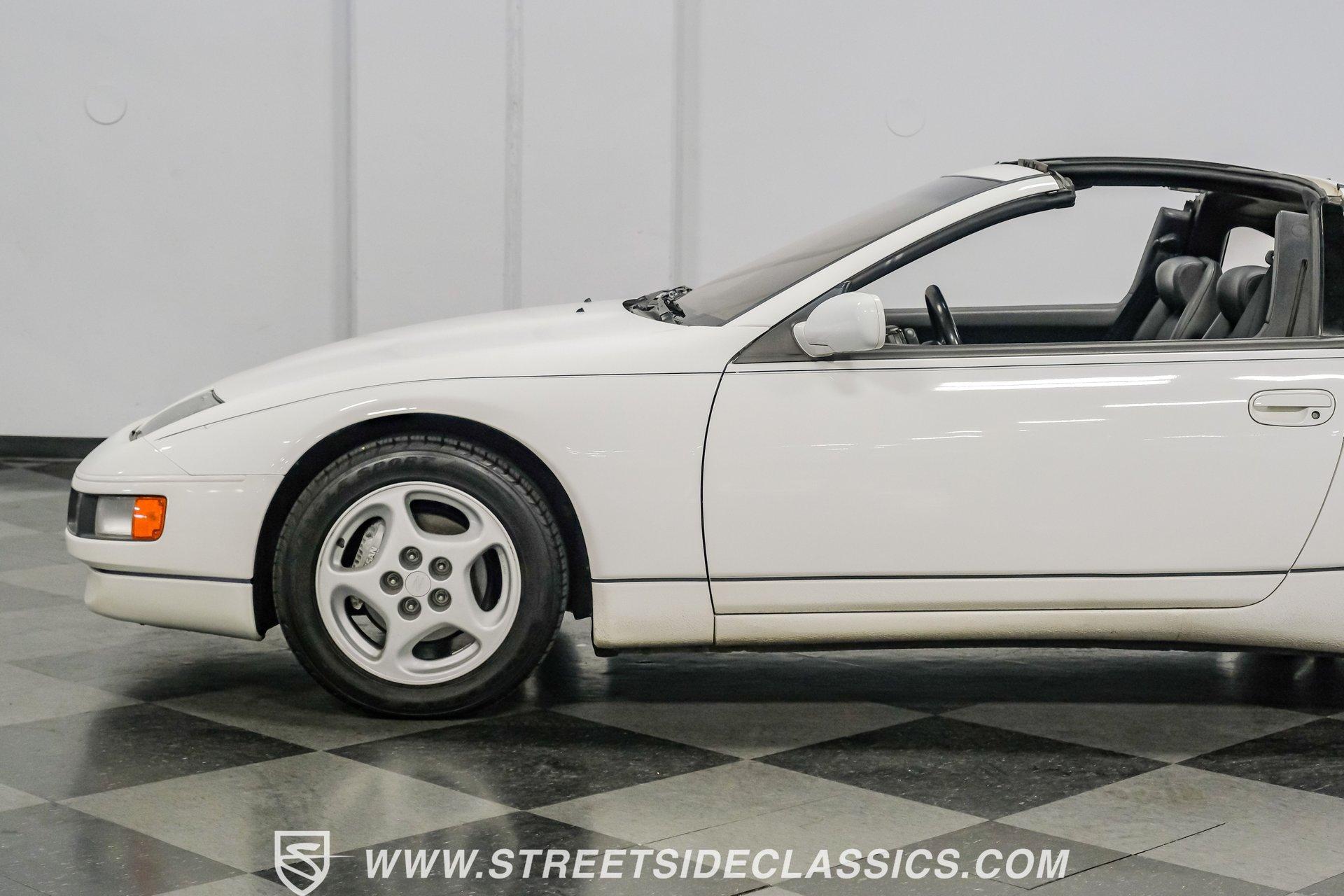 This exceptional 1990 Nissan 300ZX, with only 34,179 original miles, draped in a striking White hue, exudes a timeless appeal that's hard to miss. The sleek lines of this iconic coupe are accentuated by T-tops, adding a touch of nostalgia and a dash of open-air freedom for those sunny drives. The original panels and paint maintain its authentic charm, while the 16" stock rims coupled with 225/50R16 tires offer a sturdy stance. Inside, the charcoal leather bucket seats provide a comfortable and supportive ride, and they appear almost new, complementing the car's well-preserved interior. The factory-installed Bose AM/FM/cassette system brings music to your fingertips, while the charcoal carpets and door panels maintain the classic vibe. The center console and dash, also in great shape, seamlessly blend functionality with style, making every drive a pleasure. The car's interior is further enhanced by the ice-cold air conditioning, ensuring a comfortable environment regardless of the weather. A 3.0 Liter V6 powerplant channels raw energy through the 4-speed automatic transmission. The fully independent suspension, engineered for maximum grip, keeps all four corners planted during aggressive cornering. Power disc brakes bring the velocity in check while the dual exhaust broadcasts the V6's authoritative voice. Every component adheres to factory specifications, maintaining the original engineering excellence. HIGHLIGHTS: 3.0 Liter V6 Engine 4 Speed Automatic Transmission Air Conditioning 34,179 Miles from New White Paint T-Tops 16" Stock Rims Tinted Windows with Rear Defrost Charcoal Interior with Leather Bucket Seats Factory Bose AM/FM/Cassette Radio Owner's Manual Highly Original Car This 1990 Nissan 300ZX blends classic style with low miles and exceptional originality, making it a standout choice for enthusiasts and collectors alike. With its robust V6 engine, meticulously maintained interior, and stylish looks, this 300ZX is ready for its next adventure. Call today!