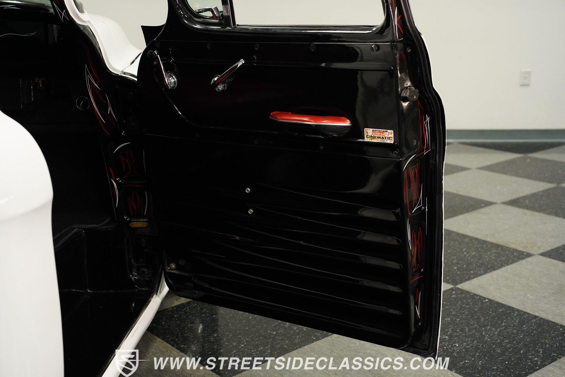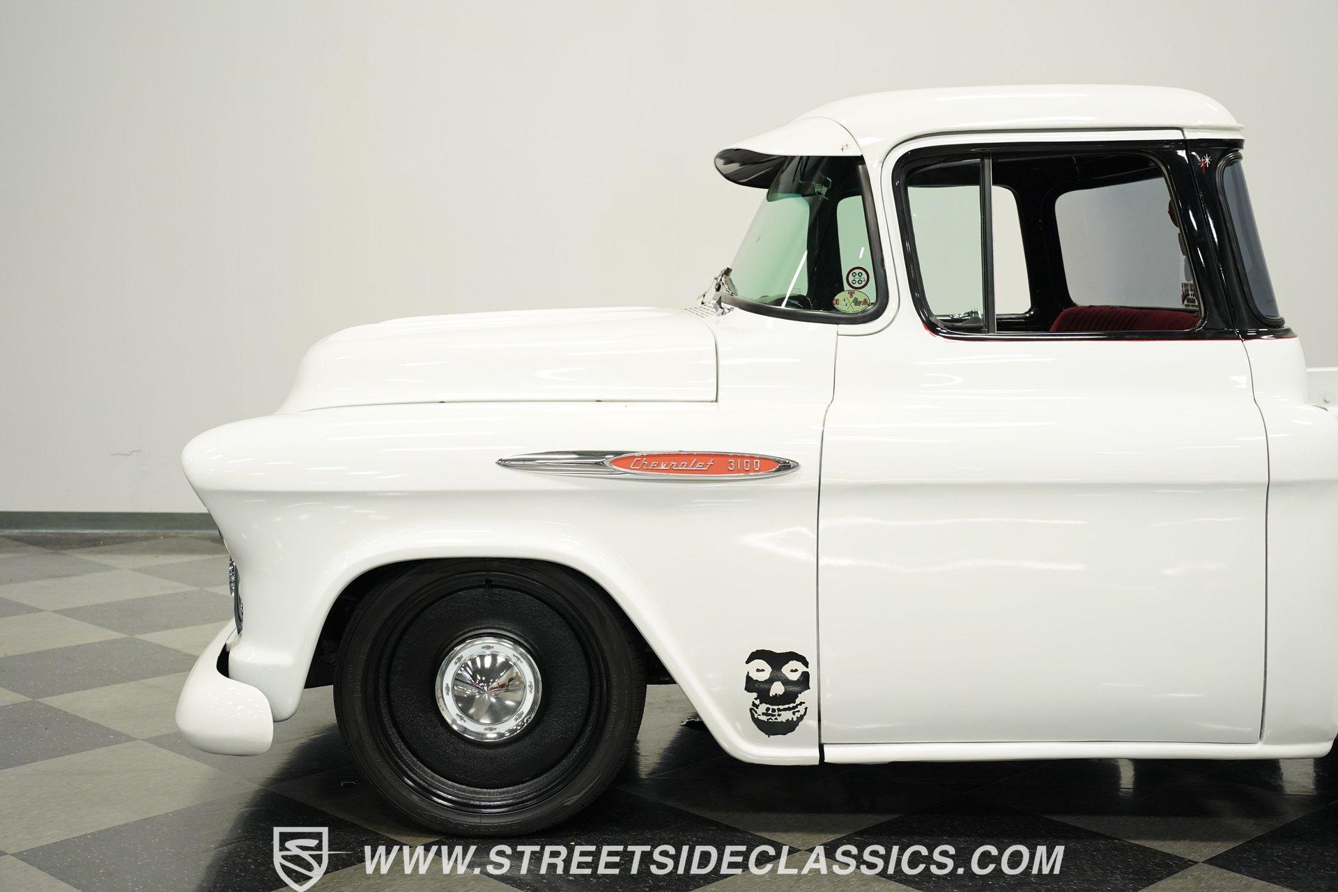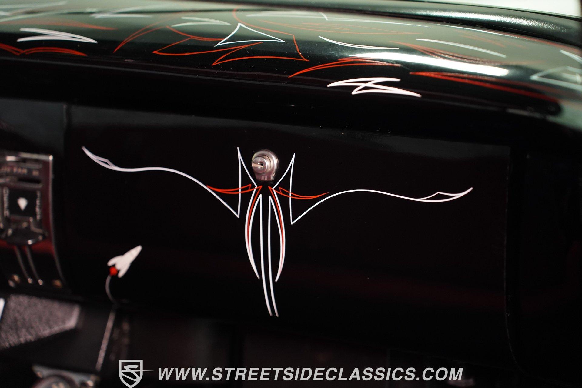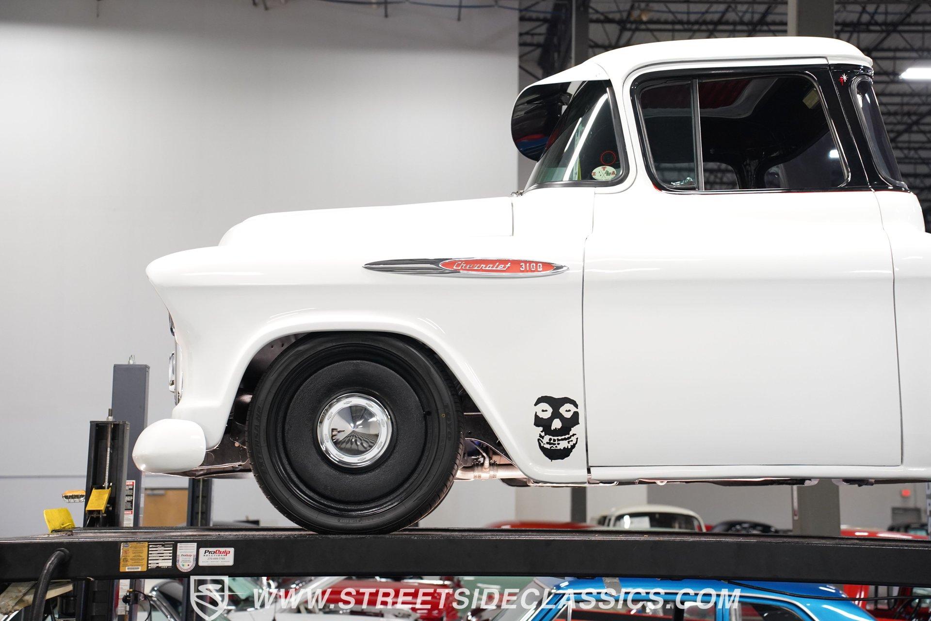 Cool custom short-bed trucks are always in style and make for big hits at car shows and cruises. This 1957 Chevrolet 3100 Big Back Window cruiser will turn heads no matter what event it shows up to. The crisp white paint job and pinstriping in the front and rear go perfectly with the black Detroit Steel wheels, painted white bumpers, chrome front grille, LED headlights, and the custom frenched rear taillights tucked into the rear fenders. The door handles are shaved along with the tailgate handle. The truck bed looks outstanding, just like the rest of the truck. And just in case you need to tow something, there is a trailer hitch under the rear bumper. The interior carries an original/custom vibe. The red bench seat sets off the mostly black cabin. The original Chevy gauge cluster is paired with a Mooneyes tachometer and three AutoMeter gauges: Fuel, Water Temp, and Oil Pressure. A Holley Sniper Fuel Injection Control unit sits to the right of the steering wheel, helping the driver keep a closer eye on engine activity. The door panels are in good shape, as are the dashboard and custom headliner. Door jambs, dashboard, and glove box all feature creative pinstriping designs. The custom steering wheel looks sharp, and the shifter lever topped with a grenade knob adds a unique touch. Altogether, it's a well-done classic look for the interior. Under the hood, the pinstriping continues and only enhances the clean engine bay, which houses the Holley Sniper fuel-injected 350 cubic-inch V8 engine. This is paired with a reliable 700R4 4-speed automatic transmission that runs back to a later-model 10-bolt rear axle. For suspension, the Chevrolet gets a Camaro front subframe featuring A-arms with coil springs and shocks, while the rear uses leaf springs with air shocks. Gloss black Detroit Steel 20-inch wheels with chrome center caps sit at all four corners-wheels are wrapped in 245/40R20 front tires and 275/35ZR20 rear tires. For stopping power, the truck features power front disc brakes and rear drum brakes. And for that great old-school sound, dual exhaust runs through Cherry Bomb-style resonators. Highlights: 350 Cubic-Inch V8 Holley Sniper Fuel Injection System-Controller Inside 700R4 4-Speed Automatic Transmission GM Later Model 10-Bolt Rear Axle Camaro Front Subframe With A-Arms, Coil Springs, And Shocks Rear Leaf Springs With Air Shocks 20-Inch Gloss Black Detroit Steel Wheels Front 245/40R20 Tires Dated 2022-Rear 275/35ZR20 Tires Dated 2024 Power Front Disc Brakes-Power Rear Drum Brakes Stock Style Exhaust Manifold, Dual Exhaust, Cherry Bomb Resonators (Mufflers) Shaved Door Handles With Shaved Tailgate Handle Hand-Laid Pinstriping Exterior/Interior/Engine Bay Power Steering LED Headlights Custom Headliner Custom Frenched Taillights Rubber Bedliner Heat Power Windows Custom Steering Wheel With Tilt Mooneyes Tachometer AutoMeter Gauges: Oil, Temp, Fuel This beautiful 1957 Chevrolet 3100 Big Back Window is the epitome of cool cruising. It looks good, it sounds good, and it's full of custom touches. In the end, anyone who owns it will enjoy every moment they spend around this custom build. If a simple cruiser is what you're looking for, look no further-Call Us Today!