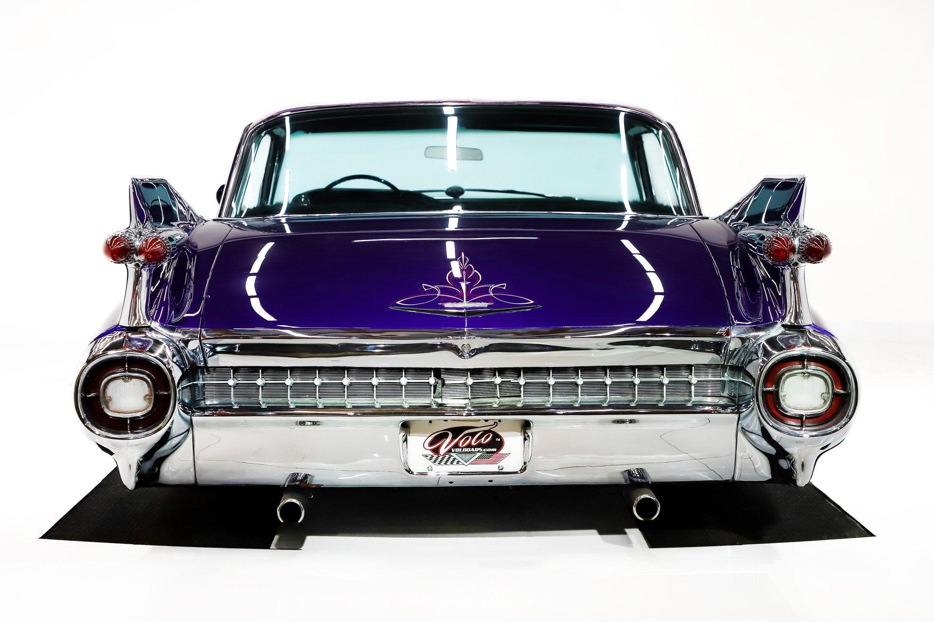 This was my own personal car (Brian Grams). I purchased it as a nice stock 1959 Cadillac with an older frame-off restoration and turned it into what you see today. It features an L92 Cadillac Escalade engine rated stock at 403 HP and 415 lbs of torque! The car was dyno-tuned to produce even more power. It's backed by a 4L60e automatic overdrive transmission and tied into the stock 3.36 rear end. The car cruises comfortably at 80 MPH and gets about 22 MPG. I have driven this car on several long distance trips and it is a dream to drive. It has an e-Level air ride system that automatically adjusts to keep the car level. It has programmable ride heights but is also able to be manually controlled. It also has the i-Level so it can be operated by your phone. The air-ride provides a much nicer ride than the factory springs and is fully adjustable to your liking. While the car did have an older frame off restoration, I did have almost the entire front and rear suspension rebuilt, replaced the steering box and updated the brakes to disc with a dual master. The car is tight as can be and can be driven with 1 finger on the wheel. One thing that separates this car from other LS swaps is that while most people opt for aftermarket gauges, I wanted to retain the classic original dash. All of the gauges and idiot lights, including speedometer were modified to work with the new swap. No ugly modern gauges. The car is also a factory A/C car, it was updated with all new modern A/C components connected to the factory controls and duct work to retain the factory look and function. The heater core, control valve, hoses, vacuum pods, etc. were all rebuilt to work flawlessly. The engine install was done in a way that mimics a vintage style so it doesn't scream "modern" when you raise the hood. The engine was painted blue, custom coil covers were installed to look like factory valve covers. Car is cooled by a Be Cool radiator with twin electric fans, the car will never overheat on you! A $2300 custom exhaust was specially made for this car, it snakes through from front to out below the bumper without touching anything, even when in the lowered position. No exhaust rattles or banging! Visually, it does not get any better. Everyone from old to young love this car, nothing beats a laid out big Caddy! I've taken it to high-end restaurants where the patrons would walk right past the $300k Ferrari or Lamborghini to check out this car! It even caught the attention of Cadillac Official who highlighted the car in their social media, the only vintage car known of them to share. The cosmetics were done by Montoya Kustoms, who is responsible for building numerous World of Wheels show winning cars! The car was dismantled for a professional paint job. Hundreds of hours were spent blocking the car out to make it as close to laser straight a big panel car like this can get! Its a factory Ford purple color, easy blend or repair, with a purple Kandy fade. The roof was paneled and flaked, do not look at it in the sun without sun glasses! The car received a lot of tasteful pin-striping before the entire car was cleared, it will not fade or rub off! Montoya also reupholstered the car from headliner to carpet and added some nice details like a custom cup holder (a necessity for long trips) and the Angry Orchid seat plaque. The dash is still the original dash pad in great shape with only light cracking near the defroster vents. To truly finish the car off, they had notched the frame and raised the drive-shaft tunnel to get the car to sit all the way on the ground when aired out. The trunk was finished in black carpet which highlights the professionally installed air-ride system. The pictures are current with the exception of the pictures that show the car with hubcaps, those are some cool custom pics that were taken previously that we thought we would share. The car does not come with hubcaps. One thing I learned from doing this car is how much more expensive and difficult it is to build a Cadillac then a Chevy! You could build a Chevy for about 1/2 of what a Cadillac costs! I have well over 6 figures in the car and put about 10k miles on this car since it was completed. It is not a trailer queen but it dominates the local car shows almost always leaving with a best of show award. Air ride suspension Air conditioning Power steering Power disc brakes Power windows Power seat Flaked roof Kandy fade paint Supreme wheels Radial whitewalls