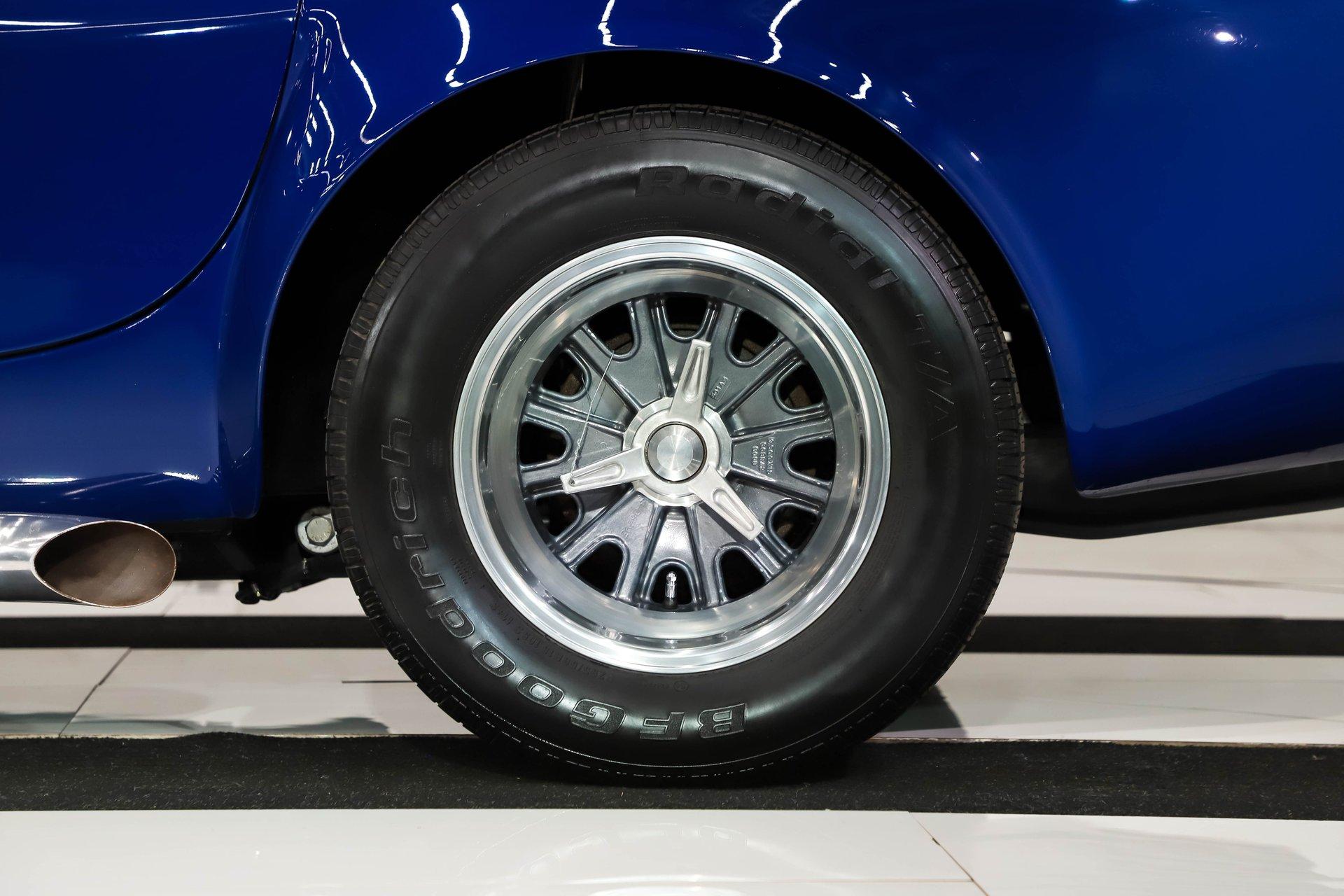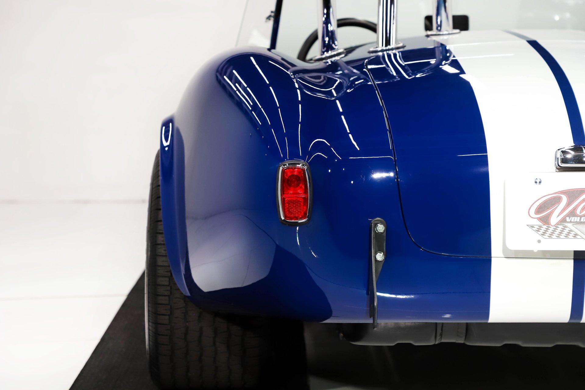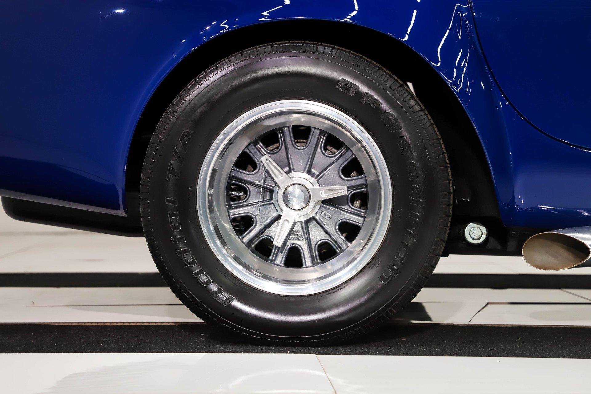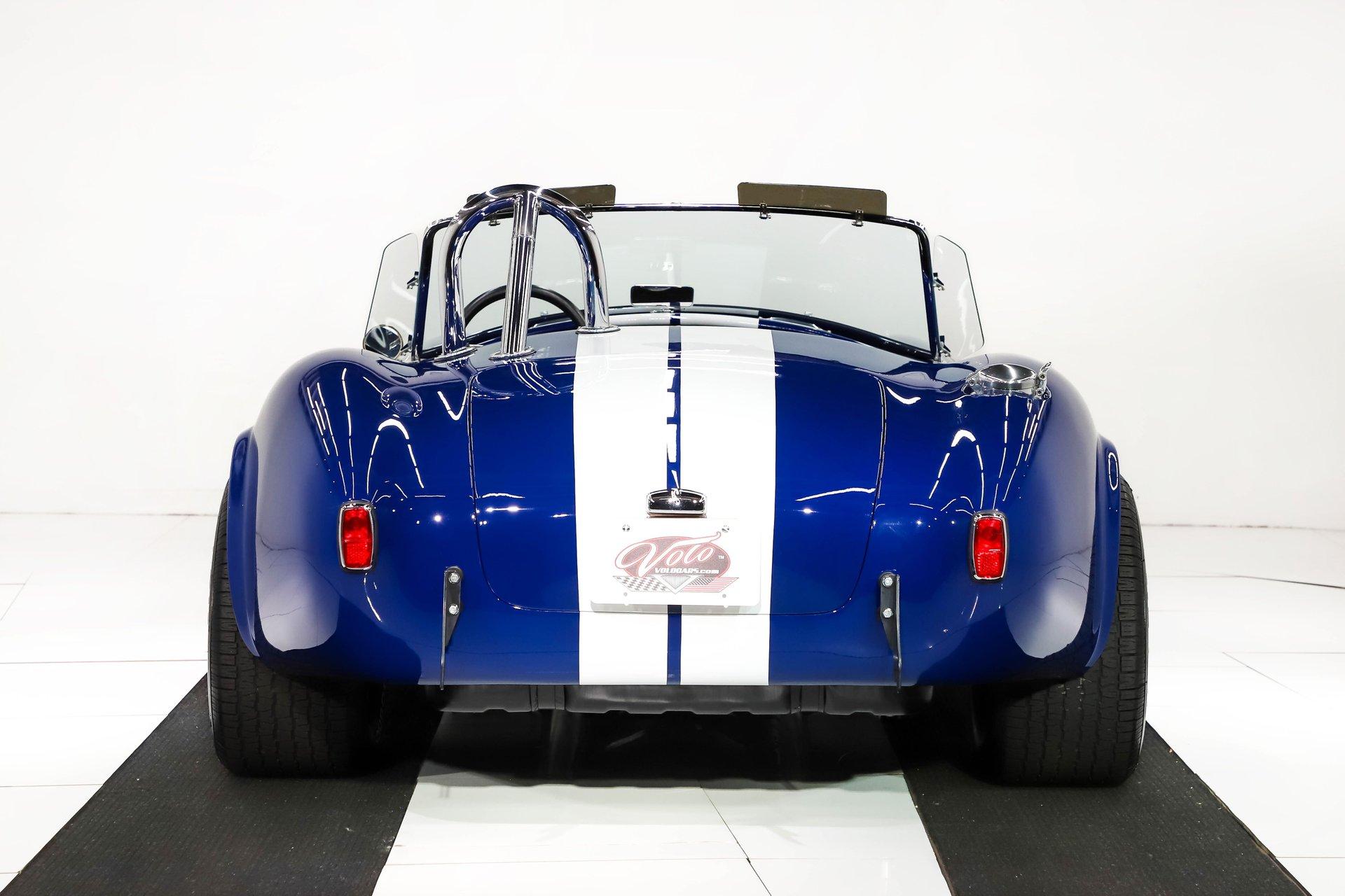 Celebrating our 65 year anniversary! This family owned and operated business was established in 1960, making us the oldest classic car dealership in America. Special thank you to all our customers for entrusting us to park the car of your dreams in your driveway while preserving automotive history for future generations to embrace and enjoy. -Grams family & Volo Museum staff You need some excitment in your life? This will do it! The power, the rumble, and the wind in your hair is exhilarating. The Midstates Classic fiberglass body has amazing fit and finish. This Cobra has just over 4500 miles on the build and only 1500 on the performance built engine. This one has all the makings of a classic with the traditional colors and real knock off wheels too. If your heart isn't beating faster yet, check your pulse! EXTERIOR: Classic beauty! The fiberglass has a really nice fit with good consistent gaps throughout. Looking down the side of the body it is nice and straight with beautifully smooth contours. The classic Monte Carlo Blue paint was applied with amazing attention to detail and the white racing stripes were painted on smooth to the touch. It has a shiny and reflective finish. The hood scoop, side pipes, and roll bar really enhance the profile. The pop up gas cap and remaining brightwork all have a lustrous shine. It has quick jack racing bumpers front and back that look really tough. It is complete with wing windows and tinted visors. Halogen headlights are a much appreciated addition. It is rolling on a set of Halibrand style 5 pin real knock off wheels. They are wrapped in BFGoodrich Radial T/A tires that are a beefy size P295/50/R15 in the rear. INTERIOR: Practical and pretty! It has an original design dash with all the necessary Smith gauges to monitor the vitals. The aftermarket Lecarra steering wheel is leather wrapped and has a nice fat grip. The bucket seats and door panels/pouches all have genuine leather upholstery that is durable and feels great. The Simpson racing harnesses keep you safe and snug when cutting the corners. The shifter for the 4 speed manual top loader transmission sits proudly front and center. A fire extinguisher has been mounted between the seats. The carpeting looks great and the floor has recessed foot wells built in to accommodate taller riders. ENGINE COMPARTMENT: Nicely dressed! The 390 Ford FE V8 has been nicely built and runs fantastic. It has an Eledbrock Performer intake manifold and is topped off with a fresh looking Holley 4 barrel carburetor that also has a new linkage. Billet aluminum brackets and pulleys present really nicely, as do the finned 427 Cobra valve covers and matching finned oval Cobra air cleaner. It has an upgraded MSD 6AL electronic ignition box and power steering too. It's equipped with a CNC brand dual reservoir master cylinder that also incorporates a hydraulic clutch reservoir. The radiator was recently upgraded to an oversized aluminum unit that has an electric fan. We just custom fabricated some aluminum panels that push air directly into the radiator. An engine oil cooler was recently added. All the belts and hoses look to be in great shape and the horn is hooked up. TRUNK COMPARTMENT: Utilitarian! The underside of the lid and jamb are painted slick like the exterior and the weatherstrip was replaced. The battery is located in the trunk and has a safety box that is properly vented. There is still enough room for a couple overnight duffle bags or folding chairs for the car show. UNDERSIDE: Excellent! This car is equipped with the optional round tube frame. It has rack & pinion steering for increasing handling and maneuverability. Up front is a Mustang ll front independent suspension with tubular control arms, swaybar, and coilover adjustable gas shocks. Out back is a 4 link system with tubular control arms and coilover adjustable gas shocks. It was recently upgraded to 4 wheel disc brakes that stop on a dime. The tough looking side pipes sing a song of mechanical perfection. The gas tank looks fresh. Looking up at the Ford 390 FE V8 you will see a remote oil filter and bright Ford Blue paint. The 4-speed close ratio top loader trans has a fresh looking linkage, mount, and Ford Blue paint too. A Ford 9 inch rear with 3.55 gears puts the power to the pavement. SERVICE: We take pride in our cars and reputation. Therefore, we built a 2 million dollar, 10,000 square ft service center, and hired a team of technicians to work it. This is so we can sell you the best cars within reason. Pure excitement! The raw power in a little lightweight sports car of awesome. The sound of those side pipes as you're shifting the gears is guaranteed to make your bad day great! For nearly 30 years, I, Jay Grams, have personally written the highlights for almost every car in our collection. What I provide is my professional opinion based on my experience with these vehicles. However, opinions can vary, and I strongly recommend a personal inspection to form your own view. Our sales team is always available to answer any questions you may have. One great option is to request a personalized walk-around video, where we can showcase the car and share our team’s insights. **Our cars are displayed within a museum setting. If you are interested in a specific vehicle, please schedule an appointment with a salesperson to view it. Without an appointment, there is an admission fee to enter the showroom. If you decide to purchase a car, your admission will be refunded, and you'll receive a one-year museum membership. 815 385 3644 9-5 central Sales@volocars.com Answered ASAP 4 wheel disc brakes Power steering Rack & pinion Hydraulic clutch Leather seats Racing harnesses Racing stripes Knock off wheels Roll bar Side pipes Hood scoop Pop up gas cap