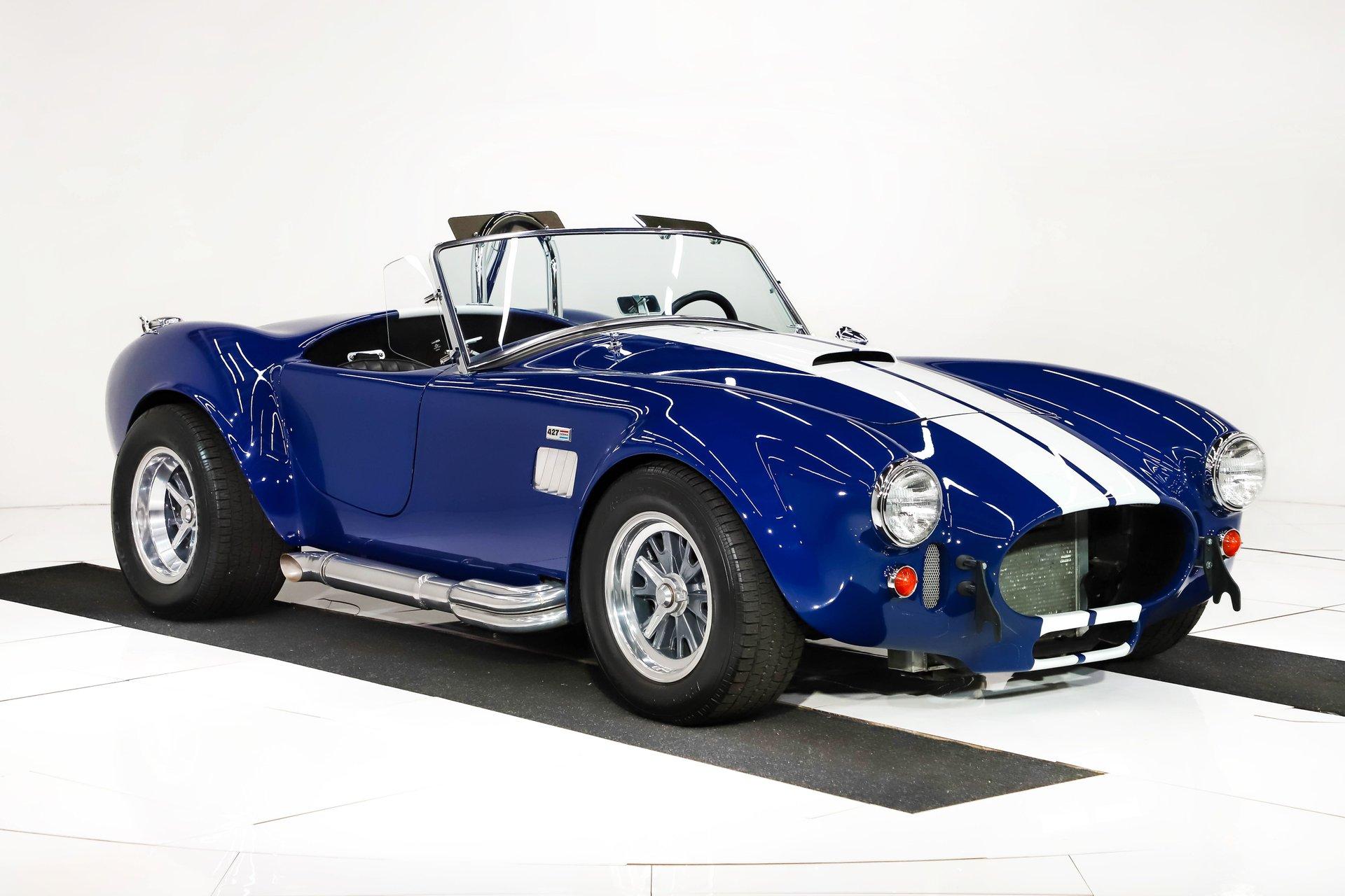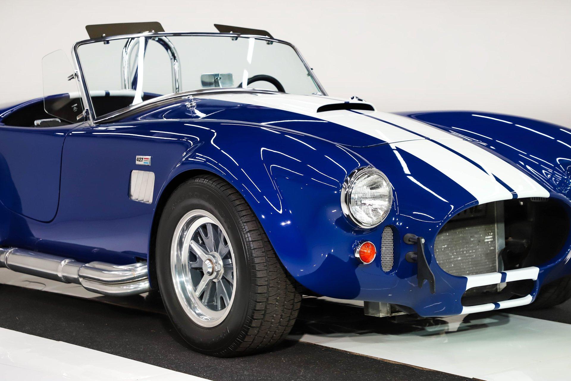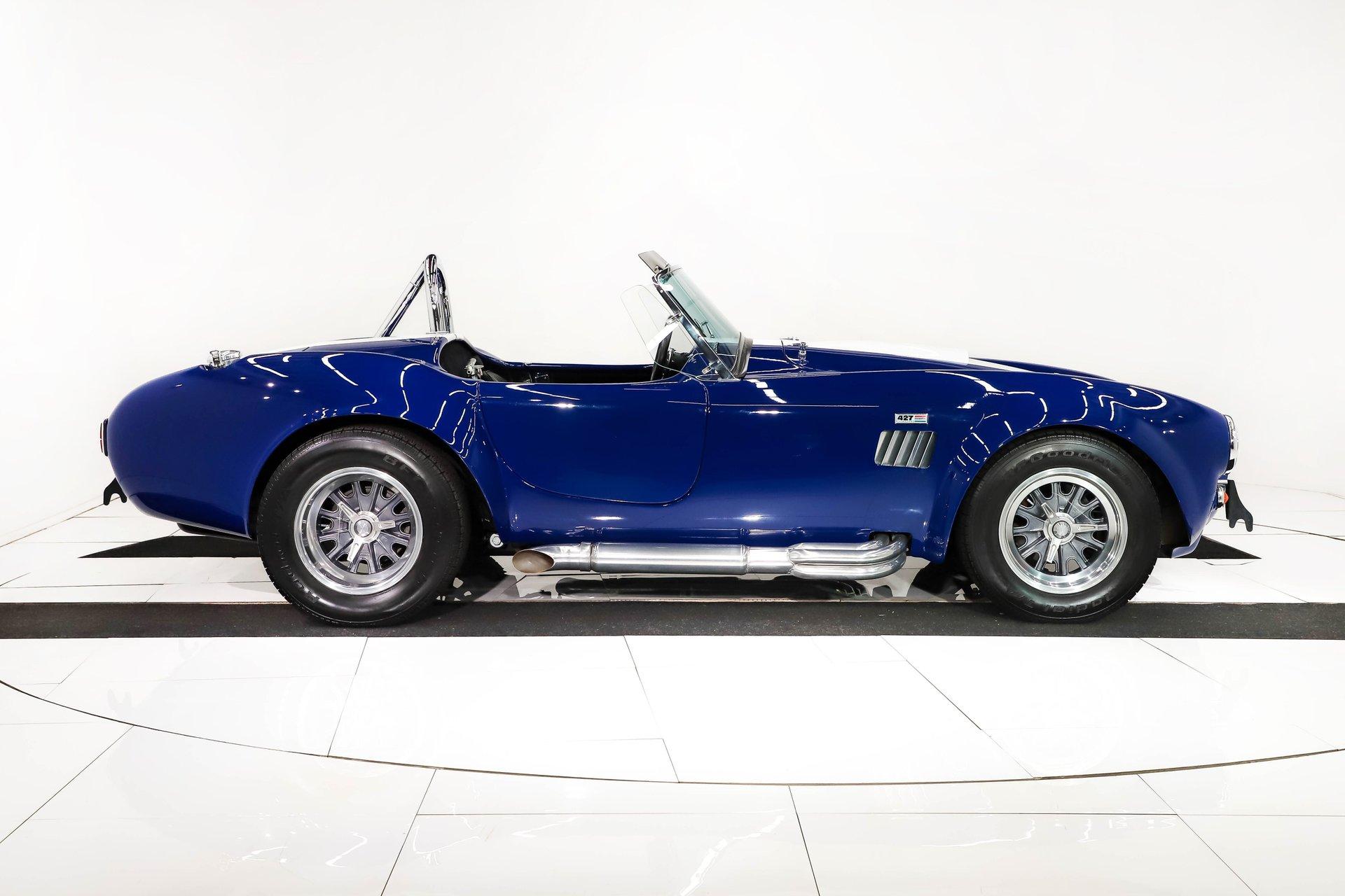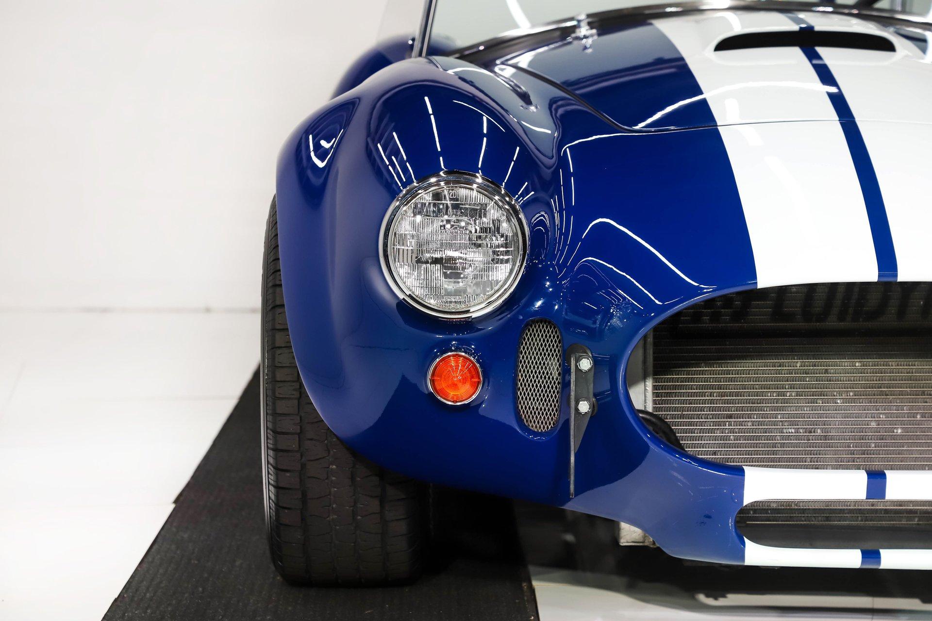 Celebrating our 65 year anniversary! This family owned and operated business was established in 1960, making us the oldest classic car dealership in America. Special thank you to all our customers for entrusting us to park the car of your dreams in your driveway while preserving automotive history for future generations to embrace and enjoy. -Grams family & Volo Museum staff You need some excitment in your life? This will do it! The power, the rumble, and the wind in your hair is exhilarating. The Midstates Classic fiberglass body has amazing fit and finish. This Cobra has just over 4500 miles on the build and only 1500 on the performance built engine. This one has all the makings of a classic with the traditional colors and real knock off wheels too. If your heart isn't beating faster yet, check your pulse! EXTERIOR: Classic beauty! The fiberglass has a really nice fit with good consistent gaps throughout. Looking down the side of the body it is nice and straight with beautifully smooth contours. The classic Monte Carlo Blue paint was applied with amazing attention to detail and the white racing stripes were painted on smooth to the touch. It has a shiny and reflective finish. The hood scoop, side pipes, and roll bar really enhance the profile. The pop up gas cap and remaining brightwork all have a lustrous shine. It has quick jack racing bumpers front and back that look really tough. It is complete with wing windows and tinted visors. Halogen headlights are a much appreciated addition. It is rolling on a set of Halibrand style 5 pin real knock off wheels. They are wrapped in BFGoodrich Radial T/A tires that are a beefy size P295/50/R15 in the rear. INTERIOR: Practical and pretty! It has an original design dash with all the necessary Smith gauges to monitor the vitals. The aftermarket Lecarra steering wheel is leather wrapped and has a nice fat grip. The bucket seats and door panels/pouches all have genuine leather upholstery that is durable and feels great. The Simpson racing harnesses keep you safe and snug when cutting the corners. The shifter for the 4 speed manual top loader transmission sits proudly front and center. A fire extinguisher has been mounted between the seats. The carpeting looks great and the floor has recessed foot wells built in to accommodate taller riders. ENGINE COMPARTMENT: Nicely dressed! The 390 Ford FE V8 has been nicely built and runs fantastic. It has an Eledbrock Performer intake manifold and is topped off with a fresh looking Holley 4 barrel carburetor that also has a new linkage. Billet aluminum brackets and pulleys present really nicely, as do the finned 427 Cobra valve covers and matching finned oval Cobra air cleaner. It has an upgraded MSD 6AL electronic ignition box and power steering too. It's equipped with a CNC brand dual reservoir master cylinder that also incorporates a hydraulic clutch reservoir. The radiator was recently upgraded to an oversized aluminum unit that has an electric fan. We just custom fabricated some aluminum panels that push air directly into the radiator. An engine oil cooler was recently added. All the belts and hoses look to be in great shape and the horn is hooked up. TRUNK COMPARTMENT: Utilitarian! The underside of the lid and jamb are painted slick like the exterior and the weatherstrip was replaced. The battery is located in the trunk and has a safety box that is properly vented. There is still enough room for a couple overnight duffle bags or folding chairs for the car show. UNDERSIDE: Excellent! This car is equipped with the optional round tube frame. It has rack & pinion steering for increasing handling and maneuverability. Up front is a Mustang ll front independent suspension with tubular control arms, swaybar, and coilover adjustable gas shocks. Out back is a 4 link system with tubular control arms and coilover adjustable gas shocks. It was recently upgraded to 4 wheel disc brakes that stop on a dime. The tough looking side pipes sing a song of mechanical perfection. The gas tank looks fresh. Looking up at the Ford 390 FE V8 you will see a remote oil filter and bright Ford Blue paint. The 4-speed close ratio top loader trans has a fresh looking linkage, mount, and Ford Blue paint too. A Ford 9 inch rear with 3.55 gears puts the power to the pavement. SERVICE: We take pride in our cars and reputation. Therefore, we built a 2 million dollar, 10,000 square ft service center, and hired a team of technicians to work it. This is so we can sell you the best cars within reason. Pure excitement! The raw power in a little lightweight sports car of awesome. The sound of those side pipes as you're shifting the gears is guaranteed to make your bad day great! For nearly 30 years, I, Jay Grams, have personally written the highlights for almost every car in our collection. What I provide is my professional opinion based on my experience with these vehicles. However, opinions can vary, and I strongly recommend a personal inspection to form your own view. Our sales team is always available to answer any questions you may have. One great option is to request a personalized walk-around video, where we can showcase the car and share our team’s insights. **Our cars are displayed within a museum setting. If you are interested in a specific vehicle, please schedule an appointment with a salesperson to view it. Without an appointment, there is an admission fee to enter the showroom. If you decide to purchase a car, your admission will be refunded, and you'll receive a one-year museum membership. 815 385 3644 9-5 central Sales@volocars.com Answered ASAP 4 wheel disc brakes Power steering Rack & pinion Hydraulic clutch Leather seats Racing harnesses Racing stripes Knock off wheels Roll bar Side pipes Hood scoop Pop up gas cap