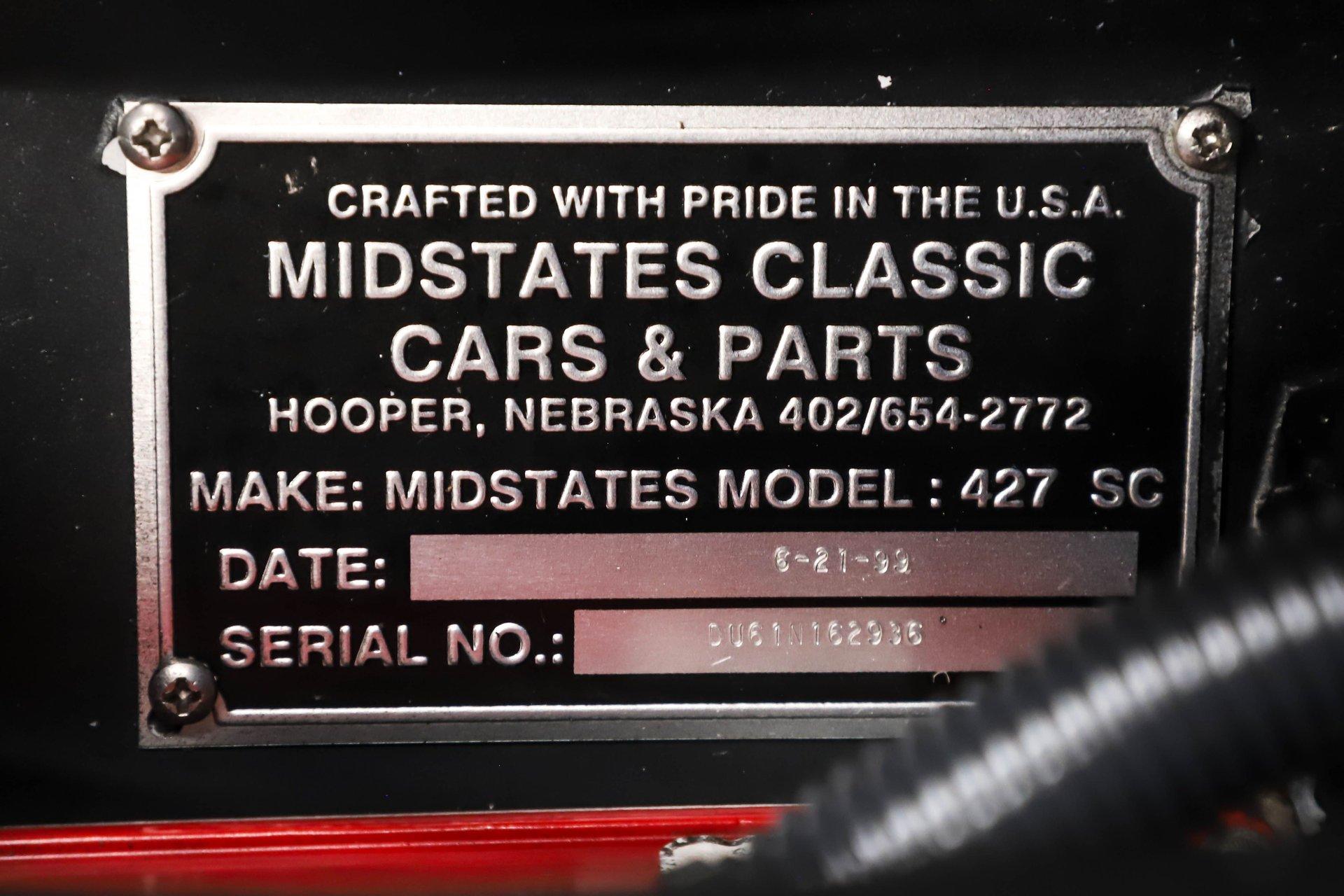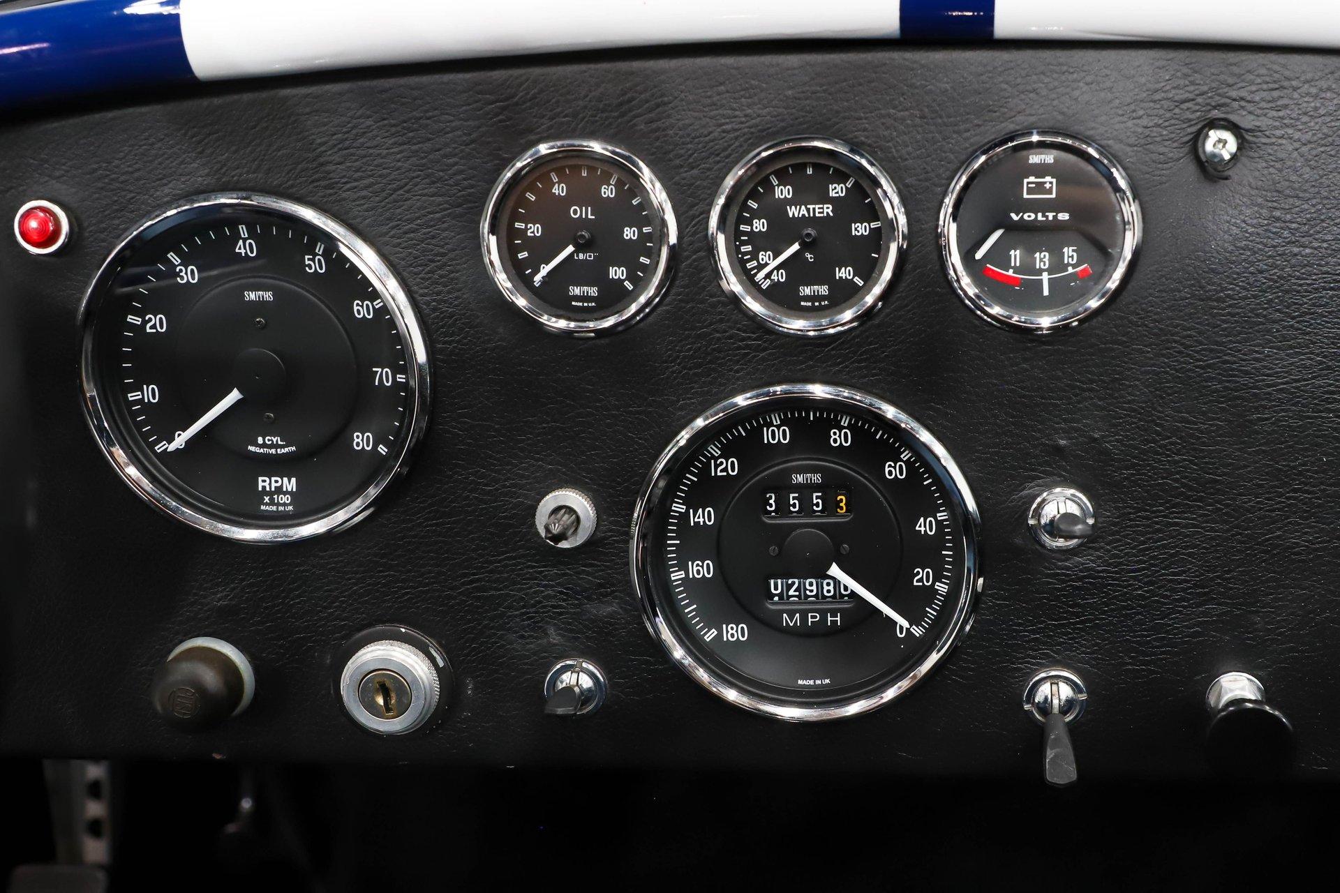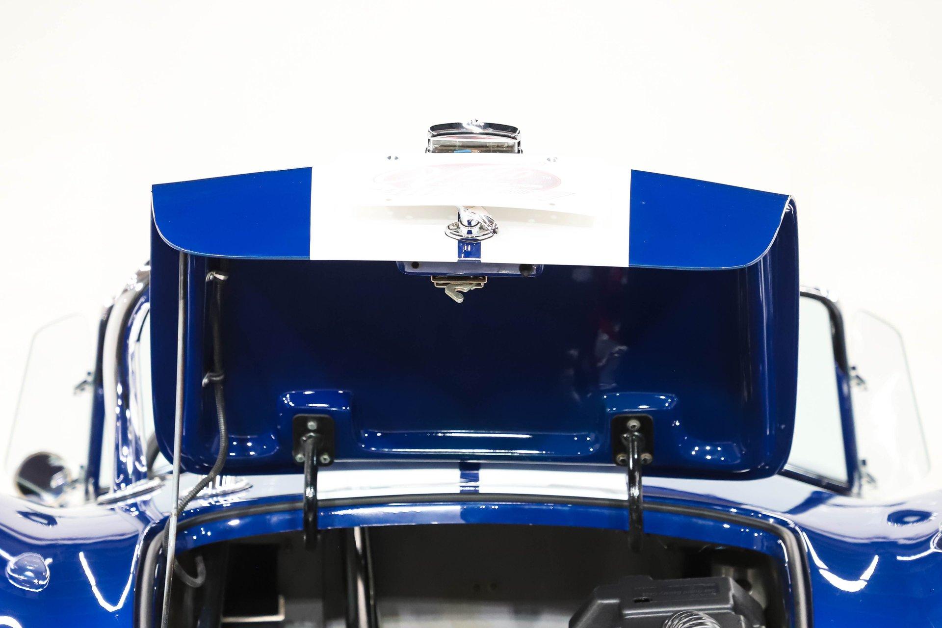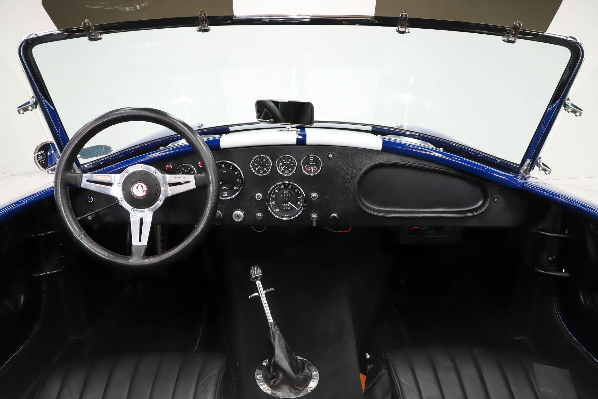 Celebrating our 65 year anniversary! This family owned and operated business was established in 1960, making us the oldest classic car dealership in America. Special thank you to all our customers for entrusting us to park the car of your dreams in your driveway while preserving automotive history for future generations to embrace and enjoy. -Grams family & Volo Museum staff You need some excitment in your life? This will do it! The power, the rumble, and the wind in your hair is exhilarating. The Midstates Classic fiberglass body has amazing fit and finish. This Cobra has just over 4500 miles on the build and only 1500 on the performance built engine. This one has all the makings of a classic with the traditional colors and real knock off wheels too. If your heart isn't beating faster yet, check your pulse! EXTERIOR: Classic beauty! The fiberglass has a really nice fit with good consistent gaps throughout. Looking down the side of the body it is nice and straight with beautifully smooth contours. The classic Monte Carlo Blue paint was applied with amazing attention to detail and the white racing stripes were painted on smooth to the touch. It has a shiny and reflective finish. The hood scoop, side pipes, and roll bar really enhance the profile. The pop up gas cap and remaining brightwork all have a lustrous shine. It has quick jack racing bumpers front and back that look really tough. It is complete with wing windows and tinted visors. Halogen headlights are a much appreciated addition. It is rolling on a set of Halibrand style 5 pin real knock off wheels. They are wrapped in BFGoodrich Radial T/A tires that are a beefy size P295/50/R15 in the rear. INTERIOR: Practical and pretty! It has an original design dash with all the necessary Smith gauges to monitor the vitals. The aftermarket Lecarra steering wheel is leather wrapped and has a nice fat grip. The bucket seats and door panels/pouches all have genuine leather upholstery that is durable and feels great. The Simpson racing harnesses keep you safe and snug when cutting the corners. The shifter for the 4 speed manual top loader transmission sits proudly front and center. A fire extinguisher has been mounted between the seats. The carpeting looks great and the floor has recessed foot wells built in to accommodate taller riders. ENGINE COMPARTMENT: Nicely dressed! The 390 Ford FE V8 has been nicely built and runs fantastic. It has an Eledbrock Performer intake manifold and is topped off with a fresh looking Holley 4 barrel carburetor that also has a new linkage. Billet aluminum brackets and pulleys present really nicely, as do the finned 427 Cobra valve covers and matching finned oval Cobra air cleaner. It has an upgraded MSD 6AL electronic ignition box and power steering too. It's equipped with a CNC brand dual reservoir master cylinder that also incorporates a hydraulic clutch reservoir. The radiator was recently upgraded to an oversized aluminum unit that has an electric fan. We just custom fabricated some aluminum panels that push air directly into the radiator. An engine oil cooler was recently added. All the belts and hoses look to be in great shape and the horn is hooked up. TRUNK COMPARTMENT: Utilitarian! The underside of the lid and jamb are painted slick like the exterior and the weatherstrip was replaced. The battery is located in the trunk and has a safety box that is properly vented. There is still enough room for a couple overnight duffle bags or folding chairs for the car show. UNDERSIDE: Excellent! This car is equipped with the optional round tube frame. It has rack & pinion steering for increasing handling and maneuverability. Up front is a Mustang ll front independent suspension with tubular control arms, swaybar, and coilover adjustable gas shocks. Out back is a 4 link system with tubular control arms and coilover adjustable gas shocks. It was recently upgraded to 4 wheel disc brakes that stop on a dime. The tough looking side pipes sing a song of mechanical perfection. The gas tank looks fresh. Looking up at the Ford 390 FE V8 you will see a remote oil filter and bright Ford Blue paint. The 4-speed close ratio top loader trans has a fresh looking linkage, mount, and Ford Blue paint too. A Ford 9 inch rear with 3.55 gears puts the power to the pavement. SERVICE: We take pride in our cars and reputation. Therefore, we built a 2 million dollar, 10,000 square ft service center, and hired a team of technicians to work it. This is so we can sell you the best cars within reason. Pure excitement! The raw power in a little lightweight sports car of awesome. The sound of those side pipes as you're shifting the gears is guaranteed to make your bad day great! For nearly 30 years, I, Jay Grams, have personally written the highlights for almost every car in our collection. What I provide is my professional opinion based on my experience with these vehicles. However, opinions can vary, and I strongly recommend a personal inspection to form your own view. Our sales team is always available to answer any questions you may have. One great option is to request a personalized walk-around video, where we can showcase the car and share our team’s insights. **Our cars are displayed within a museum setting. If you are interested in a specific vehicle, please schedule an appointment with a salesperson to view it. Without an appointment, there is an admission fee to enter the showroom. If you decide to purchase a car, your admission will be refunded, and you'll receive a one-year museum membership. 815 385 3644 9-5 central Sales@volocars.com Answered ASAP 4 wheel disc brakes Power steering Rack & pinion Hydraulic clutch Leather seats Racing harnesses Racing stripes Knock off wheels Roll bar Side pipes Hood scoop Pop up gas cap