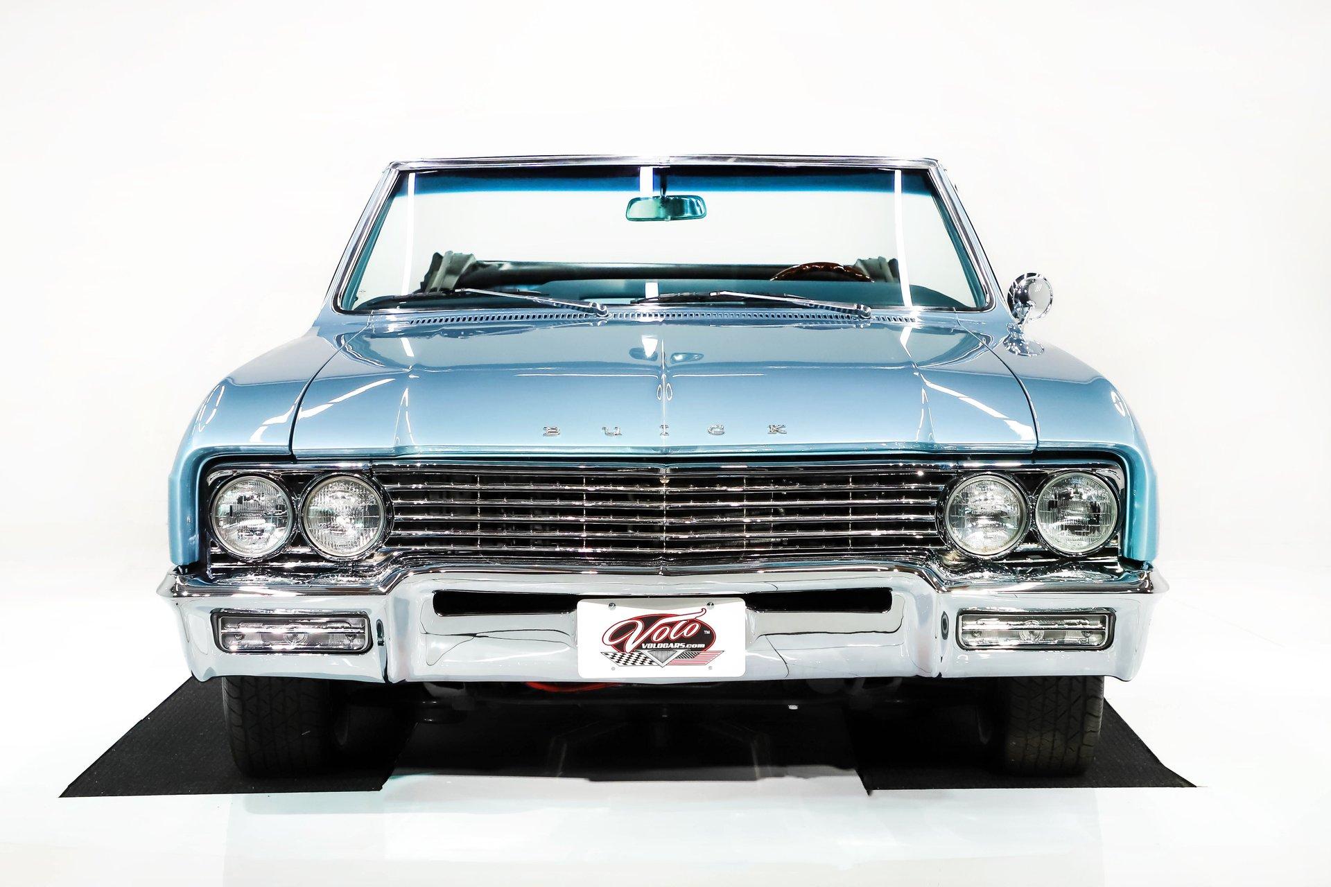 Celebrating our 65 year anniversary! This family owned and operated business was established in 1960, making us the oldest classic car dealership in America. Special thank you to all our customers for entrusting us to park the car of your dreams in your driveway while preserving automotive history for future generations to embrace and enjoy. -Grams family & Volo Museum staff INTRODUCTION: This car is the quintessential sleeper! A Buick with poverty wheels packing a 401 Nailhead that produces a whopping 455 ft lbs of torque and believe it or not there's a 4-speed between the bucket seats! It also offers some luxury like Vintage Air, Power steering and disc brakes along with a German cloth power top. From the outside nobody would even know you're packing some serious performance under the hood, and that's what I like most about it! **Since the pictures were taken it has been upgraded with speakers, center console, water pump, radiator, and electric fans. Pictures will be updated soon. EXTERIOR: I'm in love with the originality of this exterior! The reproduction radial redline tires and body colored rims with poverty hubcaps grabbed my attention right from the start. The paint is slick and glossy and was applied with great detail. The bumpers, grill, tail panel, trim, and handles have all been rechromed and have an elegant shine to them. Looking down the side of the body it is absolutely laser straight. All of the panels have been painstakingly aligned and the gaps are spot on throughout. The doors close just like a new car. The power convertible top has been upgraded with black canvas that looks fantastic. There is a blue boot that matches the interior as well when the top is down. INTERIOR: This interior has been completely refinished and looks tremendous! The front bucket seats have been recovered and recushioned and have great spring to them. An original looking Hurst 4 speed shifter proudly sits between the seats. The backseat has also been redone. It has seatbelts front and back. All the door panels have been replaced and the builder reused the very nice looking handles. The carpeting was also replaced and has matching mats. It's equipped with a Bosch triple gauge monitoring the vitals. The lower portion of the dash has been repainted just like the body and the upper portion has an optional dash pad. All the bezels look original but in great shape. A retro stereo fits in the factory hole. A Vintage Air climate control is now in place of the factory unit. All the gauges look original and there are additional indicator lights on the left side. The rearview mirror and sun visors have been replaced as well. The car may be a sleeper but not the steering wheel, its first class with a highly polished wood rim. ENGINE COMPARTMENT: This is where the cruiser meets the sleeper! Under the hood is a stout 401 Nailhead V8 engine producing 325 horsepower and a monstrous 445 foot pounds of torque. It has been neatly detailed and runs absolutely fantastic. It's equipped with a four barrel carburetor, air conditioning, power steering, and power brakes. It still has the factory correct air cleaner with the correct decals as well. Great looking finned aluminum valve covers and matching valley pan. All the hoses and wires have been replaced and routed appropriately. It looks like the radiator is fresh and has been upgraded with an electronic fan, additionally there is a transmission cooler mounted in front of the radiator. The battery is properly secured and has a Delco reproduction topper. The horns and squirters are hooked up and there's even a correct glass GM windshield washer fluid bottle mounted on the fender well. The underside of the hood has been repainted satin black and is complete with insulation. The inside of the fender wells and firewall have neatly been painted satin black and even the factory cowl tag is still in place. It is show quality! TRUNK COMPARTMENT: This trunk has been neatly refinished and has a stock appearance. The underside of the trunk lid and jamb have been painted the same color as the exterior. The weatherstrip and well liner was replaced. The floor pan metal looks solid and is painted with a factory style spatter paint. It is equipped with a rubber mat and a full size spare tire that has a vinyl cover. The convertible top boot is currently being stored in the trunk as well. UNDERSIDE: This car has received a detailed restoration then was maintained as needed since completion. It appears that the steering gearbox and center link have been replaced. The front suspension has been upgraded with tubular upper and lower control arms as well as Gas-A-Just coilover shocks. It has a sway bar as well. The rear suspension also looks great with fresh shocks and springs. It has power brakes that are discs up front and drum in the rear, all the lines have been replaced also. It is equipped with a full dual exhaust system that was replaced during restoration and has Flowmaster mufflers. Looking up at the 401 Nailhead V8 engine everything looks clean and correct. Same thing goes for the Muncie M-21 4-speed manual transmission, it looks like it was serviced and does not have any visible leaks. It has a 10 bolt rear end that was neatly painted black. The floors appear to have been undercoated from the factory and freshened up with black paint. SERVICE: Our professional team of mechanics have inspected this vehicle and replaced the convertible top latch, replaced the driver's door latch, then replaced the front brake hoses and bled the system. This car is now ready to cruise with confidence! It's often the subtleties that make the biggest impact, and that's the effect that this convertible cruiser has. The 401 Nailhead V8 and 4 speed manual transmission transform this classic into sleeper status. This car is whispering class and elegance but screams when you mash the gas pedal! I, Jay Grams, take pride in personally writing the descriptions for virtually every car for about the last 30 yea