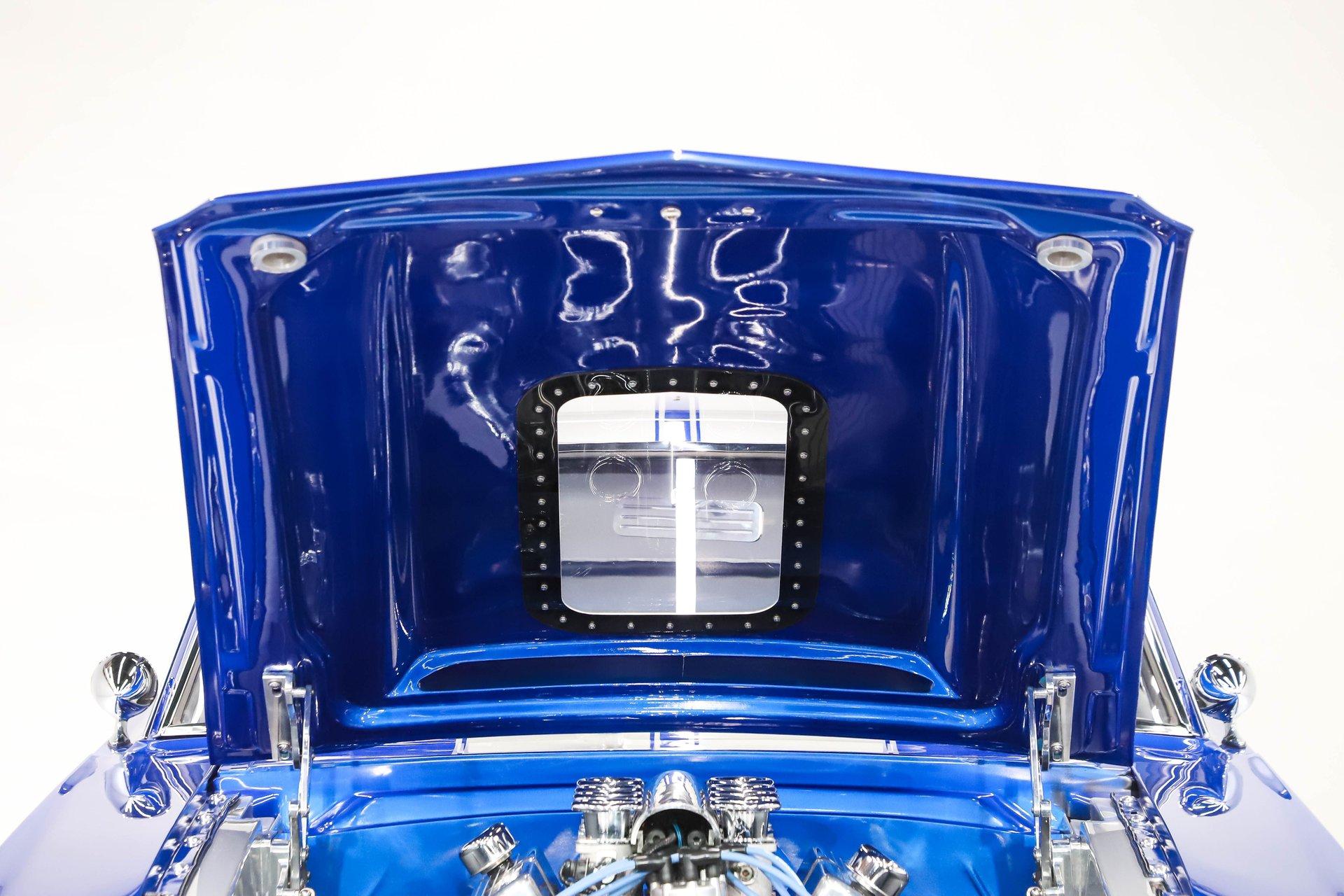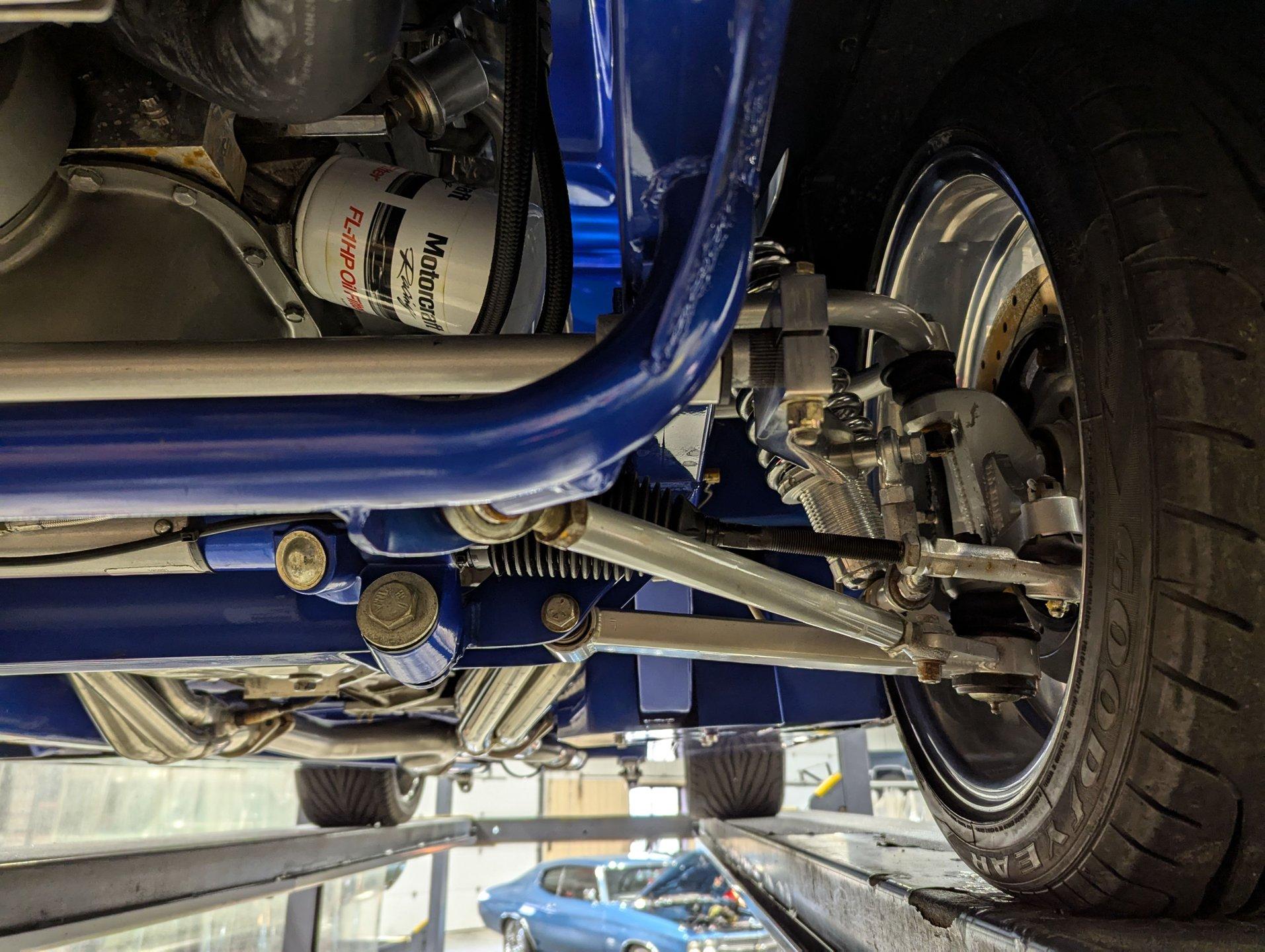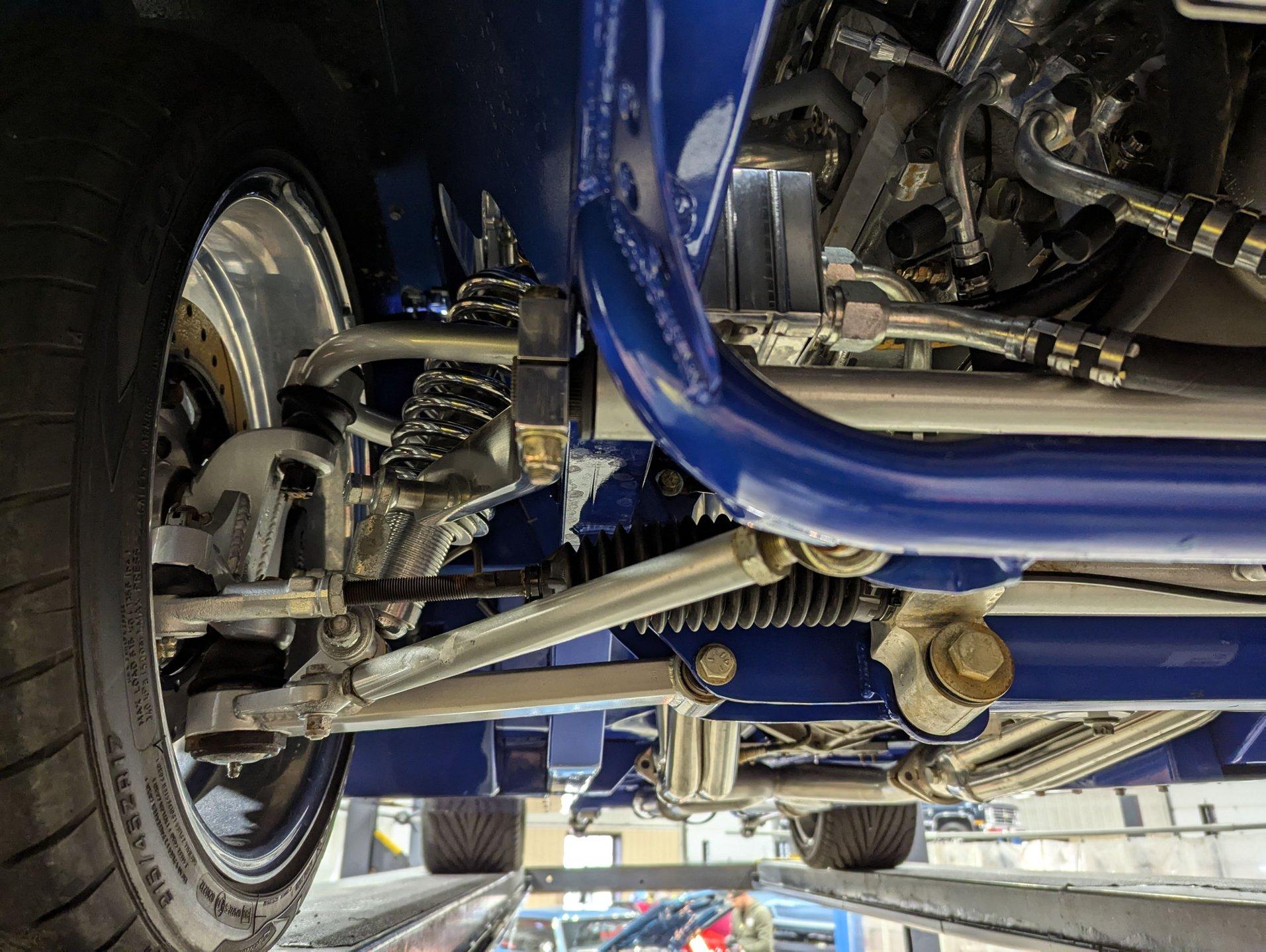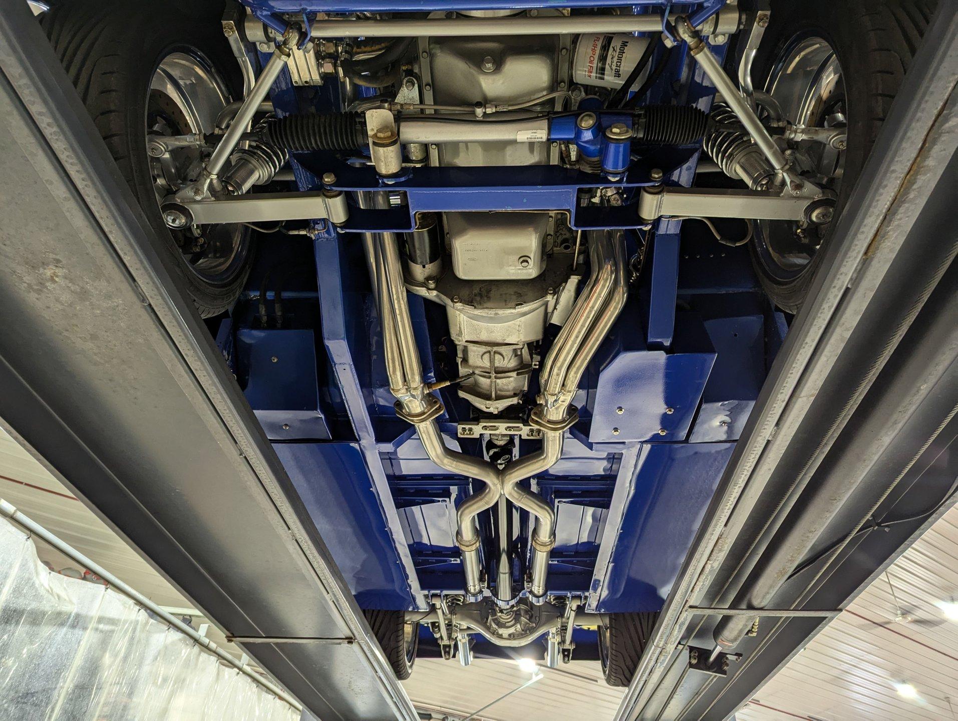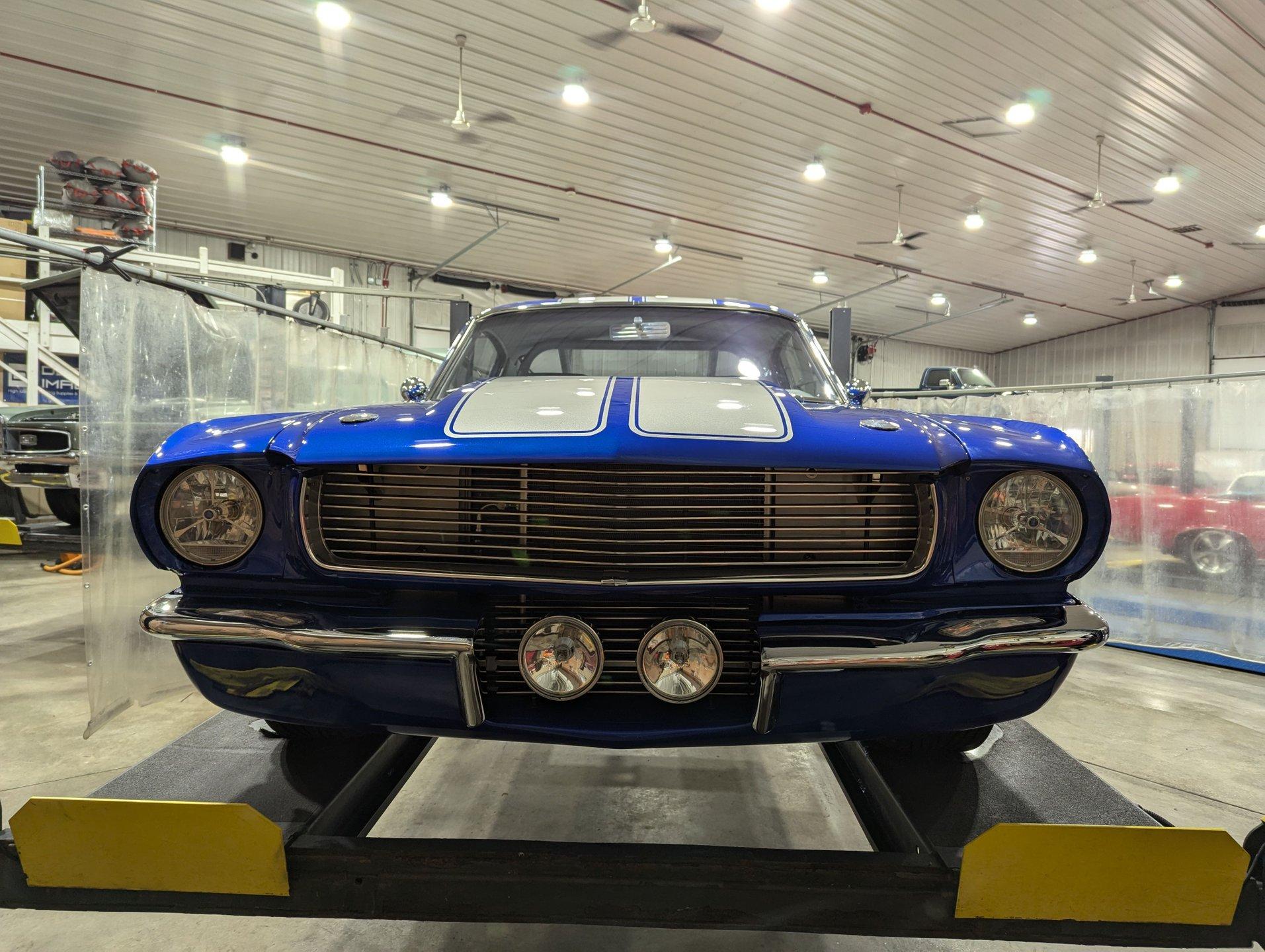 Celebrating our 65 year anniversary! This family owned and operated business was established in 1960, making us the oldest classic car dealership in America. Special thank you to all our customers for entrusting us to park the car of your dreams in your driveway while preserving automotive history for future generations to embrace and enjoy. -Grams family & Volo Museum staff Introduction: $250,000 custom build! A skillfully crafted rotisserie restoration, Martz chassis, and stacked fuel injection plus a long list of creature comforts have this Mustang running at the front of the herd! EXTERIOR: The body was lowered 4 inches and has a great stance. Several body modifications were made including shaved door handles and a trunk lock. Also, all the seams were filled in for an even sleeker look. The custom front valance looks so sharp with its custom made smooth split bumpers. The tail panel is also custom with tucked and smooth split bumpers. A set of Shelby style sequential LED taillights were installed, and man does it look good when they are lit up! The cowl hood and dovetail trunk lid really enhance the profile. The molded in ¼ panel scoops and see through hood are wonderful custom touches. Everything has been painted a gorgeous custom Vibrant Blue Metallic with silver stripes. It has all new glass including the Shelby ¼ windows. The chrome and trim was all replaced and looking sharp. The entire ensemble is rolling on a sweet set of polished mags by Hopster Wheels. They are size 17x8 in front and 17x11 in the rear, for optimal traction. INTERIOR: Even the door jambs are custom with their lit up sill plates and wireless electrical contacts. The Auto Meter Carbon Fiber Ultra-Lite gauges are both practical and nice looking. There is a bunch of controls concealed in the custom made center console which helps things stay clean looking. It has an upgraded Flaming River polished tilt column and an aftermarket wheel with a nice fat grip. Top quality Mercedes style square weave premium carpet and mats with bound edges even behind the seats is nicely finished with carpeting and a custom speaker enclosure. The genuine leather upholstered sport seats have power controls and are very supportive. The roll cage is also leather wrapped to match. ENGINE COMPARTMENT: A high performance 302 from the Engine Factory is making 350hp. It's a precision machined 302 roller block with a nodular crank, double roller timing chain, Comp roller cam, roller rockers and more. The Edelbrock aluminum heads have stainless swirl polished valves, heavy duty springs, and chro moly pushrods. On top is a super cool looking Fast EZ-EFI self tuning 8 stack fuel injection system. The engine is flanked by a nice set of BBK coated headers. Under the hood is full of polished aluminum parts plus the front of the engine has a billet runner system, polished alternator, and A/C compressor. The engine bay is all smooth fabricated metal including the firewall. The custom radiator support keeps things very neat and clean. The builder spent much time hiding wires and hoses. Billet hinges assure the hood glides up and down smoothly TRUNK COMPARTMENT: Hit the power trunk release and inside you will see expertly reconstructed floor and massive wheel wells. You will also find the relocated battery and a fuel cell. UNDERSIDE: Full frame custom suspension from Martz Chassis. Upfront is a completely reconfigured independent suspension with coilover adjustable gas shocks, a splined swaybar, and rack & pinion steering. This ties into an actual boxed frame that connects to the rear clip. In back is a 4 link system with tubular control arms, a panhard bar, splined swaybar and coilover adjustable gas shocks. Looking up at the engine everything looks fresh and clean. The Tremec 5 speed manual transmission has a Ford Racing clutch and a custom aluminum mount. A fresh driveshaft leads to the Ford 9 inch rear end with Moser axles and 4.11 posi gears. The floor pans were all custom fabricated and hide the wires and lines. It's painted as slick underneath as on top. SERVICE: We take pride in our cars and reputation. Therefore, we built a 2 million dollar, 10,000 square ft service center, and hired a team of technicians to work it. This is so we can sell you the best cars within reason. This wild stallion was built for the modern day cowboy! All the build time and money has already been spent. Now it's time to have some fun, win some trophies, and do some photo shoots for magazine covers! For nearly 30 years, I, Jay Grams, have personally written the highlights for almost every car in our collection. What I provide is my professional opinion based on my experience with these vehicles. However, opinions can vary, and I strongly recommend a personal inspection to form your own view. Our sales team is always available to answer any questions you may have. One great option is to request a personalized walk-around video, where we can showcase the car and share our team’s insights. **Our cars are displayed within a museum setting. If you are interested in a specific vehicle, please schedule an appointment with a salesperson to view it. Without an appointment, there is an admission fee to enter the showroom. If you decide to purchase a car, your admission will be refunded, and you'll receive a one-year museum membership. 815 385 3644 9-5 central Sales@volocars.com Answered ASAP Air conditioning Fuel Injection Power steering Rack & pinion 4 wheel disc Drilled & slotted Custom chassis Custom suspension 4 link 9” rear end Roll bar Custom interior Push button start Leather upholstery Bucket seats Center console Tilt wheel Custom stereo Power windows Door poppers Power seats Power trunk Sport mirrors Body mods Raised hood Spoiler Stripes Mag wheels Radial tires Fog lights Hood pins