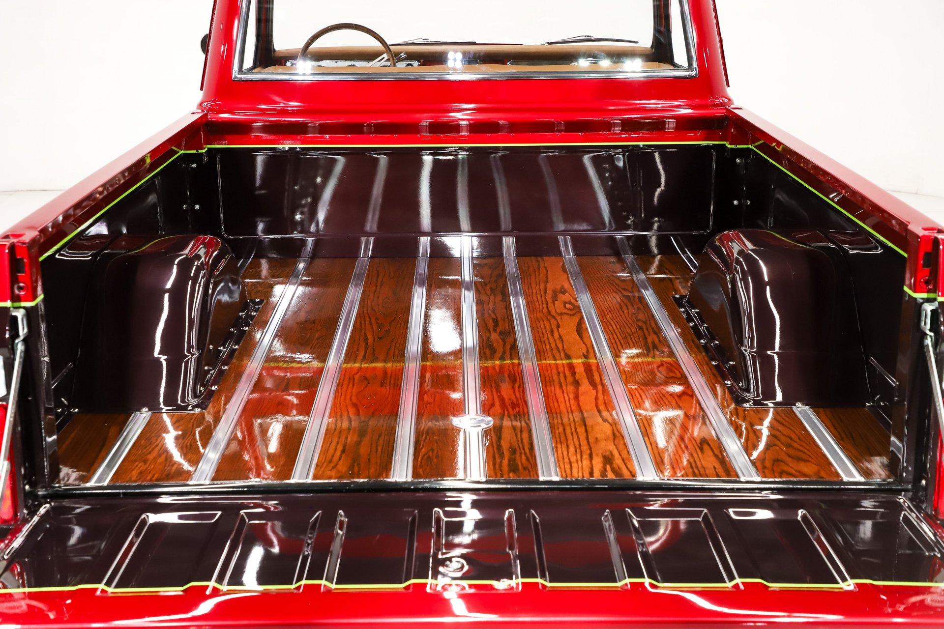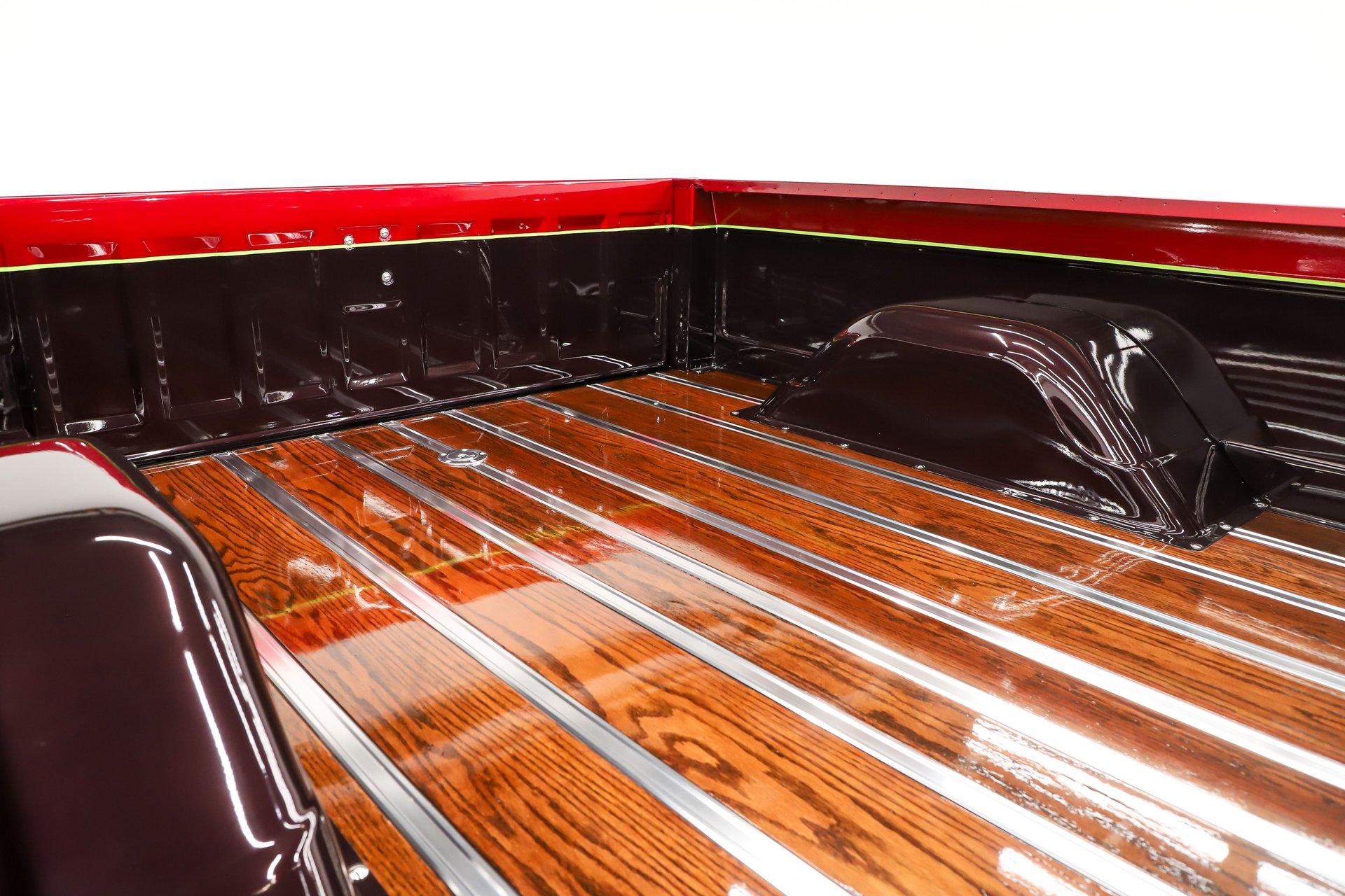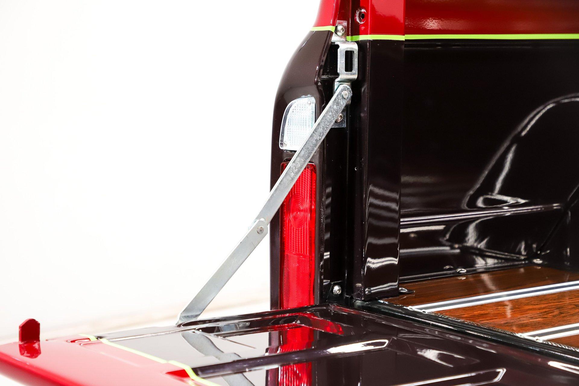 Celebrating our 65 year anniversary! This family owned and operated business was established in 1960, making us the oldest classic car dealership in America. Special thank you to all our customers for entrusting us to park the car of your dreams in your driveway while preserving automotive history for future generations to embrace and enjoy. -Grams family & Volo Museum staff INTRODUCTION: Just over 700 miles since a complete body off frame, custom restoration. It has a lot of features that would cost a lot of money to duplicate like the two-tone paint job, luxurious interior and a performance big block. EXTERIOR: The body's been cleaned up by removing the moldings, emblems and gas cap. A cowl hood was added to give a hint there may be some muscle sitting below it. Beautiful custom paint job with black cherry metallic on the bottom, red metallic on top and it's broken up with a lime pinstripe. The paint scheme even continues in the jambs. The front bumper is smooth with no bumper bolts or turn signals, those are now behind the custom grille. The rear chrome bumper is smoothed out as well. The glass was replaced, the vent windows were removed for a cleaner one piece glass. It's sitting on 17 inch American Racing five spoke polished wheels wrapped in performance tires. INTERIOR: It has a very classy custom upholstery job. The bench seat, door panels and even the headliner are matching materials with custom stitching. I like the cup holders built right into the seat! Dash pads are also upholstered to match. It has a new chrome instrument bezel which is home to some sharp looking white face custom gauges. The glovebox door was chromed like a mirror. A retro stereo fits in the factory location, there are kick panel speakers delivering your favorite songs. Upgraded Vintage Air heater controls that have electric slides instead of cables. The walnut steering wheel is mounted on a chrome tilt column. It has nice carpet down on the floor with matching floor mats. It was given an updated wiring system and it even has power windows! ENGINE COMPARTMENT: 454 big block built by Tom Hall. It has rectangular port heads, and Enduarashine intake, dual feed Holley carb, HEI ignition and coated headers. CVF front runner system with polished a/c compressor, brackets, pulleys and alternator. Chrome hydroboost power steering and brakes. An electric water pump aluminum radiator, dual electric fans keeps it running cool. The engine bay is smoothed out and painted glossy. TRUNK COMPARTMENT: Inside the bed is very impressive, it carries the same two-tone custom paint as the exterior. The floor is done in refinished oak with smooth stainless strips. There is the relocated flush mount fuel cap on the floor too. UNDERSIDE: It has been body off the frame restored! The suspension and steering was rebuilt and has upgraded swaybars.The exhaust is custom stainless with X-Pipe, Flowmaster mufflers and polished tips. It also has a custom fuel system with a stainless tank. Upgraded to Wilwood drilled and slotted disc brakes at all four wheels. Looking up at the motor it has a chrome oil pan and flywheel cover. The trans is an FTI Performance 700R4 overdrive stage 3 automatic. A driveshaft leads back to the 12 bolt rear end. The floors are in outstanding shape, they're sprayed with a color matched chip guard paint. The chassis has been painted, I see a lot of new hardware showing. SERVICE: We take pride in our cars and reputation. Therefore, we built a 2 million dollar, 10,000 square ft service center, and hired a team of technicians to service the essentials on every car we sell. CONCLUSION: This isn't your typical restored truck, it was taken next level making it a show worthy custom. When you're not at the shows collecting trophies you can be enjoying the power from that big block and the comforts of the air conditioning! For nearly 30 years, I, Jay Grams, have personally written the highlights for almost every car in our collection. What I provide is my professional opinion based on my experience with these vehicles. However, opinions can vary, and I strongly recommend a personal inspection to form your own view. Our sales team is always available to answer any questions you may have. One great option is to request a personalized walk-around video, where we can showcase the car and share our team’s insights. **Our cars are displayed within a museum setting. If you are interested in a specific vehicle, please schedule an appointment with a salesperson to view it. Without an appointment, there is an admission fee to enter the showroom. If you decide to purchase a car, your admission will be refunded, and you'll receive a one-year museum membership. ☎️ 815 385 3644 9-5 central ? Sales@volocars.com Answered ASAP Air conditioning Power steering Power brakes 4 wheel disc Tilt column Power windows Retro stereo system Custom gauges 18” wheels