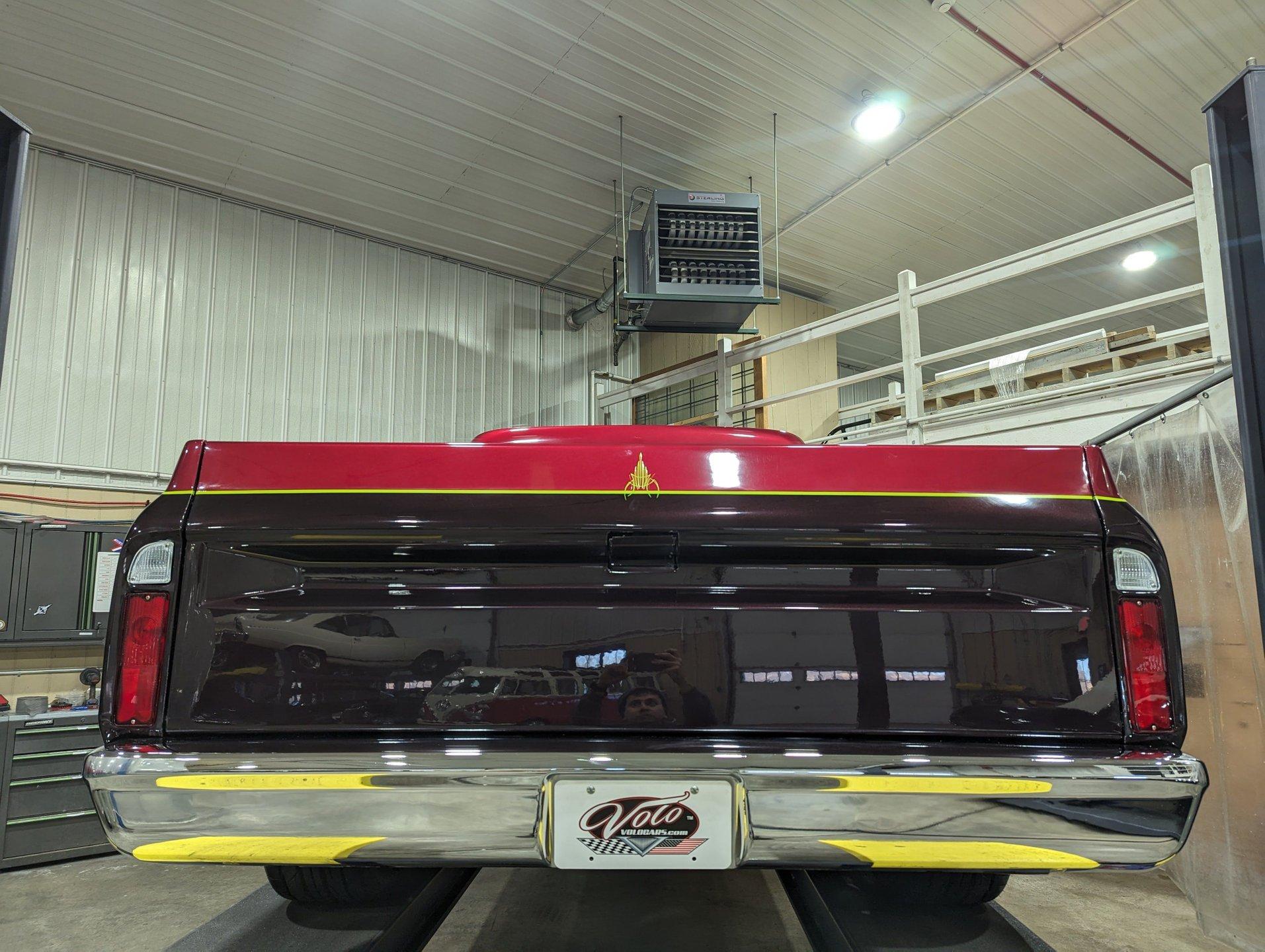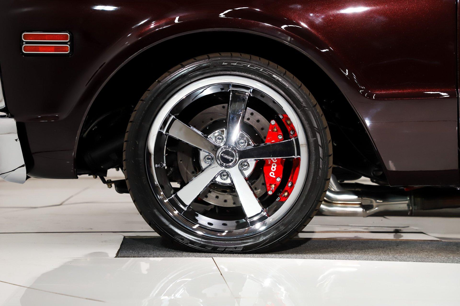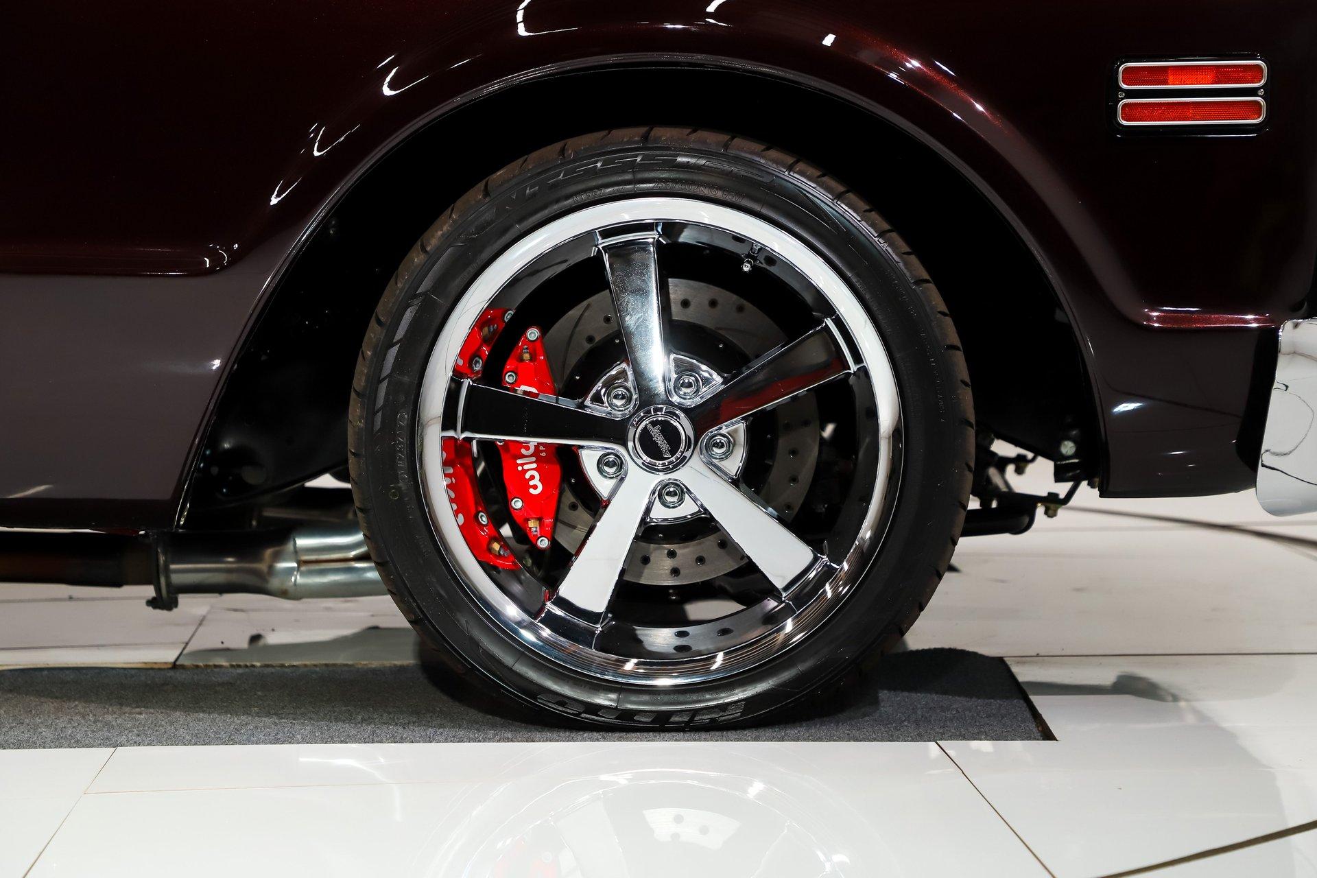Celebrating our 65 year anniversary! This family owned and operated business was established in 1960, making us the oldest classic car dealership in America. Special thank you to all our customers for entrusting us to park the car of your dreams in your driveway while preserving automotive history for future generations to embrace and enjoy. -Grams family & Volo Museum staff INTRODUCTION: Just over 700 miles since a complete body off frame, custom restoration. It has a lot of features that would cost a lot of money to duplicate like the two-tone paint job, luxurious interior and a performance big block. EXTERIOR: The body's been cleaned up by removing the moldings, emblems and gas cap. A cowl hood was added to give a hint there may be some muscle sitting below it. Beautiful custom paint job with black cherry metallic on the bottom, red metallic on top and it's broken up with a lime pinstripe. The paint scheme even continues in the jambs. The front bumper is smooth with no bumper bolts or turn signals, those are now behind the custom grille. The rear chrome bumper is smoothed out as well. The glass was replaced, the vent windows were removed for a cleaner one piece glass. It's sitting on 17 inch American Racing five spoke polished wheels wrapped in performance tires. INTERIOR: It has a very classy custom upholstery job. The bench seat, door panels and even the headliner are matching materials with custom stitching. I like the cup holders built right into the seat! Dash pads are also upholstered to match. It has a new chrome instrument bezel which is home to some sharp looking white face custom gauges. The glovebox door was chromed like a mirror. A retro stereo fits in the factory location, there are kick panel speakers delivering your favorite songs. Upgraded Vintage Air heater controls that have electric slides instead of cables. The walnut steering wheel is mounted on a chrome tilt column. It has nice carpet down on the floor with matching floor mats. It was given an updated wiring system and it even has power windows! ENGINE COMPARTMENT: 454 big block built by Tom Hall. It has rectangular port heads, and Enduarashine intake, dual feed Holley carb, HEI ignition and coated headers. CVF front runner system with polished a/c compressor, brackets, pulleys and alternator. Chrome hydroboost power steering and brakes. An electric water pump aluminum radiator, dual electric fans keeps it running cool. The engine bay is smoothed out and painted glossy. TRUNK COMPARTMENT: Inside the bed is very impressive, it carries the same two-tone custom paint as the exterior. The floor is done in refinished oak with smooth stainless strips. There is the relocated flush mount fuel cap on the floor too. UNDERSIDE: It has been body off the frame restored! The suspension and steering was rebuilt and has upgraded swaybars.The exhaust is custom stainless with X-Pipe, Flowmaster mufflers and polished tips. It also has a custom fuel system with a stainless tank. Upgraded to Wilwood drilled and slotted disc brakes at all four wheels. Looking up at the motor it has a chrome oil pan and flywheel cover. The trans is an FTI Performance 700R4 overdrive stage 3 automatic. A driveshaft leads back to the 12 bolt rear end. The floors are in outstanding shape, they're sprayed with a color matched chip guard paint. The chassis has been painted, I see a lot of new hardware showing. SERVICE: We take pride in our cars and reputation. Therefore, we built a 2 million dollar, 10,000 square ft service center, and hired a team of technicians to service the essentials on every car we sell. CONCLUSION: This isn't your typical restored truck, it was taken next level making it a show worthy custom. When you're not at the shows collecting trophies you can be enjoying the power from that big block and the comforts of the air conditioning! For nearly 30 years, I, Jay Grams, have personally written the highlights for almost every car in our collection. What I provide is my professional opinion based on my experience with these vehicles. However, opinions can vary, and I strongly recommend a personal inspection to form your own view. Our sales team is always available to answer any questions you may have. One great option is to request a personalized walk-around video, where we can showcase the car and share our team’s insights. **Our cars are displayed within a museum setting. If you are interested in a specific vehicle, please schedule an appointment with a salesperson to view it. Without an appointment, there is an admission fee to enter the showroom. If you decide to purchase a car, your admission will be refunded, and you'll receive a one-year museum membership. ☎️ 815 385 3644 9-5 central ? Sales@volocars.com Answered ASAP Air conditioning Power steering Power brakes 4 wheel disc Tilt column Power windows Retro stereo system Custom gauges 18” wheels