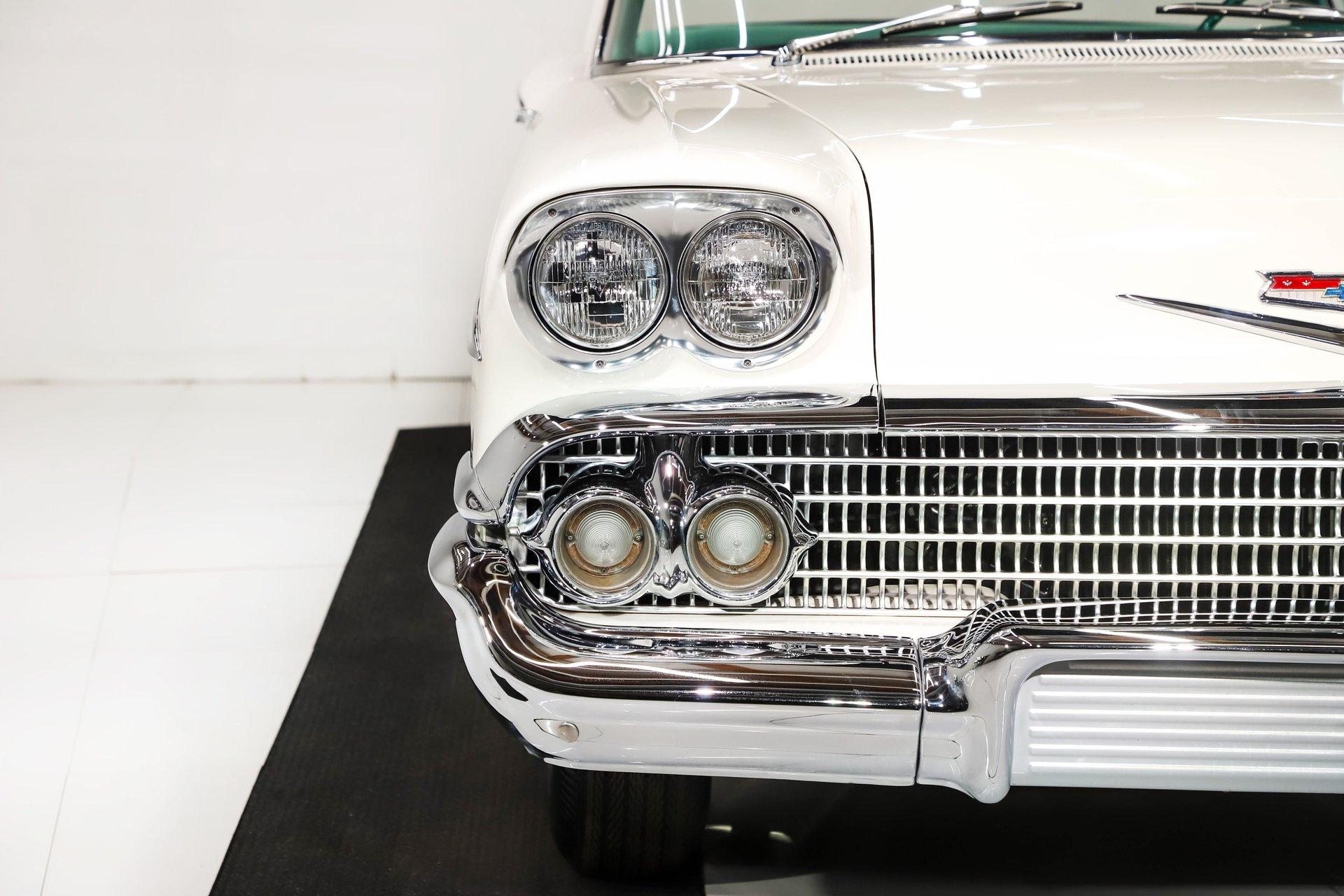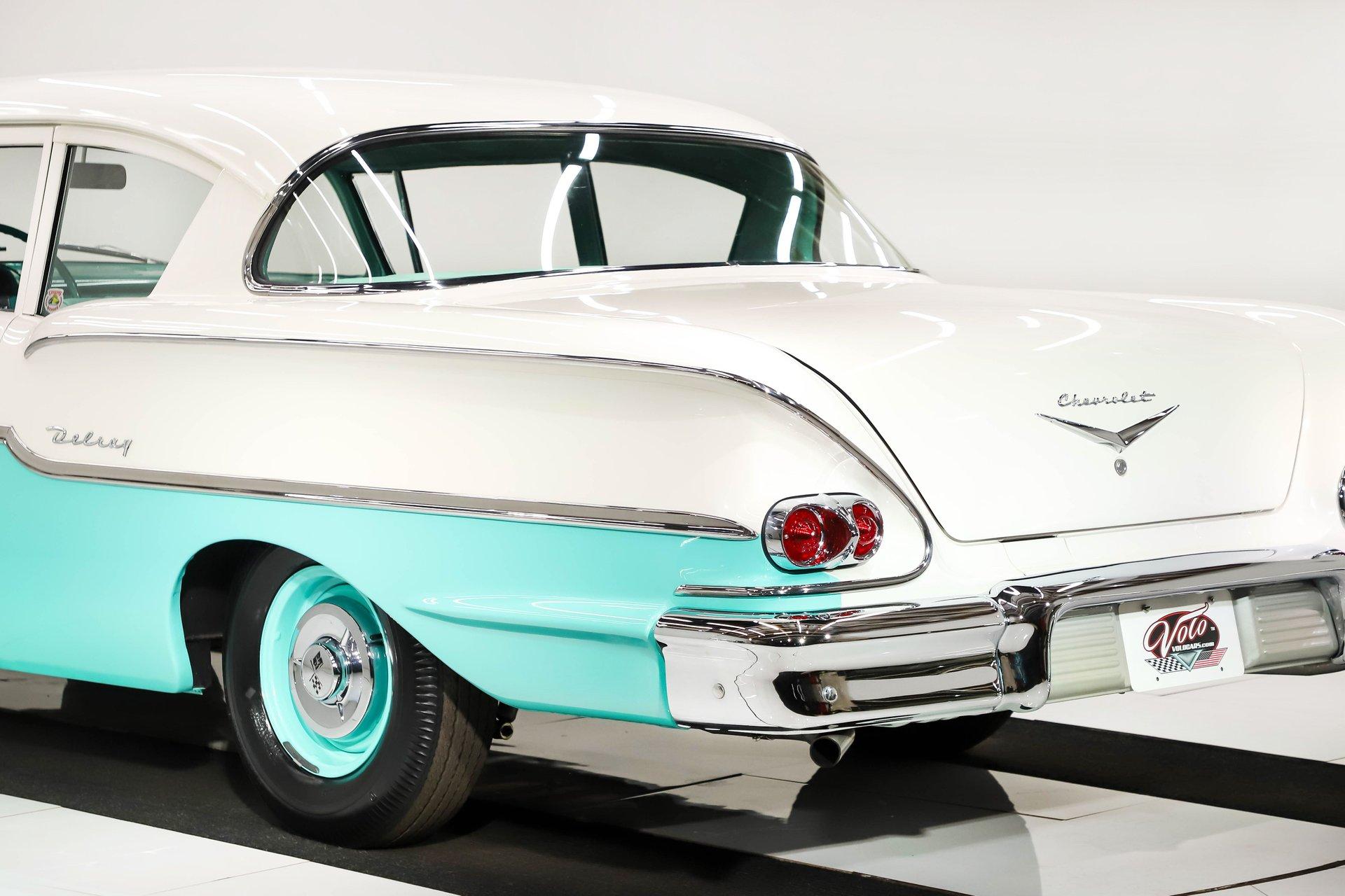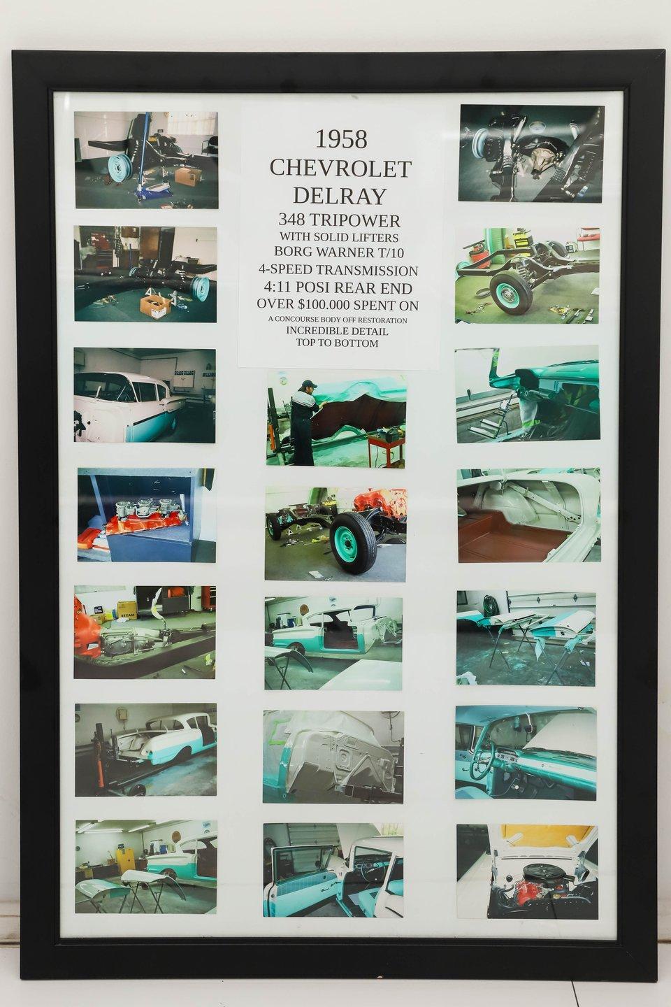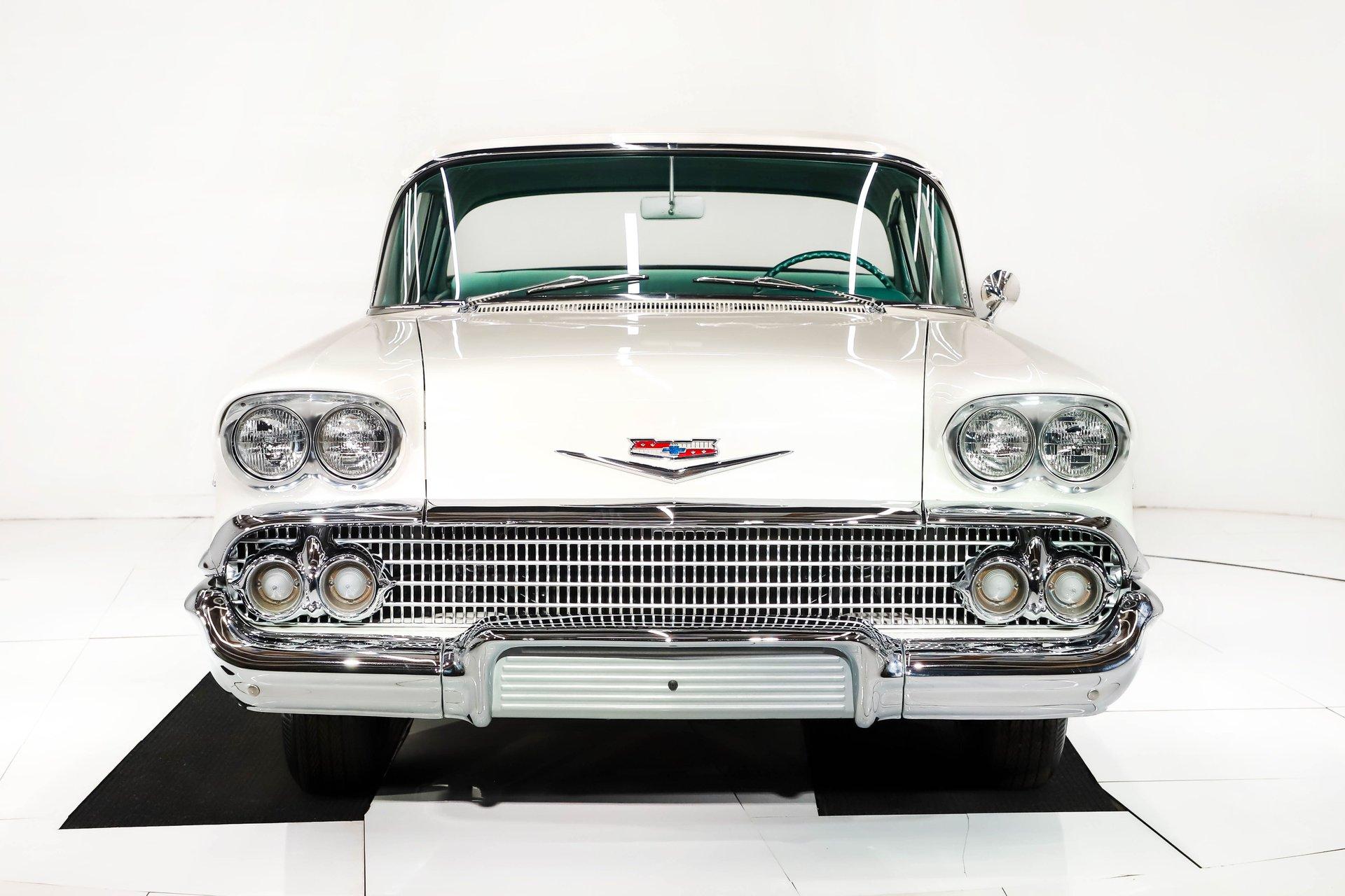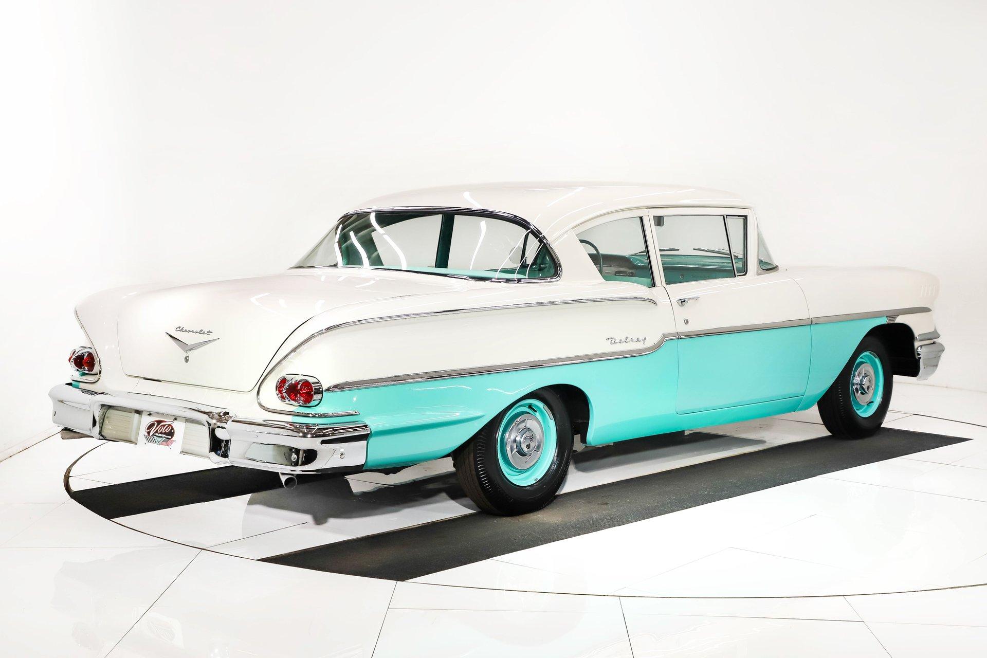 AACA 1st place winner. Full body off frame, rotisserie restoration to factory specs. We have photos. The original muscle car! a stripped down, base model with a NASCAR approved 348-315 hp motor featuring solid lifters and tri-power carbs. A 4-speed and 4.11 posi completes the package. EXTERIOR: Is this Grandma's grocery getter? It may appear that way but not a chance! The post sedan body was completely stripped down and restored like new. Repainted its original subtle colors. Any chrome, trim or stainless was restored or replaced. It even got all new glass. At the time NOS tires were installed on the restored poverty wheels. INTERIOR: No frills base model interior with a radio delete, basic heater and basic upholstery. All that mattered was the 4-speed on the floor. It is of course completely restored to factory condition. The metal was repainted, the upholsteries were replaced etc. It has the correct bench seat shifter with a little white ball. ENGINE COMPARTMENT: Here it is, the first big block! Jumping from a 283 small block in 1957 to a 348 in 1958. This one is the high performance version with solid lifters and 3 carbs on top! It has been completely rebuilt and dressed in factory components including the big air cleaner. It has correct choke tube, glass bowl filter, reproduction hoses etc. the engine bay was completely apart and detailed. TRUNK COMPARTMENT: Completely repainted throughout. Correct rubber mat, weatherstrip and decal. Complete with restored rim with reproduction tire and a jack assembly. UNDERSIDE: It was taken off the frame and flipped on a rotisserie. It's still like brand new underneath. The metal floors are pristine and properly painted in red oxide primer. The x-frame was prepped and painted black along with the other suspension components. The steering and suspension were completely rebuilt. The brake system has been entirely restored along with the fuel system. It has a correct dual exhaust system that runs neatly along the frame. Looking up at the motor it is spotless Chevy Orange with canister type oil filter and correct flywheel cover. The T-10 4-speed is also completely fresh looking. A rebuilt drive shaft leads back to high performance 4.11 posi rear! It's spotless under here, this is a big part of the reason I purchased this car. SERVICE: We inspected this one and all we had to do was fix the blower and a turn signal wire. Very cool old school sleeper, the restoration would cost much more than we are asking. I love the model car that is included, it is this car exactly! For nearly 30 years, I, Jay Grams, have personally written the highlights for almost every car in our collection. What I provide is my professional opinion based on my experience with these vehicles. However, opinions can vary, and I strongly recommend a personal inspection to form your own view. Our sales team is always available to answer any questions you may have. One great option is to request a personalized walk-around video, where we can showcase the car and share our team’s insights. **Our cars are displayed within a museum setting. If you are interested in a specific vehicle, please schedule an appointment with a salesperson to view it. Without an appointment, there is an admission fee to enter the showroom. If you decide to purchase a car, your admission will be refunded, and you'll receive a one-year museum membership. 815 385 3644 9-5 central Sales@volocars.com Answered ASAP Tri-power carbs T-10 4-speed 4.11 posi Dual exhaust
