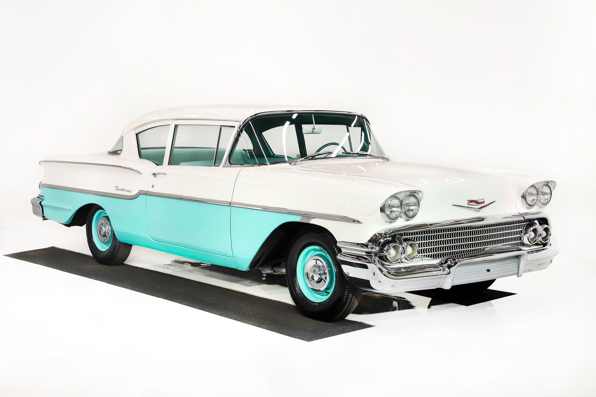 AACA 1st place winner. Full body off frame, rotisserie restoration to factory specs. We have photos. The original muscle car! a stripped down, base model with a NASCAR approved 348-315 hp motor featuring solid lifters and tri-power carbs. A 4-speed and 4.11 posi completes the package. EXTERIOR: Is this Grandma's grocery getter? It may appear that way but not a chance! The post sedan body was completely stripped down and restored like new. Repainted its original subtle colors. Any chrome, trim or stainless was restored or replaced. It even got all new glass. At the time NOS tires were installed on the restored poverty wheels. INTERIOR: No frills base model interior with a radio delete, basic heater and basic upholstery. All that mattered was the 4-speed on the floor. It is of course completely restored to factory condition. The metal was repainted, the upholsteries were replaced etc. It has the correct bench seat shifter with a little white ball. ENGINE COMPARTMENT: Here it is, the first big block! Jumping from a 283 small block in 1957 to a 348 in 1958. This one is the high performance version with solid lifters and 3 carbs on top! It has been completely rebuilt and dressed in factory components including the big air cleaner. It has correct choke tube, glass bowl filter, reproduction hoses etc. the engine bay was completely apart and detailed. TRUNK COMPARTMENT: Completely repainted throughout. Correct rubber mat, weatherstrip and decal. Complete with restored rim with reproduction tire and a jack assembly. UNDERSIDE: It was taken off the frame and flipped on a rotisserie. It's still like brand new underneath. The metal floors are pristine and properly painted in red oxide primer. The x-frame was prepped and painted black along with the other suspension components. The steering and suspension were completely rebuilt. The brake system has been entirely restored along with the fuel system. It has a correct dual exhaust system that runs neatly along the frame. Looking up at the motor it is spotless Chevy Orange with canister type oil filter and correct flywheel cover. The T-10 4-speed is also completely fresh looking. A rebuilt drive shaft leads back to high performance 4.11 posi rear! It's spotless under here, this is a big part of the reason I purchased this car. SERVICE: We inspected this one and all we had to do was fix the blower and a turn signal wire. CONCLUSION: Very cool old school sleeper, the restoration would cost much more than we are asking. I love the model car that is included, it is this car exactly! Vehicles are displayed in a museum setting. Admission applies without an appointment and is refunded with purchase, including a one-year museum membership. 815 385 3644 9-5 central Sales@volocars.com Answered ASAP Tri-power carbs T-10 4-speed 4.11 posi Dual exhaust