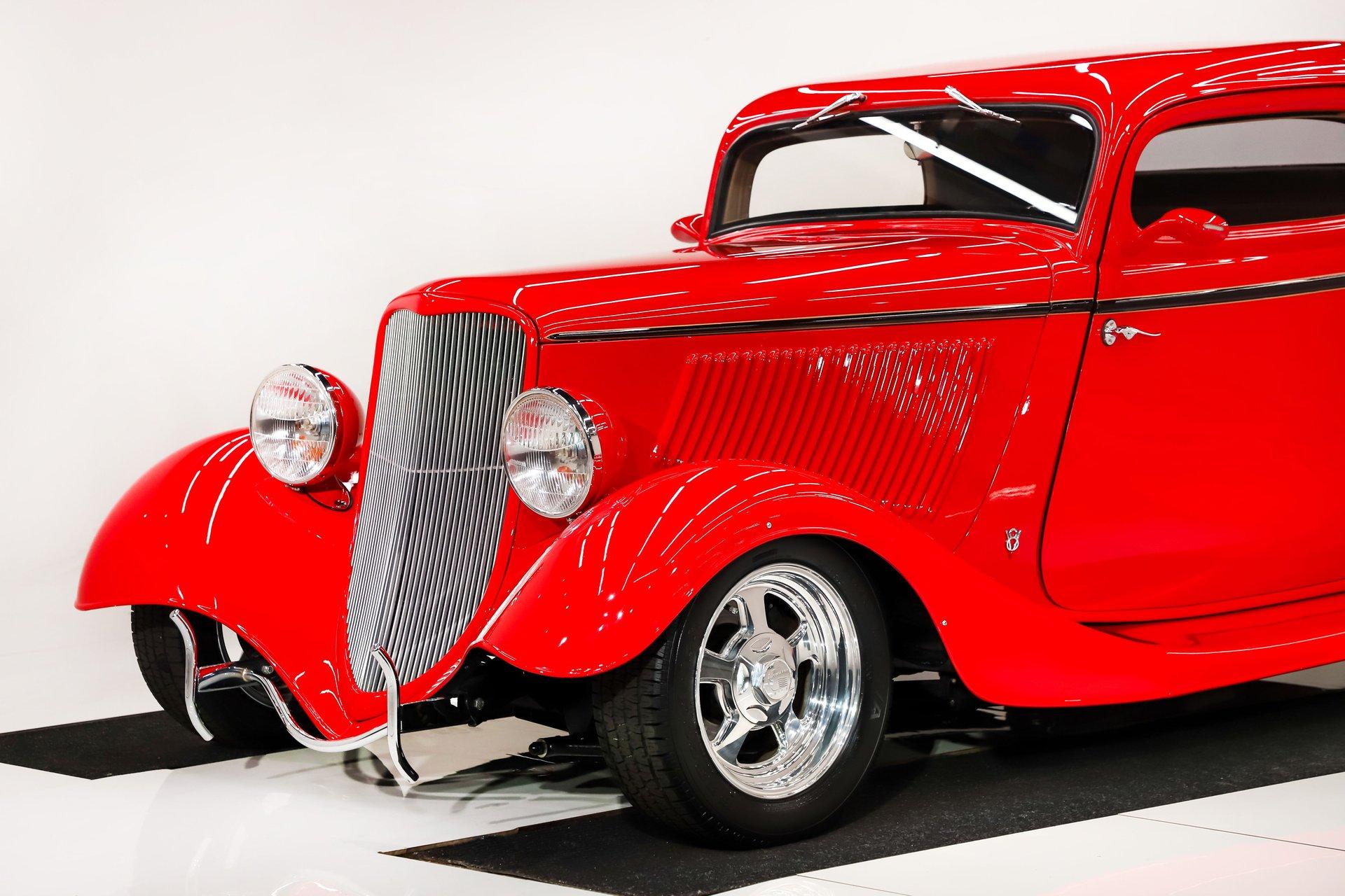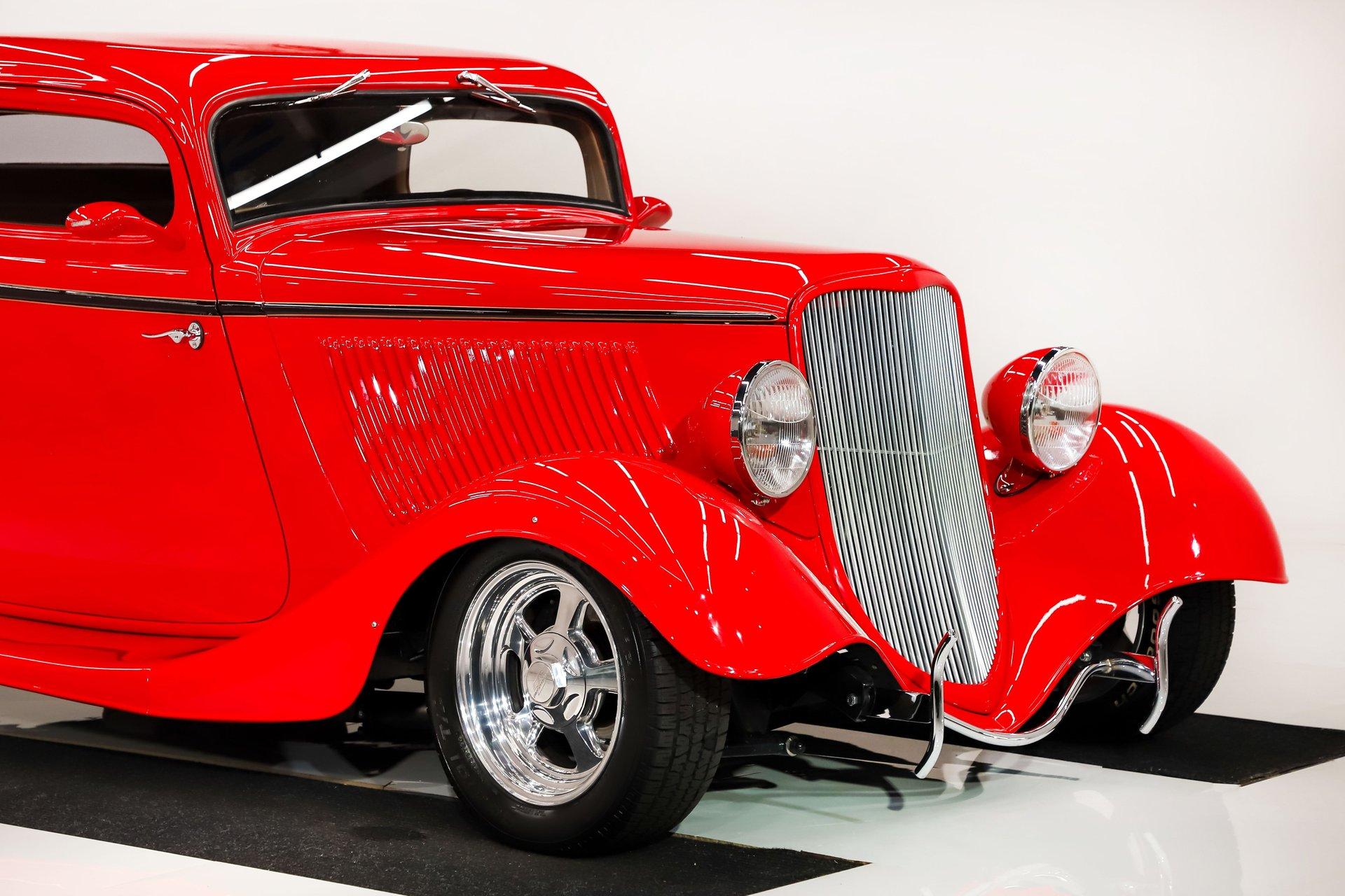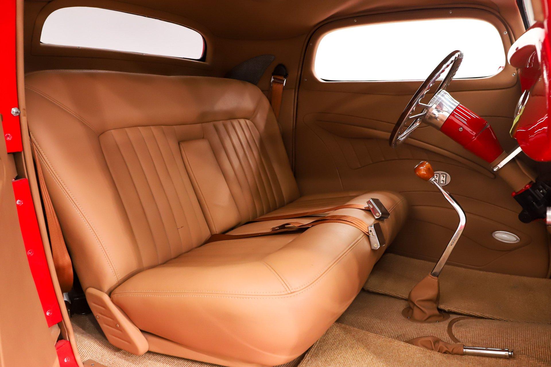 Celebrating our 65 year anniversary! This family owned and operated business was established in 1960, making us the oldest classic car dealership in America. Special thank you to all our customers for entrusting us to park the car of your dreams in your driveway while preserving automotive history for future generations to embrace and enjoy. -Grams family & Volo Museum staff INTRODUCTION: A Ford motor in a Ford with a 5-speed manual! Mostly you will find Chevy motors with an automatic trans. This is a quality build throughout. It incorporates the vintage charm with some modern enhancements making fun to look at and twice as fun to drive! EXTERIOR: Anyone else think of ZZ Top when they look at this car? Its a classic hot rod: ‘33 chopped three window coupe with suicide doors and full fenders. It's a very high quality fiberglass reproduction body that is absolutely straight and fits very nicely. The running boards have some custom curvatures and the hood is a metal three piece that can open from either side. The red paint is polished smooth and glossy. I like that it has original style door handles and original style big headlights. The headlights and lenses have Ford script on them, the turn signals are built in. The mirrors are updated and have built in turn signals too. In back is a set of teardrop LED tail lights and a third brake light below the rear window. It rolls on a really nice set of polished Billet Specialties wheels wrapped in BFGoodrich tires, of course much fatter in back for that hot rod look. INTERIOR: This is a first class interior! The entire inside is upholstered including under the dash and behind the seat. There is a lot of custom sculpture work on the door panels and headliner. It's a very comfortable Wise Guys power seat. Down on the floor it has premium Mercedes style square loop carpet with matching mats. It also has leather boots around the chrome e-brake and the Hurst 5-speed shifter. The dash is clean and simple dash,the controls are below out of site. A nice looking set of easy to read Classic Instrument gauges includes a tachometer and it's showing 3,500 miles since the build. The tilt column has a beautiful deluxe wheel. The stereo is overhead and the speakers are custom integrated into the rear panel. 3 point retractable seatbelts were installed. ENGINE COMPARTMENT: Yes, it has a Ford motor! It's a crate 351W making 365 HP with Roush heads, aluminum intake, a dual feed Holley Street Avenger 670 carb, Mallory Unilite ignition and a set of coated headers. It's dressed up in some very nicely custom painted valve covers and air cleaner. The front of the engine has a polished alternator and polished A/C compressor. The engine bay is a nice smooth red finish. TRUNK COMPARTMENT: The trunk compartment is done with the same amount of detail as the interior! A switch inside the car operates the power lift trunk. It's been boxed beautifully and upholstered. The floor has the premium carpet. Behind the panel you'll find the battery. UNDERSIDE: Powder coated chassis, the frame is boxed and has tubular supports. Up front it has a TCI independent suspension with tubular control arms, swaybar, coilover adjustable gas shocks, rack and pinion steering. In back is a four link system, also with coilover adjustable gas shocks. It has disc brakes at all four of the wheels and a working e-brake assembly. A very nicely bent exhaust system with Flowmaster mufflers and dumps was ceramic coated black. It goes all the way out the back with flared polished tips. It has a composite fuel tank from Tanks Inc, braided stainless fuel lines and an inline chrome filter. Looking up at the motor, it's clean and it has a high torque starter. A heavy duty scatter shield covers a Center Force hydraulic clutch and it has a crate 5-speed Richmond trans. The rebuilt 9 inch locker rear end was powder coated. It is very clean and proper under this one! SERVICE: We take pride in our cars and reputation. Therefore, we built a 2 million dollar, 10,000 square ft service center, and hired a team of technicians to service the essentials on every car we sell. CONCLUSION: This is a well built hot rod with class! For nearly 30 years, I, Jay Grams, have personally written the highlights for almost every car in our collection. What I provide is my professional opinion based on my experience with these vehicles. However, opinions can vary, and I strongly recommend a personal inspection to form your own view. Our sales team is always available to answer any questions you may have. One great option is to request a personalized walk-around video, where we can showcase the car and share our team’s insights. **Our cars are displayed within a museum setting. If you are interested in a specific vehicle, please schedule an appointment with a salesperson to view it. Without an appointment, there is an admission fee to enter the showroom. If you decide to purchase a car, your admission will be refunded, and you'll receive a one-year museum membership. ☎️ 815 385 3644 9-5 central ? Sales@volocars.com Answered ASAP Air conditioning Power steering 4 wheel disc Posi rear Power windows Power seat Power trunk lift Seat belts Tilt wheel Polished wheels