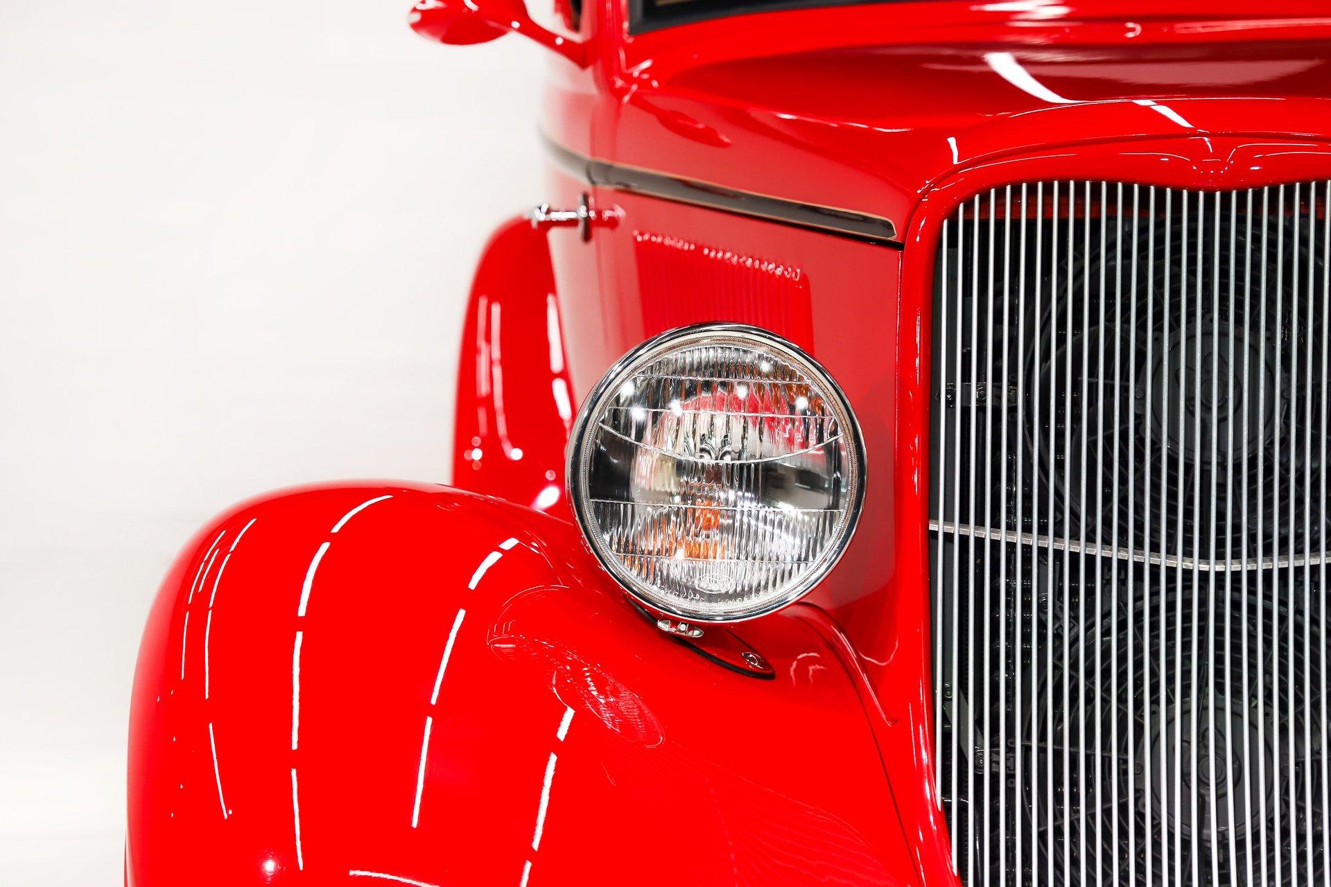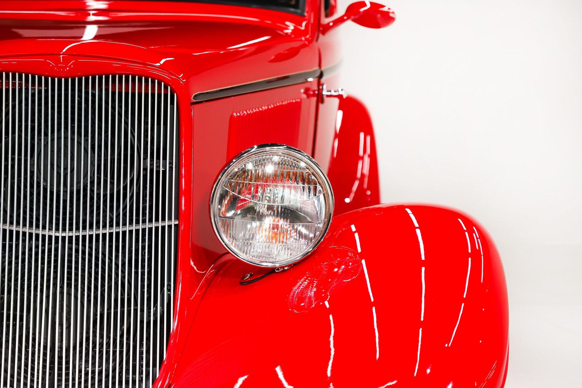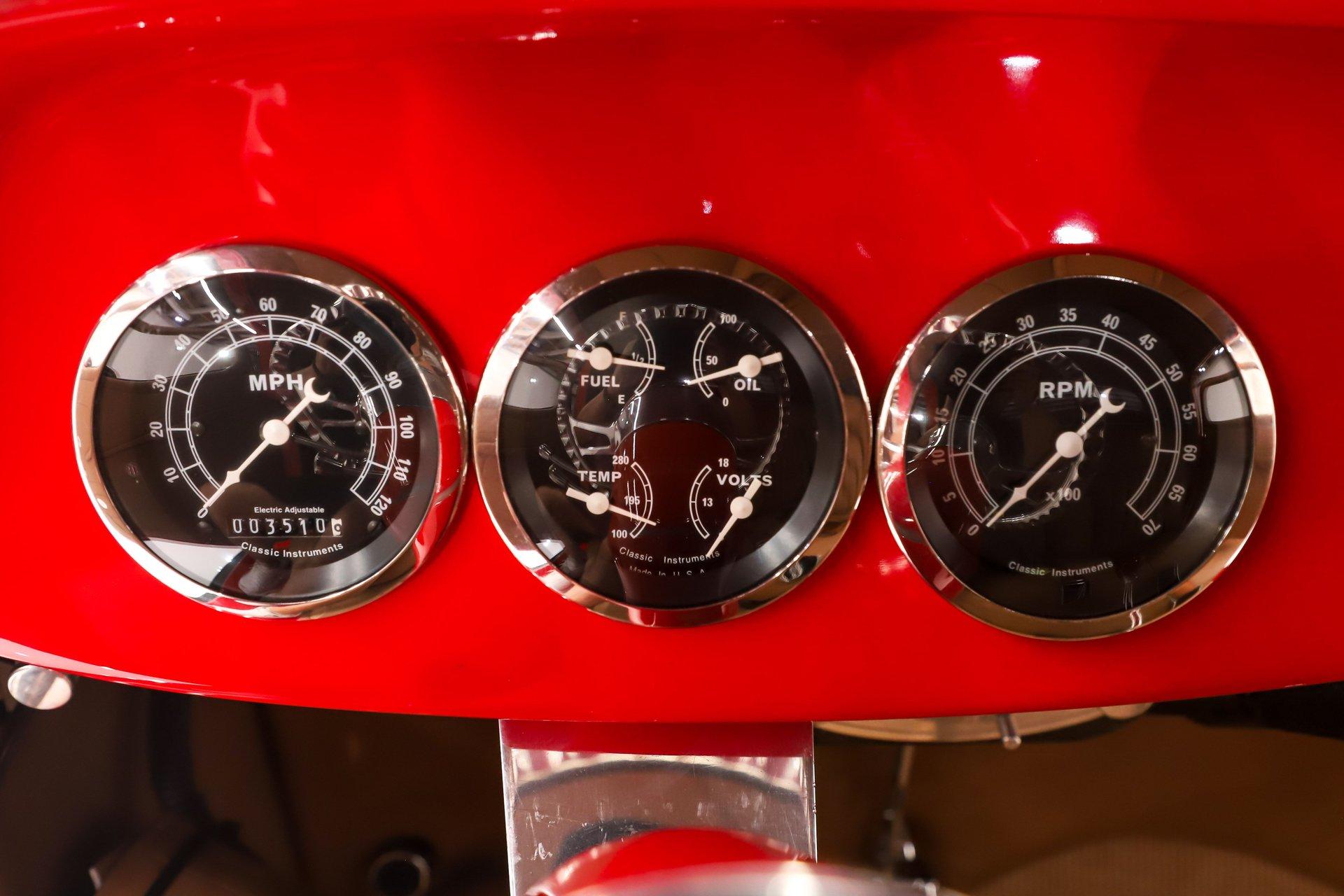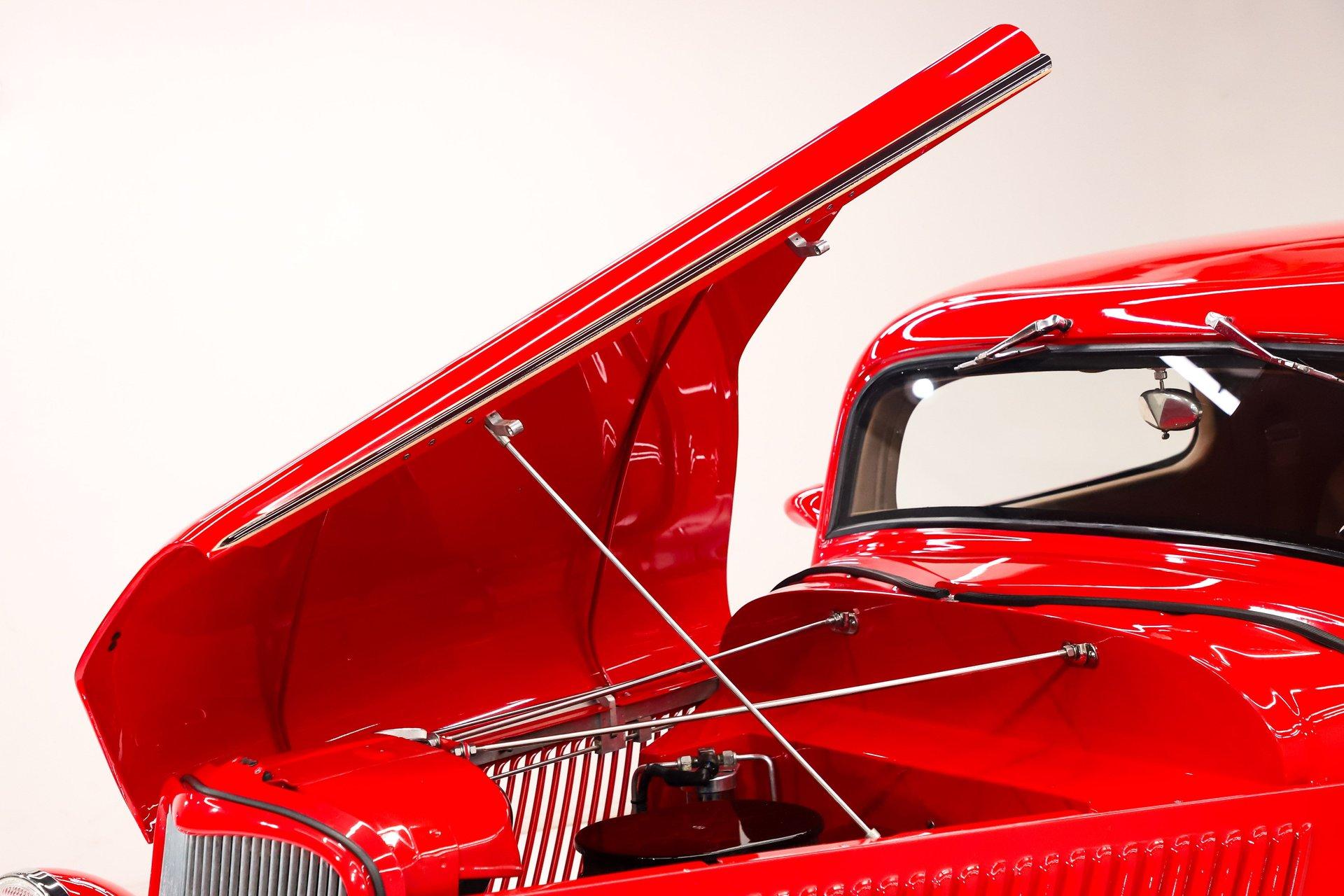 Celebrating our 65 year anniversary! This family owned and operated business was established in 1960, making us the oldest classic car dealership in America. Special thank you to all our customers for entrusting us to park the car of your dreams in your driveway while preserving automotive history for future generations to embrace and enjoy. -Grams family & Volo Museum staff INTRODUCTION: A Ford motor in a Ford with a 5-speed manual! Mostly you will find Chevy motors with an automatic trans. This is a quality build throughout. It incorporates the vintage charm with some modern enhancements making fun to look at and twice as fun to drive! EXTERIOR: Anyone else think of ZZ Top when they look at this car? Its a classic hot rod: ‘33 chopped three window coupe with suicide doors and full fenders. It's a very high quality fiberglass reproduction body that is absolutely straight and fits very nicely. The running boards have some custom curvatures and the hood is a metal three piece that can open from either side. The red paint is polished smooth and glossy. I like that it has original style door handles and original style big headlights. The headlights and lenses have Ford script on them, the turn signals are built in. The mirrors are updated and have built in turn signals too. In back is a set of teardrop LED tail lights and a third brake light below the rear window. It rolls on a really nice set of polished Billet Specialties wheels wrapped in BFGoodrich tires, of course much fatter in back for that hot rod look. INTERIOR: This is a first class interior! The entire inside is upholstered including under the dash and behind the seat. There is a lot of custom sculpture work on the door panels and headliner. It's a very comfortable Wise Guys power seat. Down on the floor it has premium Mercedes style square loop carpet with matching mats. It also has leather boots around the chrome e-brake and the Hurst 5-speed shifter. The dash is clean and simple dash,the controls are below out of site. A nice looking set of easy to read Classic Instrument gauges includes a tachometer and it's showing 3,500 miles since the build. The tilt column has a beautiful deluxe wheel. The stereo is overhead and the speakers are custom integrated into the rear panel. 3 point retractable seatbelts were installed. ENGINE COMPARTMENT: Yes, it has a Ford motor! It's a crate 351W making 365 HP with Roush heads, aluminum intake, a dual feed Holley Street Avenger 670 carb, Mallory Unilite ignition and a set of coated headers. It's dressed up in some very nicely custom painted valve covers and air cleaner. The front of the engine has a polished alternator and polished A/C compressor. The engine bay is a nice smooth red finish. TRUNK COMPARTMENT: The trunk compartment is done with the same amount of detail as the interior! A switch inside the car operates the power lift trunk. It's been boxed beautifully and upholstered. The floor has the premium carpet. Behind the panel you'll find the battery. UNDERSIDE: Powder coated chassis, the frame is boxed and has tubular supports. Up front it has a TCI independent suspension with tubular control arms, swaybar, coilover adjustable gas shocks, rack and pinion steering. In back is a four link system, also with coilover adjustable gas shocks. It has disc brakes at all four of the wheels and a working e-brake assembly. A very nicely bent exhaust system with Flowmaster mufflers and dumps was ceramic coated black. It goes all the way out the back with flared polished tips. It has a composite fuel tank from Tanks Inc, braided stainless fuel lines and an inline chrome filter. Looking up at the motor, it's clean and it has a high torque starter. A heavy duty scatter shield covers a Center Force hydraulic clutch and it has a crate 5-speed Richmond trans. The rebuilt 9 inch locker rear end was powder coated. It is very clean and proper under this one! SERVICE: We take pride in our cars and reputation. Therefore, we built a 2 million dollar, 10,000 square ft service center, and hired a team of technicians to service the essentials on every car we sell. CONCLUSION: This is a well built hot rod with class! For nearly 30 years, I, Jay Grams, have personally written the highlights for almost every car in our collection. What I provide is my professional opinion based on my experience with these vehicles. However, opinions can vary, and I strongly recommend a personal inspection to form your own view. Our sales team is always available to answer any questions you may have. One great option is to request a personalized walk-around video, where we can showcase the car and share our team’s insights. **Our cars are displayed within a museum setting. If you are interested in a specific vehicle, please schedule an appointment with a salesperson to view it. Without an appointment, there is an admission fee to enter the showroom. If you decide to purchase a car, your admission will be refunded, and you'll receive a one-year museum membership. ☎️ 815 385 3644 9-5 central ? Sales@volocars.com Answered ASAP Air conditioning Power steering 4 wheel disc Posi rear Power windows Power seat Power trunk lift Seat belts Tilt wheel Polished wheels