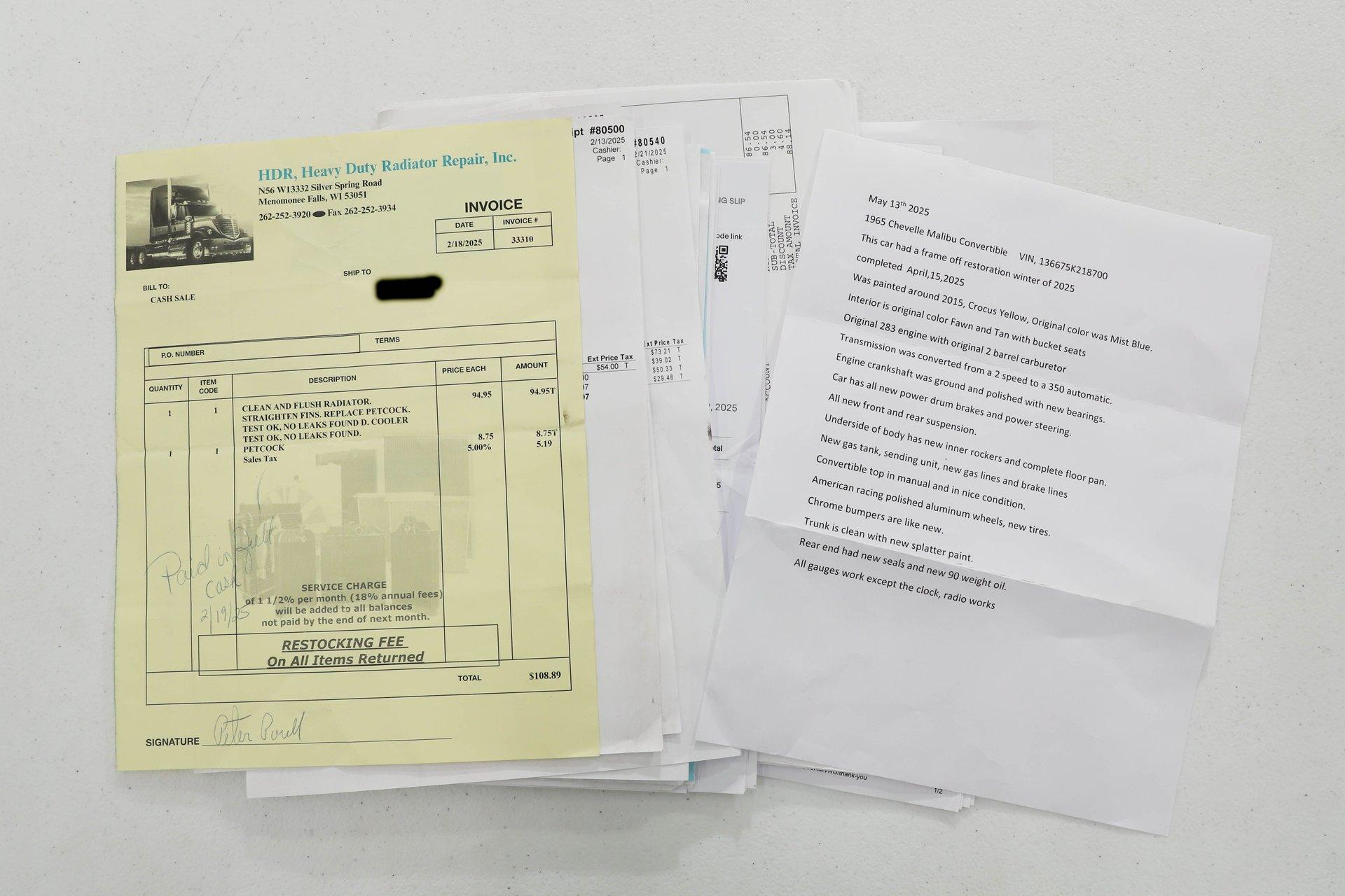 Celebrating our 65 year anniversary! This family owned and operated business was established in 1960, making us the oldest classic car dealership in America. Special thank you to all our customers for entrusting us to park the car of your dreams in your driveway while preserving automotive history for future generations to embrace and enjoy. -Grams family & Volo Museum staff This frame off restored Chevelle makes for an easy cruiser. The 283 runs smooth and effortlessly, power steering and brakes make it easy to drive. EXTERIOR: It's a handsome design. The body and paint are older but still shows very well. The body has no rust or damage showing and it fits nice. It was repainted Crocus Yellow, it is smooth and shiny. The chrome sparkles on this car, it has dual bowtie mirrors and a rear mount antenna. The black convertible top still looks fresh. The 15 inch polished Torque Thrust wheels with BFG tires give a muscular look. INTERIOR: It's a nice looking interior too, I like the beige and fawn color. It has reproduction upholstery, door panels, armrests, carpet and floormats. It also has an optional padded dash in great shape. The chrome instrument panel shines bright and a retro stereo fits in the factory hole. The sporty bucket seats have factory seatbelts too. ENGINE COMPARTMENT: It has its correct numbers matching 283 V8. It is completely stock: manifolds, Chevrolet script valve covers, two barrel carb, air cleaner, pulleys etc. It runs smooth, the crank was reground. All the components look proper, it features power steering and new power brakes. The wiper motor is new and the squirters are hooked up. It's detailed and painted very nicely. TRUNK COMPARTMENT: Under the trunk was painted really nice, weather strip is replaced. Inside is solid metal with a neatly applied gray spatter finish. It is complete with a jack and spare assembly. UNDERSIDE: It just finished its body off the frame restoration, underneath was completely restored. All the suspension and steering were completely rebuilt and detailed. All new fuel system including the tank and lines. It has a custom dual exhaust with Flowmaster mufflers. The brakes have been rebuilt, new lines and e-brake assembly. Looking up at the motor it is fresh Chevy orange with a new starter. It was upgraded to a Turbo 350 automatic trans. The 10 bolt rearend has the seals and lube replaced. It is rust free because it has a complete new floor pan with braces and inner rockers just installed. Underside of this car is detailed. SERVICE: We take pride in our cars and reputation. Therefore, we built a 2 million dollar, 10,000 square ft service center, and hired a team of technicians to work it. This is so we can sell you the best cars within reason. Like I said, it's a great cruiser! Easy to maintain and operate. For nearly 30 years, I, Jay Grams, have personally written the highlights for almost every car in our collection. What I provide is my professional opinion based on my experience with these vehicles. However, opinions can vary, and I strongly recommend a personal inspection to form your own view. Our sales team is always available to answer any questions you may have. One great option is to request a personalized walk-around video, where we can showcase the car and share our team’s insights. **Our cars are displayed within a museum setting. If you are interested in a specific vehicle, please schedule an appointment with a salesperson to view it. Without an appointment, there is an admission fee to enter the showroom. If you decide to purchase a car, your admission will be refunded, and you'll receive a one-year museum membership. 815 385 3644 9-5 central Sales@volocars.com Answered ASAP Power steering Power brakes Dual exhaust Bucket seats Padded dash Seatbelts Retro stereo Reproduction mats Dual mirrors Rear mount antenna Polished wheels