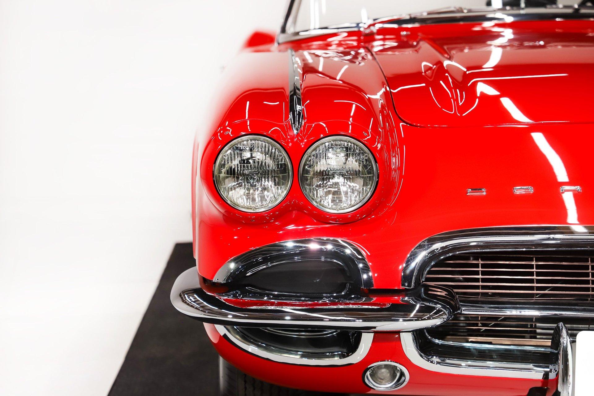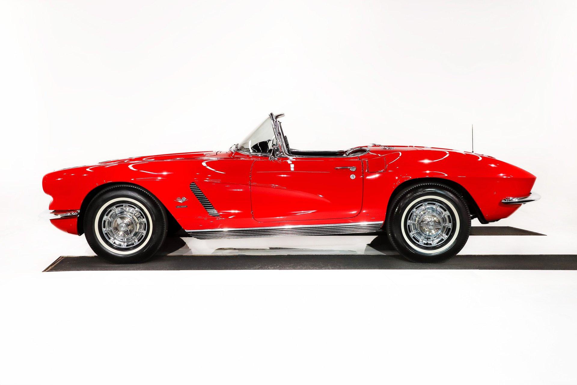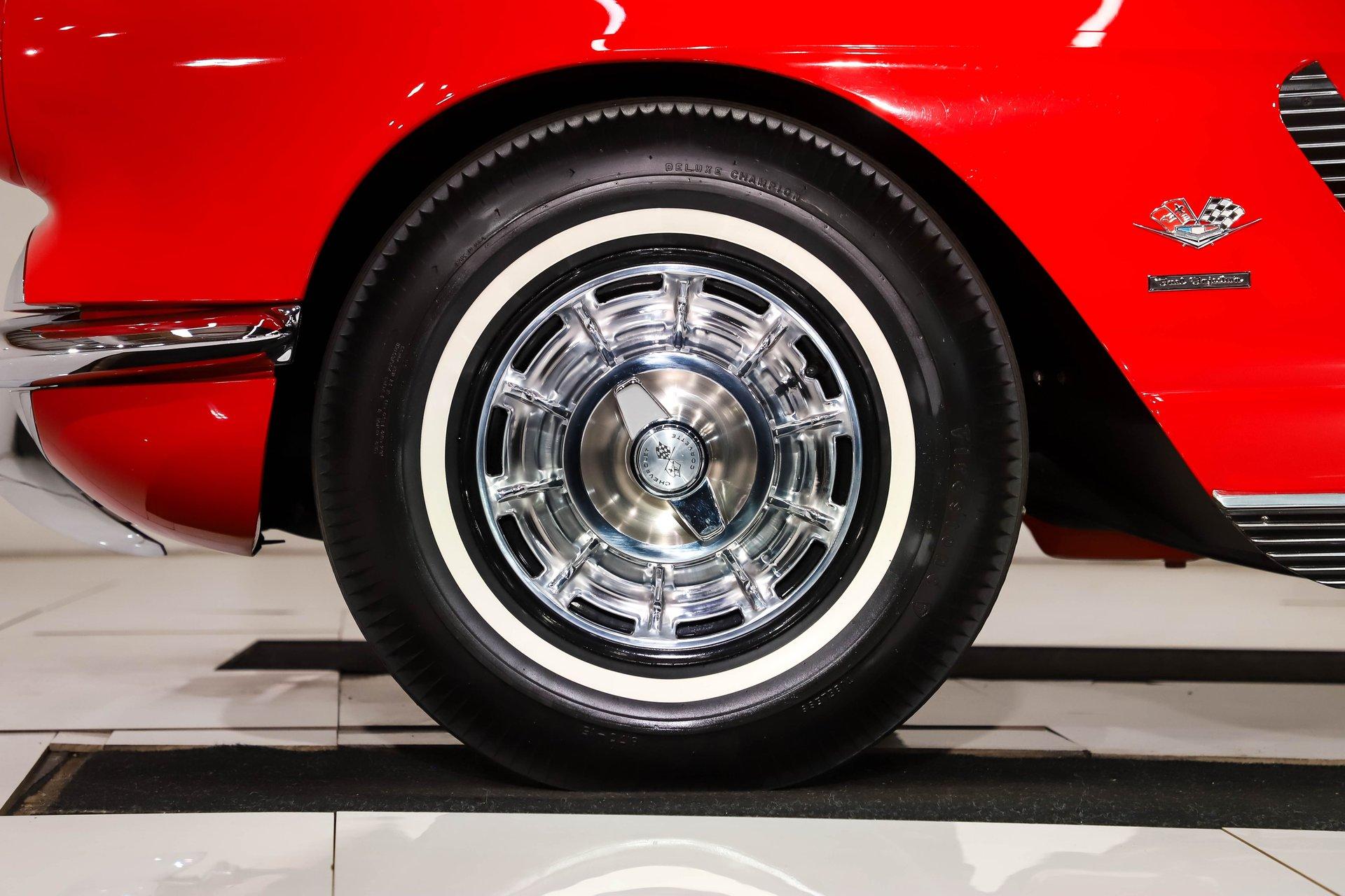 Celebrating our 65 year anniversary! This family owned and operated business was established in 1960, making us the oldest classic car dealership in America. Special thank you to all our customers for entrusting us to park the car of your dreams in your driveway while preserving automotive history for future generations to embrace and enjoy. -Grams family & Volo Museum staff Factory correct down to the T3 headlights, dated spark plug wires, reproduction tires and even the stencils on the frame! Body off frame restored! The #’s matching fuel injected 327 and 4 speed manual transmission make for an exhilarating ride. Only 1,918 were produced in 1962. Highly detailed and nicely documented with pictures of the restoration. An absolute winner! EXTERIOR: Far better fit and finish than it had when it was new! Striking Roman Red paint is smooth and slick to the touch, shiny and sexy to the eye. It's a paint job to be very proud of. Looking down the side of the body it is amazingly straight with smooth contours and crisp lines. The panels have all been nicely aligned with great gaps that are well above average. The doors close easily with minimal effort. The bumpers have been rechromed and the remaining brightwork all has a glorious shine. The glass has been replaced as well as the rubber seals and fuzzy strips. The black convertible top looks brand new, and the top frame totally restored. The convertible top lid closes precisely with a solid thud. It's rolling on 15” steel rims adorned with sweet spinner hubcaps that are in amazing condition. The reproduction Firestone whitewall tires are also in great shape. INTERIOR: Painstakingly refinished! Sharp black bucket seats have fresh upholstery and cushions. The correct 4 speed manual shifter proudly sits between them. The door panels, armrests, levers, handles, and reflectors all look fresh. The entire dash area was meticulously restored including the gauges. It has the correct 6500 redline for the fuelie motor. The dash pad has an excellent fit. The steering wheel has a great feel and look to it. The carpet seems fresh and brand new. Inside of the storage compartment is neatly painted. It still has the original style Wonder Bar radio. Every detail has been touched upon, and overall, this interior is amazing! ENGINE COMPARTMENT: VIN #s matching fuel injected 327-360hp! * Block casting # 3782870 * Block Date 04/16/1962 * Suffix Code RF * Head Number 3782461 * Rochester Fuel Injection # 7017360 * Distributor # 1111011 This was the first year for the 327 and the fuelie was the top dog. They came with special heads with large ports, 11:25 compression, domed aluminum pistons, solid lifters, hotter cam, dual point distributor and more. It is topped off with the beautifully refurbished correct Rochester fuel injection system. The finned aluminum valve covers with Corvette script are so sweet looking. The polished ignition shielding is factory correct and the spark plug wires are even dated to this car. The cooling system was restored and is correct with 1962 dates on the radiator and expansion tank. All the belts and hoses have been replaced. Every component is restored and stock, the generator even has correct numbers. Beautifully detailed! TRUNK COMPARTMENT: The underside of the trunk lid and jamb are painted slick just like the body. The lock mechanism and weatherstrip were both replaced. Inside is detailed and painted red. It has the correct divider and rubber mat. Under the mat is the jack and spare also restored. UNDERSIDE: Meticulous body off frame restoration! The entire steering system was rebuilt and looks fresh. The suspension also is fresh with all new bushings, links, springs, and shocks etc. Assembly line markings were reapplied. The 4 wheel drum brakes look excellent and the emergency brake is hooked up too. The entire dual exhaust system was replaced and is neatly bent with a nice black finish. Looking up at the #’s matching 327 engine, it is fresh and has the correct starter and canister style oil filter complete with decal. The #’s matching 4 speed manual transmission appears to be recently serviced and has a new mount too. The rebuilt driveshaft leads back to a fresh looking posi rear end. The floors are in great condition with the correct raw fiberglass finish which is rare, typically they are painted black to cover repairs. The frame was also prepped and painted with a smooth black finish and even has stencil markings duplicated. It is detailed under here! SERVICE: We take pride in our cars and reputation. Therefore, we built a 2 million dollar, 10,000 square ft service center, and hired a team of technicians to work it. This is so we can sell you the best cars within reason. I'm very impressed overall with the restoration! This is a keeper that oozes quality. Very desirable features, colors, and amazing factory correct restored condition! This is collector grade. For nearly 30 years, I, Jay Grams, have personally written the highlights for almost every car in our collection. What I provide is my professional opinion based on my experience with these vehicles. However, opinions can vary, and I strongly recommend a personal inspection to form your own view. Our sales team is always available to answer any questions you may have. One great option is to request a personalized walk-around video, where we can showcase the car and share our team’s insights. **Our cars are displayed within a museum setting. If you are interested in a specific vehicle, please schedule an appointment with a salesperson to view it. Without an appointment, there is an admission fee to enter the showroom. If you decide to purchase a car, your admission will be refunded, and you'll receive a one-year museum membership. 815 385 3644 9-5 central Sales@volocars.com Answered ASAP Fuel injected Posi rear end Convertible top Wonder Bar radio Factory gauges 6500 redline tachometer Bucket seats T-3 Headlights Spinner hubcaps Reproduction tires