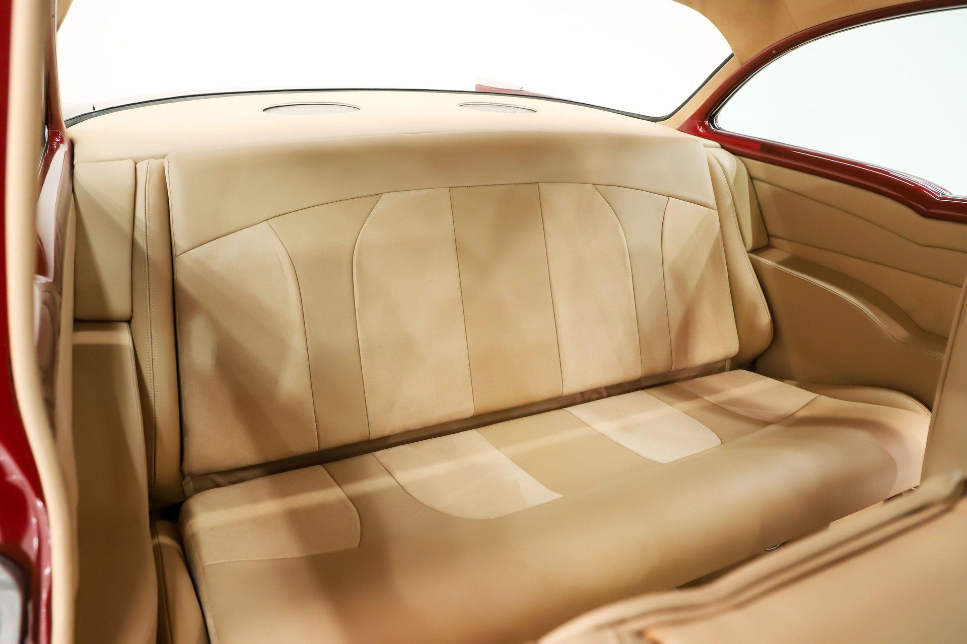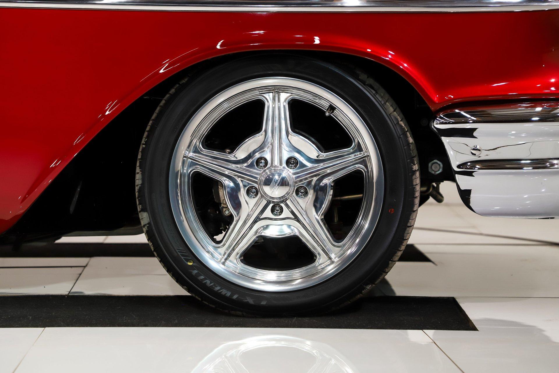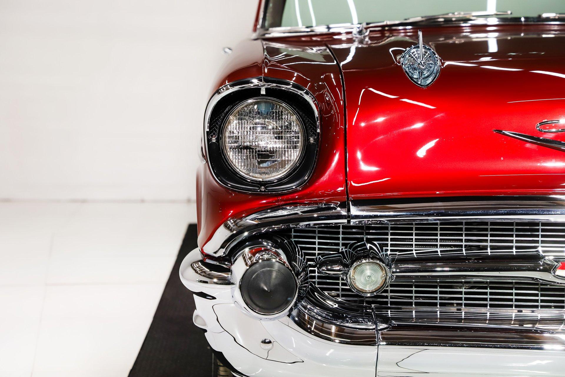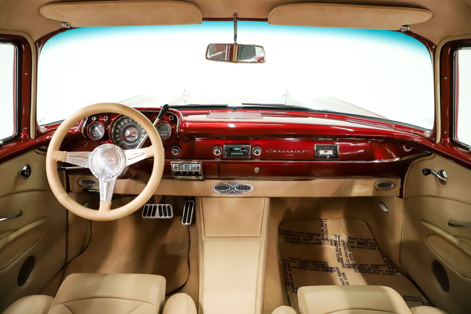 First class ride! The fit and finishes are highlighted by the colors and stance. Of course, it has everything to make it a comfortable cruiser too. EXTERIOR: This is the biggest reason I bought this car, the laser straight body! Really, I fell in love with the body, the panels fit precisely. I nerded out when the doors clicked shut just by letting go. The Patriot Red Pearl color is gorgeous and it has a wet, glossy finish. All the chrome, trim and weatherstrips have been replaced. All the glass was replaced too. It was just treated to a new a new set of Billet Specialties wheels and performance tires, 18s in front, 20s in back and extra wide. INTERIOR: A perfect complement to the exterior: a very classy light tan leather and Alcantara upholstery. The door panels are sculpted real nice and have speakers integrated in them. The bucket seats have great bolsters and recline. You will be looking at a dash painted as slick as the body. The heater controls are updated to electric slides, it has a retro stereo in the factory hole and the shift indicator is updated for the overdrive. A lower panel was fabricated for the a/c vents. A custom console was also fabricated which gives some storage space and holds the power window switches. The rear shelf is custom with 6x9 speakers. Down on the floor is custom carpet and mats. Above is an Alcantara headliner. It's beautiful and comfortable in here! ENGINE COMPARTMENT: This has a GM crate Ram Jet 350 which was a special motor with a fuel injection that looked right out of the 60s with modern technology. It makes 351 hp, there no reliability like a GM crate motor! The front of it has a serpentine belt system with polished components. It has air conditioning, a modern power steering and power brakes. Out in front is a list of polished components that look great. It also has a trans cooler and a power steering color hidden behind the grill. The metal surfaces are painted slick finishing off this beautiful compartment! TRUNK COMPARTMENT: It has been completely boxed and custom upholstered to match the interior. Even under the trunk lid is upholstered in Alcantara. There is light stain in the carpet floor. UNDERSIDE: Body off frame restored in 2010. The frame is smooth and powder coated black. The steering and suspension were completely rebuilt, swaybars front and back were installed. The brake system was completely new and upgraded with disc at all four wheels, it has a custom e-brake. The fuel tank is polished like chrome. The exhaust has a crossover pipe and Flowmaster mufflers. Bottom of the motor is clean, has a high torque starter and chrome flywheel cover. The trans was upgraded with a TCI 700R-4 overdrive automatic with an aluminum pan. The rebuilt driveshaft leads back to a new 9 inch rear with back brace and posi gears. The floors under this car are so clean they are painted like the body. SERVICE: We inspected this car closely and installed working reverse lights, serviced the air conditioning, adjusted the shift indicator, tightened steering wheel, fixed turn signals, horns, and dash lights. We calibrated the speedometer, installed swaybar link and replaced the rear rotors. Yes, it is gorgeous, and you won't be able to handle the compliments. It was really meant to be driven. The motor, trans and rear were new for the maximum reliability. This was a meticulously built ‘57! For nearly 30 years, I, Jay Grams, have personally written the highlights for almost every car in our collection. What I provide is my professional opinion based on my experience with these vehicles. However, opinions can vary, and I strongly recommend a personal inspection to form your own view. Our sales team is always available to answer any questions you may have. One great option is to request a personalized walk-around video, where we can showcase the car and share our team’s insights. **Our cars are displayed within a museum setting. If you are interested in a specific vehicle, please schedule an appointment with a salesperson to view it. Without an appointment, there is an admission fee to enter the showroom. If you decide to purchase a car, your admission will be refunded, and you'll receive a one-year museum membership. 815 385 3644 9-5 central Sales@volocars.com Answered ASAP Ramjet injection Air conditioning Power steering Power brakes 4 wheel disc Posi rear Leather upholstery Power windows Bucket seats Console Stereo system