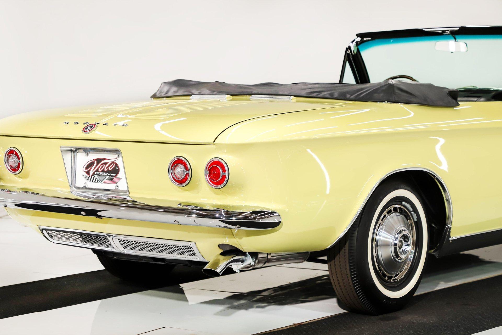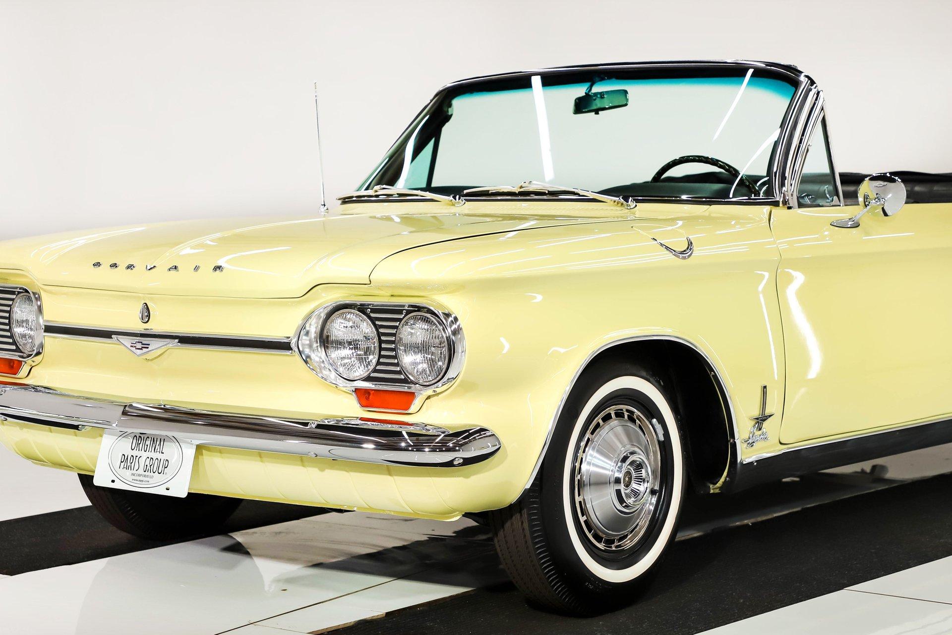 Original Parts Group promotion car! Right out of OPG's private collection. This was used by OPG to represent their new line of Corvair parts. It was debuted at 2018 SEMA in OPG's booth. It has been in numerous videos, pictures etc. Complete restoration down to a bare tub by Original Parts Group. In addition to several OPG parts the car came with a pallet of New Old Stock part still in GM packaging EXTERIOR: Refinished right back to factory condition. No, it's better! The body was professionally restored and is straight with excellent fit. Repainted Goldwood Yellow with a smooth and glossy finish. All the trim, emblems, bumpers, handles were replaced. I especially liked the emblem on the trunk lid! New windshield and weatherstrips. The black power top was completely restored. It is correctly restored right down to the reproduction tires and deluxe hubcaps. INTERIOR: Completely restored to factory condition. OPG upholstery, door panels, dash pad, handles, carpet, armrests, visors etc. It is decked out with a 2 spoke deluxe wheel and seatbelts, yes seatbelts were still optional in ‘64. It also has a great looking dash that has the optional gauges including a tachometer. That's a nice feature to go along with the factory 4-speed on the floor. ENGINE COMPARTMENT: The Corvair is very unique throughout including being a rear engine car. It has the optional 6 cylinder with a turbo charger making 150hp! The motor and all of its components were rebuilt or replaced. The turbo cars are dressed up with a chrome air cleaner too. It is a detailed engine bay. They even spent the money on a 5th reproduction spare along with a restored rim, and original locking mechanism. TRUNK COMPARTMENT: So, the trunk is in the front and under the lid and the jamb are painted slick like the car. Inside is clean metal with a neat spatter finish. It is complete with mat, washers, jack and master cylinder. The reproduction battery is included but it wasn't very reliable, we installed a new battery. UNDERSIDE: Completely restored, it was taken down bare. Now it has clean metal painted black. It has independent suspension front and rear! The steering and suspension were completely rebuilt. The entire brake system was rebuilt. The fuel system and the exhaust were replaced. Looking up at the motor and trans, they are clean. SERVICE: Our shop did a thorough inspection to make it road ready. We replaced the head gaskets, gave it an oil change, replaced courtesy bulbs, fixed temp gauge and radio, tightened the steering components, set the timing, and replaced the fuel pump. It's ready to drive! This is an opportunity to buy a Corvair that would cost double then what we are asking to restore! OPG spared no expense, now the car has a great story to tell. Try a Corvair, it's a cool and unique car! For nearly 30 years, I, Jay Grams, have personally written the highlights for almost every car in our collection. What I provide is my professional opinion based on my experience with these vehicles. However, opinions can vary, and I strongly recommend a personal inspection to form your own view. Our sales team is always available to answer any questions you may have. One great option is to request a personalized walk-around video, where we can showcase the car and share our team’s insights. **Our cars are displayed within a museum setting. If you are interested in a specific vehicle, please schedule an appointment with a salesperson to view it. Without an appointment, there is an admission fee to enter the showroom. If you decide to purchase a car, your admission will be refunded, and you'll receive a one-year museum membership. 815 385 3644 9-5 central Sales@volocars.com Answered ASAP Turbo charged Rallye Gauges Bucket seats Padded dash Seat belts Deluxe wheel Power top