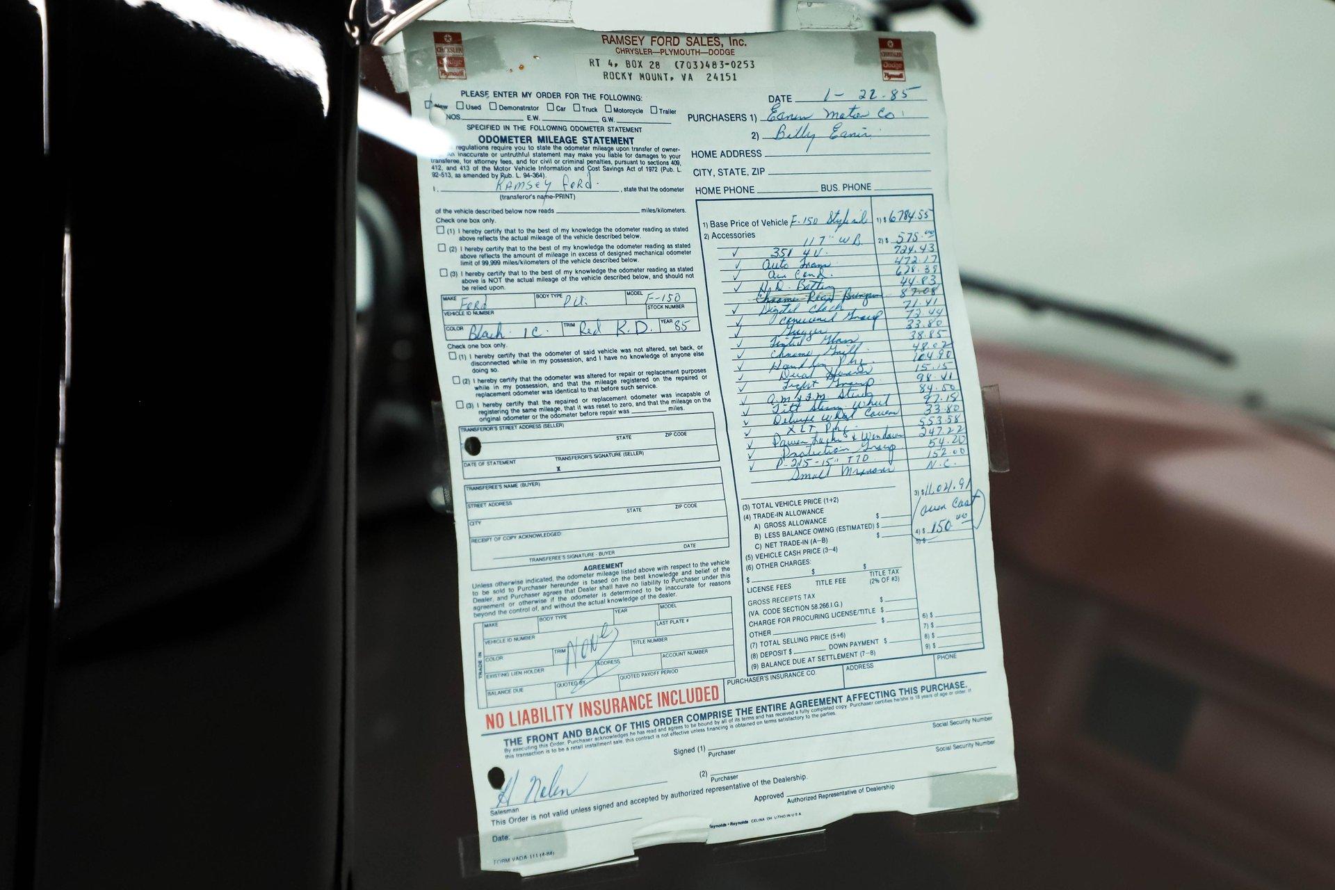 Time capsule! 307 actual miles survivor! Fully documented by the original order form, window sticker, manuals, and Carfax etc. Totally authentic, I purchased it from the second owner that I have known for a long time and was partners at Ramsey Ford in Virginia which sold the truck new. He of course purchased it from the original owner that is a friend of his and he has known about this truck it's entire life. All original except tires, battery and a few maintenance items. Very desirable short bed, black with red interior and full of options. Absolutely the best in existence! EXTERIOR: Exceptional! 100% original body that is straight as an arrow. No garage dings or scrapes. The factory gaps are right on the money, the doors close easily. This truck was properly stored inside and there is absolutely zero rust anywhere. Amazingly it is still wearing its factory applied Raven Black paint and it looks incredible considering it's 40 years old. Only very minor flaws you would need to look for. The brushed aluminum and red reflective tailgate panel is in unbelievable original shape, the taillights are not faded or cracked. The Ford spotlight, bed rails, and hood ornament were added by the first owner. The weatherstrips and seals are still soft. The rub strips on the bumpers are not even scraped. It has the optional bumper guards on the front bumper and optional step on the rear, both of which are in great shape. All the bright work is original and still looks practically new. It is rolling on steel rims with upgraded wheel covers wrapped in BFGoodrich Radial T/A tires that were likely installed in the 1990's. The original Ford Deluxe wheel covers are included. INTERIOR: Astonishing! The door jambs and latches are pristine and the weatherstrips are mint. The immaculate deluxe door panels are clad in red velour and equipped with power window and power lock switches. The entire dash area is mint with no cracks or damage noted. It has the factory optional digital clock and an am/fm stereo as well. The cigarette lighter and ashtray have never been used. The matching red velour deluxe bench seat still looks fresh. The seatbelts look virtually unused. The deluxe steering wheel does not show any wear at all. It also has a nice set of Ford rubber floor mats and all the interior lights are all working. I don't think anyone can find a fault with this interior! ENGINE COMPARTMENT: Marvelous! The optional 351 cubic inch (5.8 liter) high output 4 barrel V8 is in all original condition and it's excellent. All the hoses, clamps, and wires etcetera look to be untouched. The retractable hood lamp is really handy and was part of the optional light group. The original jack is still in place. The Motorcraft battery has of course been replaced but is properly secured. It was upgraded to a newer Freon in 2006. Everything looks great! It's equipped with air conditioning, power steering, and power brakes. Factory inspection markings and tags are abundant everywhere. Very original, correct, and complete! TRUNK COMPARTMENT: Wonderful! All original paint on the backside of the tailgate and inside the bed. It comes with the factory optional rubber mat that has kept the bed in pristine condition since new. Under the mat is all spotless, solid, and rust-free metal. UNDERSIDE: Sensational! I'm amazed by the tremendous original condition of this truck. Due to the low miles and proper storage everything looks fantastic. Factory dual exhaust and disc brakes up front. This modern-day classic also has the optional ride and handling package. Looking up at the engine it is really clean and also has the heavy duty C6 automatic transmission attached to it. The floorboards and frame both have nice original paint. It also has the short 117” wheelbase which is extremely desirable. SERVICE: We ran this truck through our shop and replaced a turn signal bulb and repaired the light under the hood. Amazing! This truck has it all; the options, the low miles, and the documentation. Its impeccable original condition will leave you speechless. Try finding one with better originality and lower miles, I dare you! For nearly 30 years, I, Jay Grams, have personally written the highlights for almost every car in our collection. What I provide is my professional opinion based on my experience with these vehicles. However, opinions can vary, and I strongly recommend a personal inspection to form your own view. Our sales team is always available to answer any questions you may have. One great option is to request a personalized walk-around video, where we can showcase the car and share our team’s insights. **Our cars are displayed within a museum setting. If you are interested in a specific vehicle, please schedule an appointment with a salesperson to view it. Without an appointment, there is an admission fee to enter the showroom. If you decide to purchase a car, your admission will be refunded, and you'll receive a one-year museum membership. 815 385 3644 9-5 central Sales@volocars.com Answered ASAP Air conditioning Power steering Handling package Power disc brakes Power windows Power locks Gauges Tilt wheel Am-Fm stereo Digital clock Convenience group Protection group Light group Spotlight Bumper guards Chrome grille Chrome bed rails XLT package Dual exhaust Tinted glass Factory bed mat Hood ornament