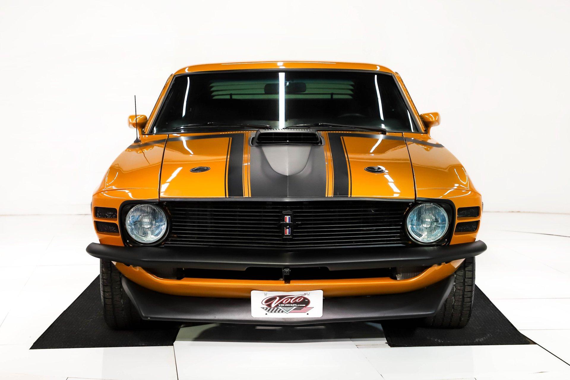 Celebrating our 65 year anniversary! This family owned and operated business was established in 1960, making us the oldest classic car dealership in America. Special thank you to all our customers for entrusting us to park the car of your dreams in your driveway while preserving automotive history for future generations to embrace and enjoy. -Grams family & Volo Museum staff The owner claimed he had $140,000 invested in this car. Restored with many upgrades that make it look and perform far better! EXTERIOR: The 69-70 fastback is one of the all-time best looking body styles and this one is decked out! It has a clean, straight body that fits nice. I like the unique butterscotch metallic paint with blacked out trim. The bumpers, moldings, door handles, hood locks, marker light bezels, taillight bezels are all blacked out. It also has the Boss 302 striping including the black trunk lid. Tinted windows work perfect with this scheme. Like I said it is decked out: a shaker hood, spoilers, louvers, and sport mirrors! Sitting on 15 inch chrome Magnum 500 wheels wearing BFG tires. INTERIOR: There are a lot of upgrades in here! Completely updated wiring system was installed. It has a $10,000 infotainment system with a 9 inch Alpine touchscreen, Bluetooth, audio, Apple/Android, front and rear cameras and custom speakers powered by an amplifier. LED lights up the interior and the custom gauges. It also has a GPS tracking system and a hidden kill switch tied to the push button start. A tilt column was installed with a sport cushion grip wheel. The custom center console has a USB port and a cupholder. 3 point retractable seatbelts were installed upfront. The upholstery, carpet, headliner, and dash pad were replaced. ENGINE COMPARTMENT: There's a lot of good stuff under this hood! It's a strong running 351 Cleveland motor being fed by a Ram Air, Sniper fuel injected system on an aluminum intake. It also has a modern air conditioning, upgraded Borgeson power steering and it has power brakes. It runs cool with a big electric fan and has a premium overflow tank. The horns are hooked up, the battery is secured, it has a Pertronix Flame Thrower coil, Tuff Stuff alternator and it's wearing Ford Racing finned valve covers. TRUNK COMPARTMENT: Under the trunk lid is blacked out, the jamb is painted nicely. Inside is boxed and carpeted hiding stereo equipment. UNDERSIDE: Under the car is well sorted. The suspension and steering were rebuilt. Tubular frame connectors are welded in to prevent body twist. It has disc brakes in front, e-brake is hooked up. The fuel tank system is updated for the fuel injection. Nice dual exhaust with Flowmaster mufflers and quad tips. Looking up at the motor it's Ford blue and has a high torque starter. The 4-speed transmission sends power to a 9 inch posi rear. SERVICE: We take pride in our cars and reputation. Therefore, we built a 2 million dollar, 10,000 square ft service center, and hired a team of technicians to work it. This is so we can sell you the best cars within reason. I think this stands apart from the others, it has it's own look. Driving it is where you will really appreciate the upgrades, it's fun and comfortable! For nearly 30 years, I, Jay Grams, have personally written the highlights for almost every car in our collection. What I provide is my professional opinion based on my experience with these vehicles. However, opinions can vary, and I strongly recommend a personal inspection to form your own view. Our sales team is always available to answer any questions you may have. One great option is to request a personalized walk-around video, where we can showcase the car and share our team’s insights. **Our cars are displayed within a museum setting. If you are interested in a specific vehicle, please schedule an appointment with a salesperson to view it. Without an appointment, there is an admission fee to enter the showroom. If you decide to purchase a car, your admission will be refunded, and you'll receive a one-year museum membership. 815 385 3644 9-5 central Sales@volocars.com Answered ASAP Air conditioning Power steering Power disc brakes Ram Air Fuel injection Push button start Touchscreen infotainment Console Tilt column Sport wheel Custom gauges Shaker hood Spoilers Louvers Sport mirrors Boss 302 Stripes Magnum 500 wheels Tinted glass