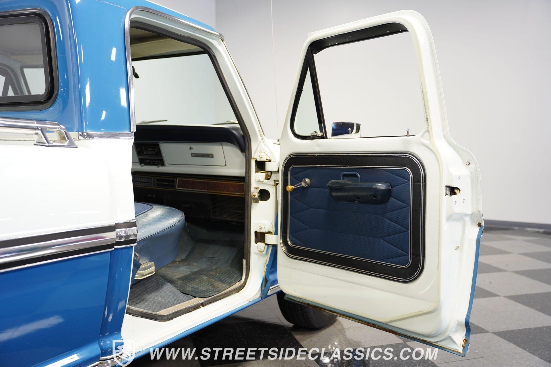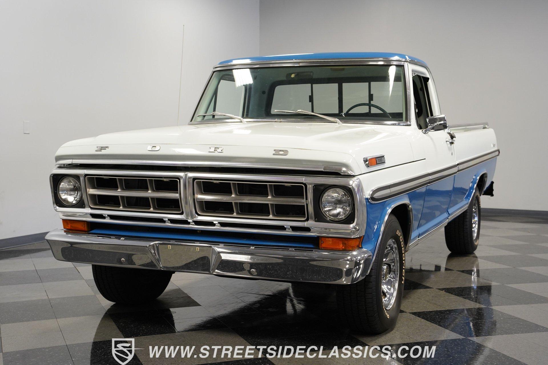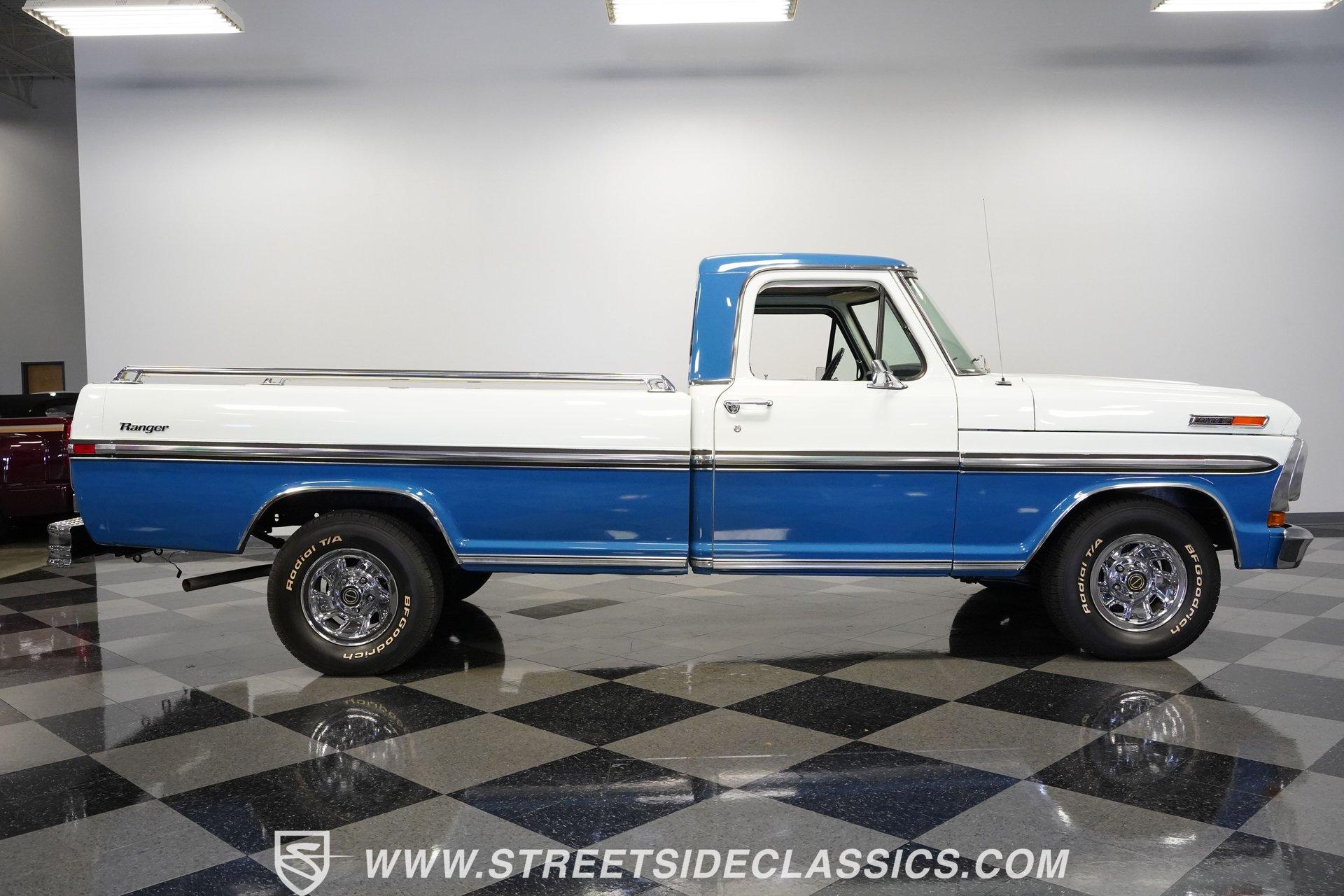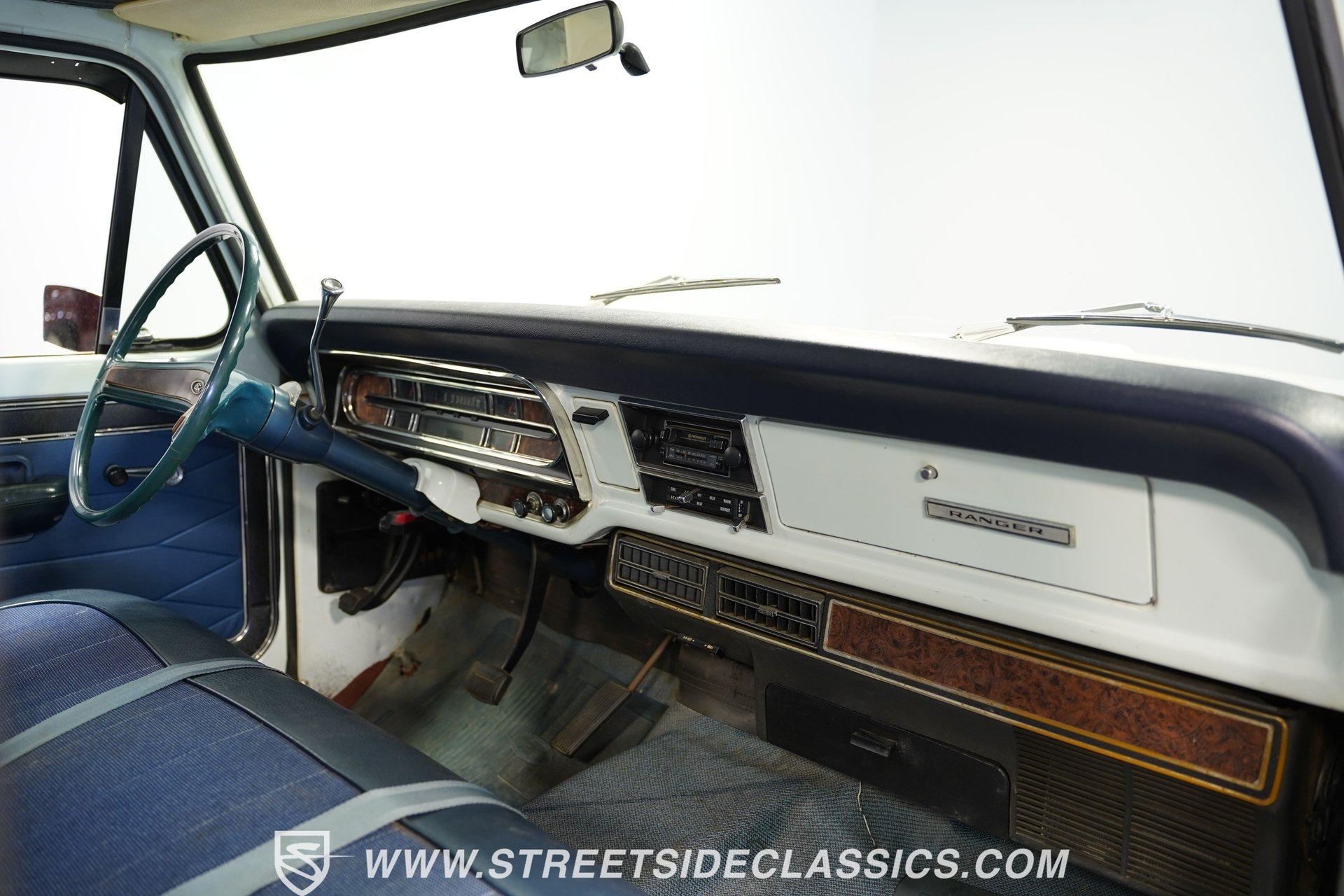Step back into a time when trucks were built tough and made to last. This 1971 Ford F-100 Ranger is more than just a vehicle; it's a piece of Americana that carries the spirit of rugged reliability and classic style. Perfect for weekend cruising or tackling everyday tasks, this truck offers a nostalgic connection to the open road and simpler times. Its iconic design and enduring charm make it a standout choice for collectors and enthusiasts alike. If you've been searching for a vintage truck with character and proven performance, this 1971 Ford F-100 Ranger could be the one for you. Inside, the cabin welcomes you with a clean, well-preserved interior featuring a vinyl and cloth bench seat that offers both comfort and classic appeal. The dash pad is covered with a newer plastic cover, maintaining a fresh look while preserving the original cluster and gauges. The steering wheel remains original, showcasing some character with a few cracks, and the Pioneer cassette radio adds a touch of vintage entertainment. Factory air conditioning controls and a white interior paint finish complete the classic feel, making every drive enjoyable. Under the hood, this F-100 Ranger houses a rebuilt 360 V8 engine paired with a smooth-shifting 3-speed automatic transmission. The engine fires up easily, delivering responsive acceleration that makes driving this truck a pleasure. Power steering ensures a nice, smooth ride, while the power brakes are well sorted for reliable stopping. The under-hood presentation stays true to the factory style, with updated hoses and wiring for enhanced reliability. Although the original air conditioning system requires conversion to function fully, the mechanical foundation offers a solid and enjoyable driving experience. Highlights: 1971 Ford F-100 Ranger 360 V8 Engine 3 Speed Automatic Transmission Power Steering Power Brakes Factory Style Engine Presentation Original Air Conditioning Controls Clean Vinyl and Cloth Interior Pioneer Cassette Radio White Interior Paint Long Bed Ford 9" Rear Axle P255/70R15 Tires Gloss Painted Underside Financing Available Vehicle Protection Plans Available Worldwide Shipping This 1971 Ford F-100 Ranger blends classic style with dependable mechanics, making it a fantastic choice for enthusiasts and weekend drivers alike. Don't miss the chance to own this piece of automotive history that's ready to hit the road and turn heads. Call, email, or come visit our showroom today!