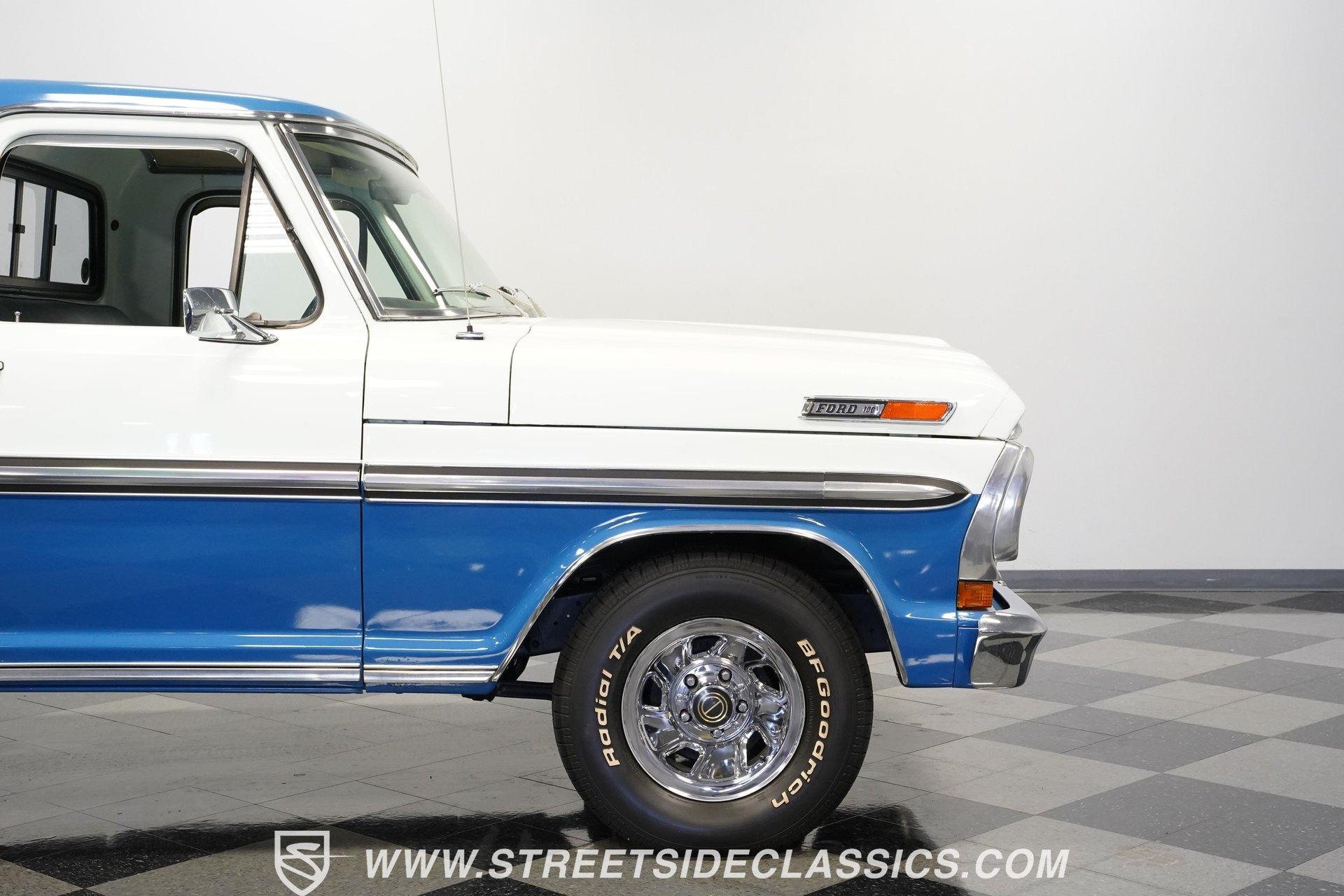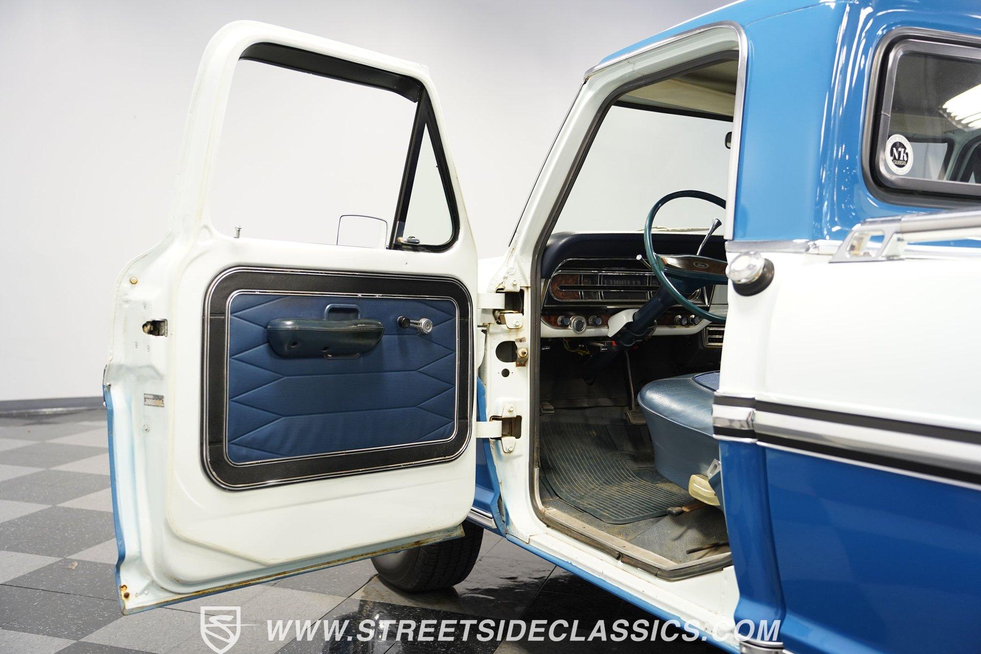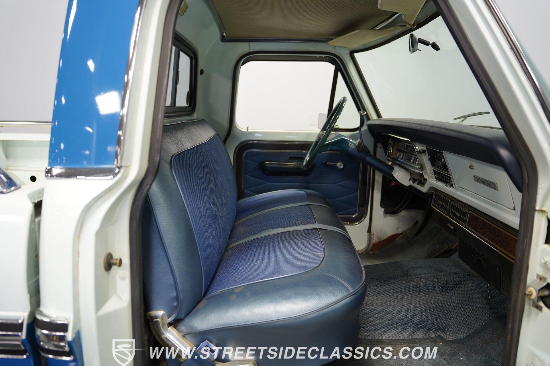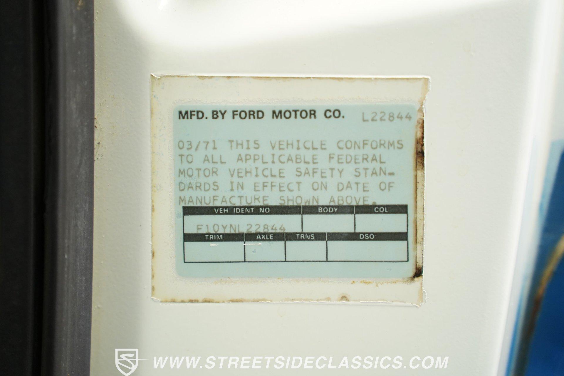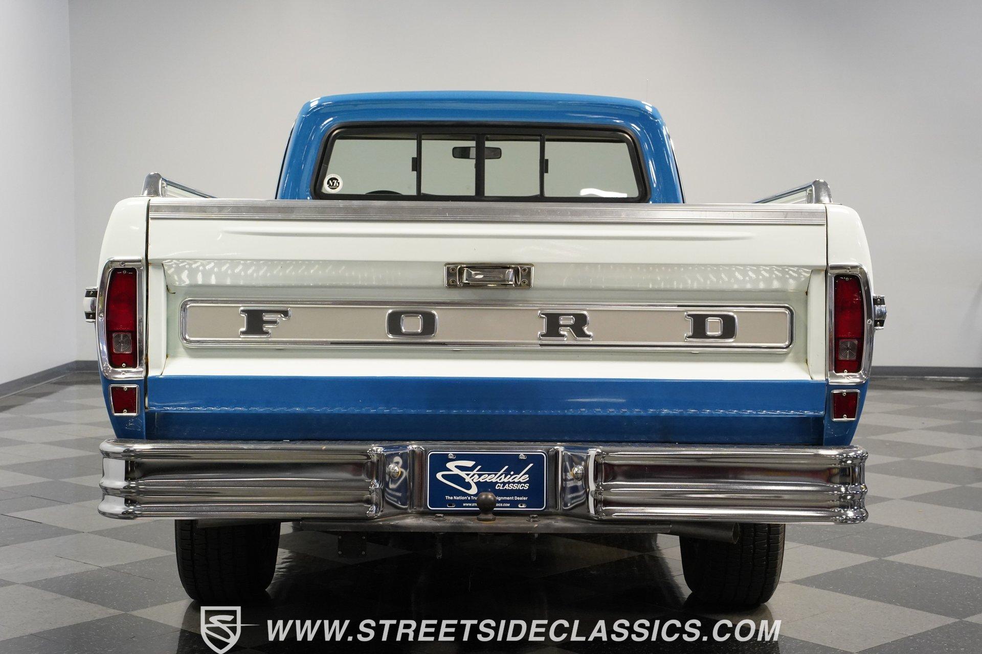 Step back into a time when trucks were built tough and made to last. This 1971 Ford F-100 Ranger is more than just a vehicle; it's a piece of Americana that carries the spirit of rugged reliability and classic style. Perfect for weekend cruising or tackling everyday tasks, this truck offers a nostalgic connection to the open road and simpler times. Its iconic design and enduring charm make it a standout choice for collectors and enthusiasts alike. If you've been searching for a vintage truck with character and proven performance, this 1971 Ford F-100 Ranger could be the one for you. Inside, the cabin welcomes you with a clean, well-preserved interior featuring a vinyl and cloth bench seat that offers both comfort and classic appeal. The dash pad is covered with a newer plastic cover, maintaining a fresh look while preserving the original cluster and gauges. The steering wheel remains original, showcasing some character with a few cracks, and the Pioneer cassette radio adds a touch of vintage entertainment. Factory air conditioning controls and a white interior paint finish complete the classic feel, making every drive enjoyable. Under the hood, this F-100 Ranger houses a rebuilt 360 V8 engine paired with a smooth-shifting 3-speed automatic transmission. The engine fires up easily, delivering responsive acceleration that makes driving this truck a pleasure. Power steering ensures a nice, smooth ride, while the power brakes are well sorted for reliable stopping. The under-hood presentation stays true to the factory style, with updated hoses and wiring for enhanced reliability. Although the original air conditioning system requires conversion to function fully, the mechanical foundation offers a solid and enjoyable driving experience. Highlights: 1971 Ford F-100 Ranger 360 V8 Engine 3 Speed Automatic Transmission Power Steering Power Brakes Factory Style Engine Presentation Original Air Conditioning Controls Clean Vinyl and Cloth Interior Pioneer Cassette Radio White Interior Paint Long Bed Ford 9" Rear Axle P255/70R15 Tires Gloss Painted Underside Financing Available Vehicle Protection Plans Available Worldwide Shipping This 1971 Ford F-100 Ranger blends classic style with dependable mechanics, making it a fantastic choice for enthusiasts and weekend drivers alike. Don't miss the chance to own this piece of automotive history that's ready to hit the road and turn heads. Call, email, or come visit our showroom today!