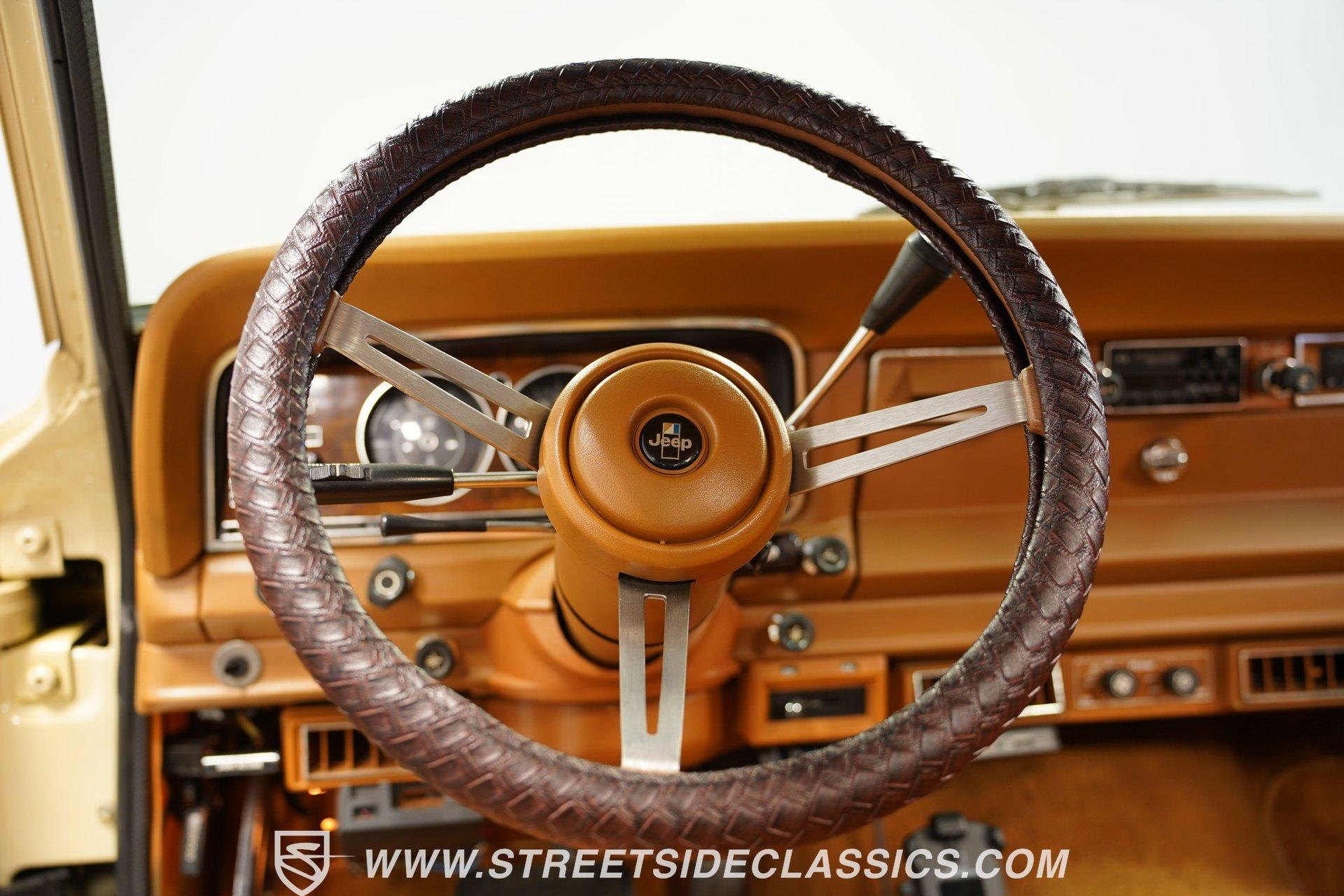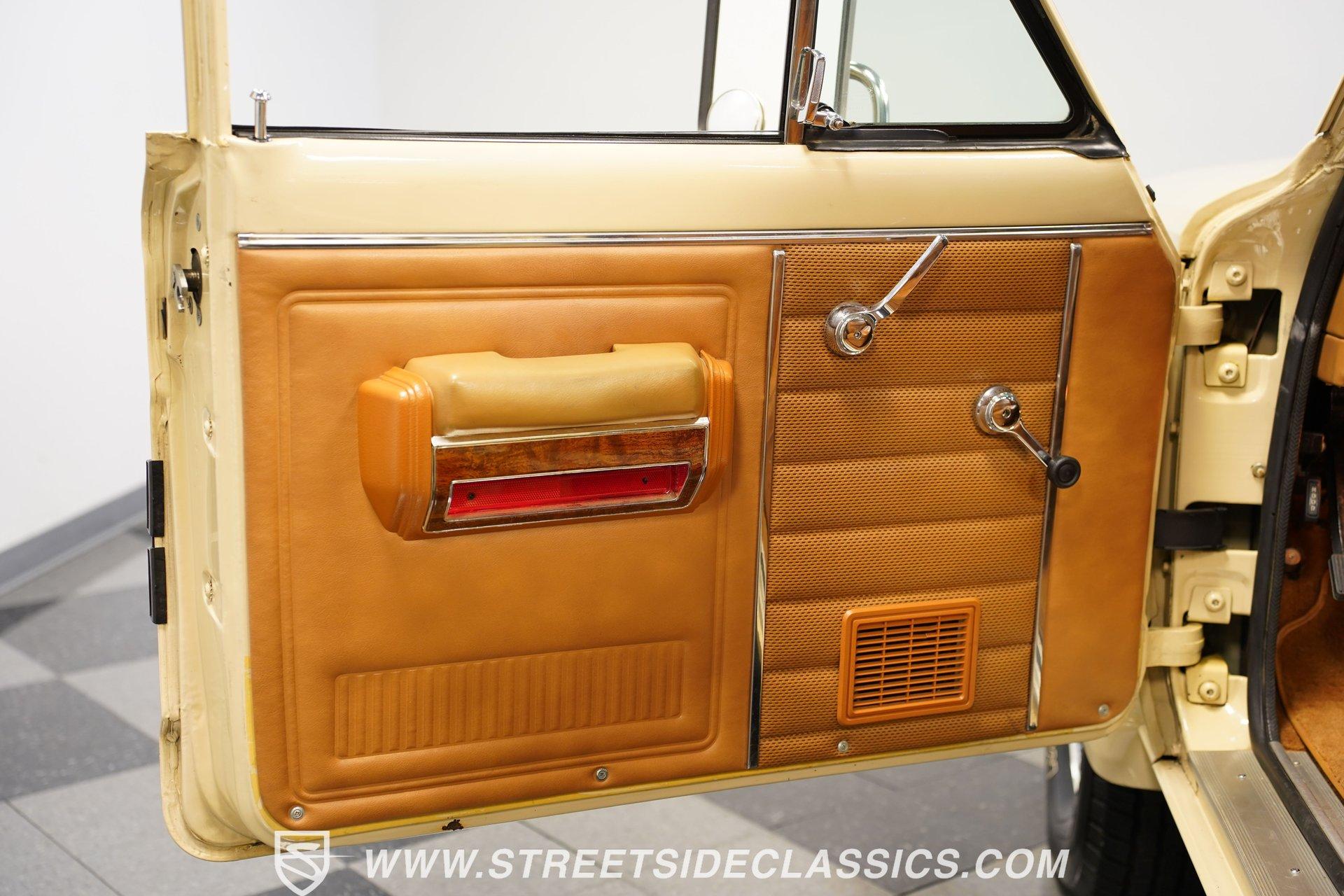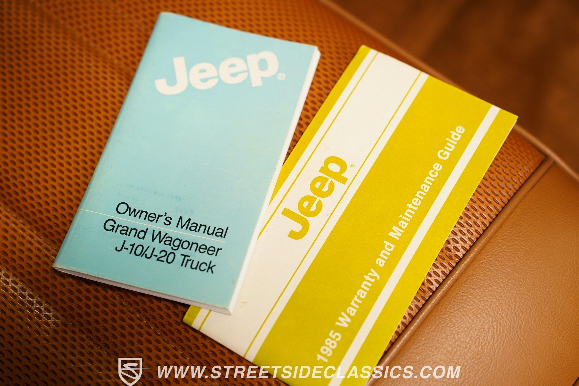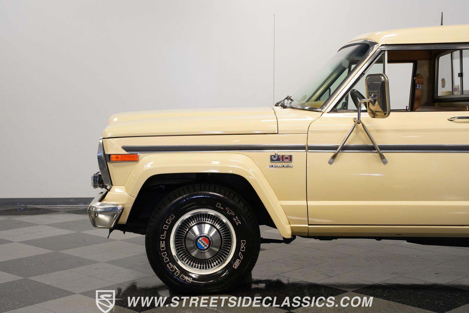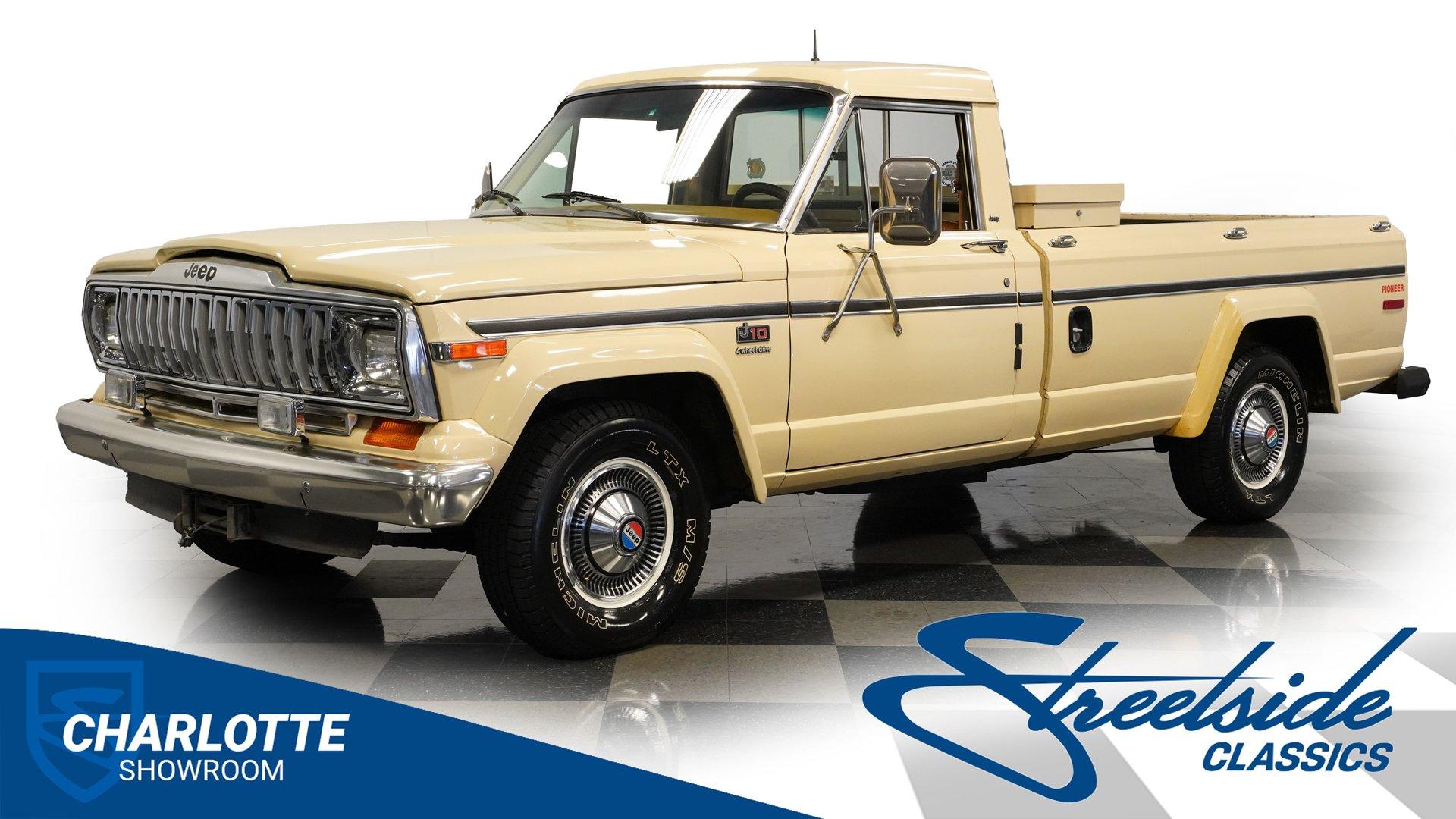 Here's a Jeep truck long-bed you won't see very often. This 1985 Jeep J10 Pioneer 4x4 is in great shape with an Almond Beige paint. The body panels are straight, the gaps are consistent, the glass and weather stripping are in good condition, and both doors shut properly. The chrome front bumper shines nicely, complemented by a stock-appealing grille that houses what appears to be newer headlights and fog lamps. The rear bumper is in good shape, and the tailgate features painted "JEEP" letters. The truck bed includes a rubber floor mat for protection and a front-mounted toolbox for storage. Inside, the interior has been refreshed, and the base color is mostly Tan. The seats, door panels, headliner, and carpet are all very clean. The steering wheel and gauge cluster appear original, as do the climate controls and other knobs and switches. Equipped with a factory under-dash mounted air conditioner. The AM/FM/Cassette radio in the dash appears to be original. For an older truck, this interior is clean, functional, and well-preserved. The engine bay looks stock and presents itself well. It houses a 360 cubic-inch V8 paired with a 727 Torqueflite automatic transmission. A Dana 44 front differential engages when four-wheel drive is used, while the AMC 20 rear differential solely handles the power when in two-wheel drive. Both front and rear axles are connected to factory style leaf spring suspension. Bolted on all four corners are 15-inch wheels with Jeep hubcaps, wrapped in LT235/75R15 tires. Highlights: 360 Cubic-Inch V8 727 Torqueflite Automatic Transmission A Second Auxiliary Fuel Tank Jasper Transfer Case 15-inch Wheels With Jeep Hubcaps Front And Rear LT235/75R15 Tires Power Front Disc Brakes Stock Style Exhaust Built-In Toolbox in Truck Bed Trailer Hitch Radio With AM/FM/Cassette Cruise Control Heat And Defrost Tilt Steering Wheel Owner's Manual This 1985 Jeep J10 Pioneer 4x4 can cruise, handle hard work, and shine at your local car show. It drives well, has a solid body/frame, a great paint job, and very clean interior. If you're an old-school Jeep enthusiast, you'll appreciate this Jeep's work ethic and simplicity. Call Today!