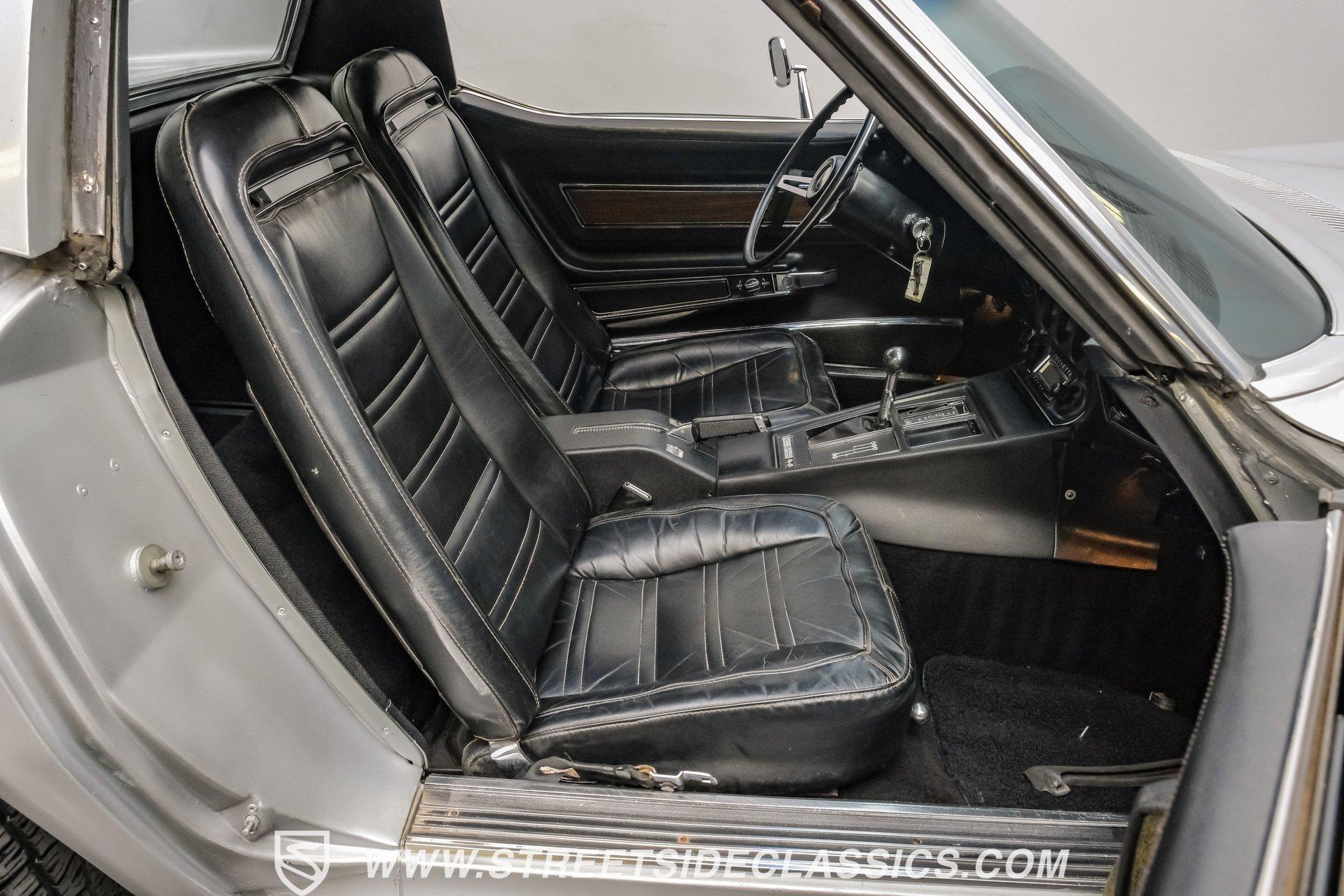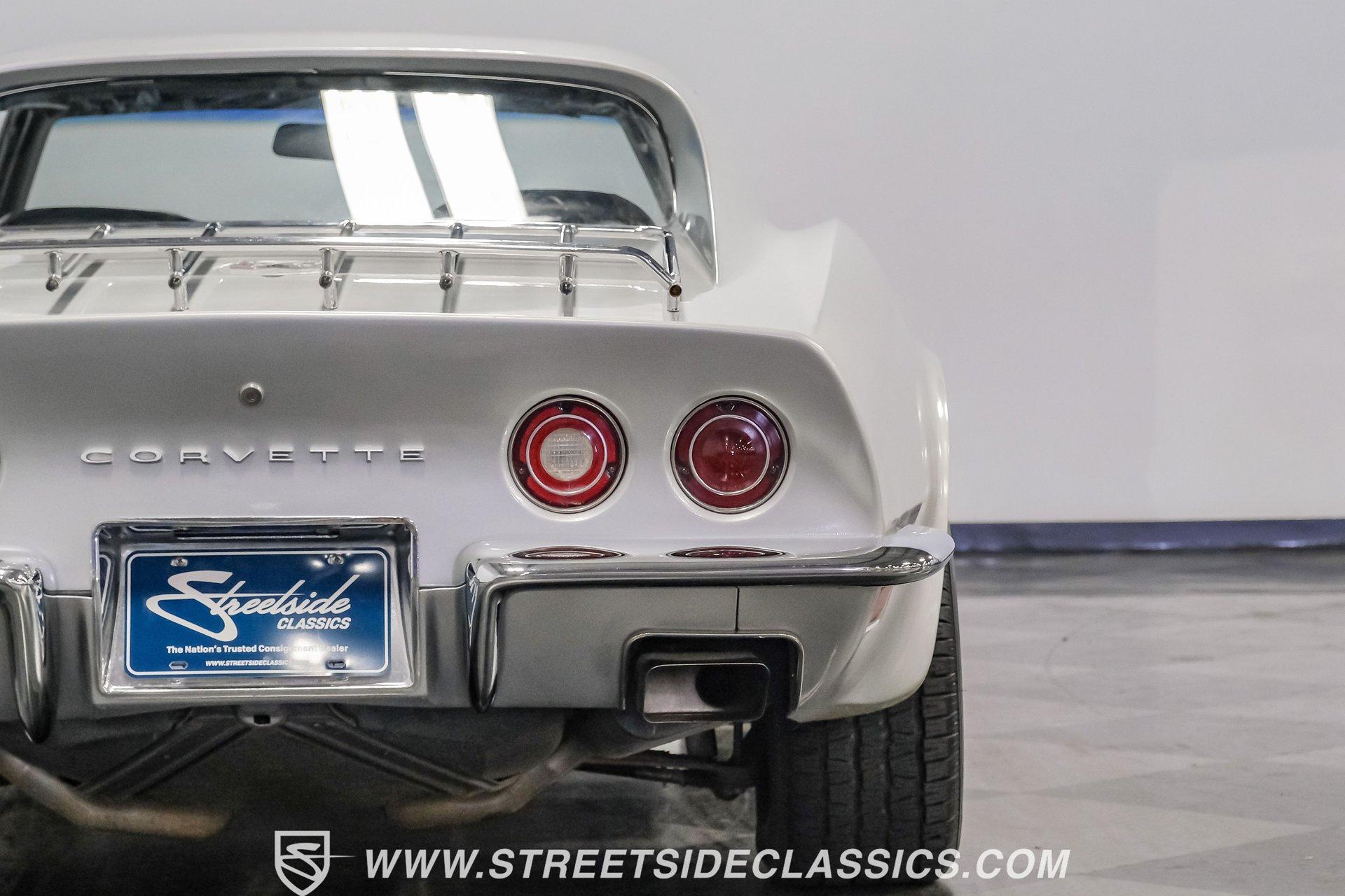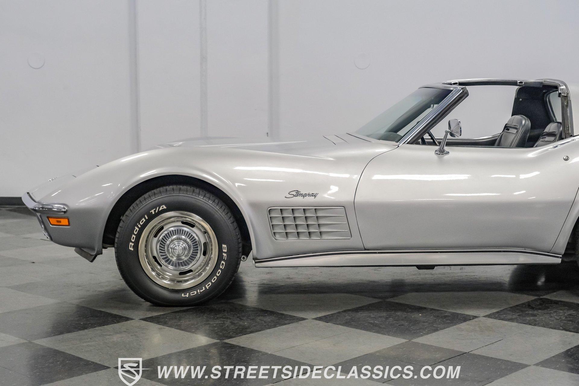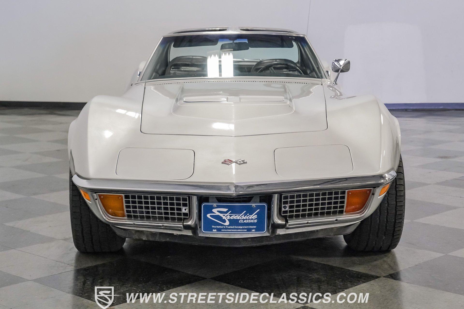 The second generation of Chevy's Corvette has quietly been gaining popularity among collectors over the last several years. One look at this 1972 Chevrolet Corvette LT1 383 and it's easy to see why. Fully repainted in a shimmering silver, this C2 features a useful rear luggage rack, complementing its signature T-Tops and sinewy Coke-bottle shape. Inside, we find a stock and correct appearing black leather interior. A center console separates a pair of bucket seats, while a three-spoke, power-assisted steering wheel sits ahead of a large 160 mph speedometer and 7,000 rpm tachometer. A quintet of auxiliary gauges sits above a retro-styled AM/FM/AUX/Bluetooth head unit, while simple wheel-controlled HVAC controls and a shift pattern diagram sit near the well-placed shifter. Although it came from the factory with an LT1, this Corvette benefits from an even more potent 383 cubic-inch BluePrint Engines stroker crate V-8 engine. This potent small block comes with lightweight aluminum heads, a mild performance cam, and a single Holley four-barrel carburetor. A true dual exhaust system feeds into a set of sweet-sounding FlowMaster mufflers, and with approximately 300 miles on it since installation, this engine has barely been broken in. Power is routed through a tried-and-true four-speed manual transmission, also with approximately 300 miles on its newly installed clutch. HIGHLIGHTS: Full Silver Repaint T-Tops Luggage Rack BluePrint Engines Crate Motor 383 Stroker V8 Approx 300 Miles on Motor Aluminum Heads Performance Cam Holley Four Barrel Four Speed Manual New Clutch Dual Exhaust FlowMasters Black Leather Interior Power Windows Power Steering Tilt Wheel Four Wheel Power Disc Brakes Rallye Wheels BFG Tires Owner's Manual This 1972 Chevrolet Corvette LT1 383 rides on an independent front suspension with a transverse leaf-spring setup in the rear. Fifteen-inch Rallye wheels are wrapped in 245/60R-15 BFG tires, with power disc brakes hiding behind at all four corners, ready to scrub off speed whenever called upon. This well-done C2 is a prime example of how good this generation can look and drive with only a couple of carefully selected upgrades. If you are one of the millions who adore the second generation of the Corvette, this is the car you've been waiting for. Don't wait, call today!