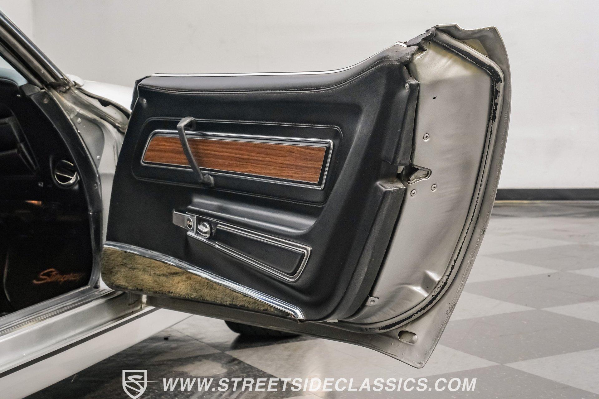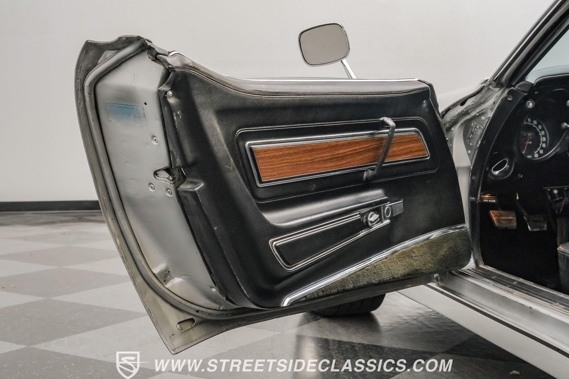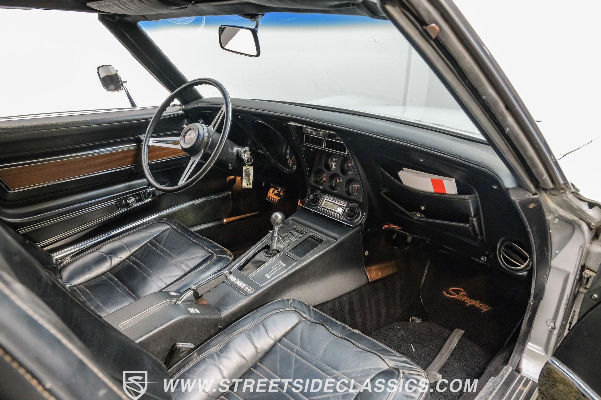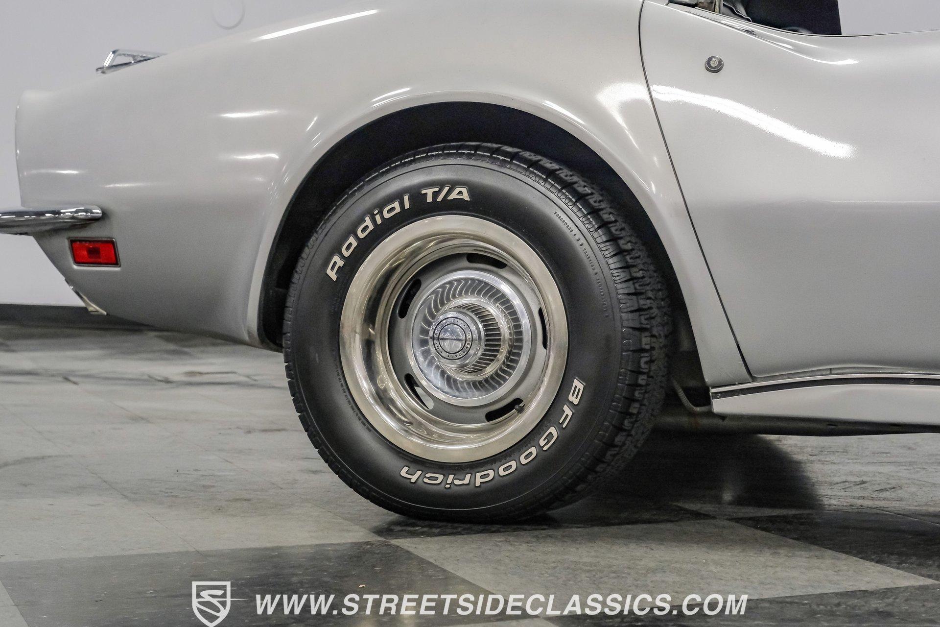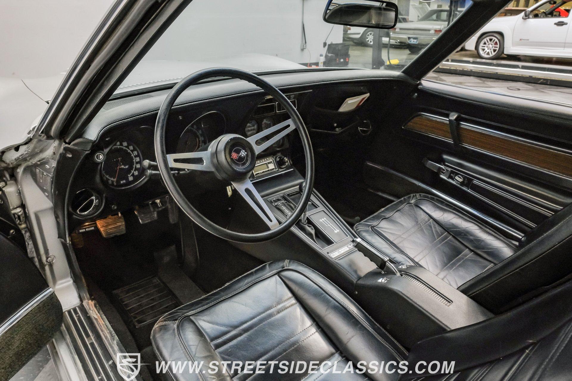 The second generation of Chevy's Corvette has quietly been gaining popularity among collectors over the last several years. One look at this 1972 Chevrolet Corvette LT1 383 and it's easy to see why. Fully repainted in a shimmering silver, this C2 features a useful rear luggage rack, complementing its signature T-Tops and sinewy Coke-bottle shape. Inside, we find a stock and correct appearing black leather interior. A center console separates a pair of bucket seats, while a three-spoke, power-assisted steering wheel sits ahead of a large 160 mph speedometer and 7,000 rpm tachometer. A quintet of auxiliary gauges sits above a retro-styled AM/FM/AUX/Bluetooth head unit, while simple wheel-controlled HVAC controls and a shift pattern diagram sit near the well-placed shifter. Although it came from the factory with an LT1, this Corvette benefits from an even more potent 383 cubic-inch BluePrint Engines stroker crate V-8 engine. This potent small block comes with lightweight aluminum heads, a mild performance cam, and a single Holley four-barrel carburetor. A true dual exhaust system feeds into a set of sweet-sounding FlowMaster mufflers, and with approximately 300 miles on it since installation, this engine has barely been broken in. Power is routed through a tried-and-true four-speed manual transmission, also with approximately 300 miles on its newly installed clutch. HIGHLIGHTS: Full Silver Repaint T-Tops Luggage Rack BluePrint Engines Crate Motor 383 Stroker V8 Approx 300 Miles on Motor Aluminum Heads Performance Cam Holley Four Barrel Four Speed Manual New Clutch Dual Exhaust FlowMasters Black Leather Interior Power Windows Power Steering Tilt Wheel Four Wheel Power Disc Brakes Rallye Wheels BFG Tires Owner's Manual This 1972 Chevrolet Corvette LT1 383 rides on an independent front suspension with a transverse leaf-spring setup in the rear. Fifteen-inch Rallye wheels are wrapped in 245/60R-15 BFG tires, with power disc brakes hiding behind at all four corners, ready to scrub off speed whenever called upon. This well-done C2 is a prime example of how good this generation can look and drive with only a couple of carefully selected upgrades. If you are one of the millions who adore the second generation of the Corvette, this is the car you've been waiting for. Don't wait, call today!