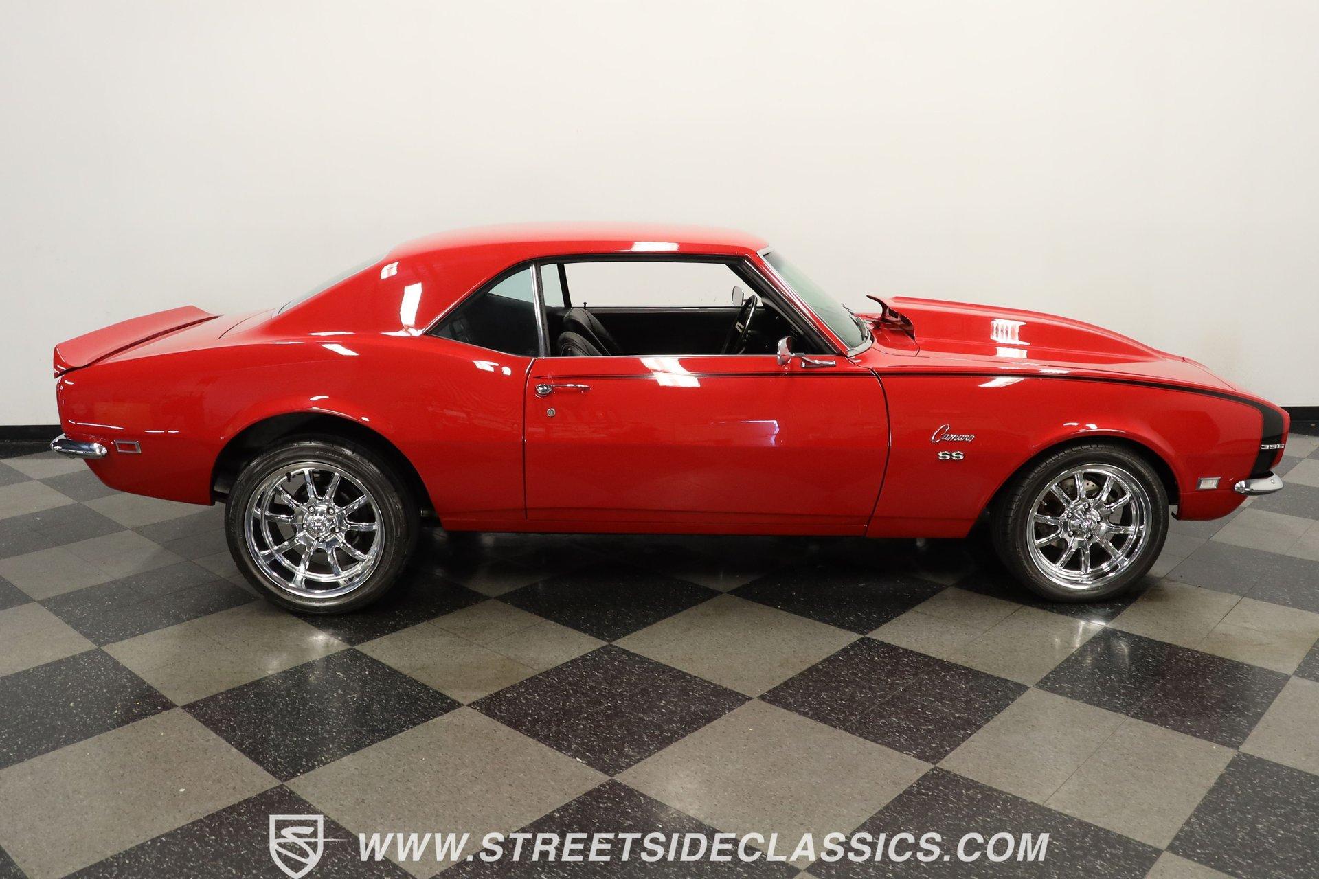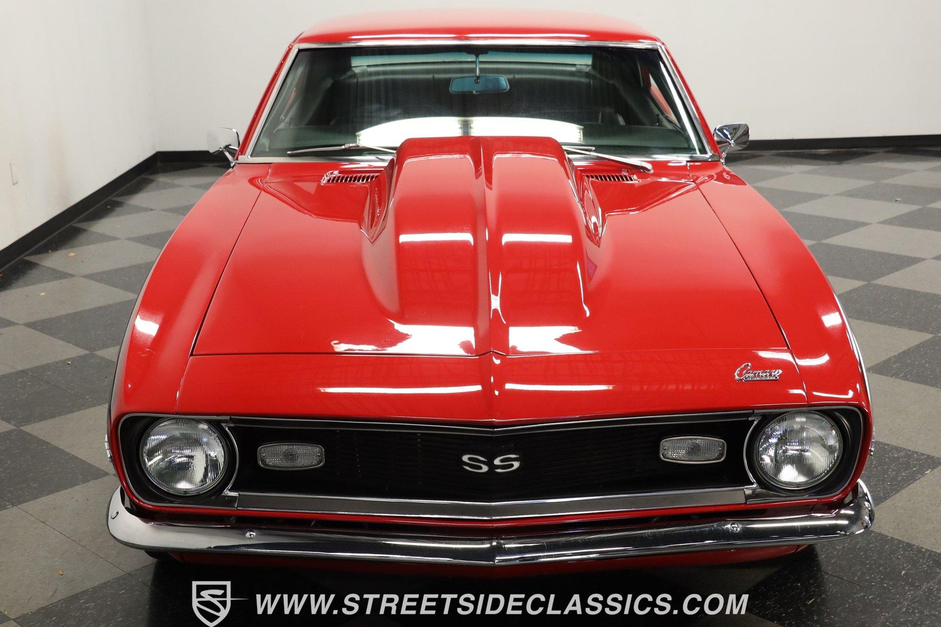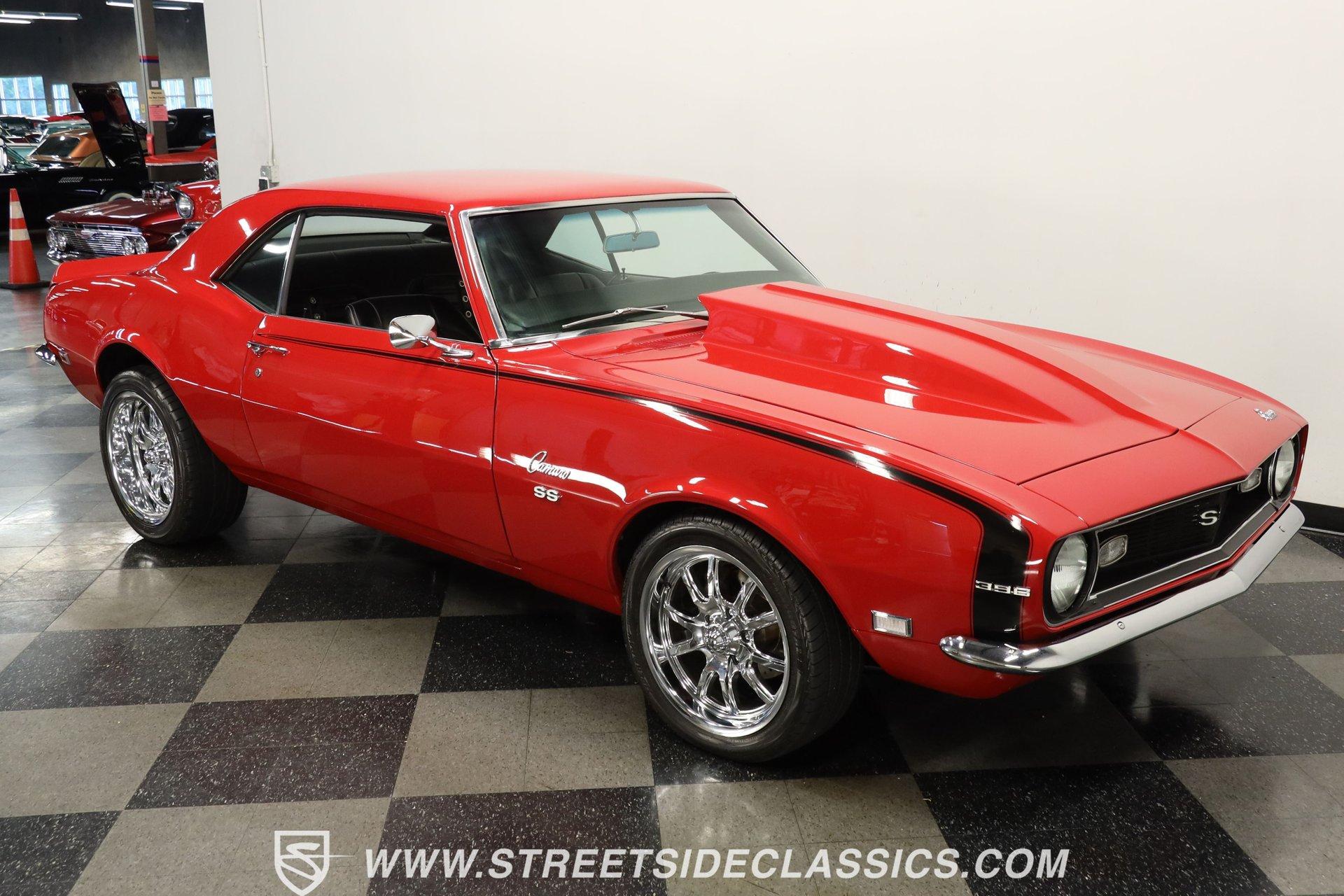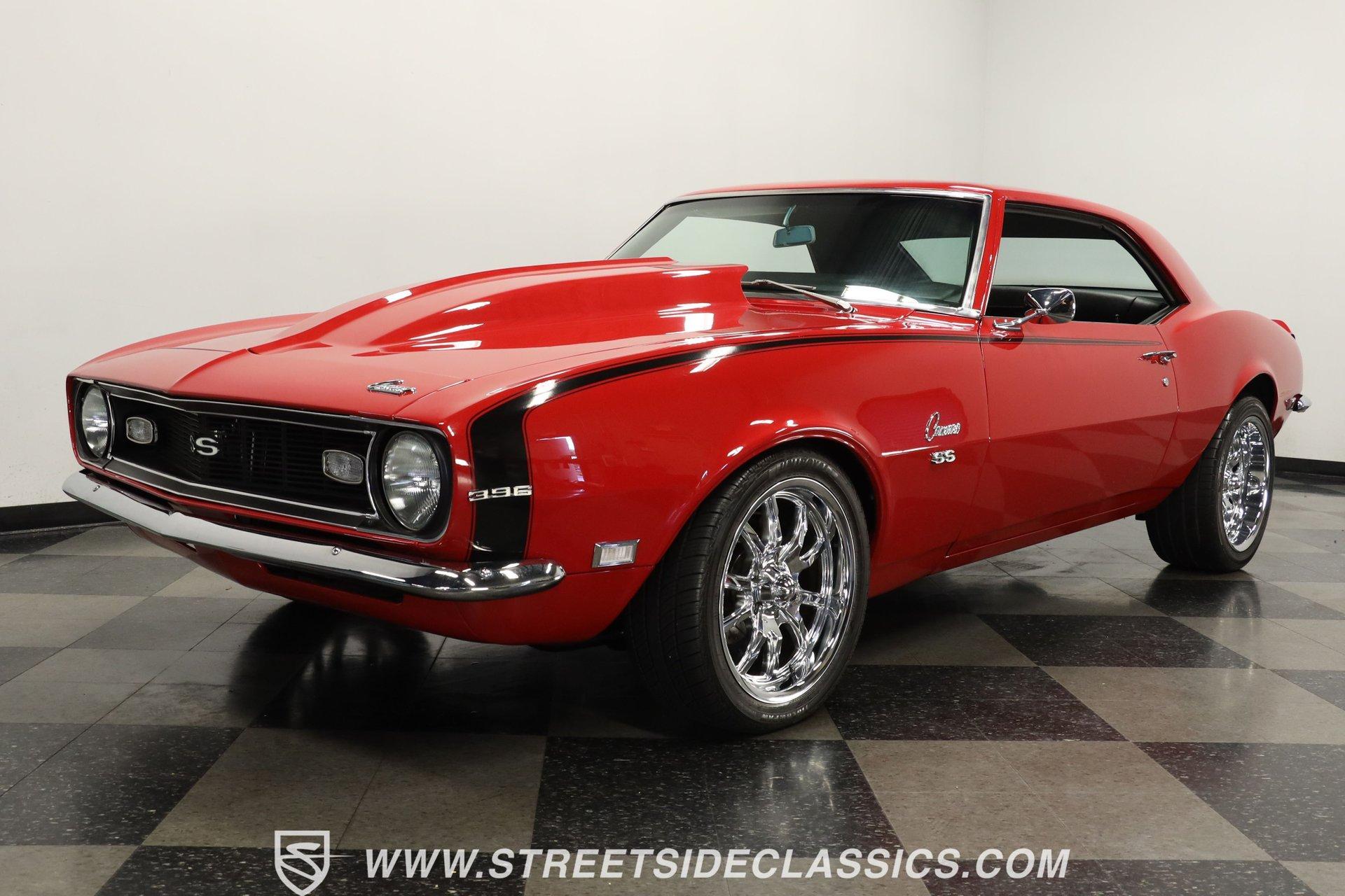5340-TPA 1968 CHEVROLET CAMARO RESTOMOD Presented in a Matador Red that gleams like the first blush of sunrise, this 1968 Chevrolet Camaro Restomod refuses to be a shy wallflower at the muscle car dance. Its audacious hue, meticulously crafted presence, and raised hood cowl set the stage for a performance that's as visually stunning as it is dynamic. Riding on 17" front and 18" rear Ridler wheels, with 225/45R17 tires up front for a menacing stance and 275/40ZR18 tires in the rear set within mini tubs, it commands attention. Reborn through restoration, its silhouette merges classic lines with a provocatively modern edge. Opening the door reveals a black vinyl interior that envelops you in a secure embrace, courtesy of TMI seats whose quality is apparent at first glance. The interior, refreshed to appear as new as tomorrow, transports you to another era. A dashboard populated by original gauges and an Equus gauge cluster offers a glimpse into its performance capabilities, while vintage air ensures comfort on the hottest days. Power comes from a freshly rebuilt 454 V8 engine, a marvel of precision and raw power. The Holley 4-barrel carburetor, Edelbrock aluminum intake, and Comp Cam setup ensure that this beast's growl is matched by a bite that tears through the streets with ease. Coupled with an also freshly rebuilt Muncie 4-speed manual transmission and power steering, the drive is engaging to say the least! The dual exhaust system by Pypes ensures that your departure is as memorable as your arrival, complemented by power brakes and tubular A-arm and traction bars for unparalleled control. HIGHLIGHTS: Freshly Rebuilt 454 V8 Engine Freshly Rebuilt Muncie 4-Speed Manual Transmission Subframe Connectors Newer KYB Shocks Geis Differential Cover Holley Single 4-Barrel Carburetor Edelbrock Aluminum Intake Comp Cam: 235 / 235 - .561 / .561 Tubular A-Arm and Traction Bars Power Front Disc Brakes Dual Exhaust System by Pypes 12 Bolt Rear-End with Spool Matador Red Full Repaint 17" Front and 18" Rear Ridler Wheels Raised Hood Cowl Mini Tubs in Rear Black Vinyl TMI Seats and Door Panels Floor Shifter Center Console Equus Gauge Cluster Under Dash Vintage Air Control Panel Power Steering This 1968 Chevrolet Camaro Restomod, with its potent 454 V8 engine, a cabin that blends classic aesthetics with modern comforts, and a suite of enhancements that highlight its performance pedigree, is a masterpiece crafted for the enthusiast who demands both style and substance. Call today!
