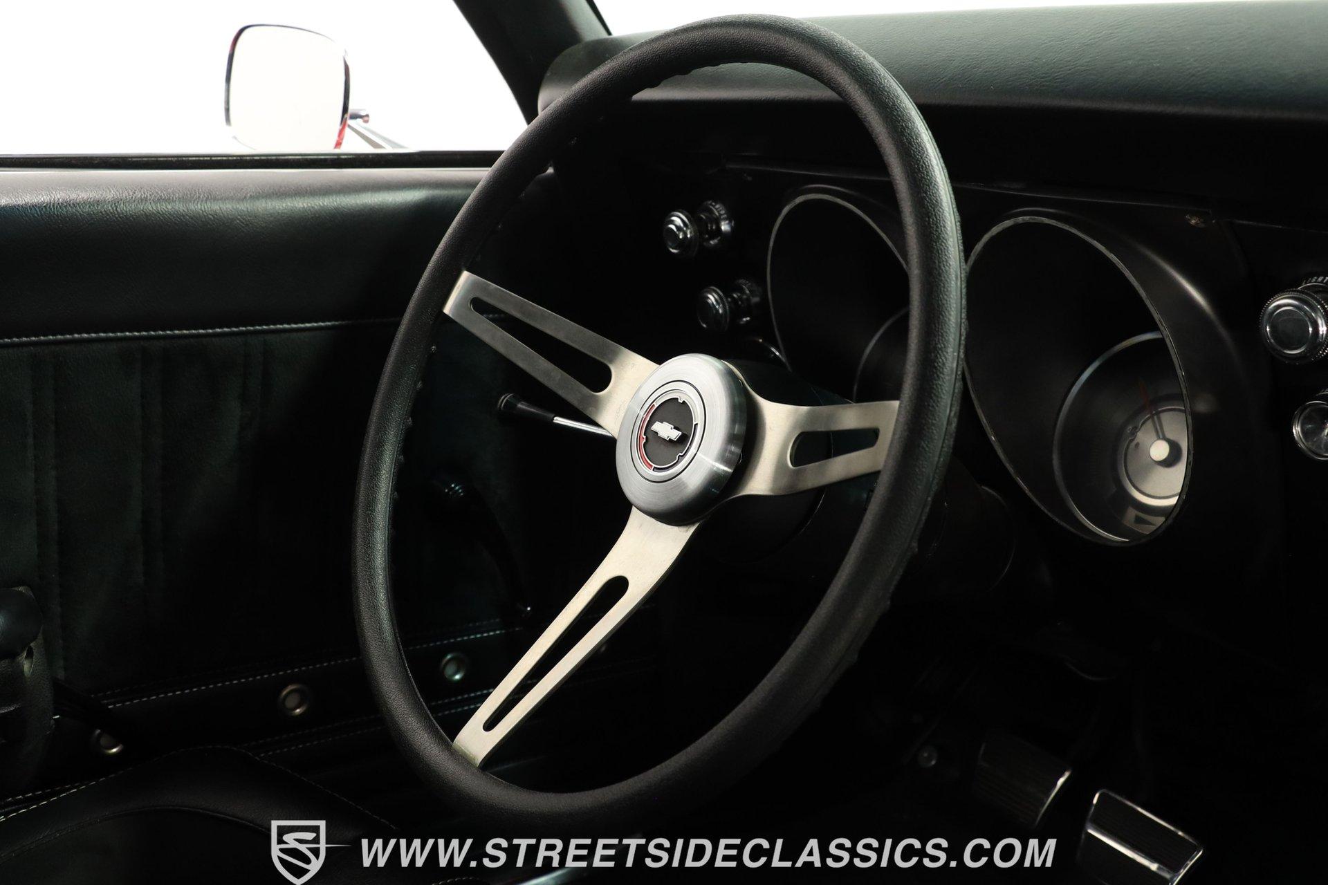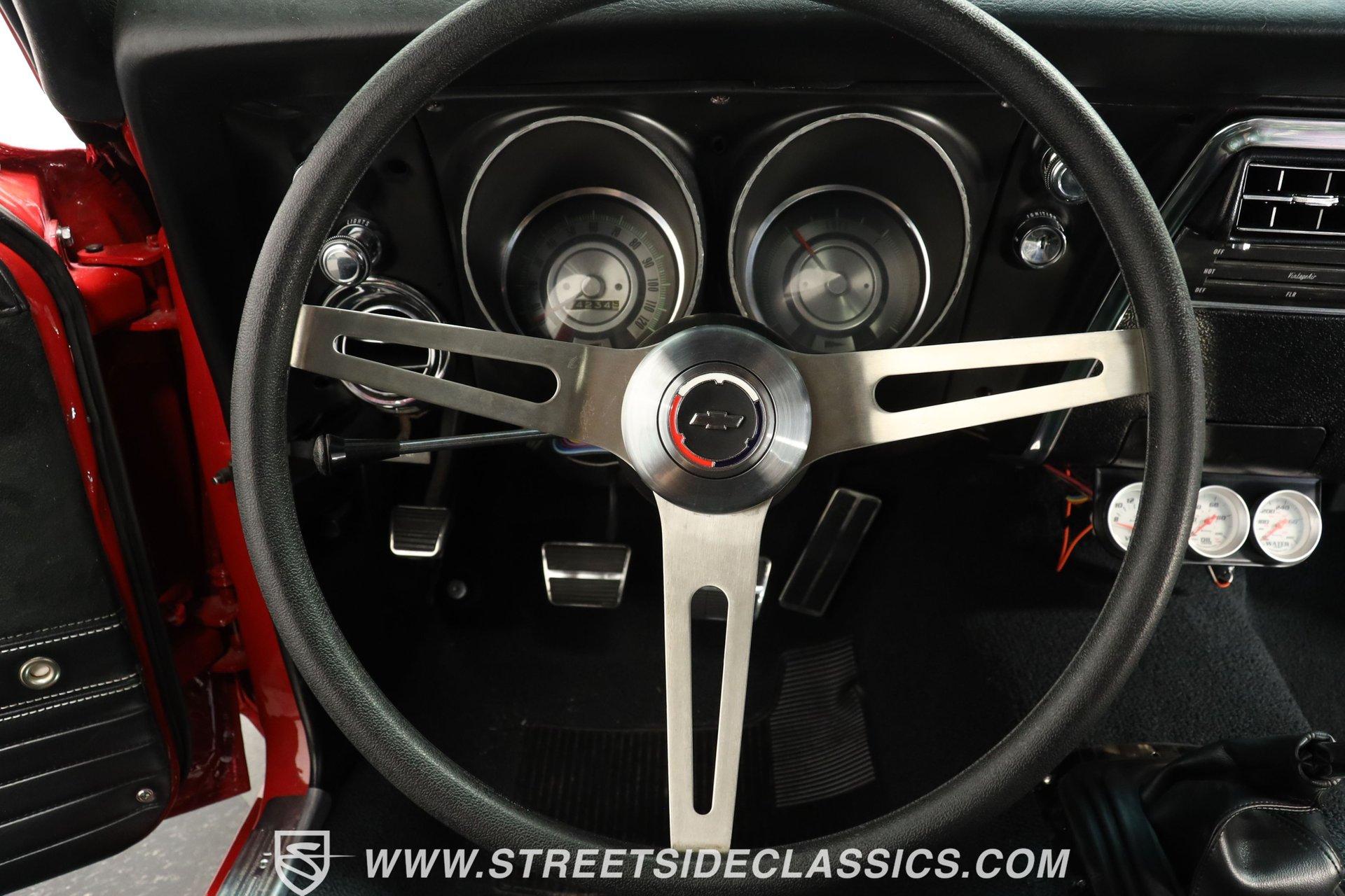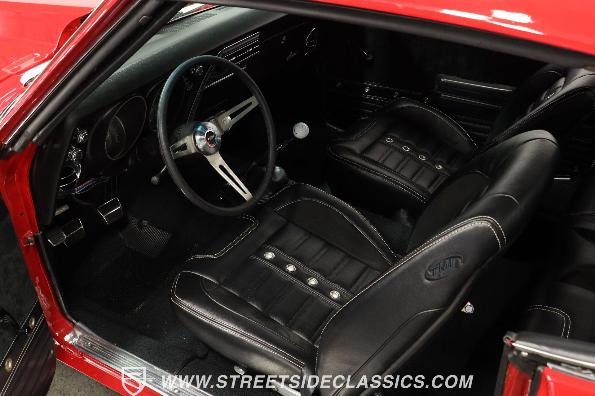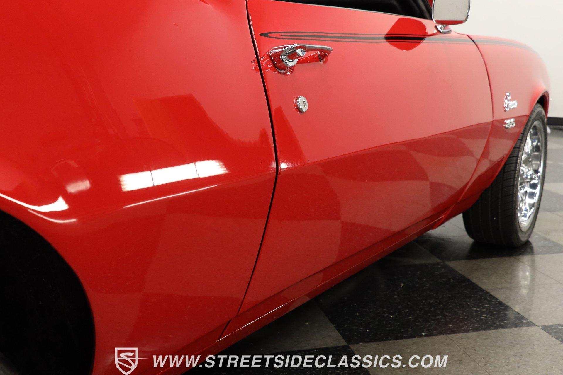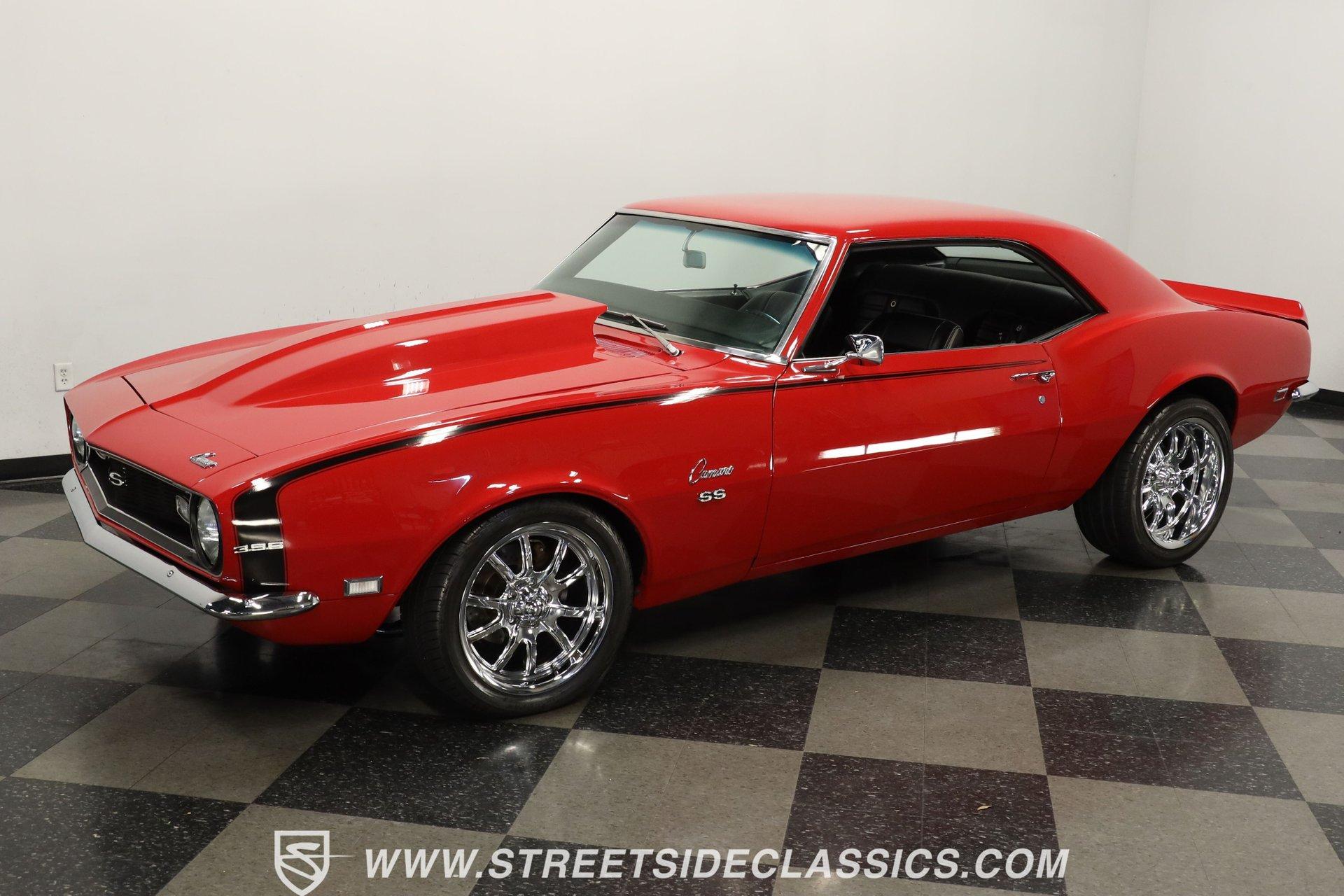 5340-TPA 1968 CHEVROLET CAMARO RESTOMOD Presented in a Matador Red that gleams like the first blush of sunrise, this 1968 Chevrolet Camaro Restomod refuses to be a shy wallflower at the muscle car dance. Its audacious hue, meticulously crafted presence, and raised hood cowl set the stage for a performance that's as visually stunning as it is dynamic. Riding on 17" front and 18" rear Ridler wheels, with 225/45R17 tires up front for a menacing stance and 275/40ZR18 tires in the rear set within mini tubs, it commands attention. Reborn through restoration, its silhouette merges classic lines with a provocatively modern edge. Opening the door reveals a black vinyl interior that envelops you in a secure embrace, courtesy of TMI seats whose quality is apparent at first glance. The interior, refreshed to appear as new as tomorrow, transports you to another era. A dashboard populated by original gauges and an Equus gauge cluster offers a glimpse into its performance capabilities, while vintage air ensures comfort on the hottest days. Power comes from a freshly rebuilt 454 V8 engine, a marvel of precision and raw power. The Holley 4-barrel carburetor, Edelbrock aluminum intake, and Comp Cam setup ensure that this beast's growl is matched by a bite that tears through the streets with ease. Coupled with an also freshly rebuilt Muncie 4-speed manual transmission and power steering, the drive is engaging to say the least! The dual exhaust system by Pypes ensures that your departure is as memorable as your arrival, complemented by power brakes and tubular A-arm and traction bars for unparalleled control. HIGHLIGHTS: Freshly Rebuilt 454 V8 Engine Freshly Rebuilt Muncie 4-Speed Manual Transmission Subframe Connectors Newer KYB Shocks Geis Differential Cover Holley Single 4-Barrel Carburetor Edelbrock Aluminum Intake Comp Cam: 235 / 235 - .561 / .561 Tubular A-Arm and Traction Bars Power Front Disc Brakes Dual Exhaust System by Pypes 12 Bolt Rear-End with Spool Matador Red Full Repaint 17" Front and 18" Rear Ridler Wheels Raised Hood Cowl Mini Tubs in Rear Black Vinyl TMI Seats and Door Panels Floor Shifter Center Console Equus Gauge Cluster Under Dash Vintage Air Control Panel Power Steering This 1968 Chevrolet Camaro Restomod, with its potent 454 V8 engine, a cabin that blends classic aesthetics with modern comforts, and a suite of enhancements that highlight its performance pedigree, is a masterpiece crafted for the enthusiast who demands both style and substance. Call today!
