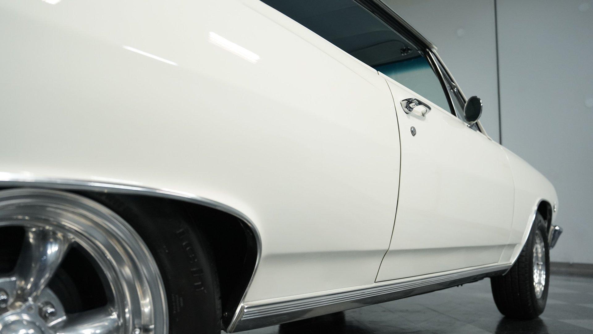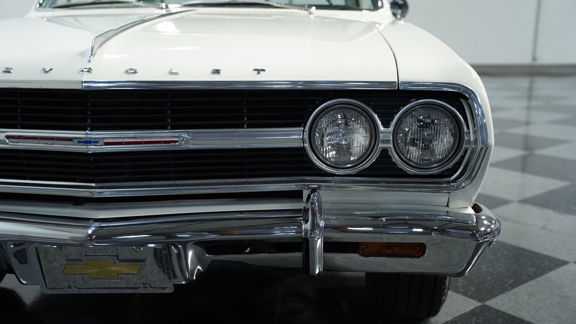This 1965 Chevrolet Malibu SS has everything you want and need in a cruiser: an engine that starts and runs smoothly, a beautiful paint job, and a comfortable interior. The SS sports an Ermine Ivory White exterior that looks great with the bright steel bumpers and front chrome grille. The American Racing wheels fit perfectly on this slightly lowered muscle car. The body panels are straight, the undercarriage is clean, and the trim and badges add just enough extra character. This is the kind of car that attracts a lot of looks without a lot of flash. The light blue interior meshes perfectly with the exterior white. The two-tone blue vinyl seats and door panels are in great shape and complement the headliner and carpet, which are also well-preserved. The stock-appearing steering wheel and dashboard are clean, and the gauges are clear and easy to read. All controls and knobs are in good condition, as is the AM radio. The center console hosts a chrome-plated T-shifter, and the other bright components throughout the interior hold their luster as well. This is a very well-maintained, stock-looking interior. Out back, the trunk is just as clean and has plenty of room for cargo, and it has a full-sized spare tire. The engine bay looks super nice with chrome, stainless steel, and billet pieces. An aluminum radiator is mounted up front, and just behind it are billet brackets attaching the chrome A/C compressor and alternator. The master cylinder has been dressed up, and a chrome intake sits between Chevy aluminum valve covers and an air cleaner cover. Power comes from a 350 cubic-inch engine with GM Performance aluminum heads, an Edelbrock chrome intake, an AVS2 carburetor, and an MSD distributor. This engine is paired with a TH350 3-speed automatic transmission, sending power to a 10-bolt rear axle. The suspension setup includes front coil springs, shocks, and a thick sway bar, along with rear coil springs, shocks, and heavy-duty trailing arms. The 15-inch American Racing wheels look great on this Malibu and are wrapped in 225/70R15 tires with good tread. For stopping, this Chevy features front power disc brakes and rear power drum brakes. And for a strong, rumbling sound, it's equipped with Hedman long-tube headers, dual exhaust, and Flowmaster mufflers. Highlights: 350 Cubic-Inch Engine GM Performance Aluminum Heads Edelbrock Intake And AVS2 Carburetor MSD Distributor Aluminum Radiator Billet Accessories Brackets New Battery 3-Speed Automatic Transmission 10-Bolt Rear Axle Front Coil Springs, Shocks, With A Thick Sway Bar Rear Coil Springs, Shocks, And Heavy Duty Trailing Arms 15-Inch American Racing Wheels 225/70R15 Front And Rear Tires Power Front Disc Brakes-Rear Power Drum Brakes Hedman Long Tube Headers, Flowmasters, Dual Exhaust Power Steering Heat/Defrost Floor Shifter AM Radio Clean Trunk With Full-Sized Spare Tire It's muscle cars like this that remind us you don't need a lot of flair to make a big impression. This 1965 Chevrolet Malibu is clean, simple, and low-key, yet still manages to get all the attention it deserves. For More Info, Call Today!