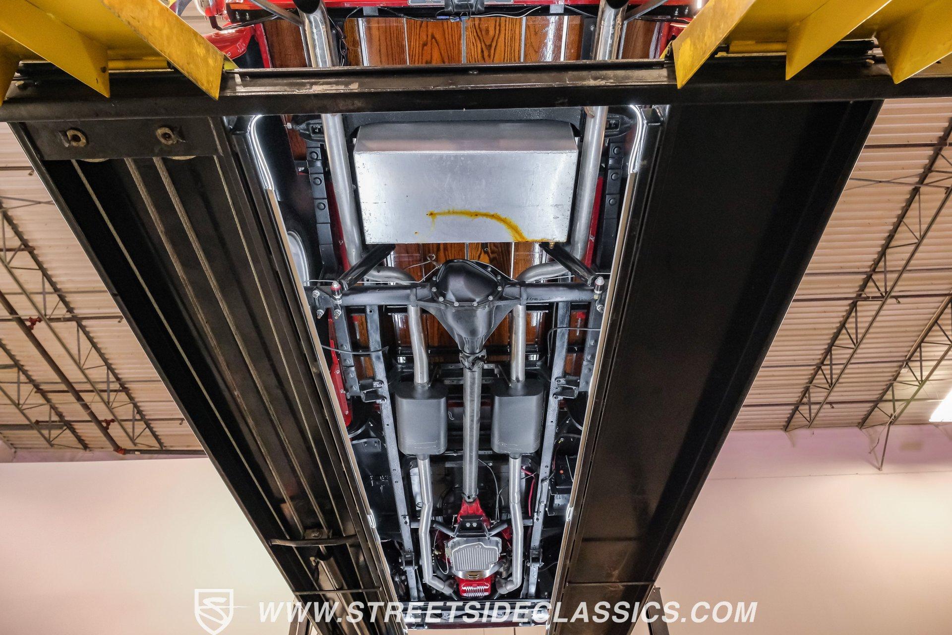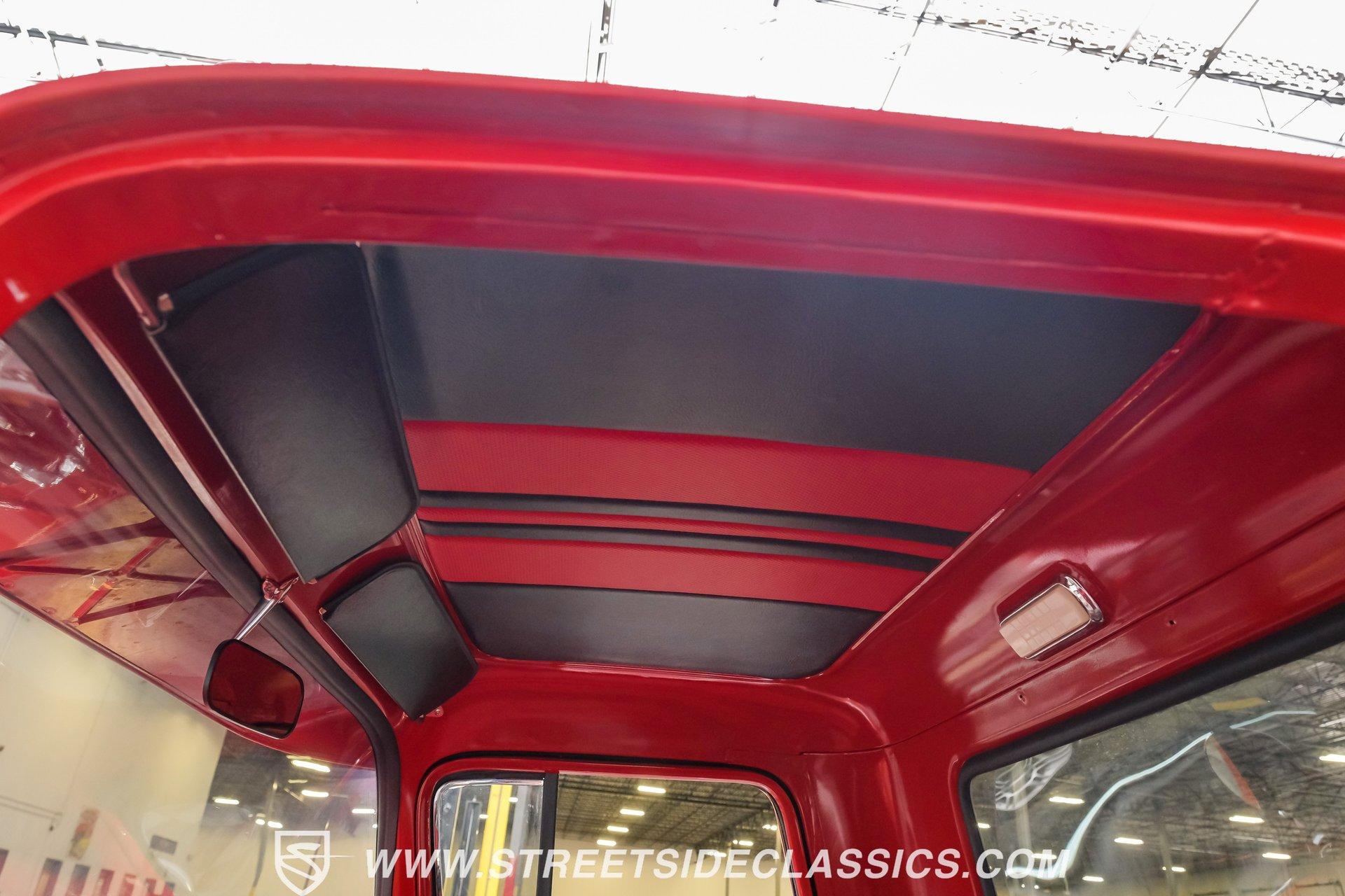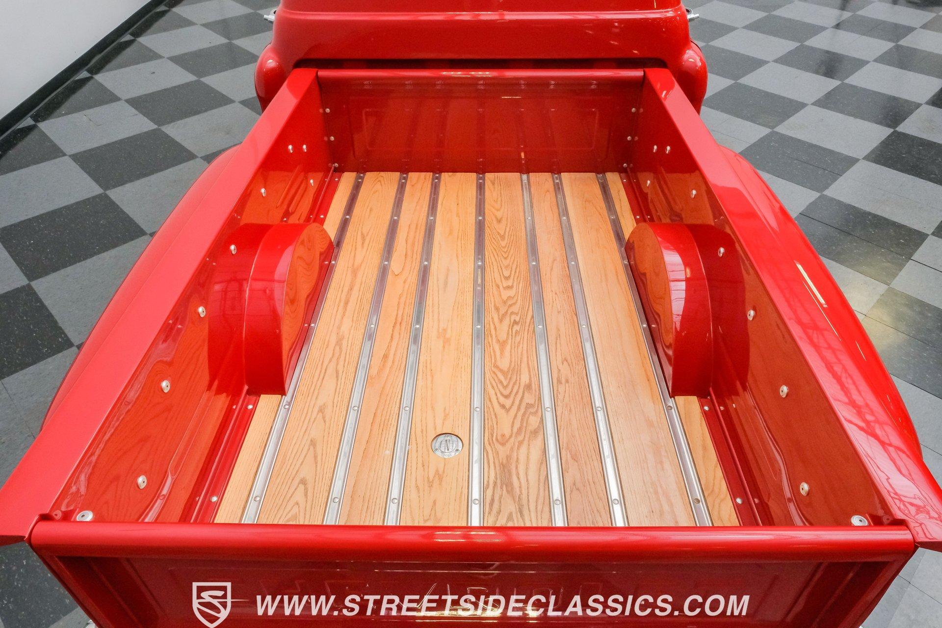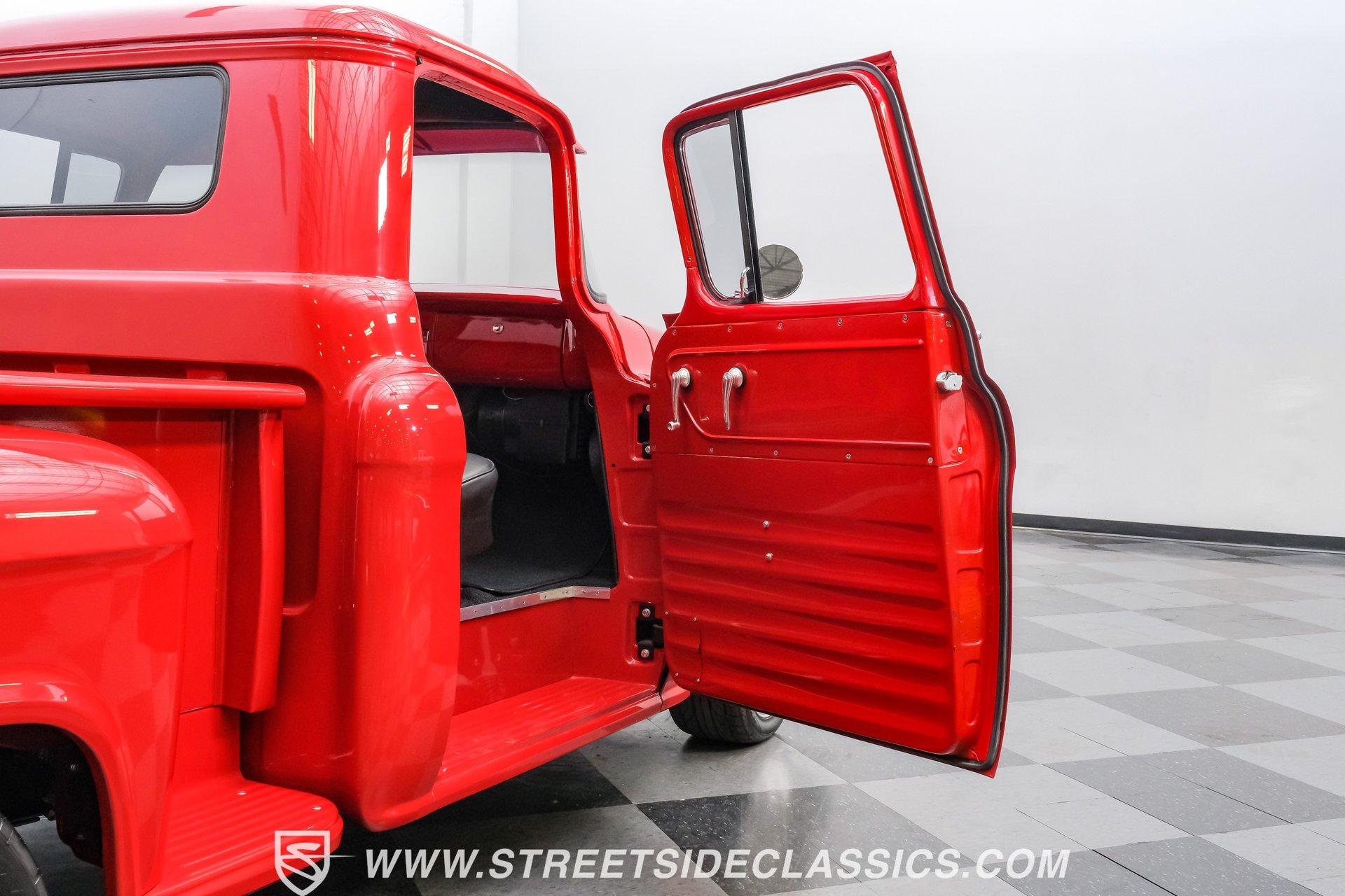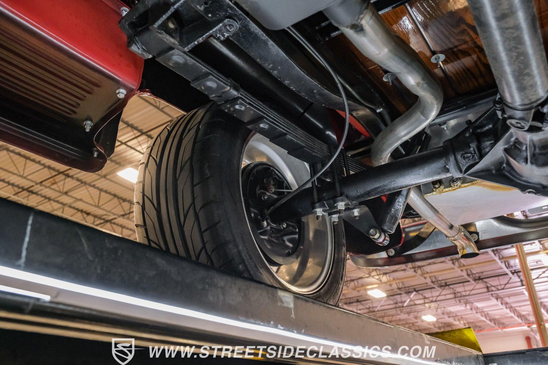 Custom trucks done-up this nice don't come around too often. This 1956 Chevrolet 3100 Custom presents a Metallic Red paint job that just pops out at you. It goes great with the curves of the step-side short-bed look, the retro wheels, and the chrome bumpers. This truck has the perfect stance, a clean undercarriage, and a bed that uses classy wood planks with shiny separators to finish off the look. If you're looking for a vehicle that can go to car shows and draw tons of attention, this is your gem. Just as much time and detail went into the interior as the exterior. Red and black vinyl bench seats create a very cool look, paired with a matching headliner. Black carpeting with a red Chevrolet emblem in the center ties it all together. The door panels and dashboard are painted solid red to match the exterior and are in great shape. The custom gauge cluster includes dolphin aftermarket gauges. To the right is a RetroSound radio, and next to that are the climate controls, which look factory-restored. Complementing the setup is a billet steering wheel and billet gas and brake pedals. In the middle of the floor on the transmission tunnel sits a Lokar shifter handle and brake lever. For added kicks, aftermarket speakers are mounted in the kick panels. The engine bay is nicely painted flat black and houses a rebuilt 454 cubic-inch big-block, finished in Chevy Orange. It's equipped with an aluminum radiator and electric fans, aluminum valve covers, billet pulleys for accessories, and an Edelbrock intake topped with a Holley 4-barrel carburetor. Mated to the big-block is a TH400 3-speed automatic transmission that sends power back to a 12-bolt rear axle. The front suspension features a straight axle with leaf springs and shocks, while the rear uses a solid axle with leaf springs and shocks. American Racing 17-inch wheels sit up front, and 18-inch wheels are mounted in the rear. These are wrapped in 245/45ZR17 Nitto tires in the front and 295/45ZR18 Nitto tires in the rear. Braking is handled by front power disc brakes and rear power drums. Shorty headers push the exhaust through dual pipes and aftermarket mufflers. HIghlights: 454 Cubic-Inch Big-Block Aluminum Radiator With Electric Fans Billet Pulleys For Accessories TH400 3-Speed Automatic Transmission 12-Bolt Rear Axle Front 17-Inch American Racing Wheels With 245/45ZR17 Nitto Tires - 2020 Rear 18-Inch American Racing Wheels With 295/45ZR18 Nitto Tires - 2019 Front Power Disc Brakes Headers, Dual Exhaust, Aftermarket Mufflers Power Steering Air Conditioning Tilt Steering Column RetroSounds AM/FM Radio With Aux Inputs And Bluetooth This is a gorgeous truck for cruising. With only 226 miles on the build, this 1956 Chevrolet 3100 Custom is ready for someone to have a lot of fun in. Whether it's weekend cruising, local car shows, or simply admiring it in your driveway or garage, you can't go wrong with a truck this beautiful. Call Today!