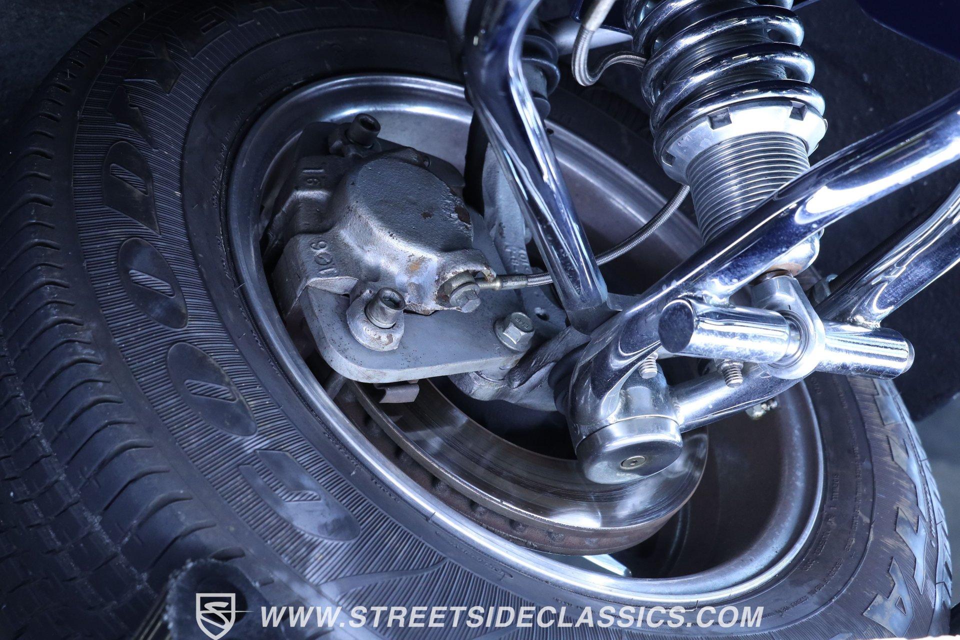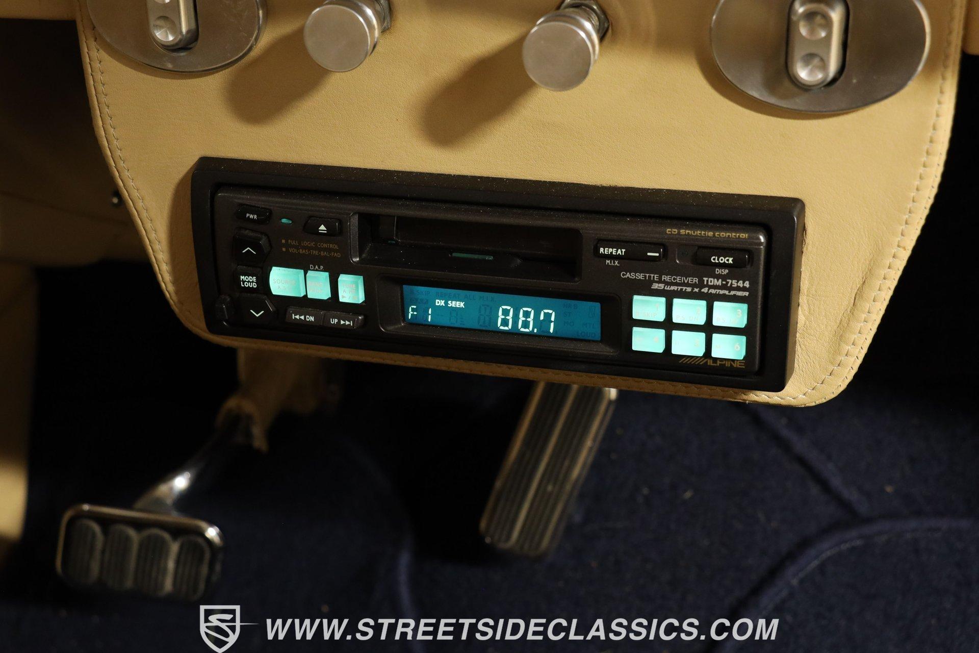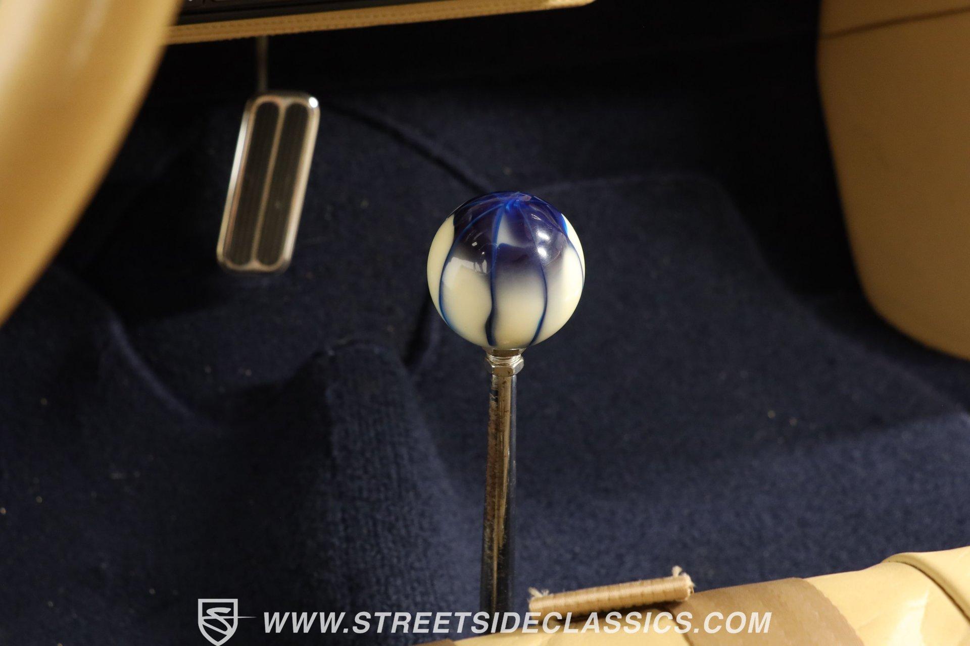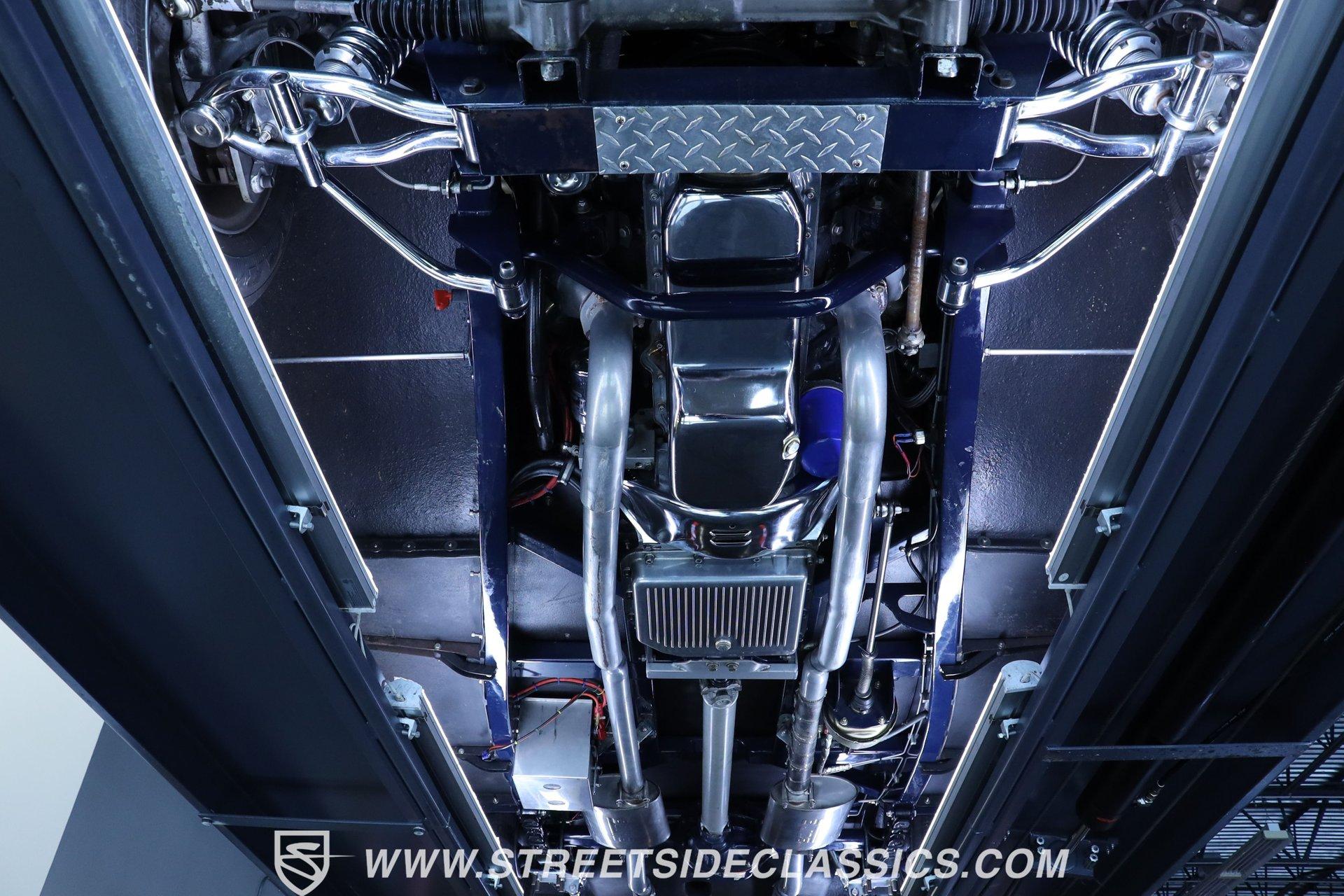 That sculpted front grille sitting between a pair of flared, tapered fenders. Those intricate engine vents. The husky form culminating in an aggressively sloped deck lid. With so much effortless style in one place, it's easy to see why this 1933 Ford Cabriolet makes for such a compelling foundation to build on. This is a great-looking cruiser, dressed in deep blue paint that holds a nice shine. And, where some circa '30s projects put the emphasis almost solely on aesthetics, this one features a collection of mechanical upgrades that make it a fine driver as well. Because it has only logged a little over 5,000 miles since being built, this open-air Ford should be well-positioned to offer many future miles of driving happiness. There's a lot to like about the accompanying interior. With its tan vinyl upholstery, tight, well-fitted door panels, and clean contrasting carpeting, this is a really nice driving environment. An aftermarket Budnik steering wheel sits on a tilt steering column, allowing you to arrive at the perfect driving position, and just in front of it, there's a collection of Auto Meter gauges sitting inside a nicely contoured instrument panel. An Alpine AM/FM/Cassette stereo sits at the center of the dash, teaming with a CD changer mounted in the trunk, to provide you with plenty of audio options. The removable cabriolet hardtop also makes this vintage Ford a viable driving option in less forgiving weather, and it fits nicely to keep the elements at bay. Beneath that distinctive hood sits a 350 cubic-inch V8 engine. It's fed by a 4-barrel Edelbrock carburetor and intake manifold and teams with a 3-speed automatic TH350 transmission that shifts well to result in a powerful, yet reliable drivetrain. An HEI electronic distributor supplies an enhanced, consistent spark while an upgraded aluminum radiator sits at the front of the engine bay to help keep operating temperatures under control. With all these mechanical components functioning in top form, this classic Ford starts promptly and accelerates smoothly. Power brakes that position discs in front supply a level of reliable stopping ability that comes in handy during frequent driving. HIGHLIGHTS ONLY A LITTLE MORE THAN 5,000 MILES ON THIS WELL-CONFIGURED BUILD 350 CUBIC-INCH CRATE ENGINE 4-BARREL CARBURETOR 3-SPEED AUTOMATIC TH350 TRANSMISSION SHORTY HEADERS DUAL EXHAUST, WITH BORLA MUFFLERS POWER STEERING POWER BRAKES WITH FRONT DISCS STAGGERED 14"/15" AMERICAN RACING WHEELS SUPER NICE DARK BLUE EXTERIOR TAN VINYL UPHOLSTERY BEIGE CANVAS CONVERTIBLE TOP BENCH SEATING AIR CONDITIONING COMPONENTS IN PLACE AM/FM/CASSETTE STEREO, COMBINED WITH TRUNK-MOUNTED CD CHANGER Featuring considerable head-turning ability, a well-planned configuration, and a strong driving condition, this 1933 Ford Cabriolet cruises on a set of staggered American Racing wheels that position 14" rims up front and 15" rims in back. It would be a great addition for the collector looking for Art Deco-inspired style combined with a fun experience behind the wheel. Call today!